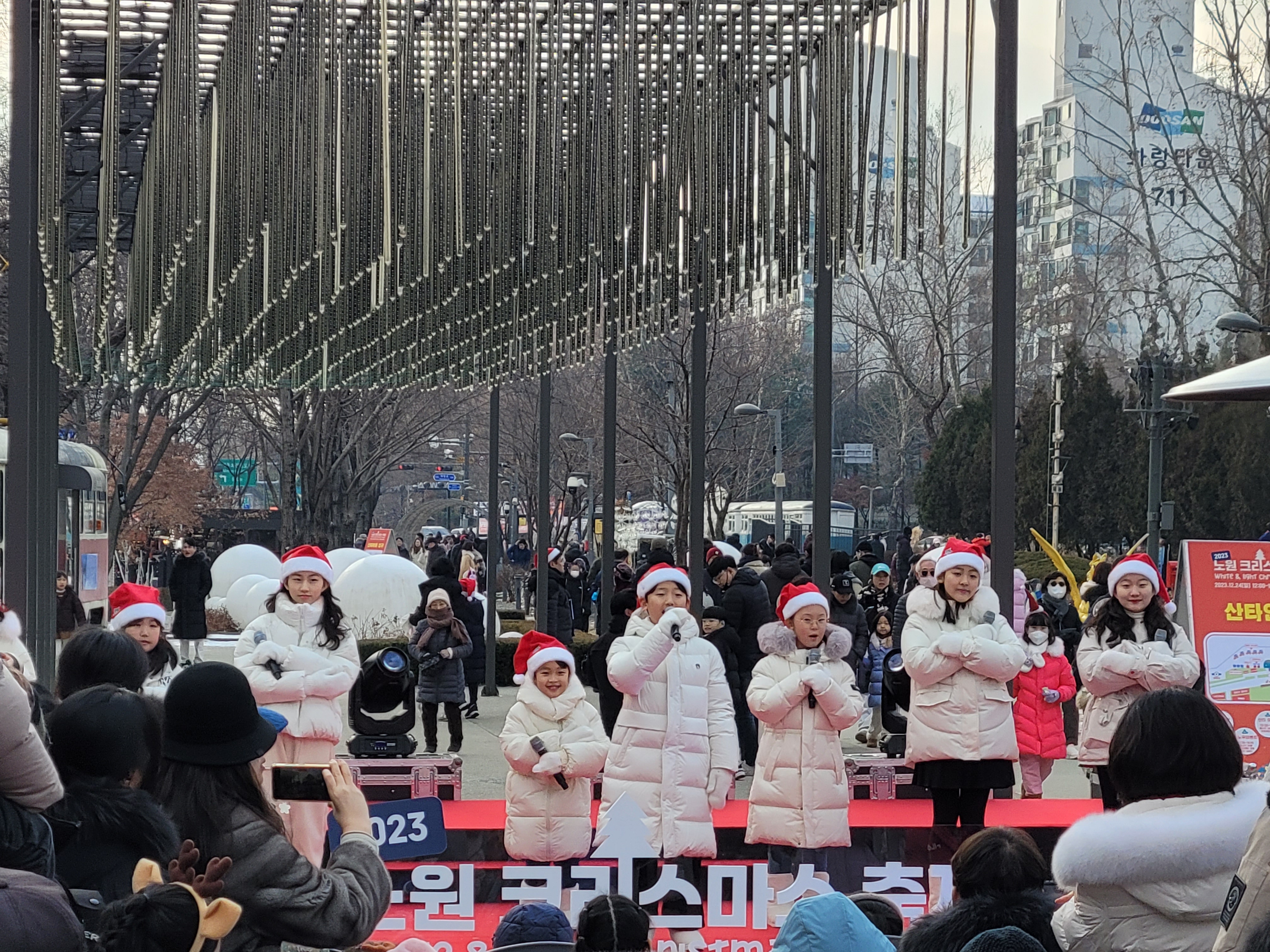 무대에서는 크리스마스 관련한 공연들이 많이 열리고 있어서 많은 사람들이