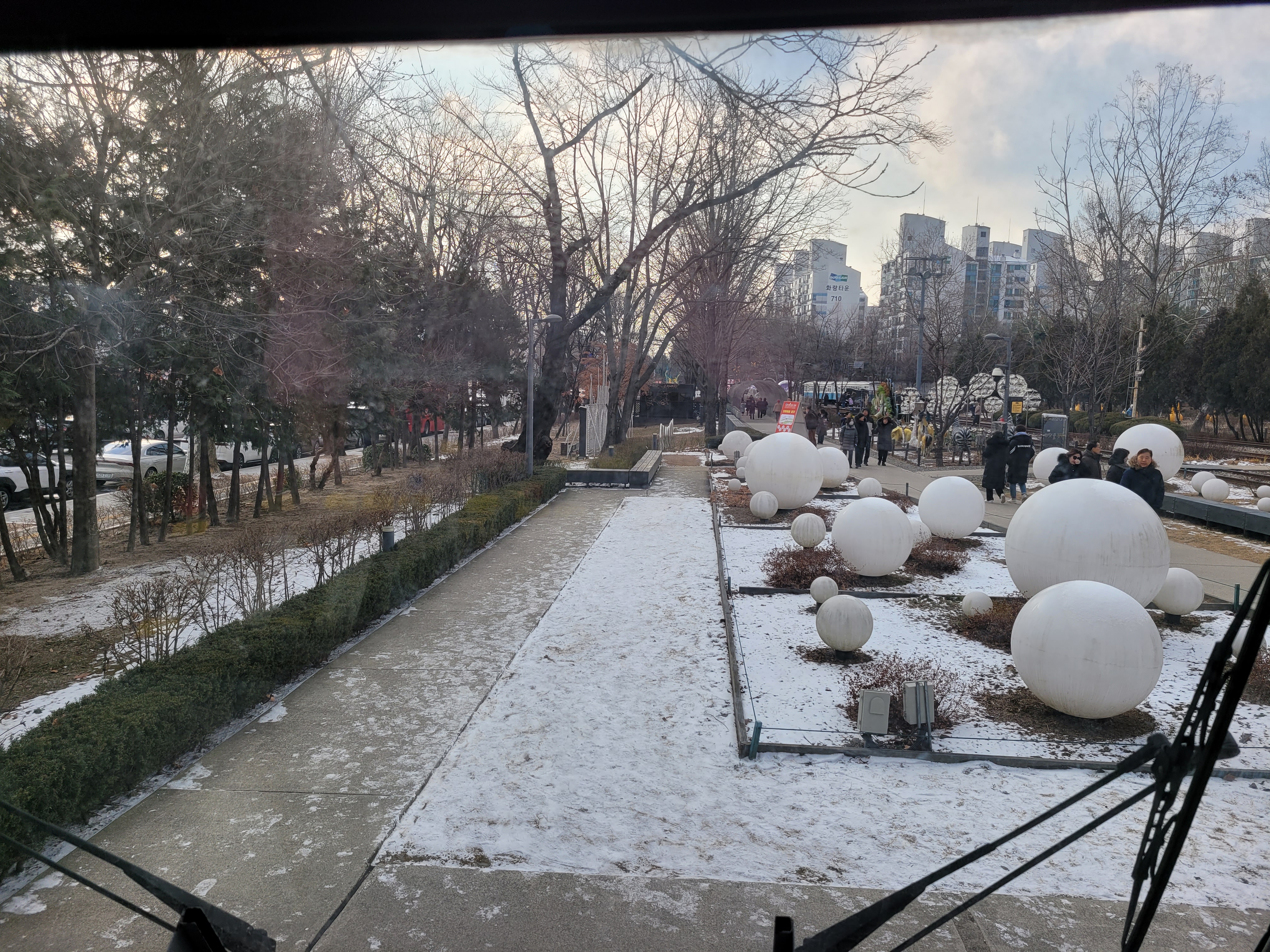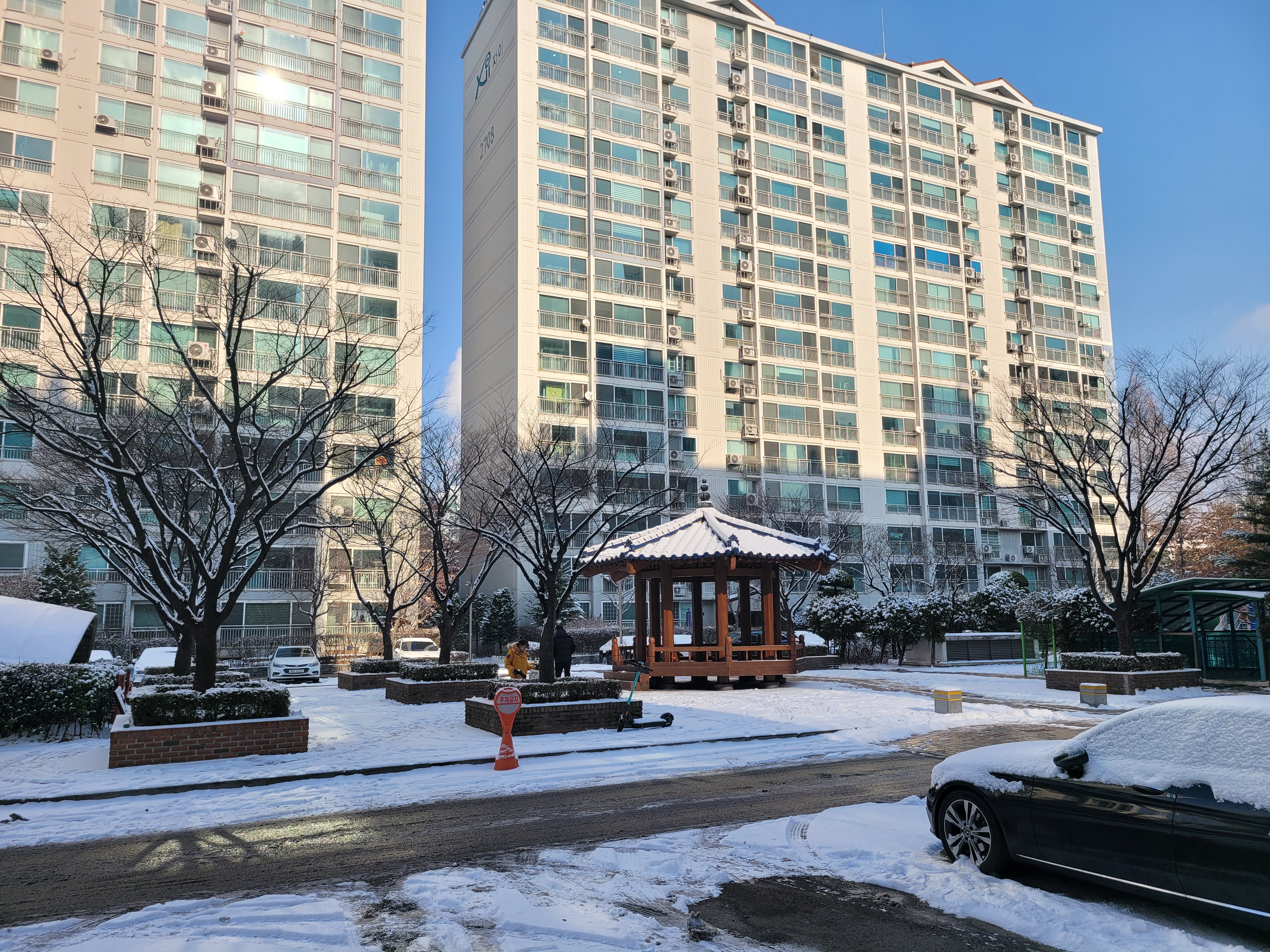 어제밤에 눈이 내렸는지 거리 곳곳에 눈이 쌓여서 화이트 크리스마스네요.