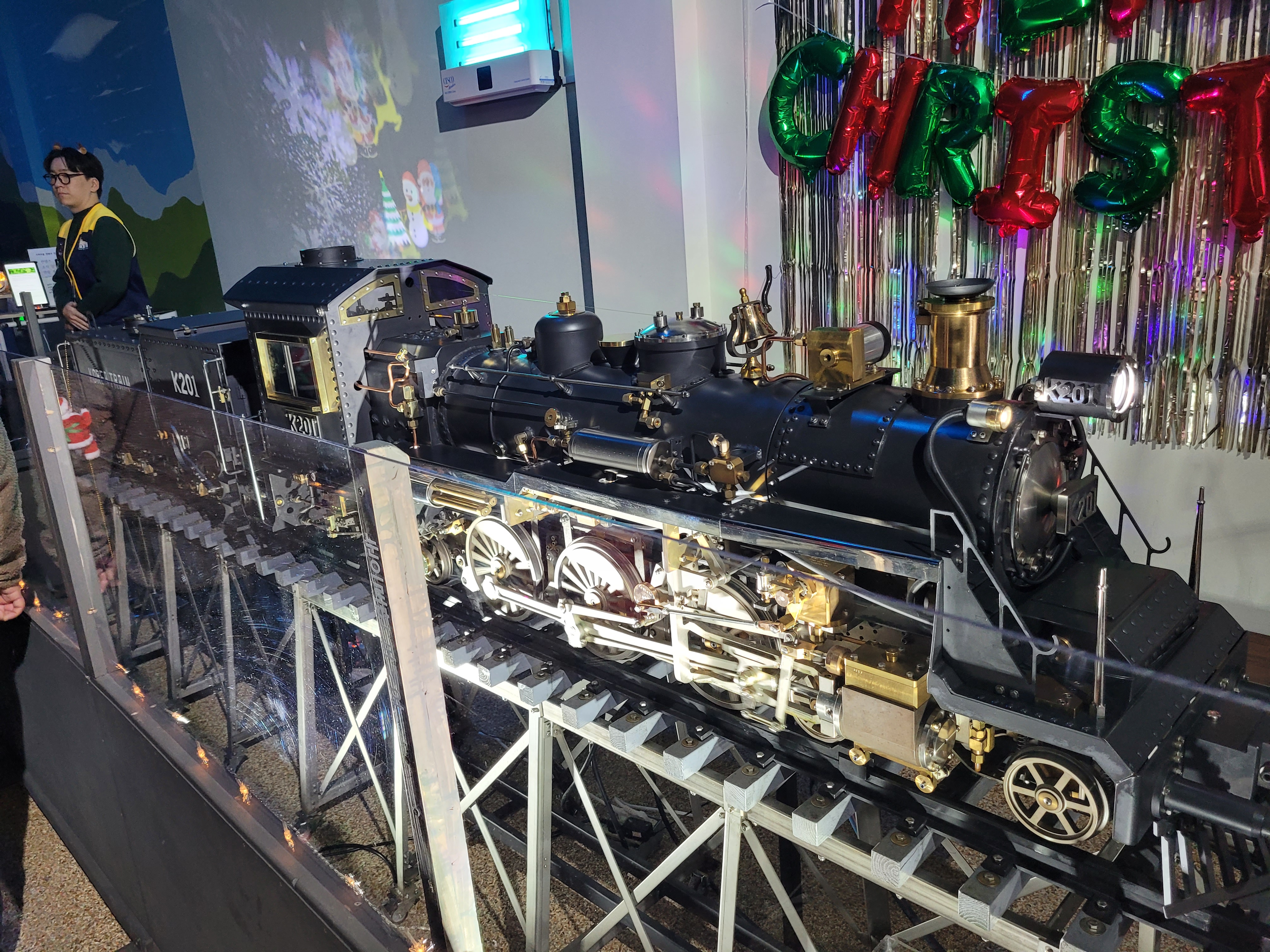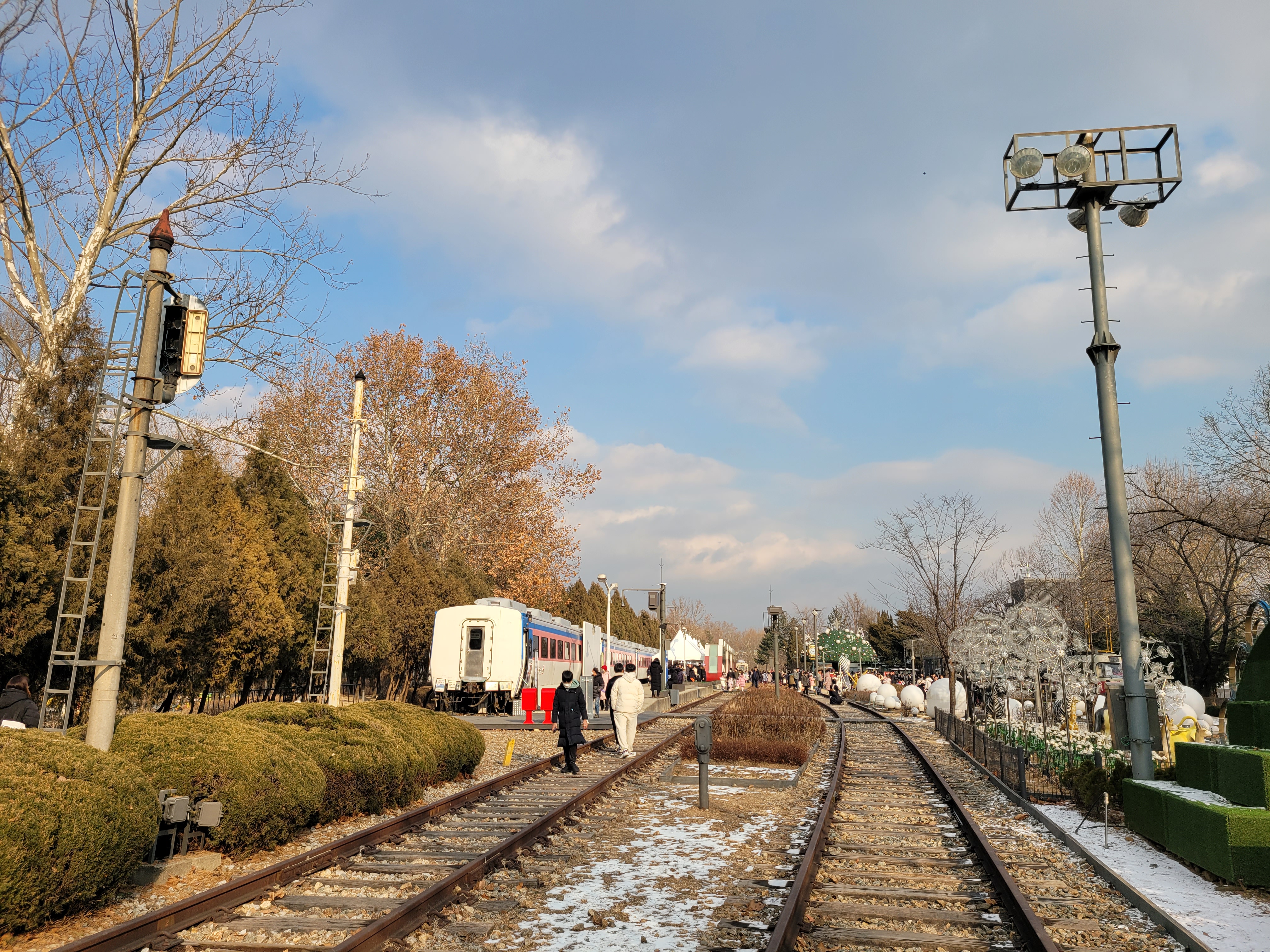 철길과 기차역이 그대로 있으며 철길 곳곳에 크리스마스 야경 분위기