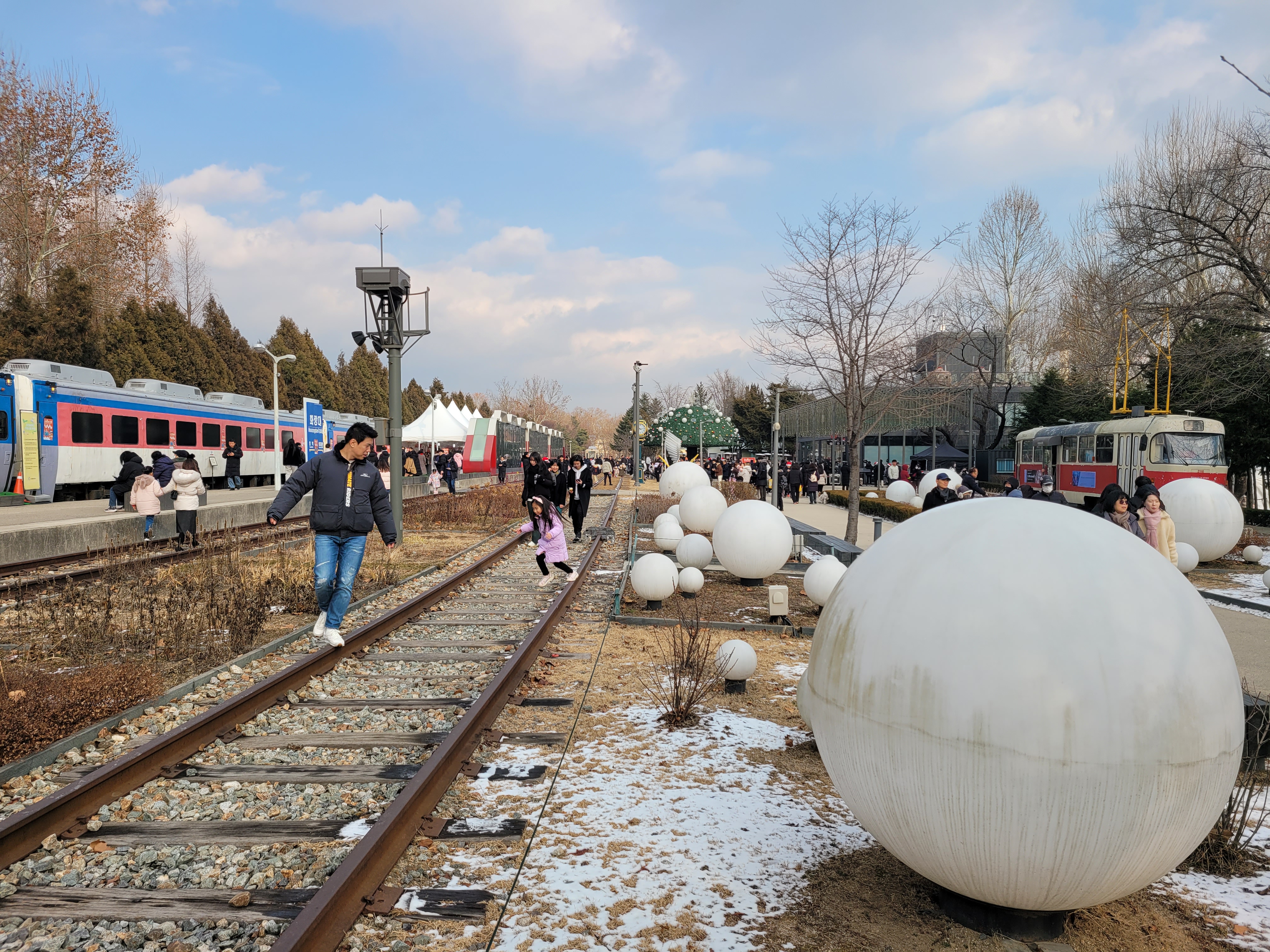 낼 불빛 장식들이 많이 들어섰네요. 그리고 여러 종류의 열차들이 세워져서
