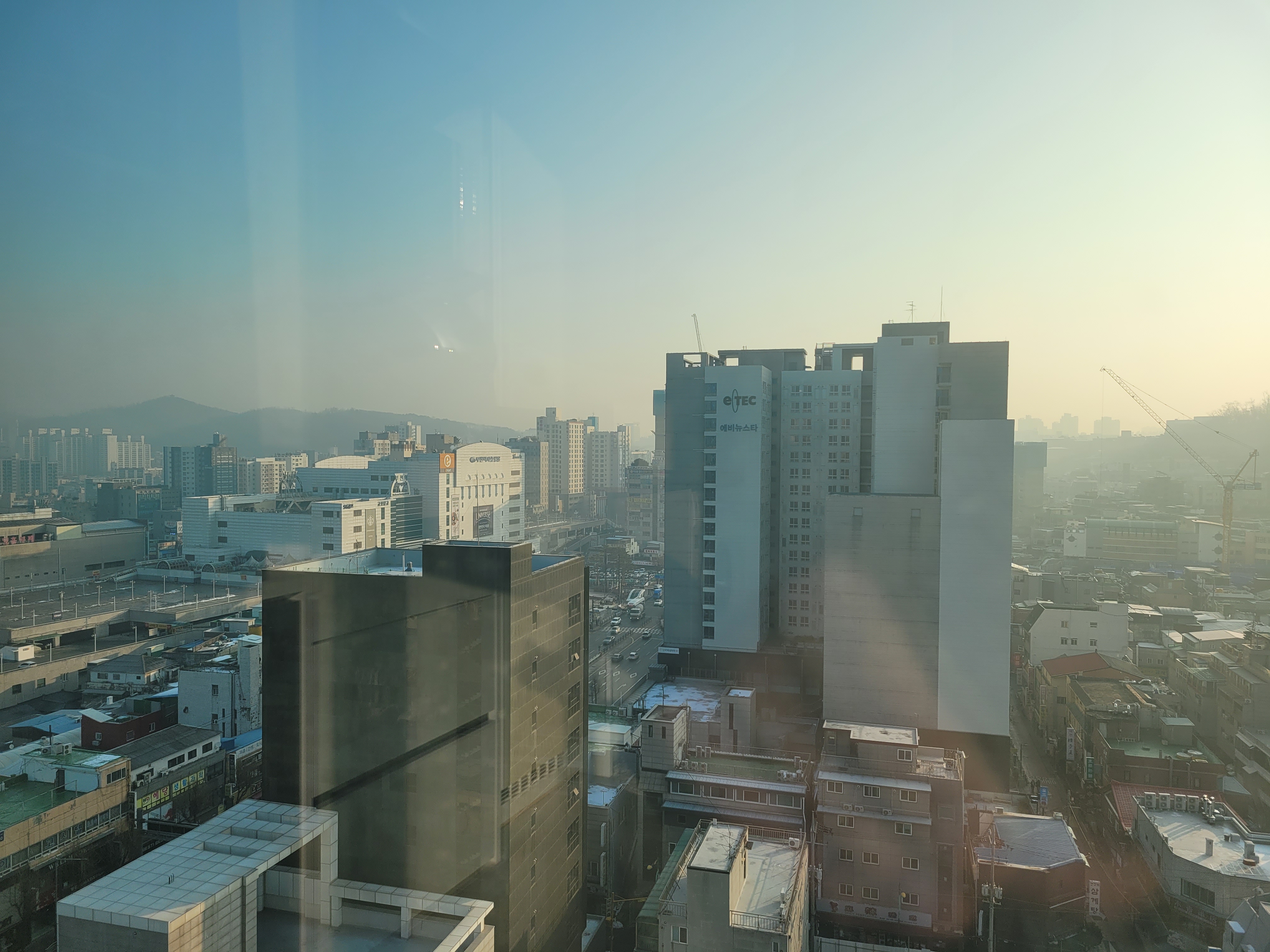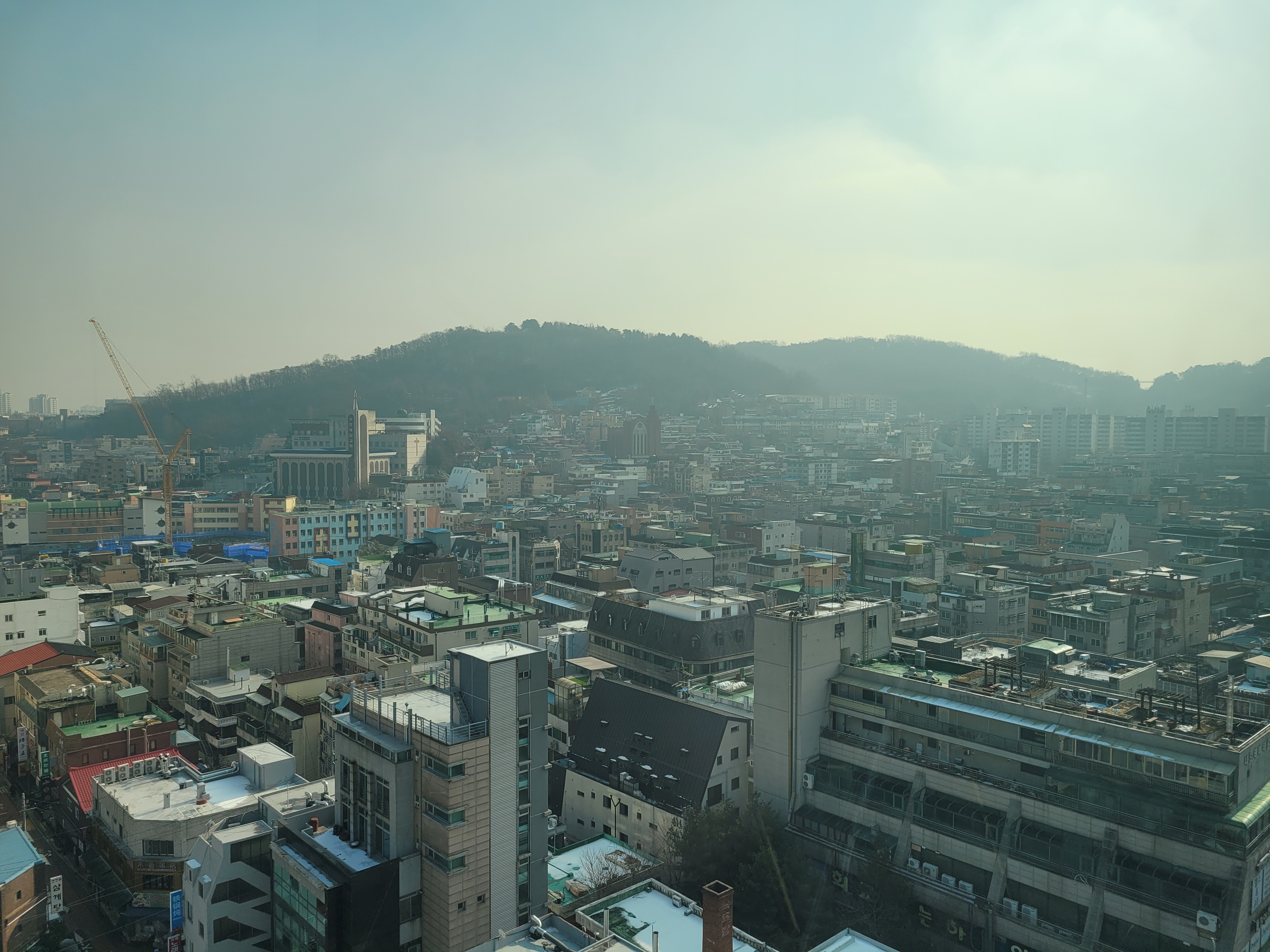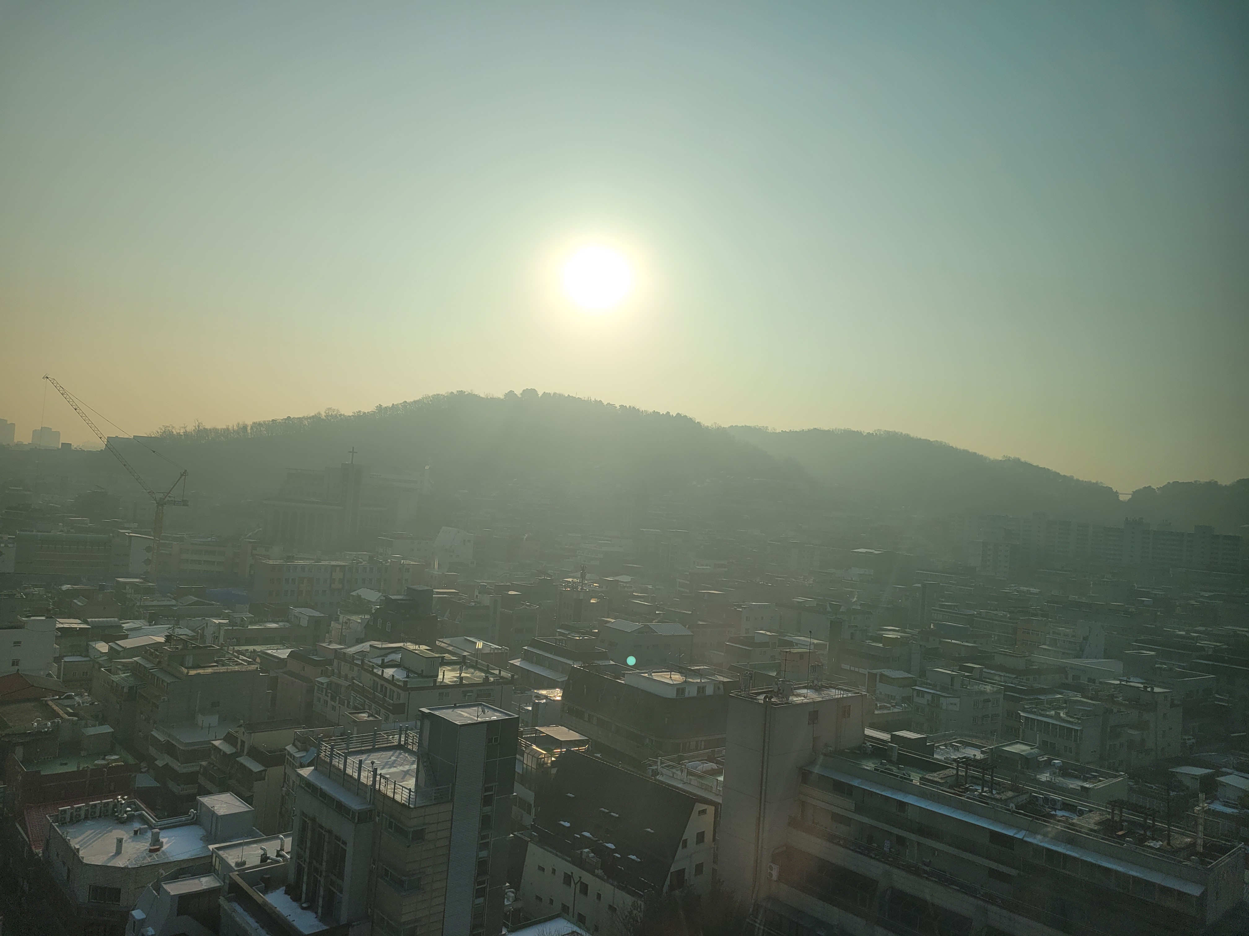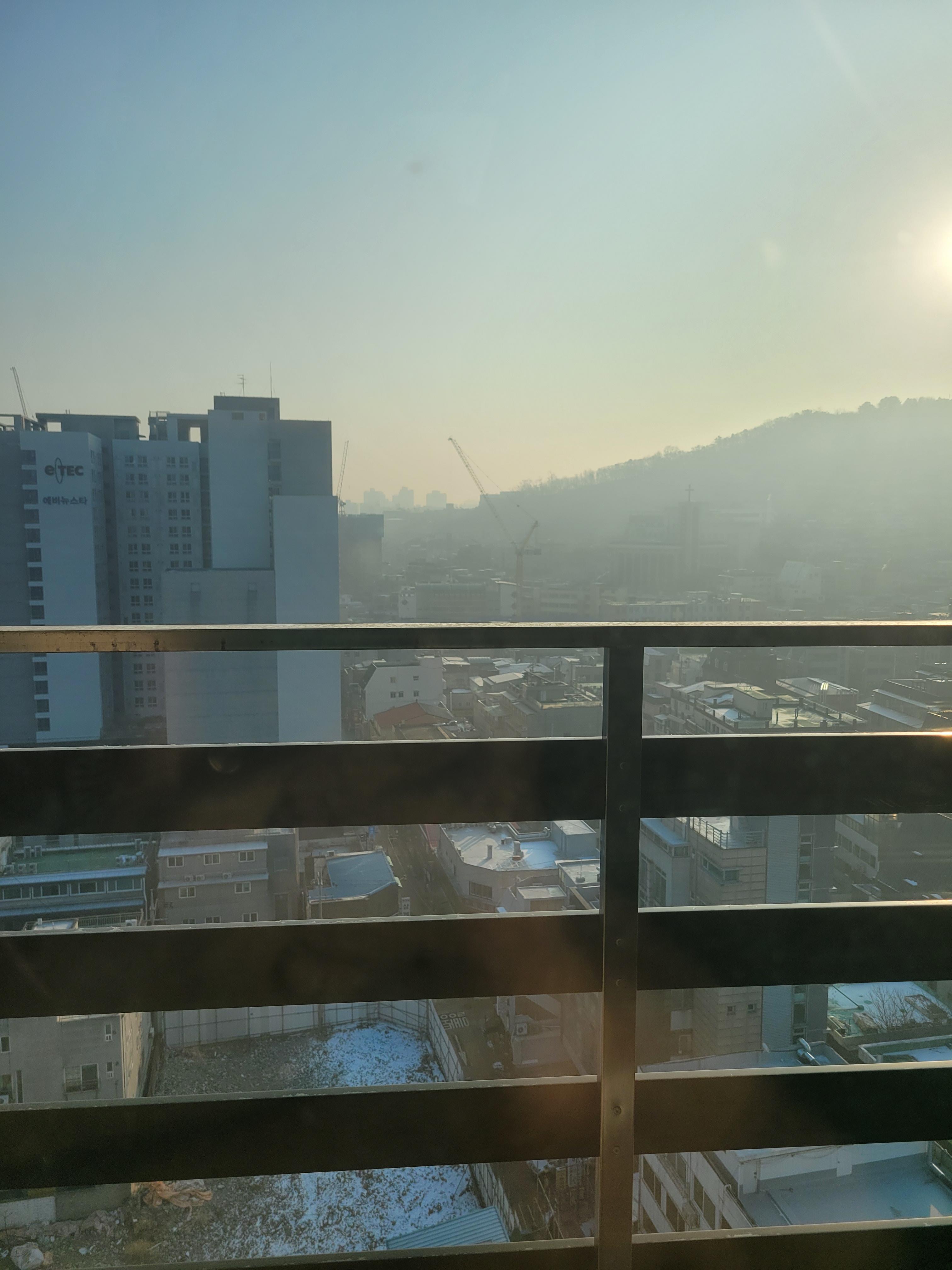 오늘 아침 출근준비하면서 집앞 풍경을 봤는데 아주 뿌옇네요.