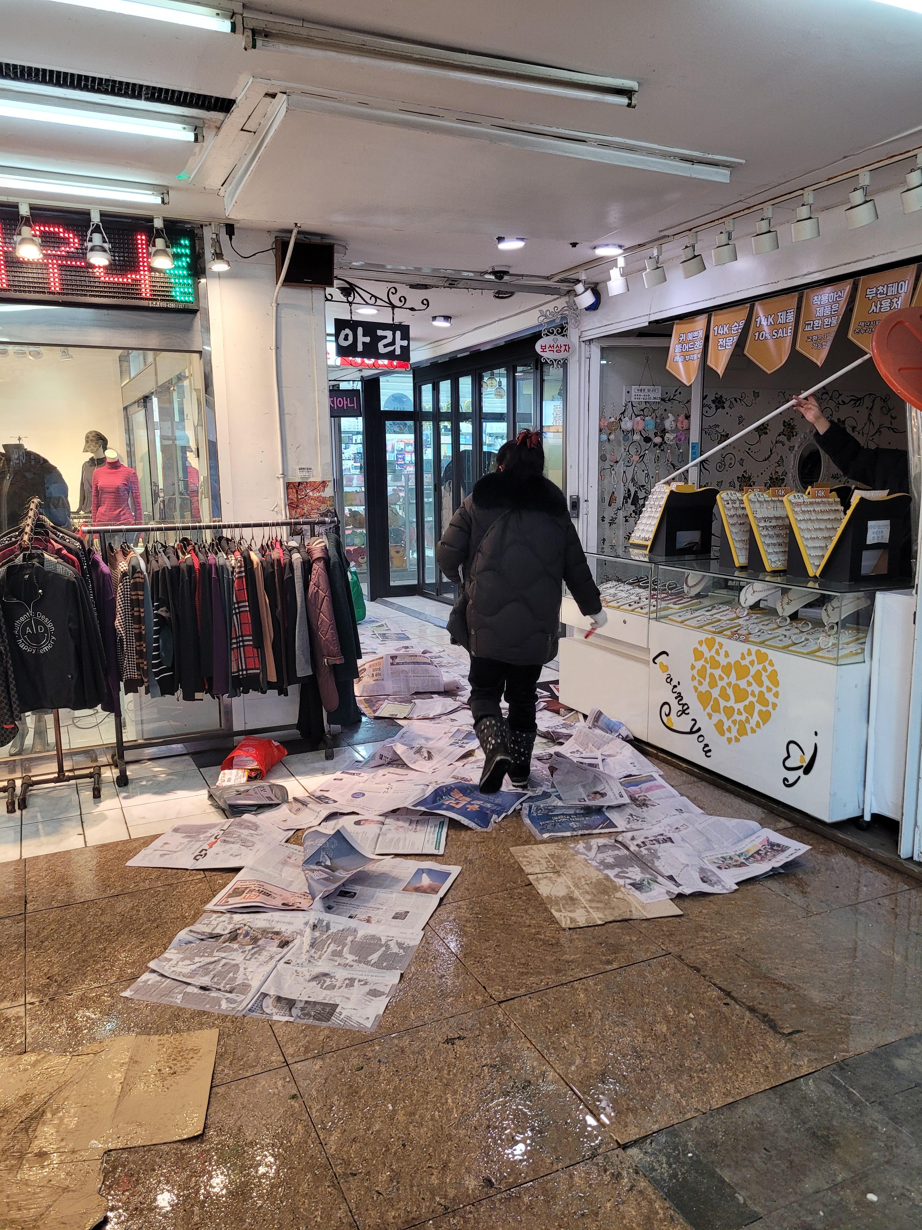 건물 입구 바닥이 아주 물바다가 되고 난리도 아니었네요 ㄷㄷㄷㄷ