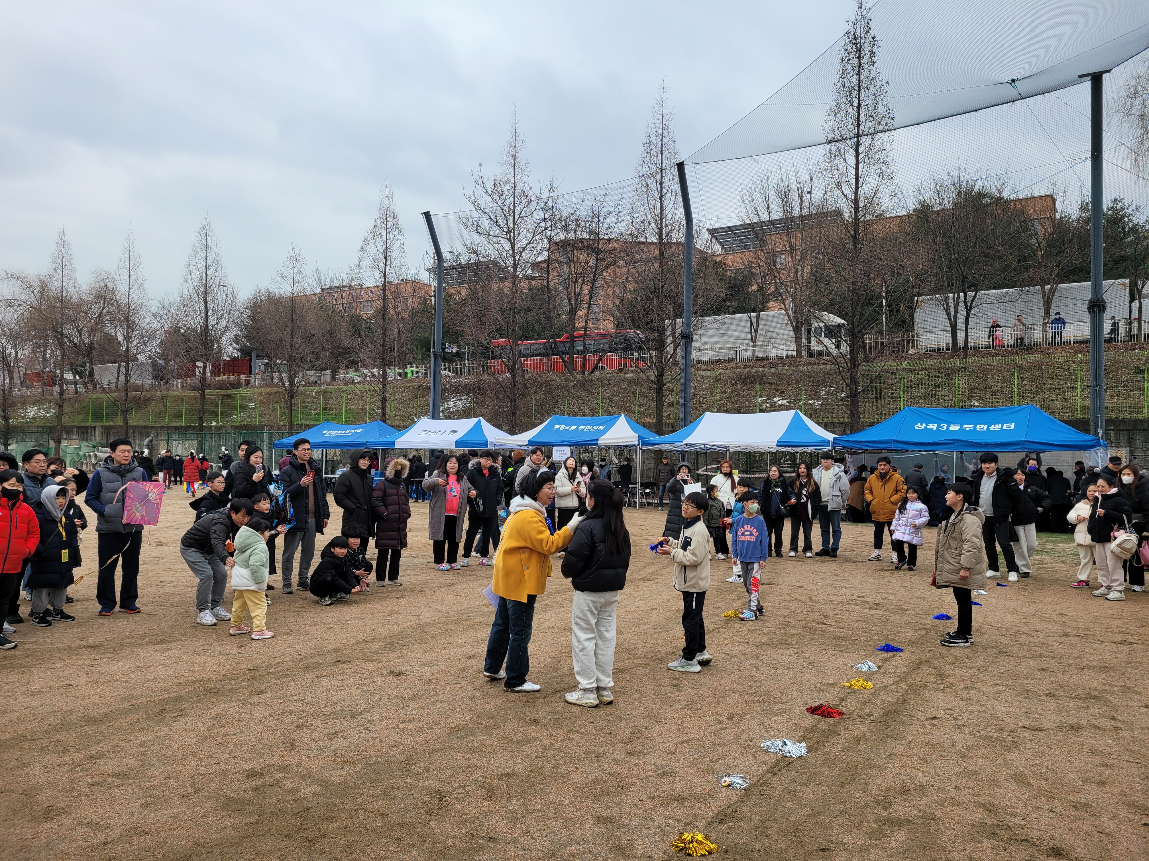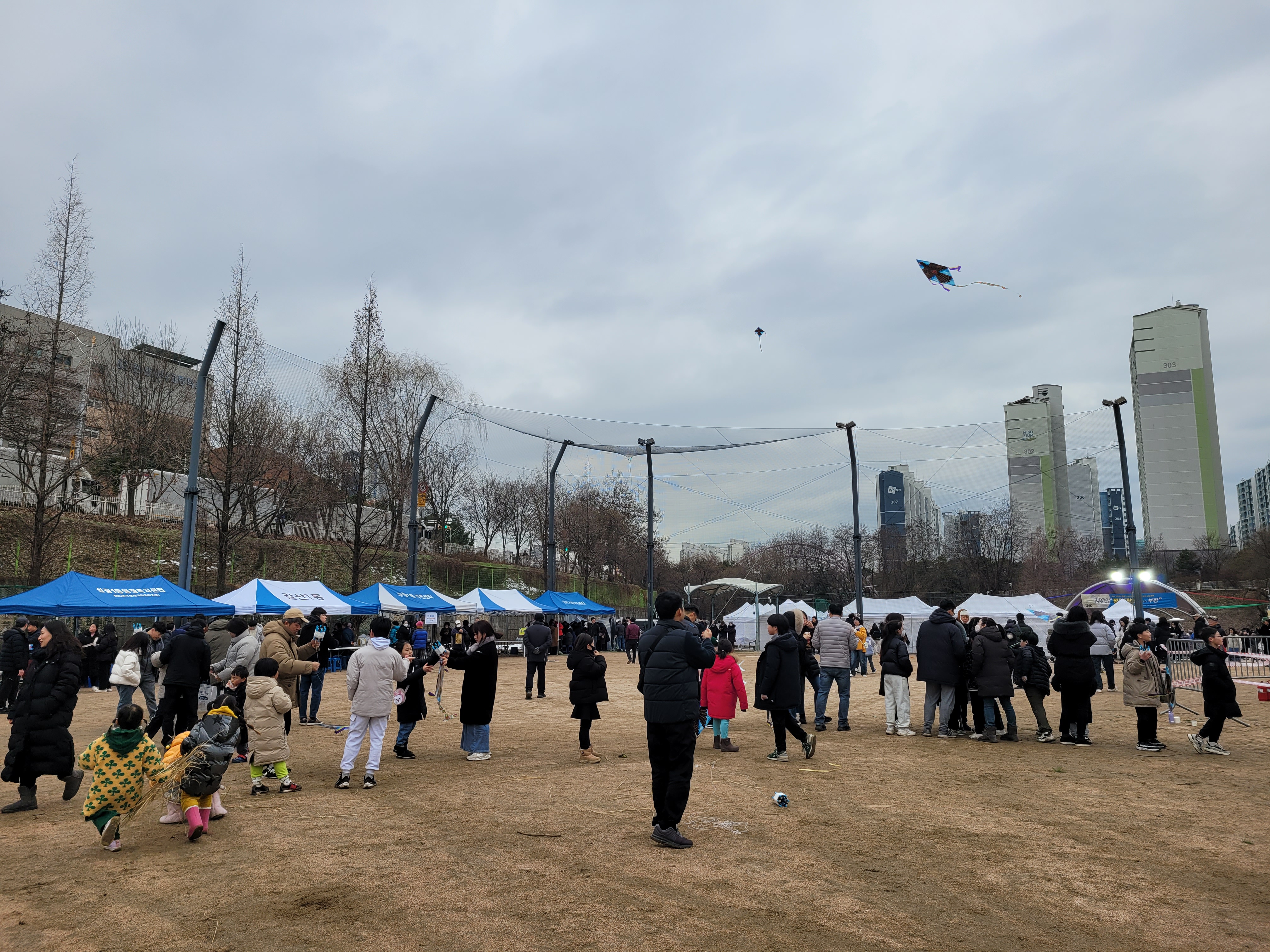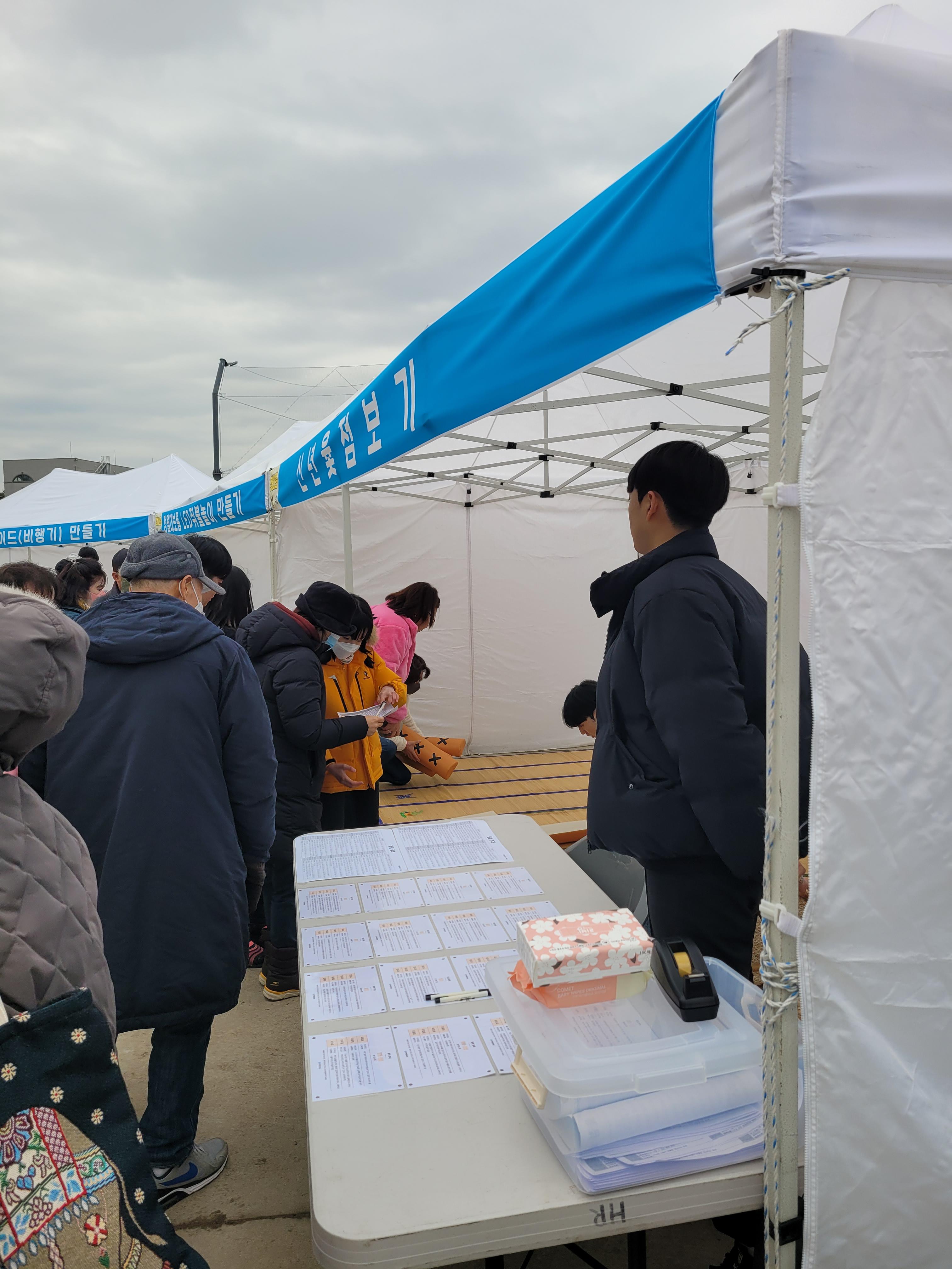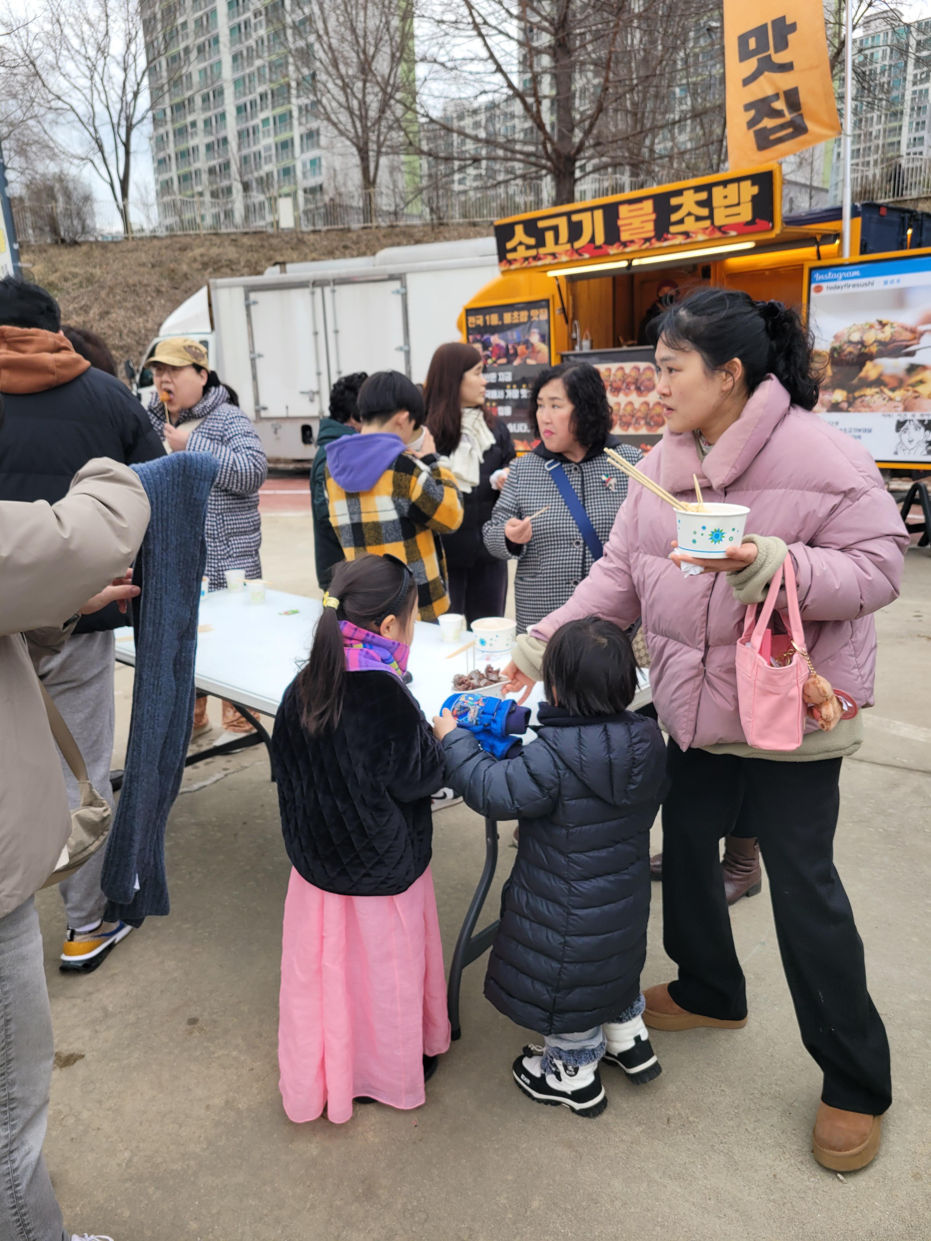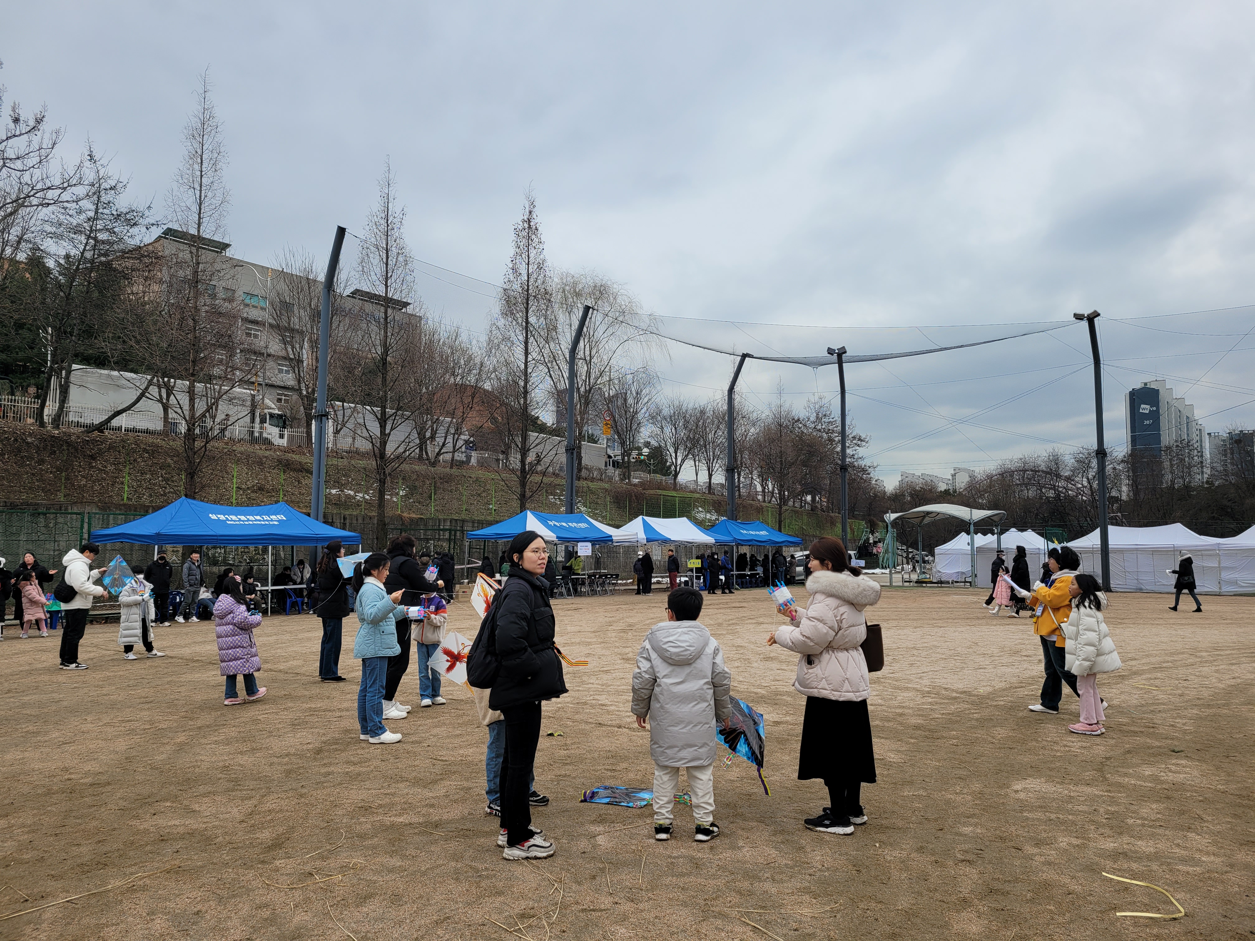 많은 사람들이 연날리기도 하고 제기차기도 하고 각종 체험행사도 하고 먹거리도 먹는