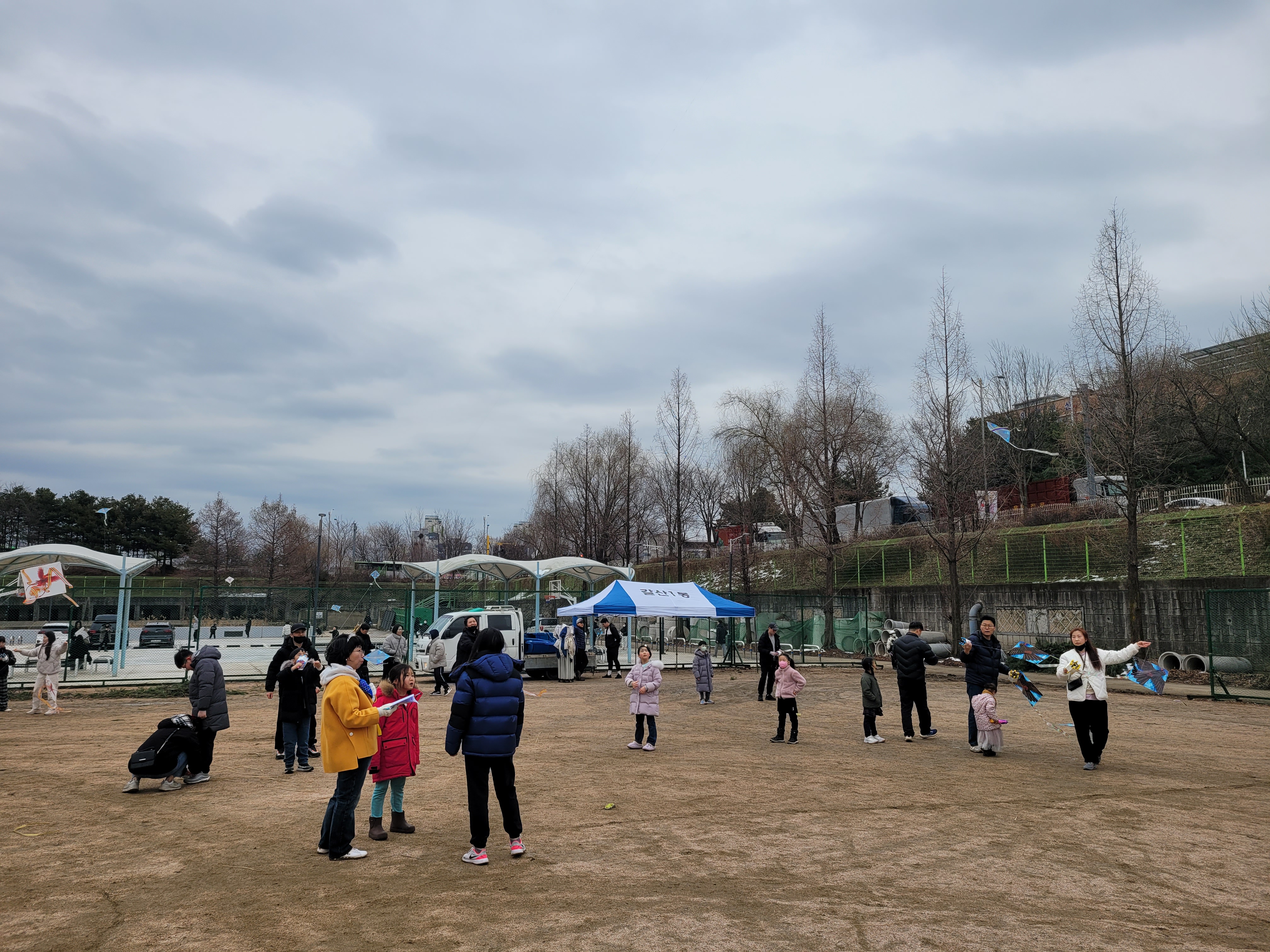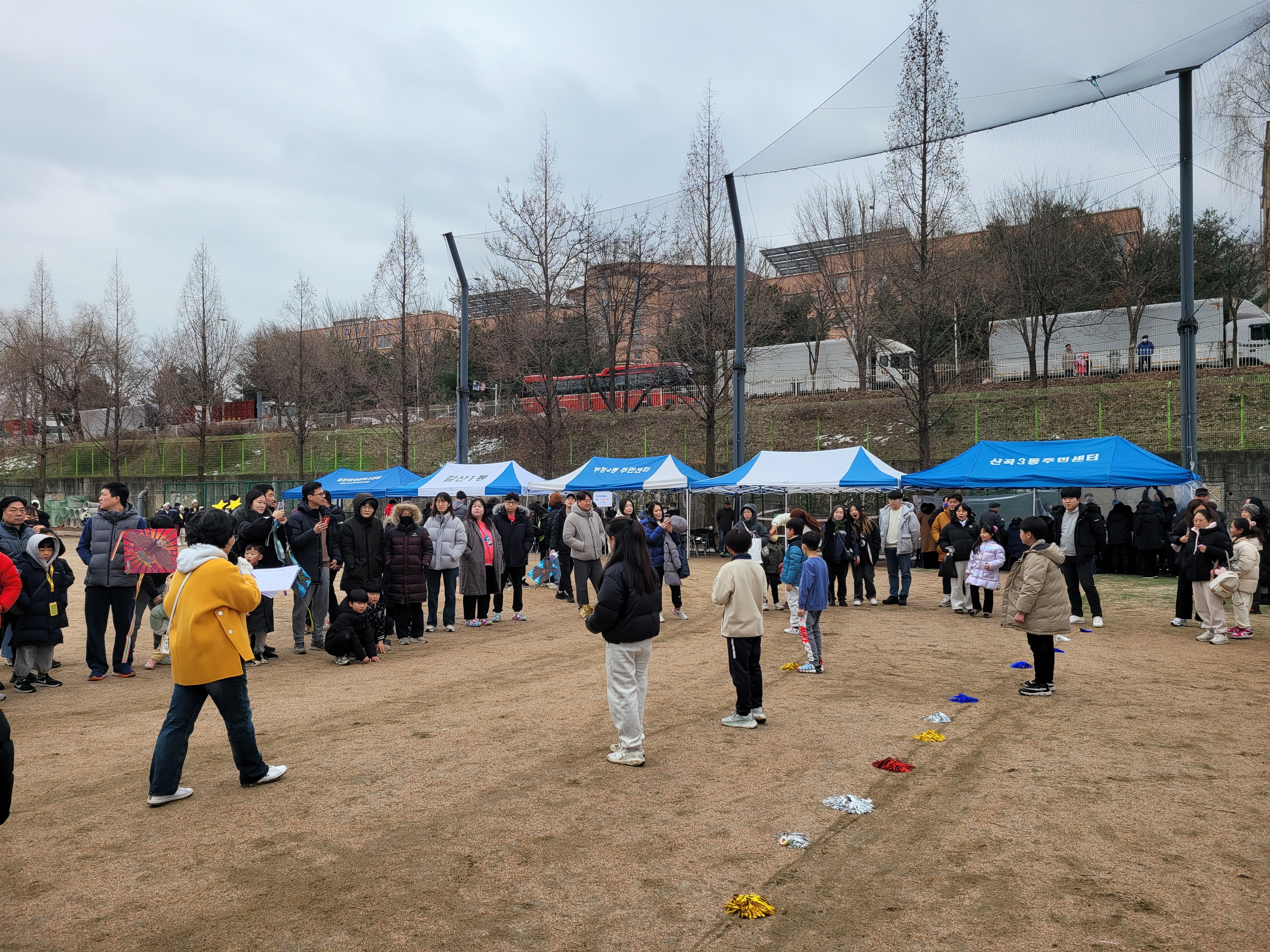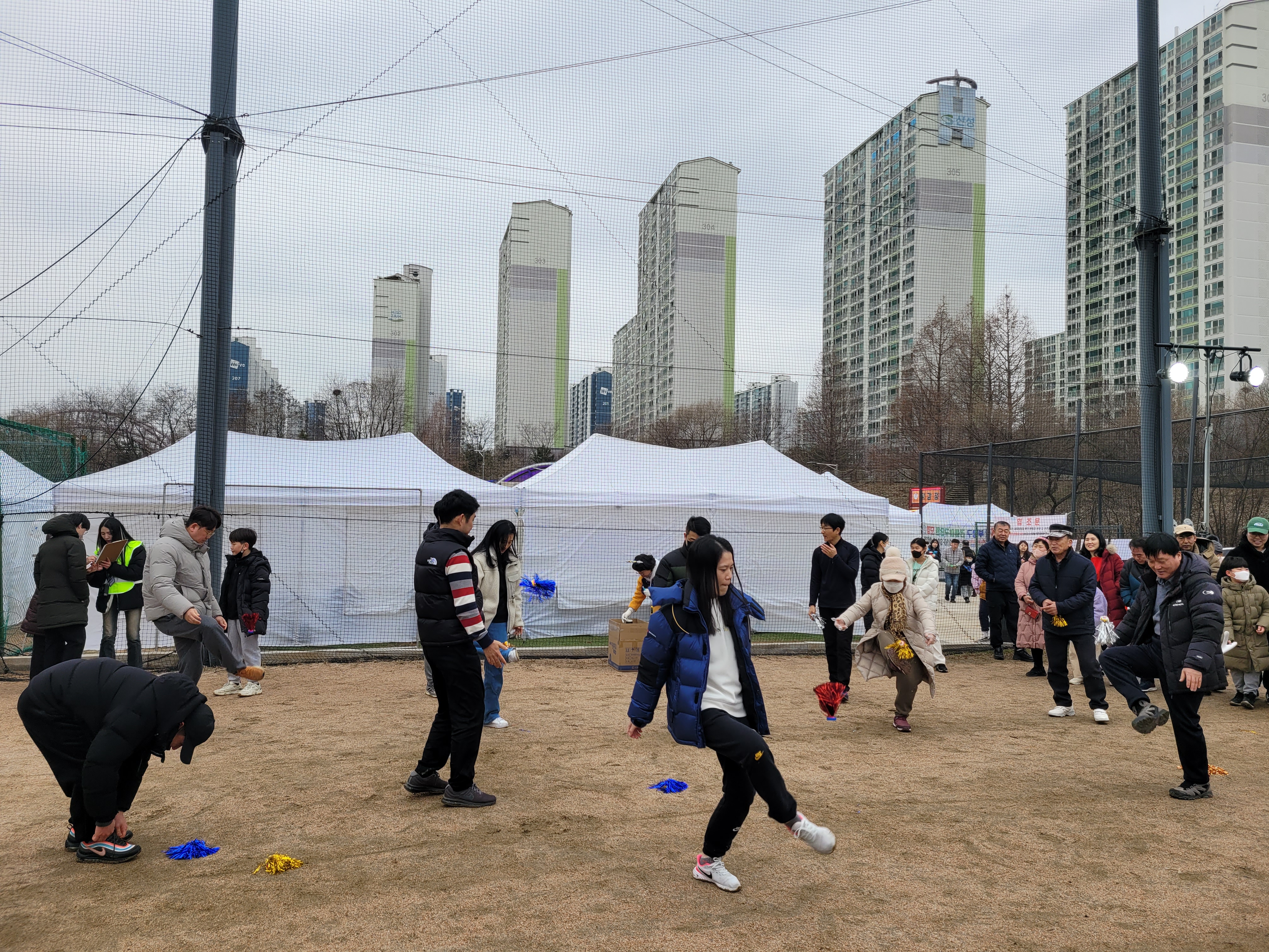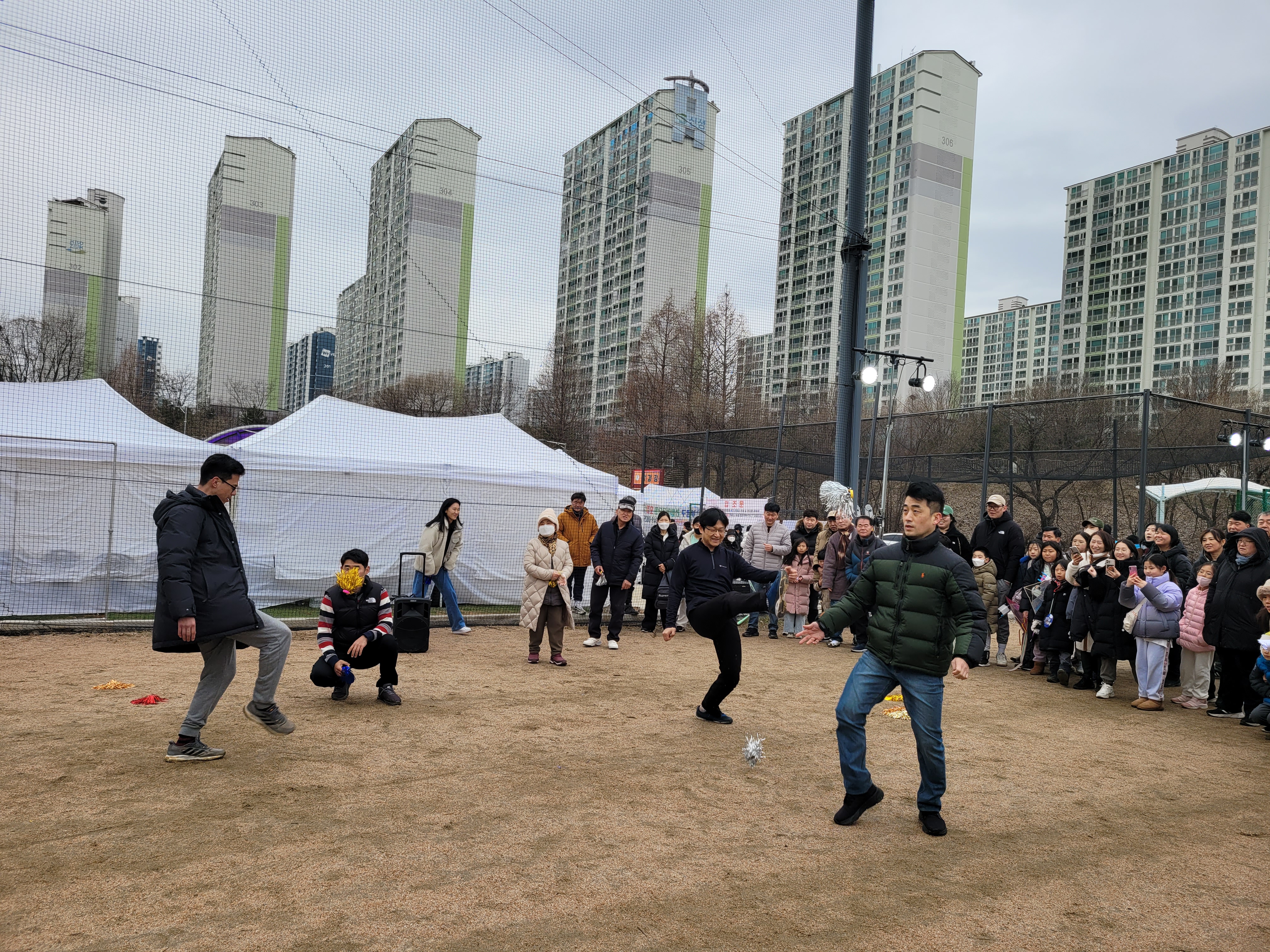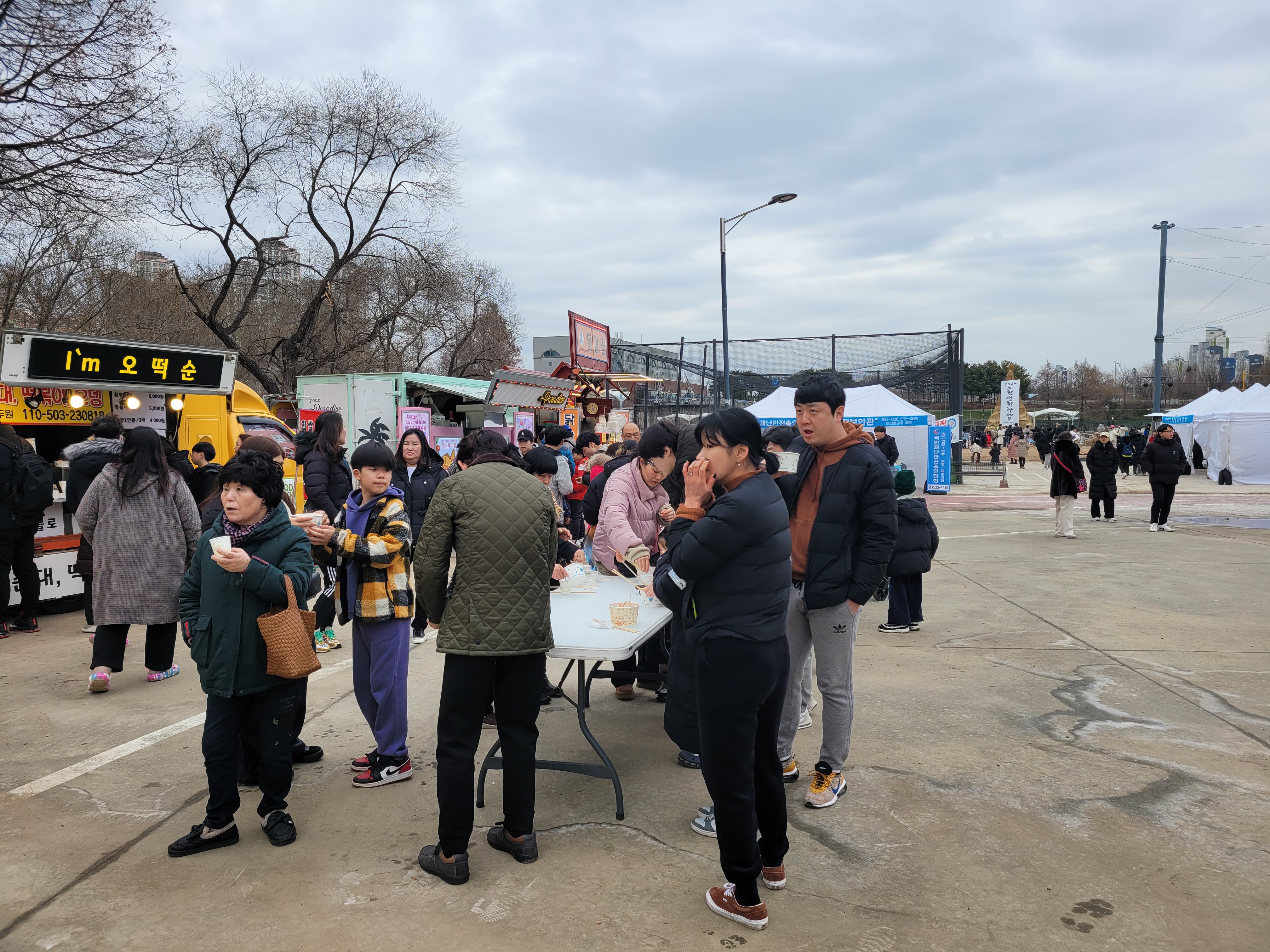 많은 사람들이 연날리기도 하고 제기차기도 하고 각종 체험행사도 하고 먹거리도 먹는