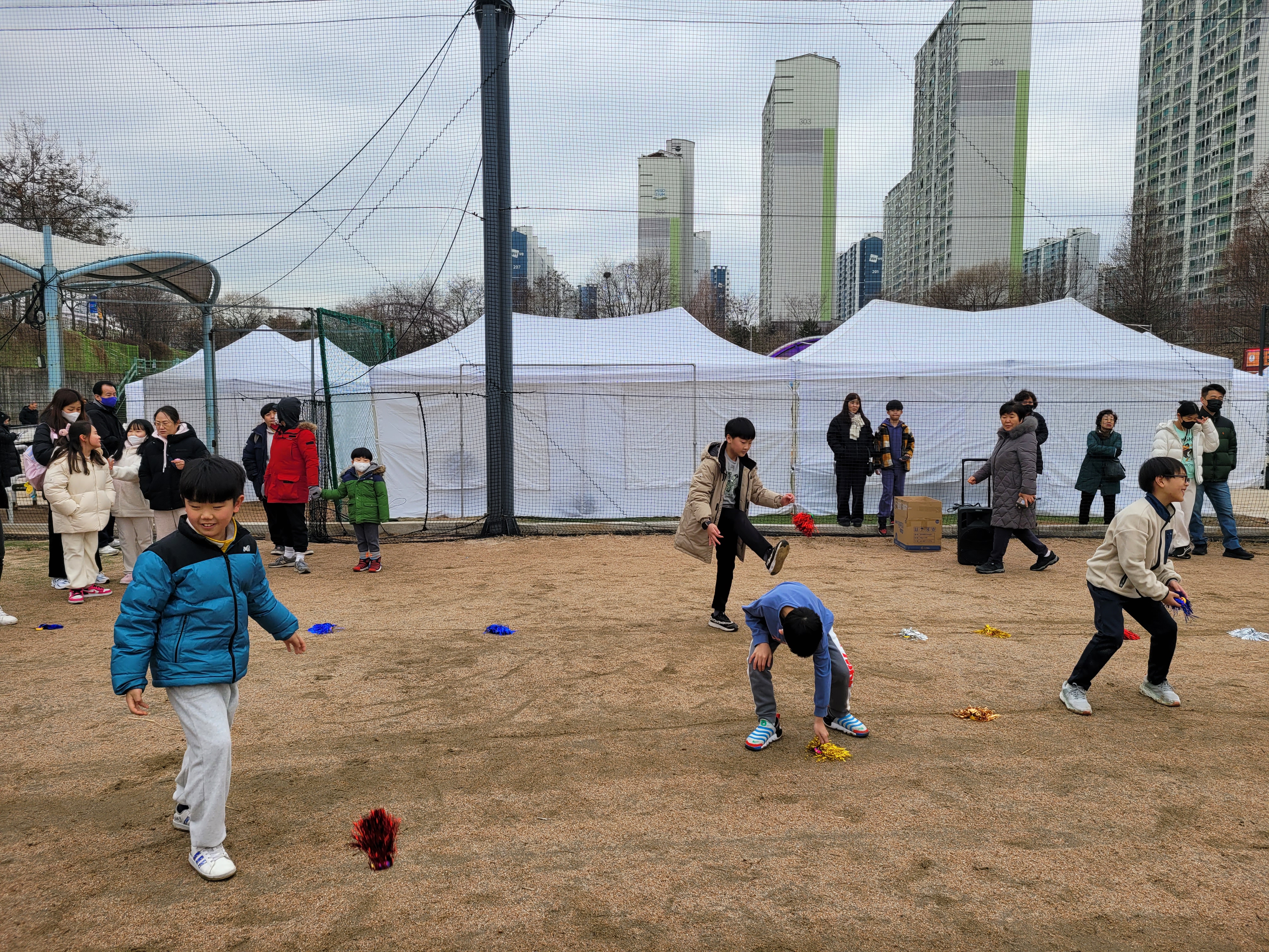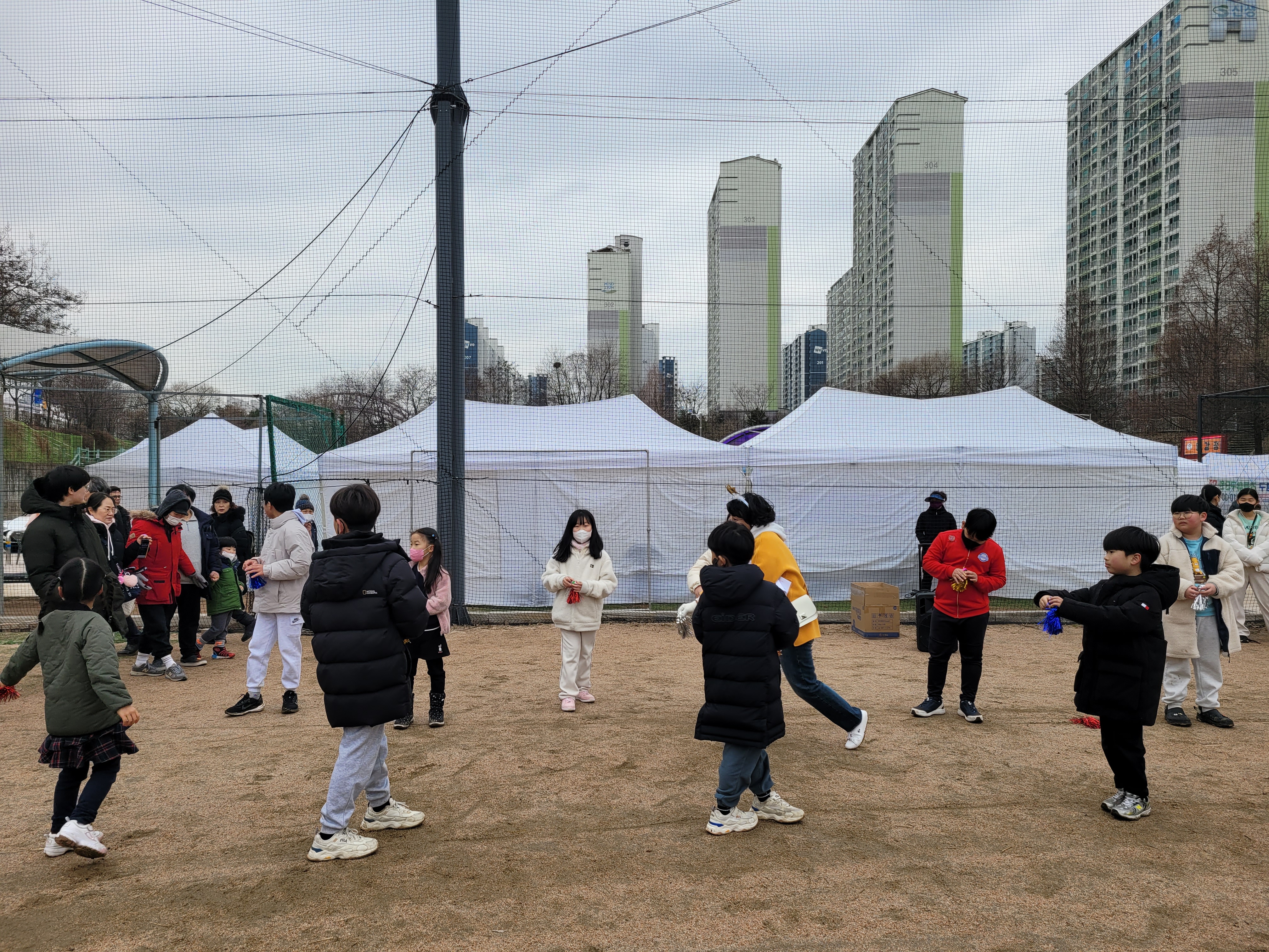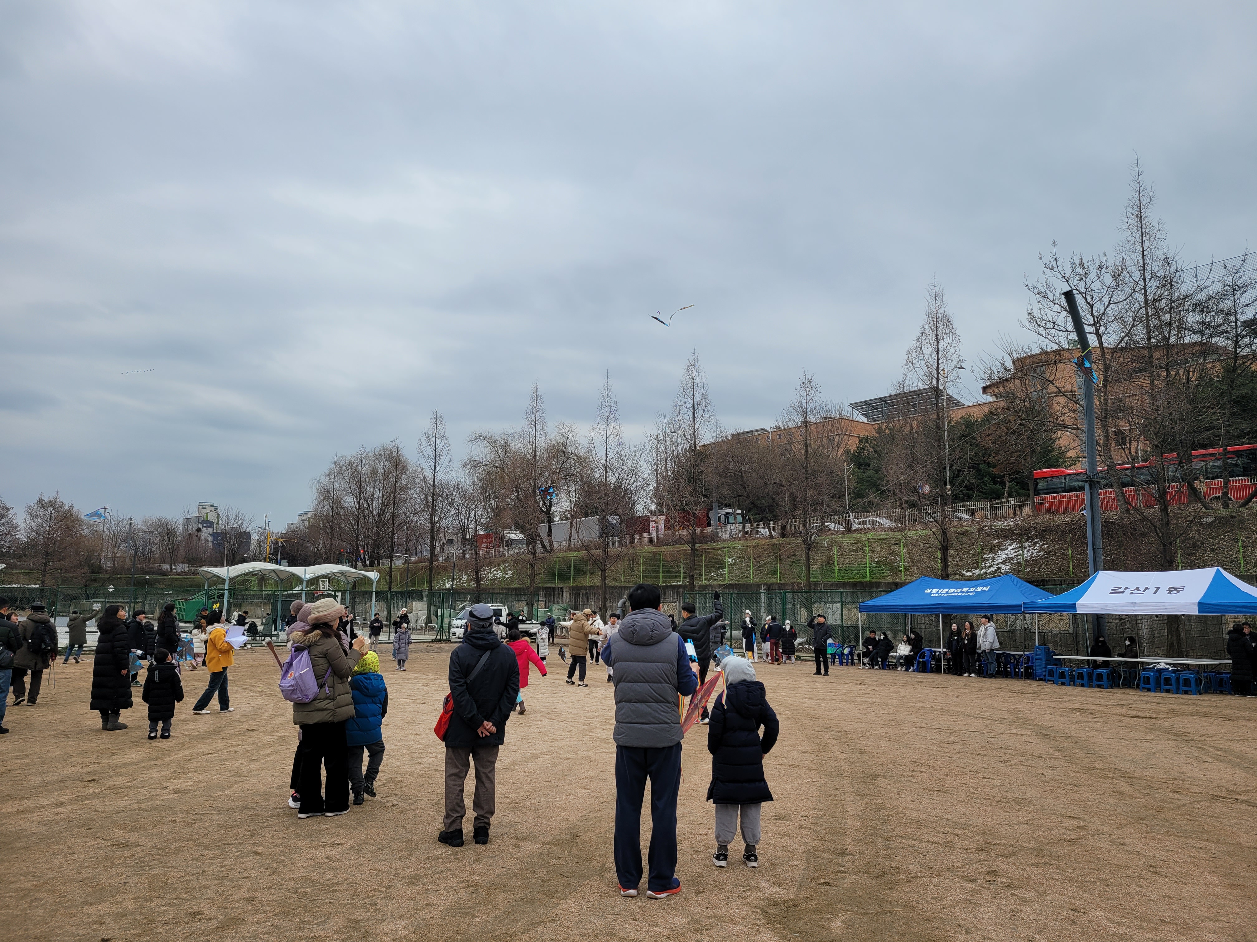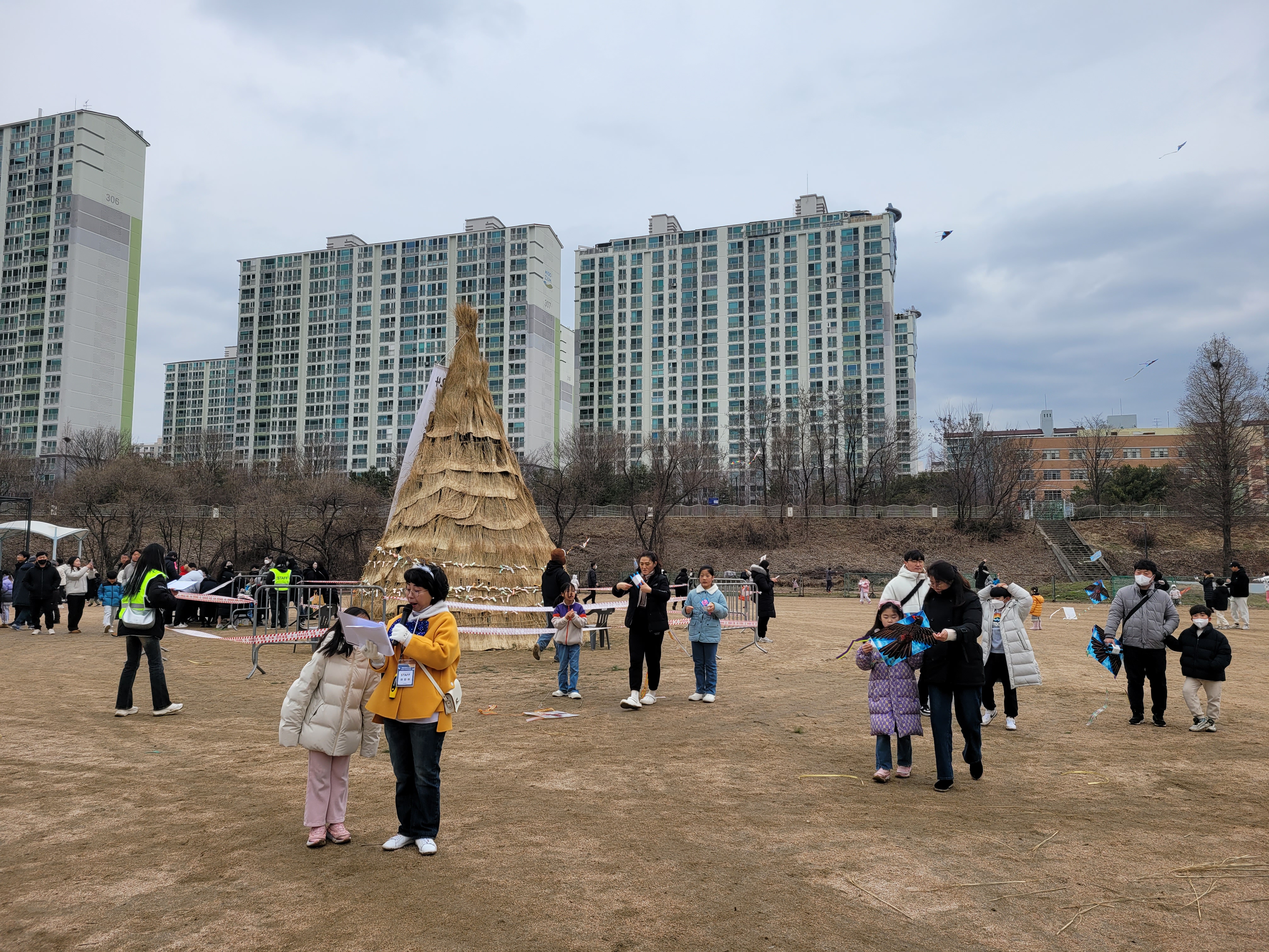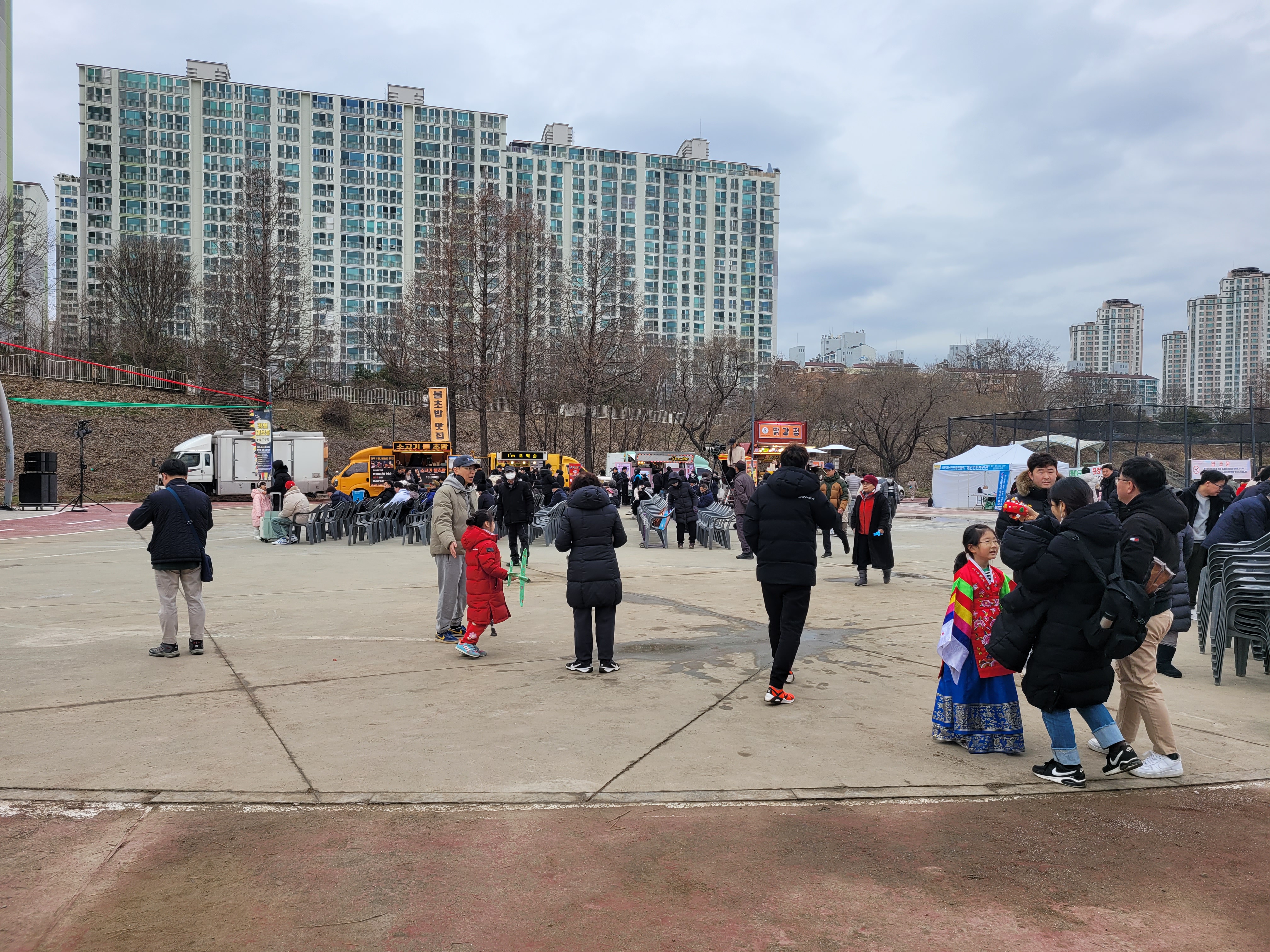 많은 사람들이 연날리기도 하고 제기차기도 하고 각종 체험행사도 하고 먹거리도 먹는