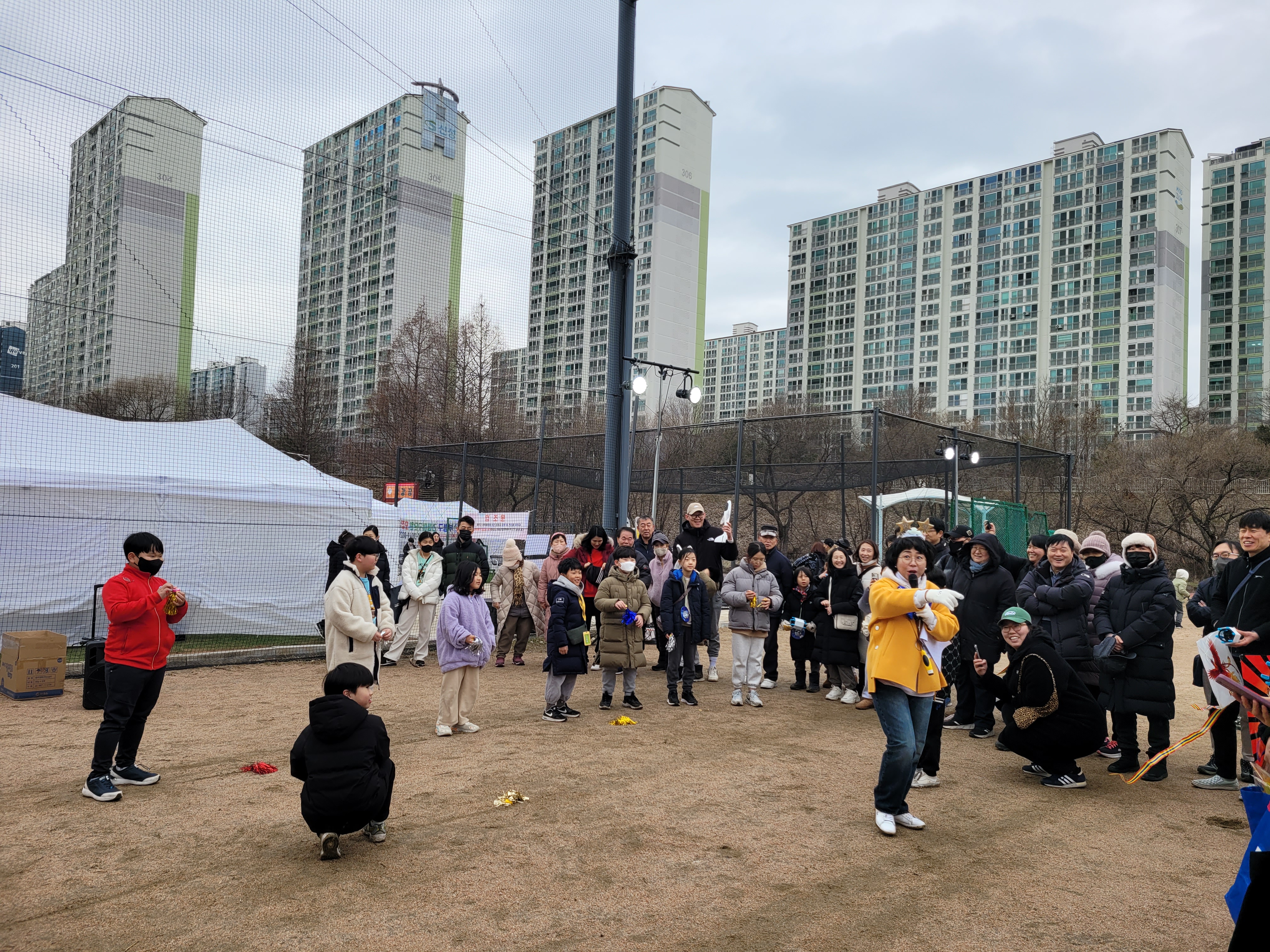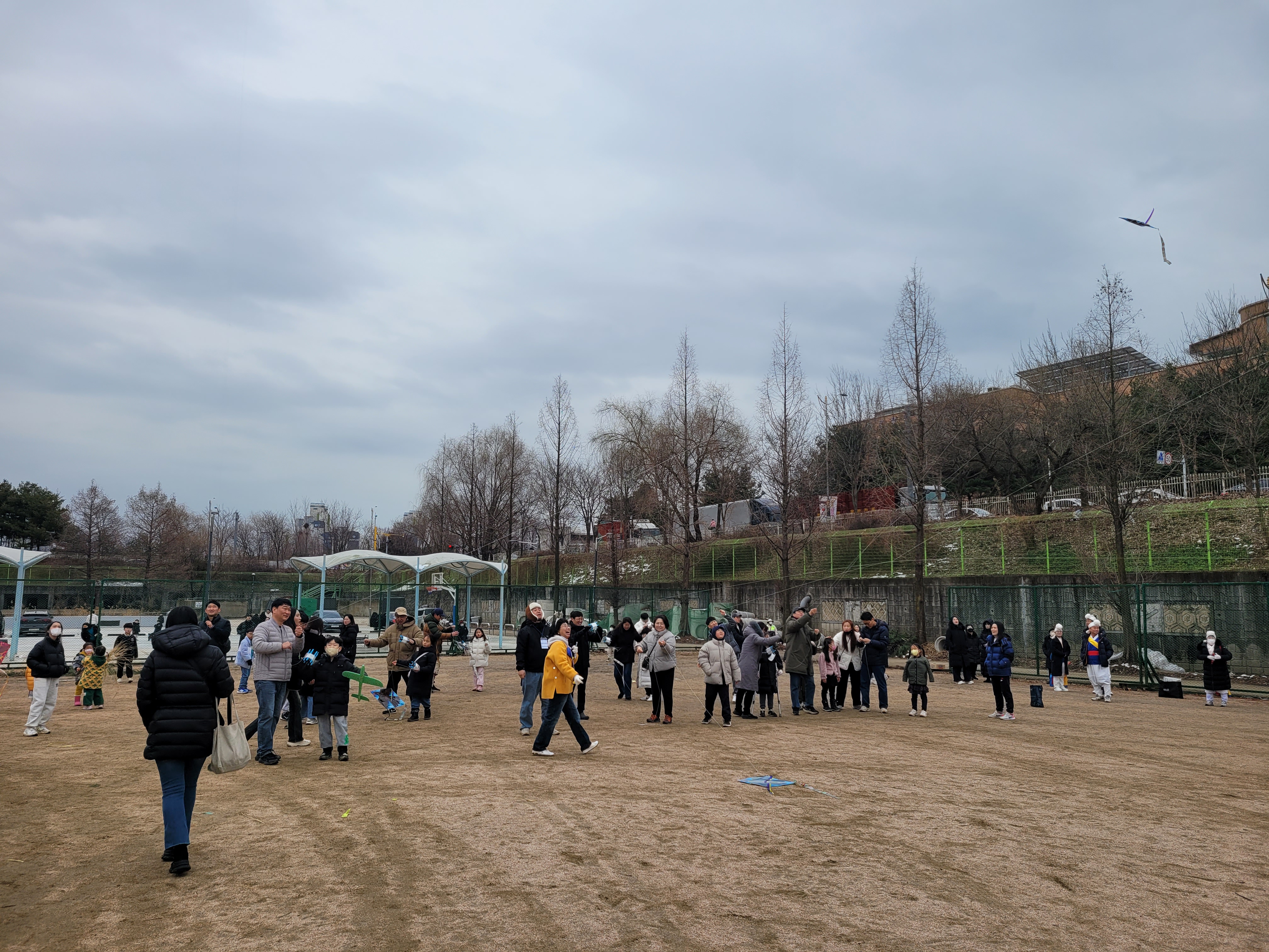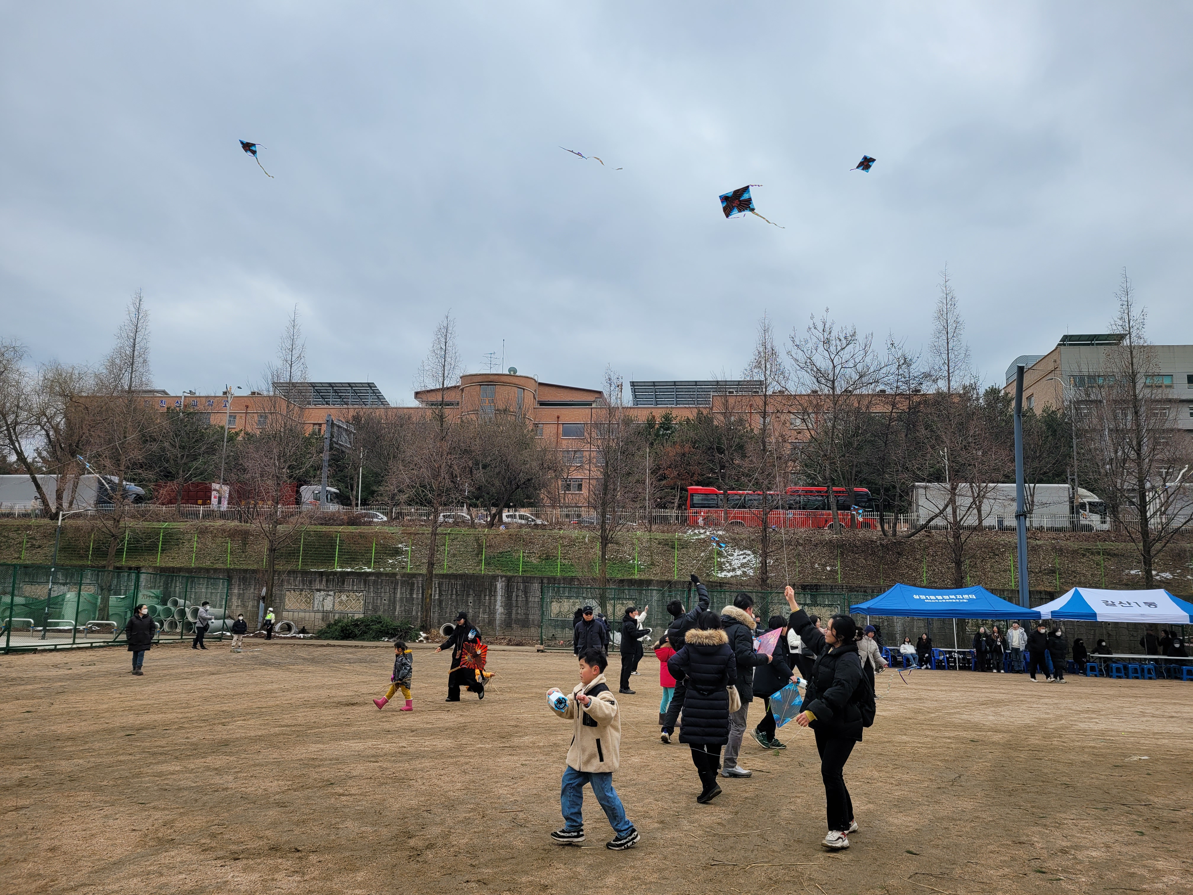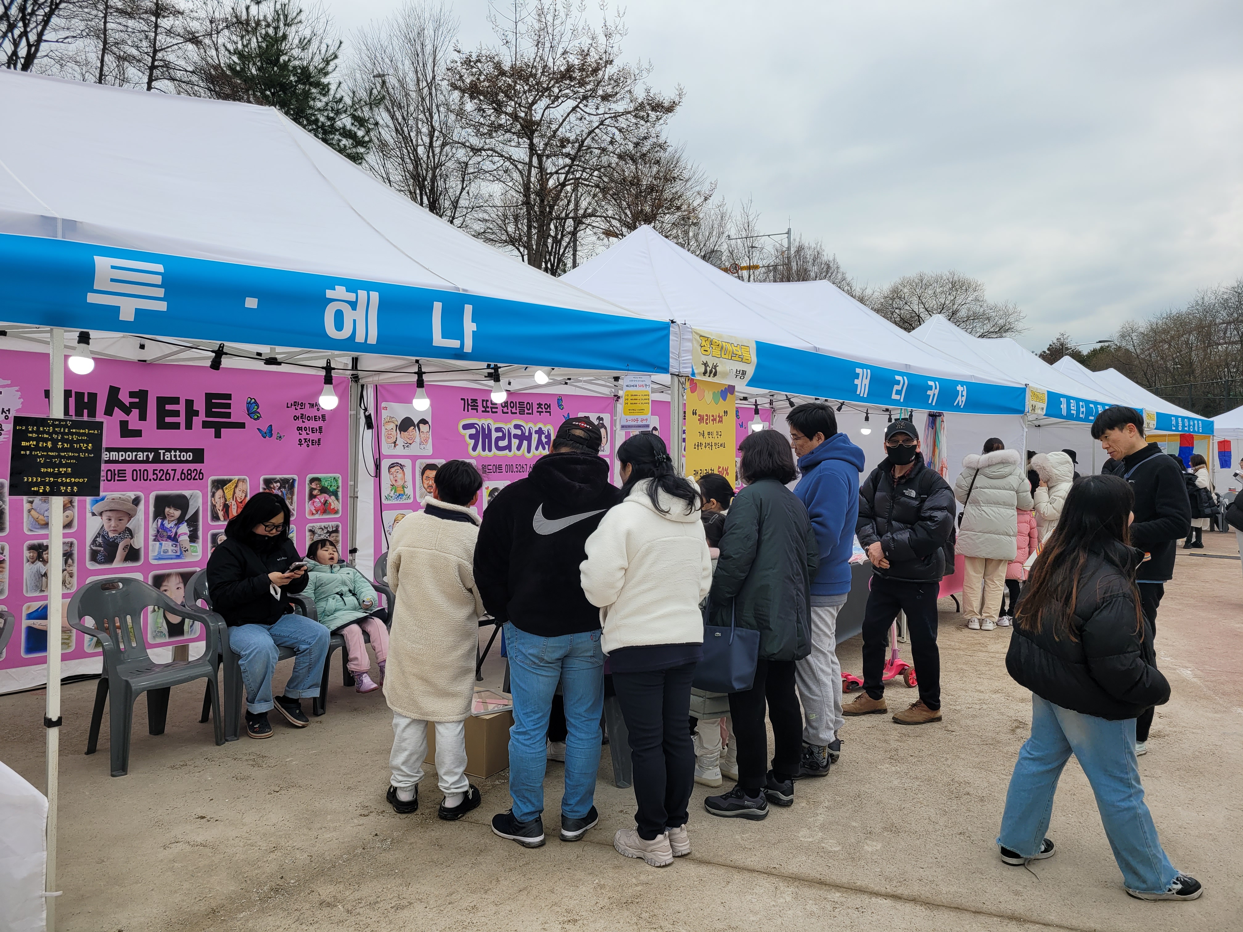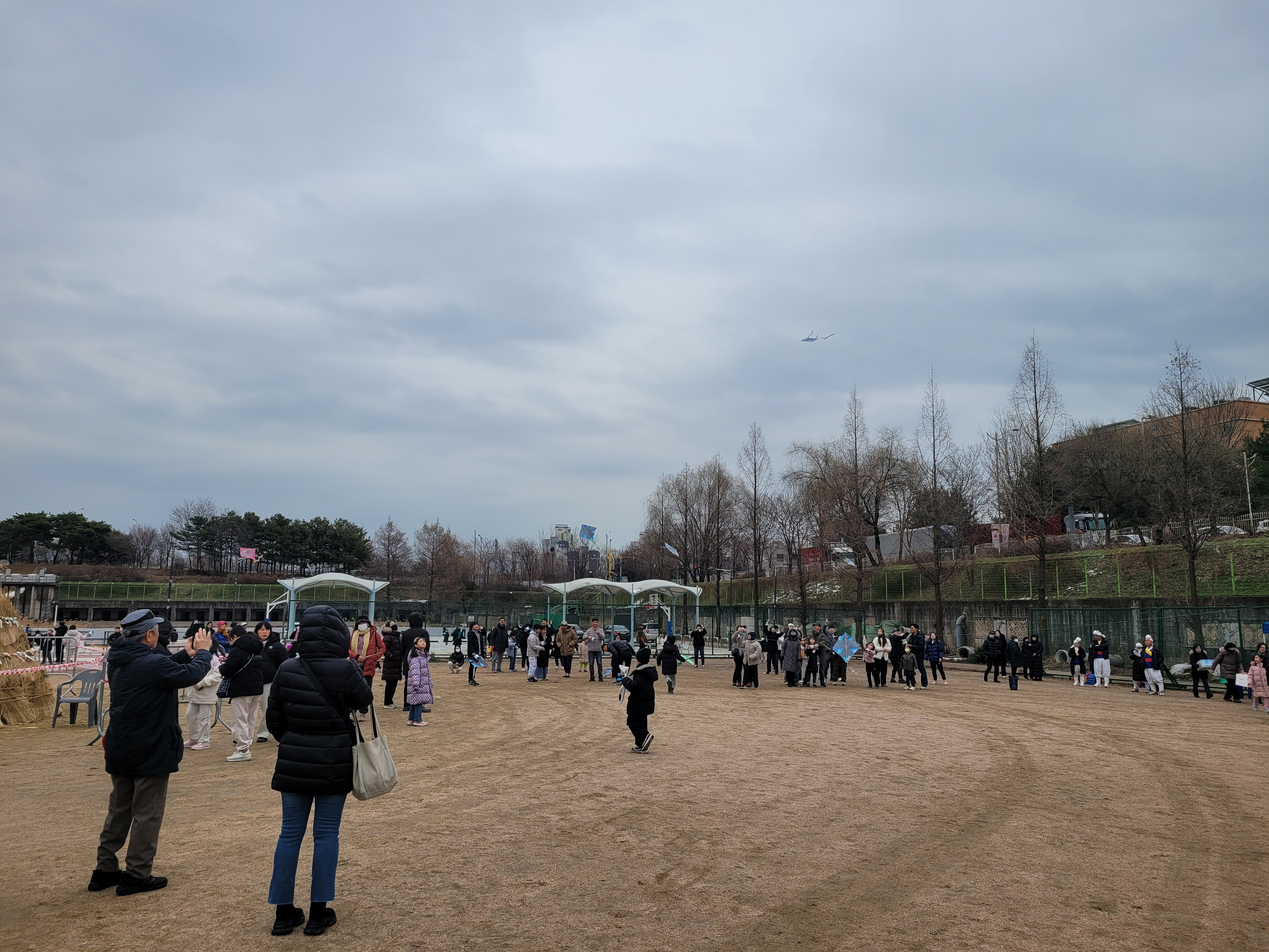 많은 사람들이 연날리기도 하고 제기차기도 하고 각종 체험행사도 하고 먹거리도 먹는