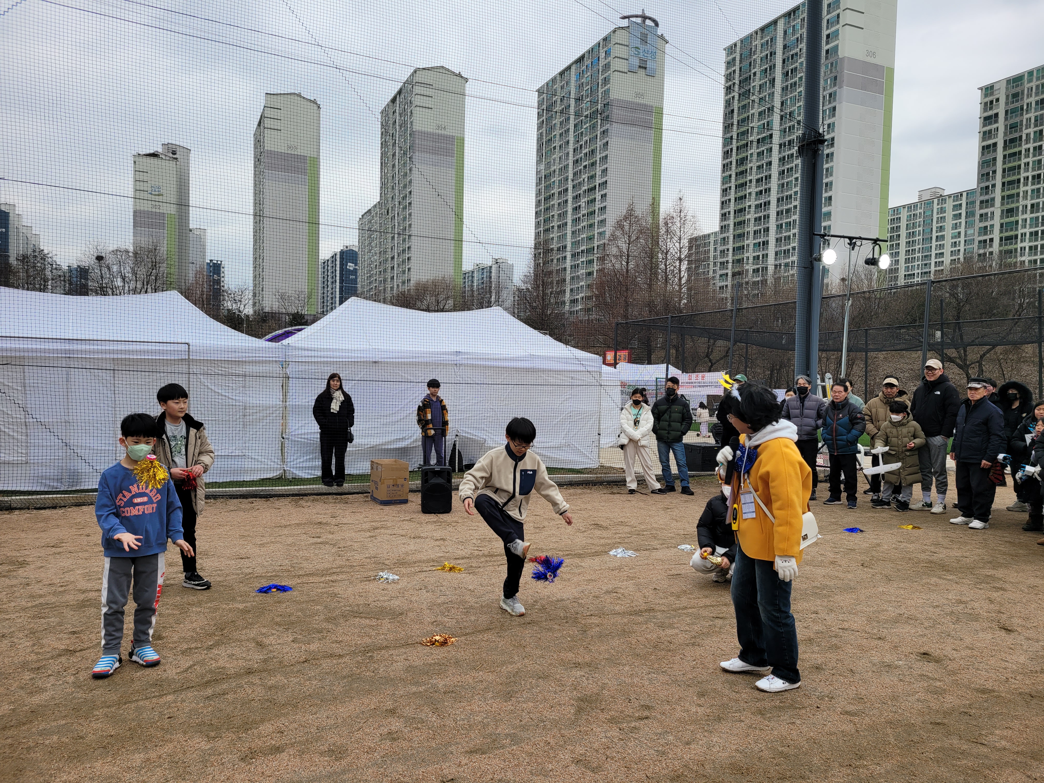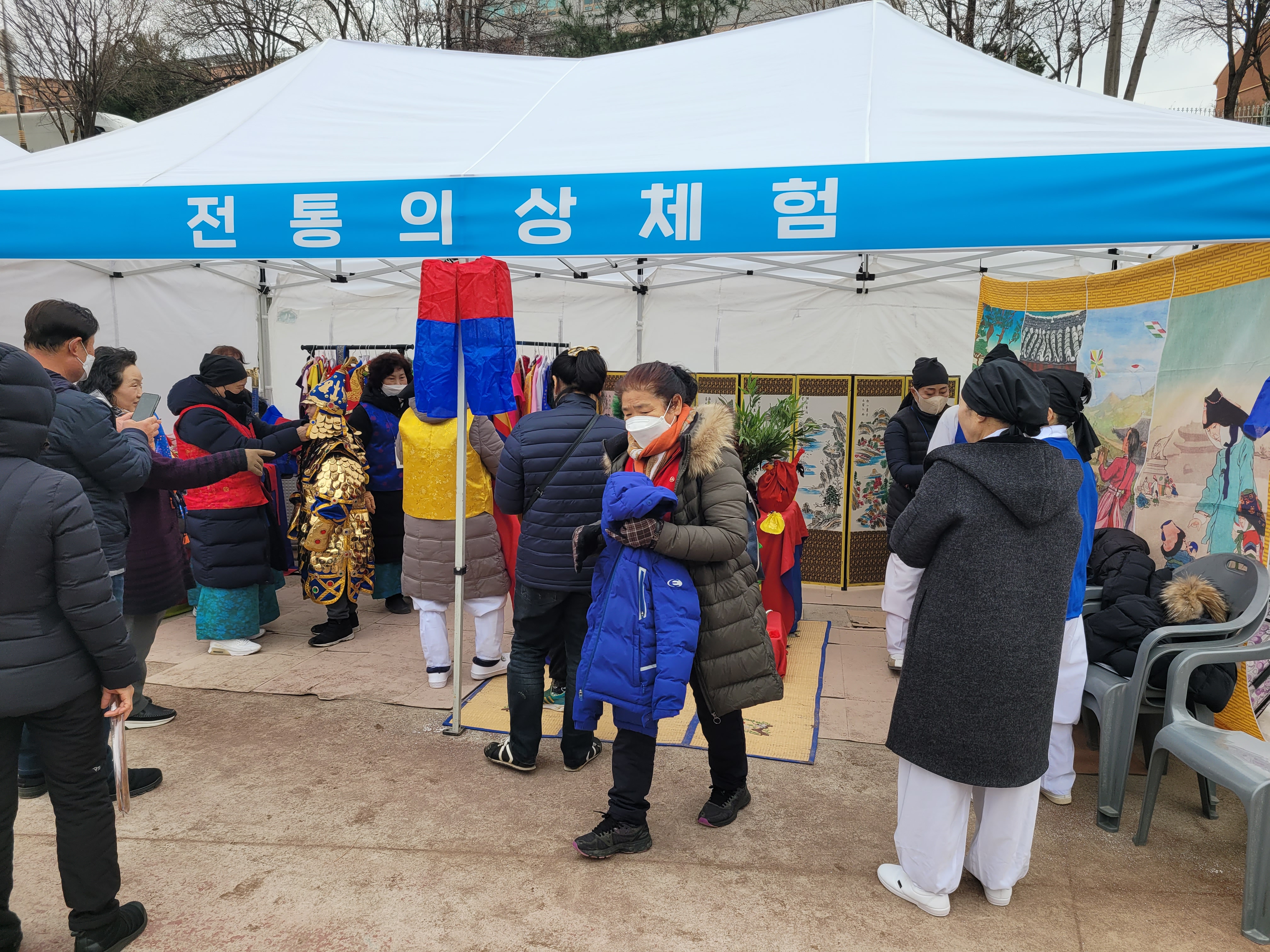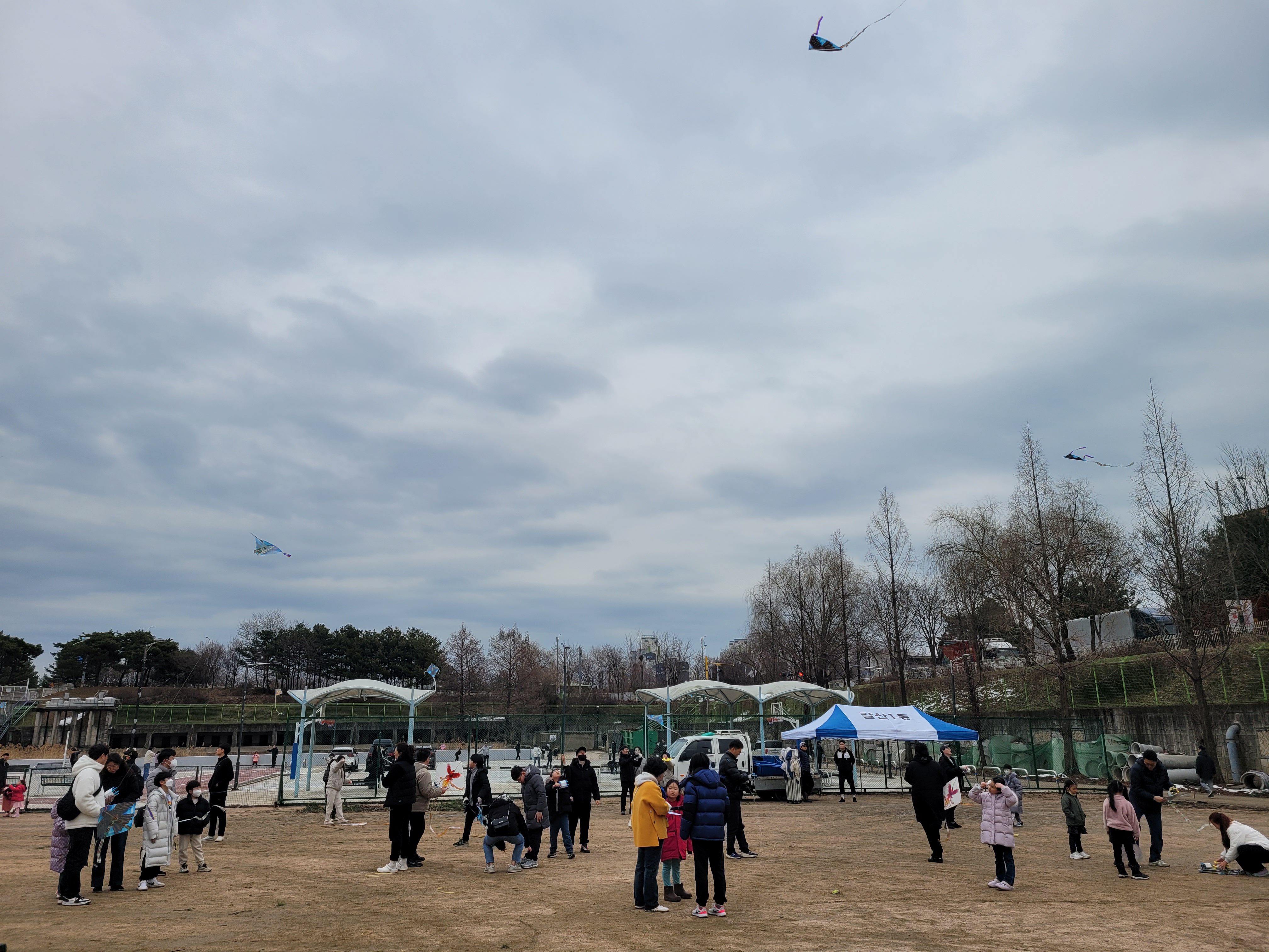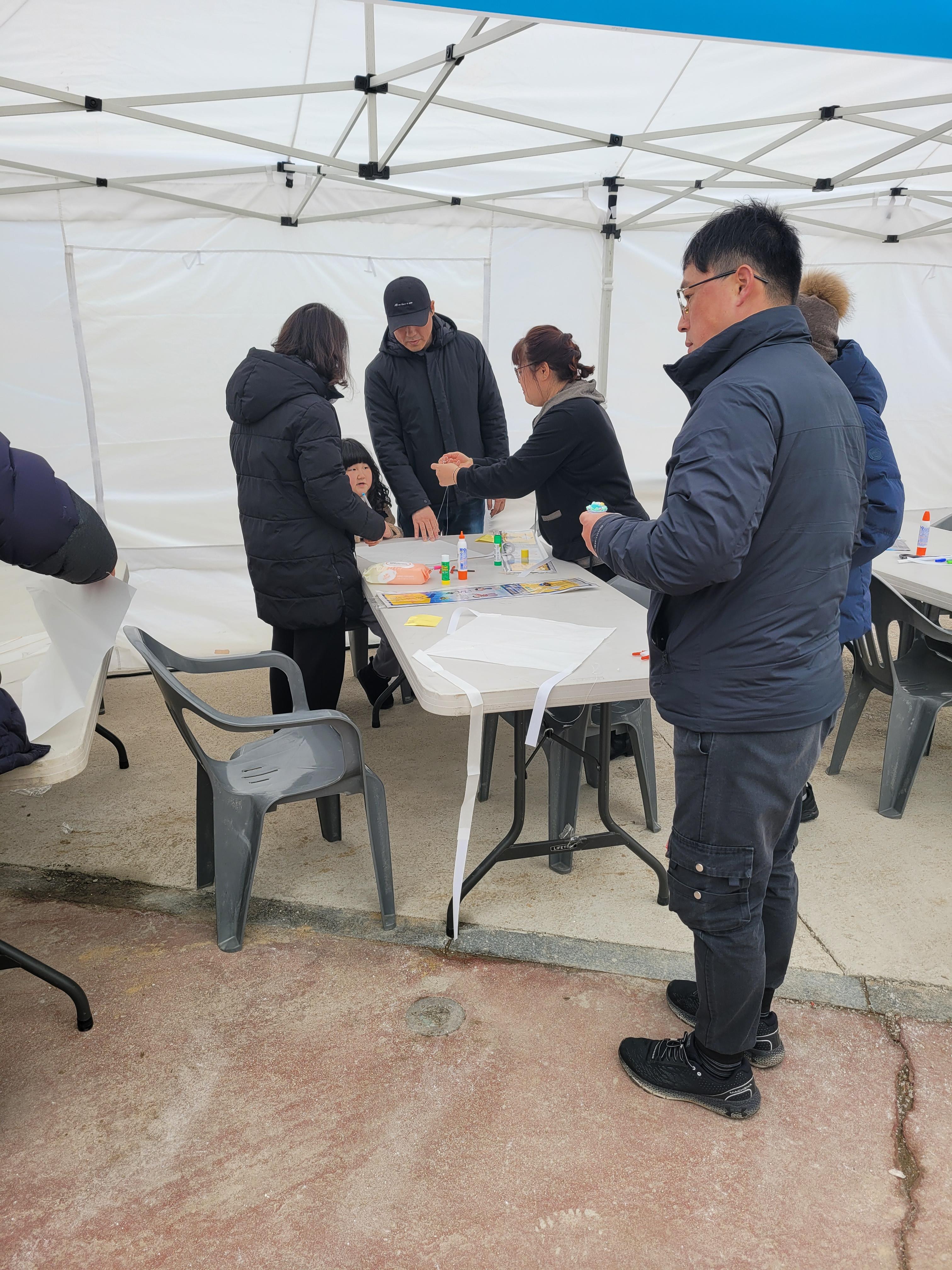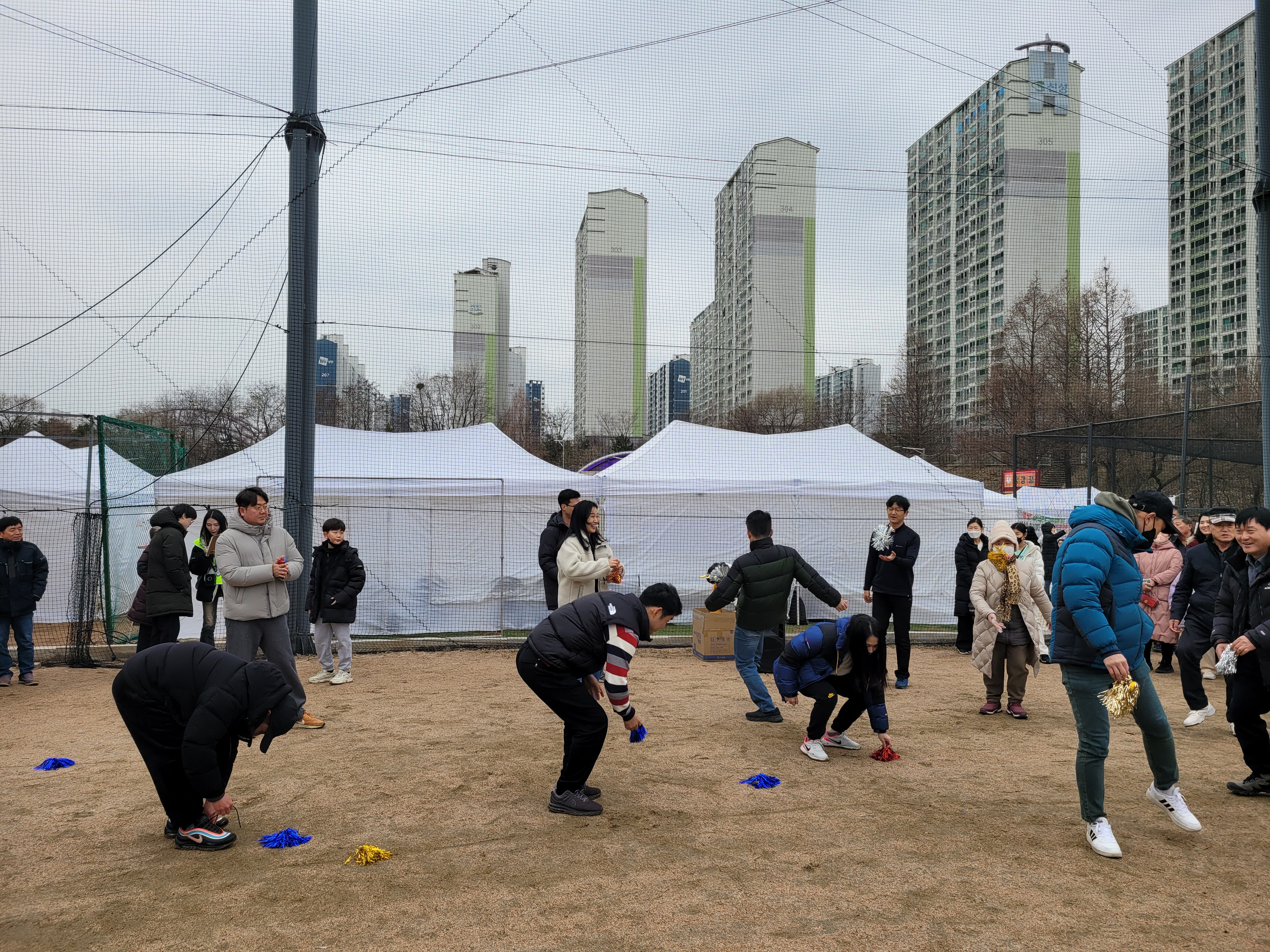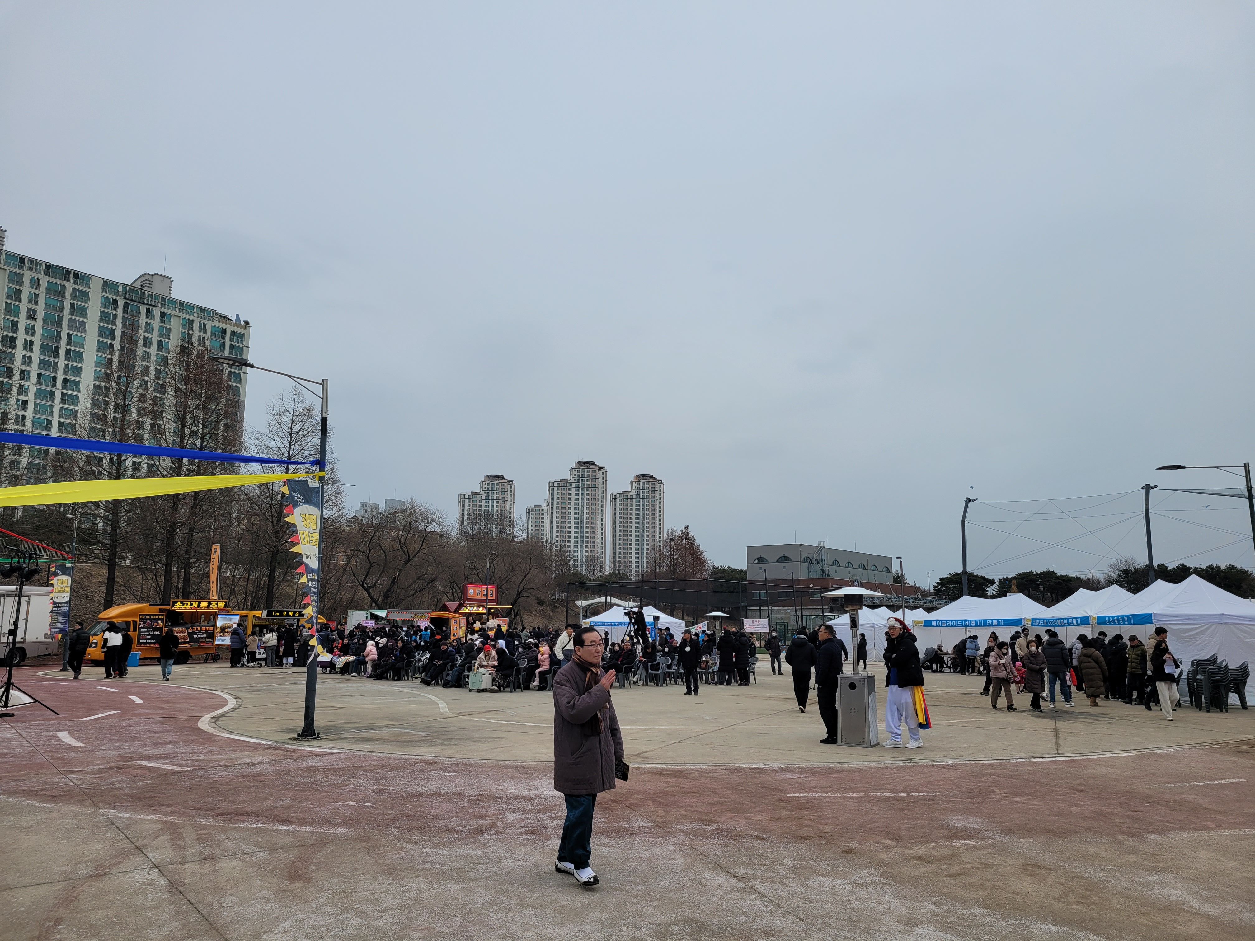 많은 사람들이 연날리기도 하고 제기차기도 하고 각종 체험행사도 하고 먹거리도 먹는