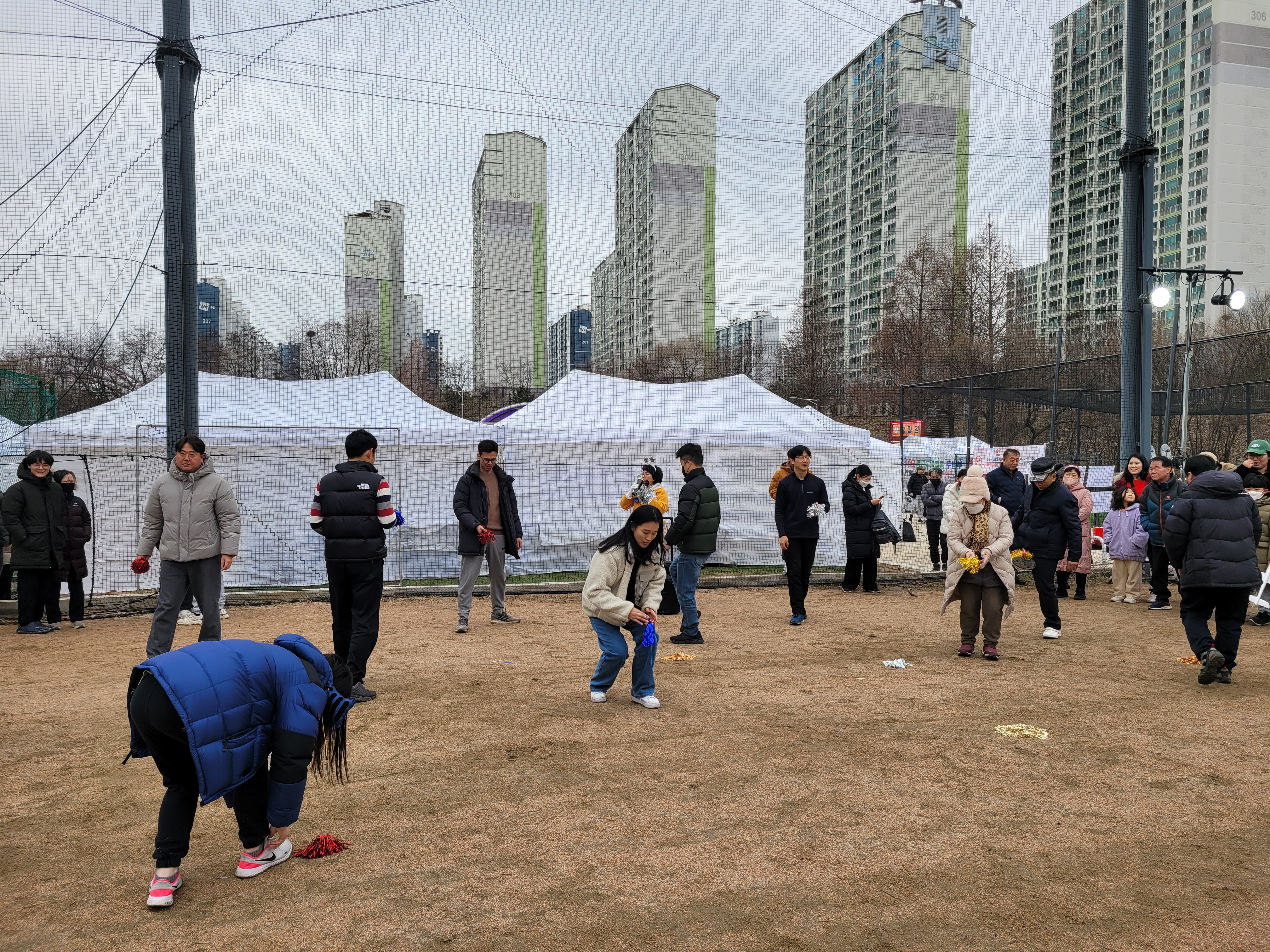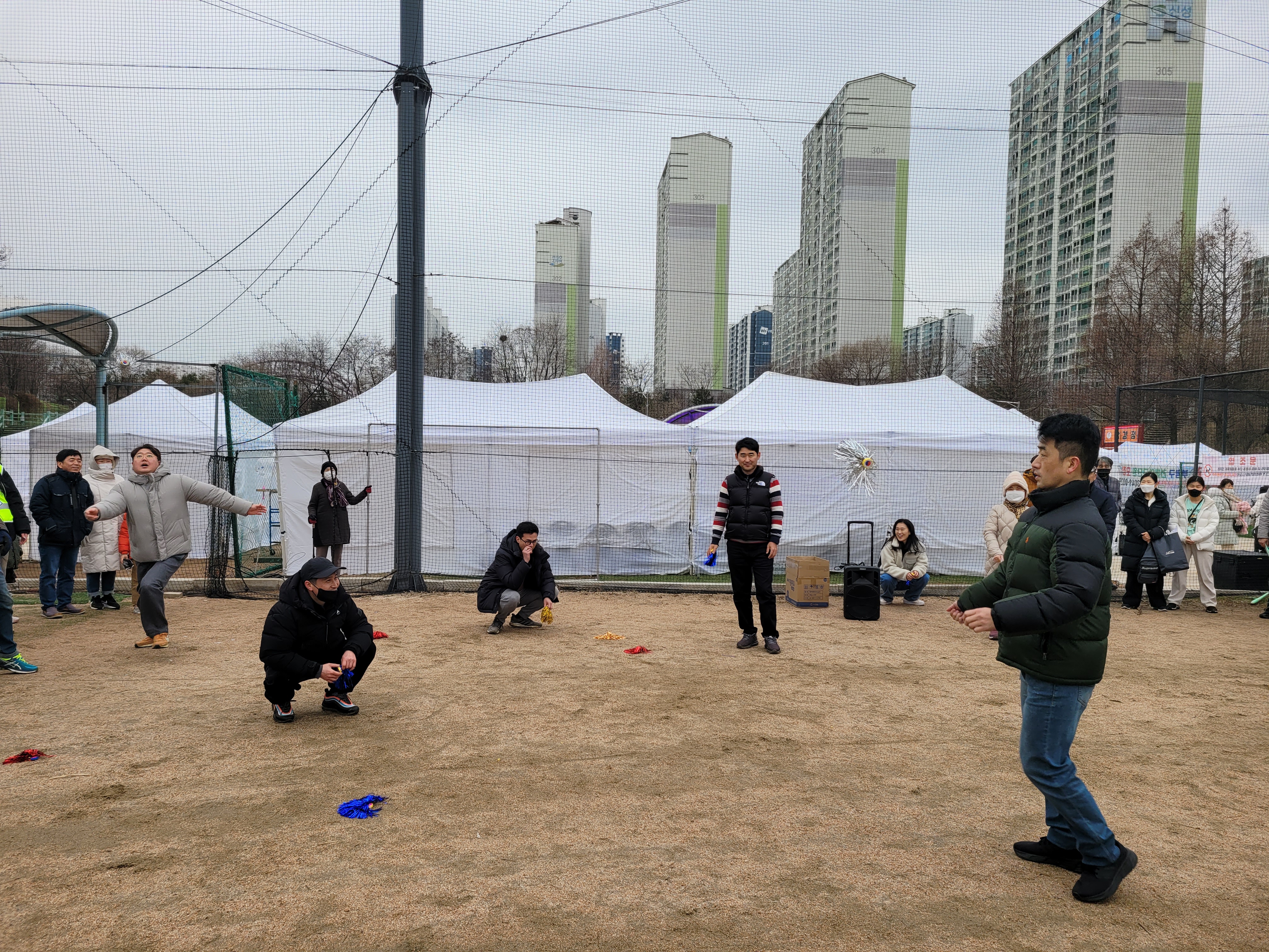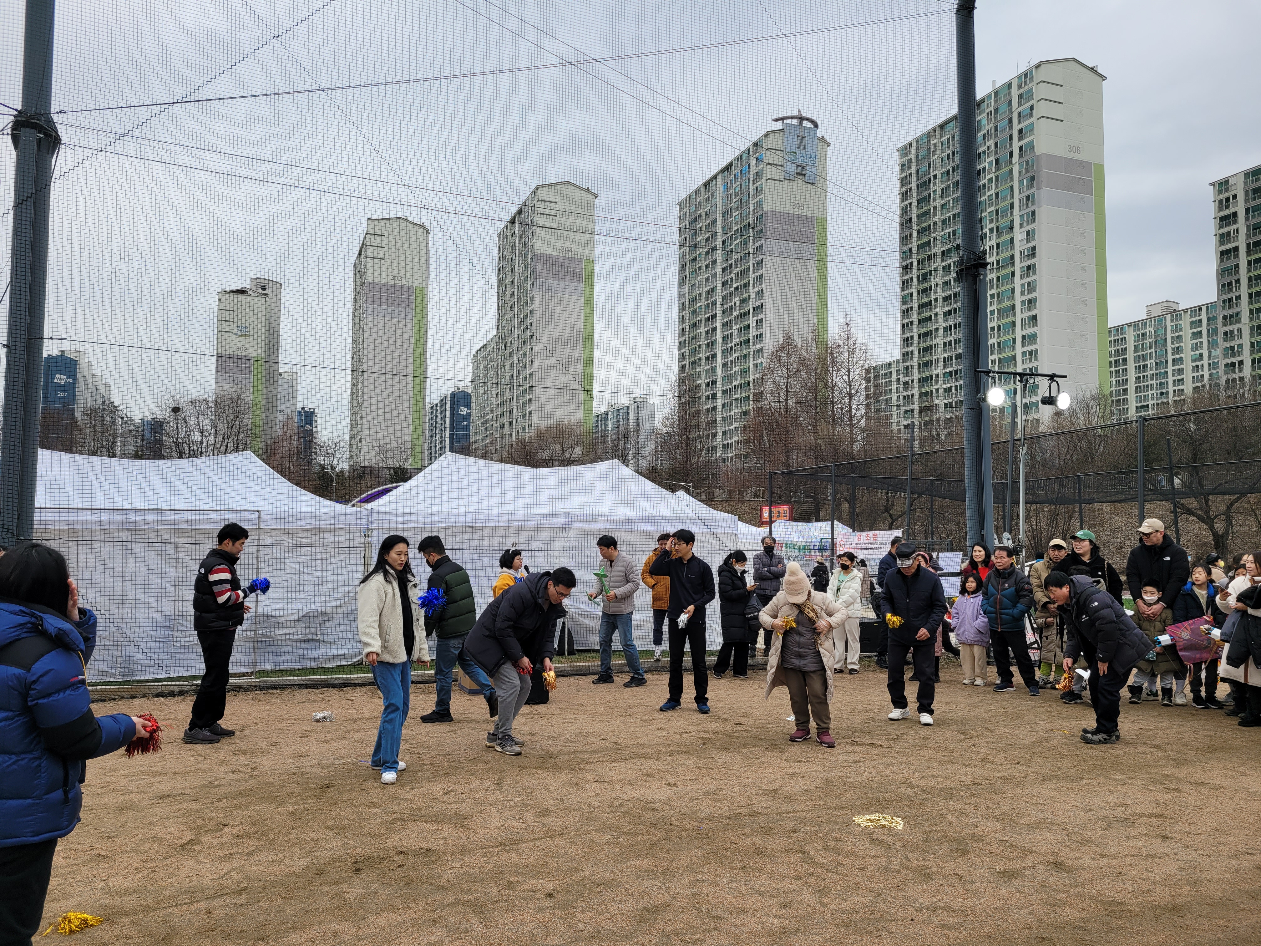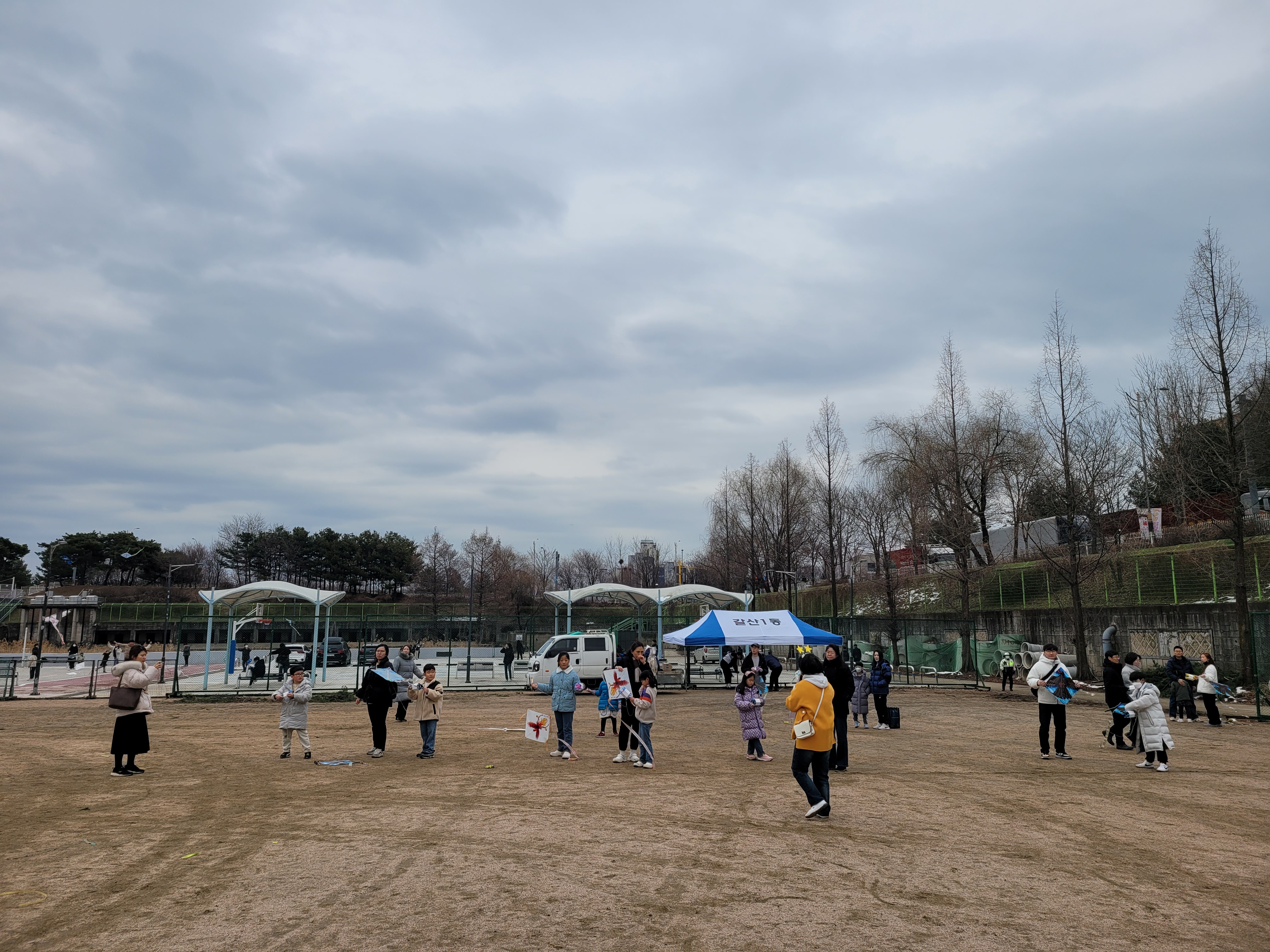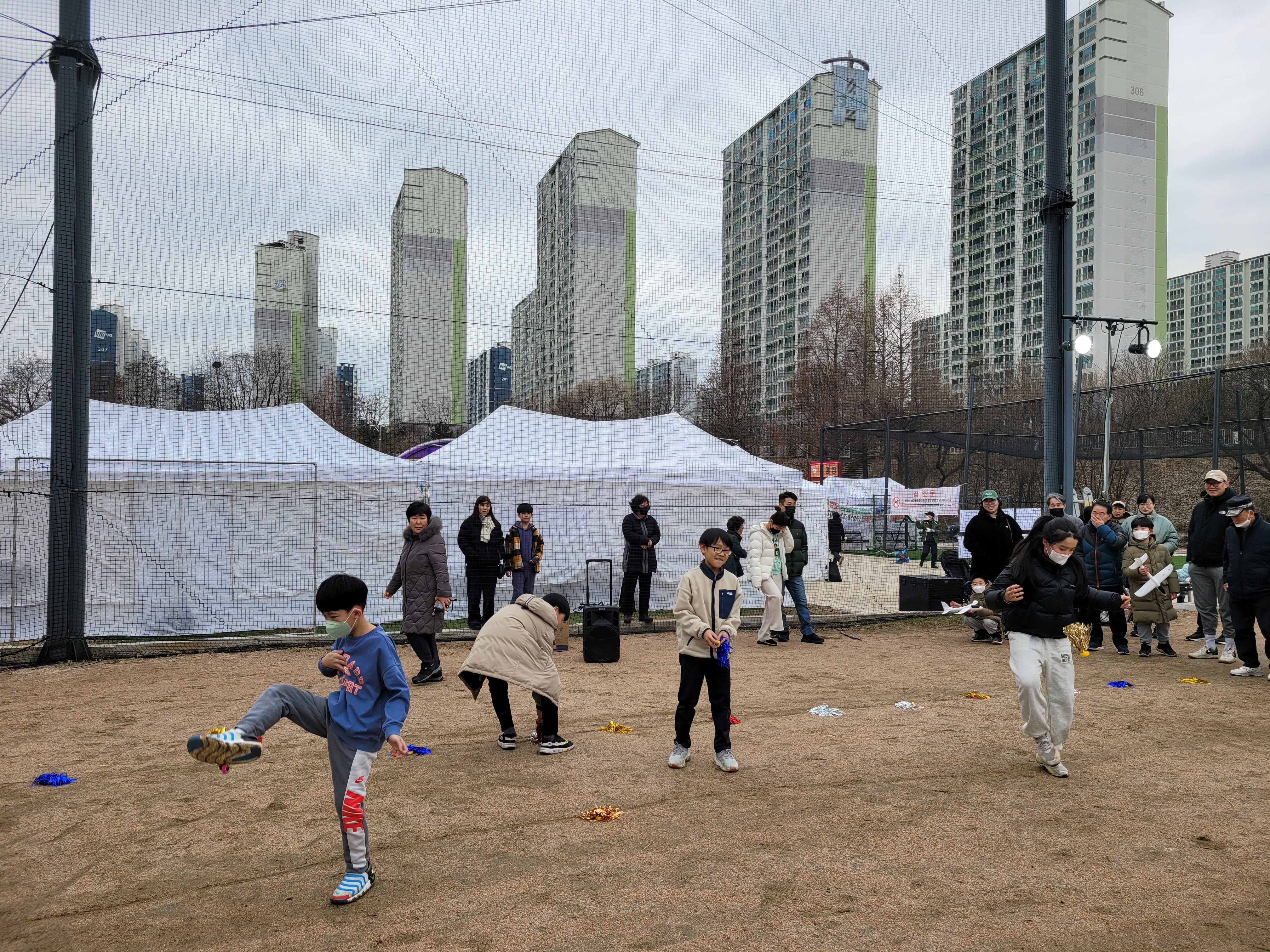 많은 사람들이 연날리기도 하고 제기차기도 하고 각종 체험행사도 하고 먹거리도 먹는
