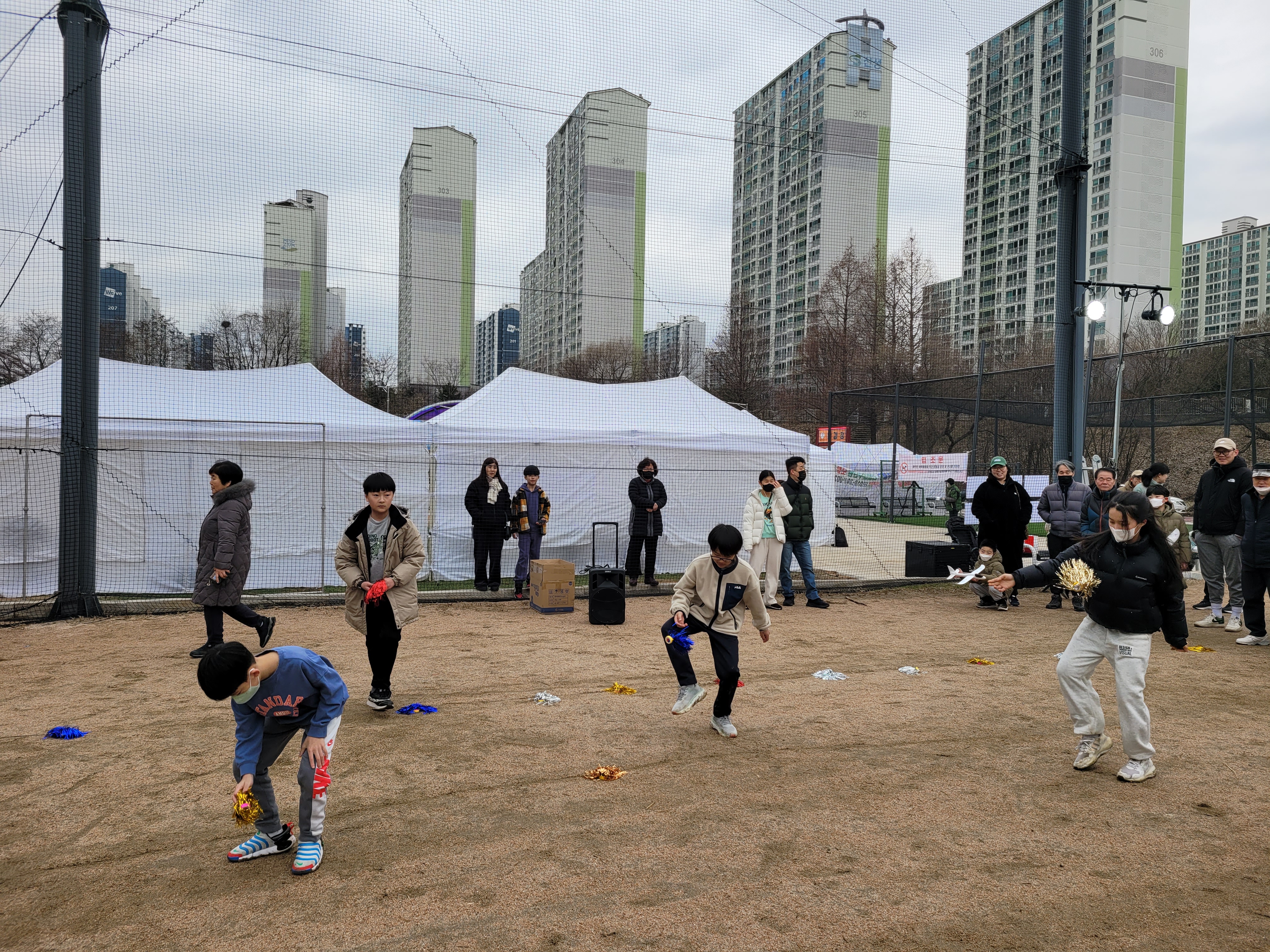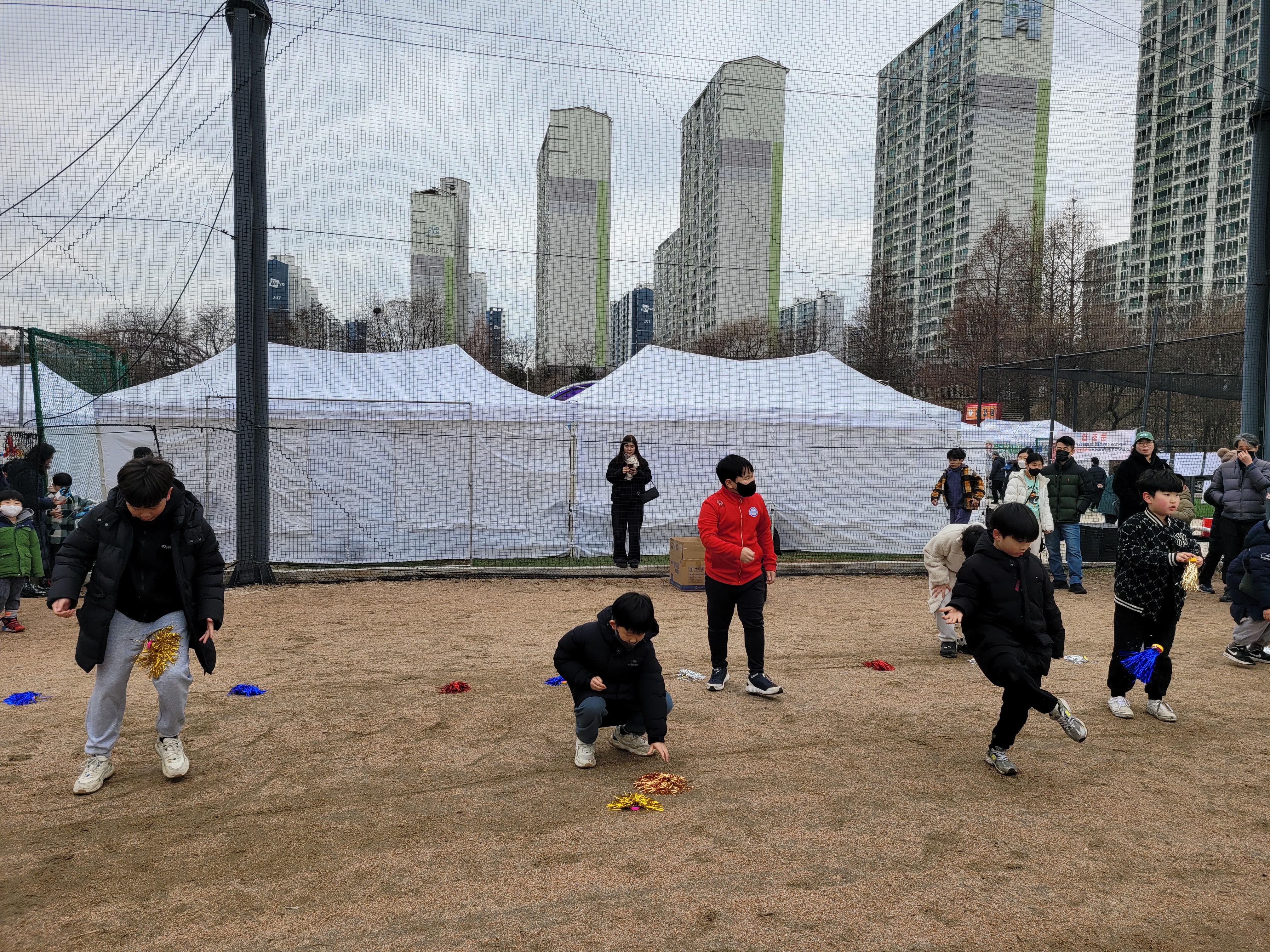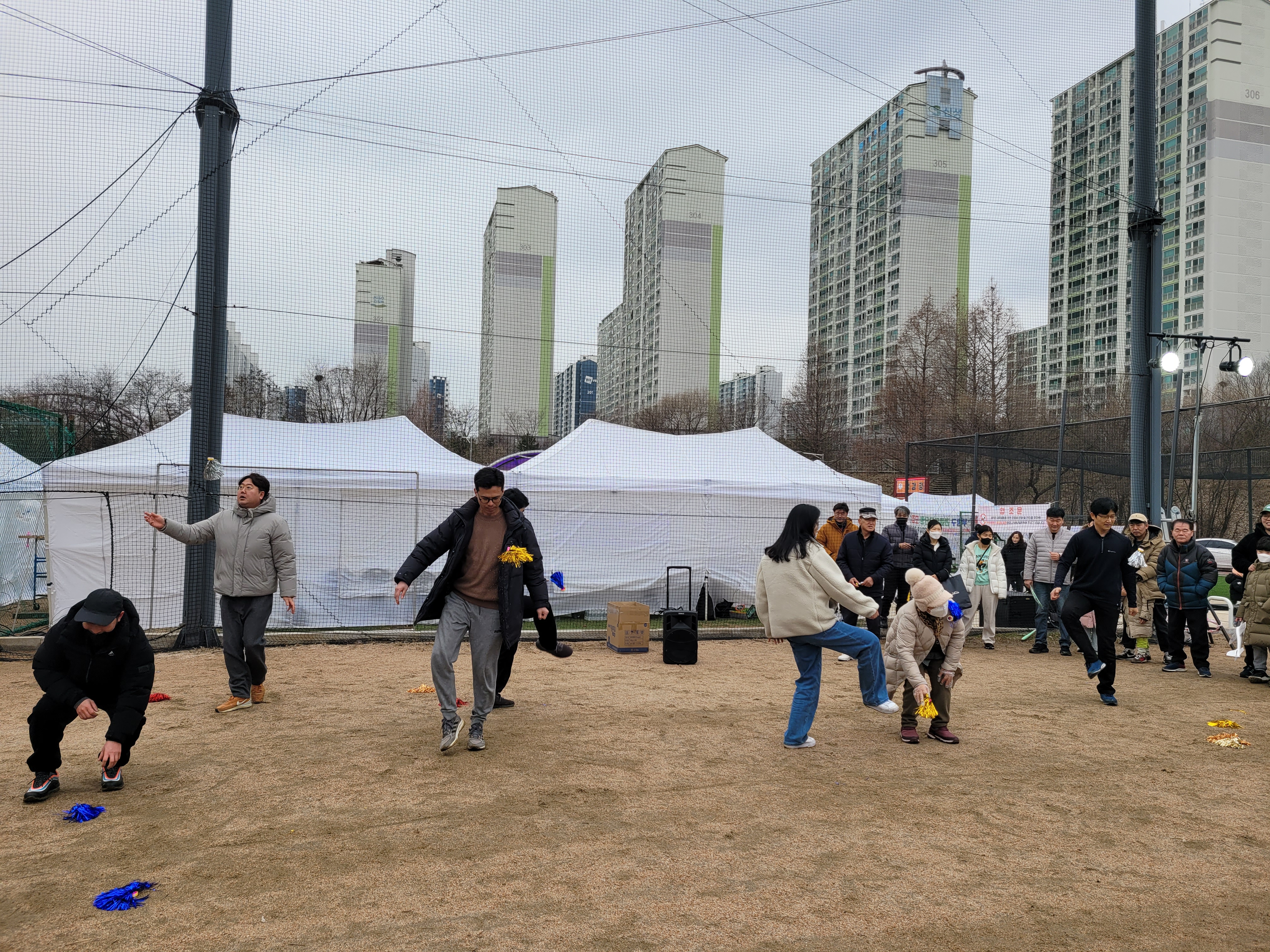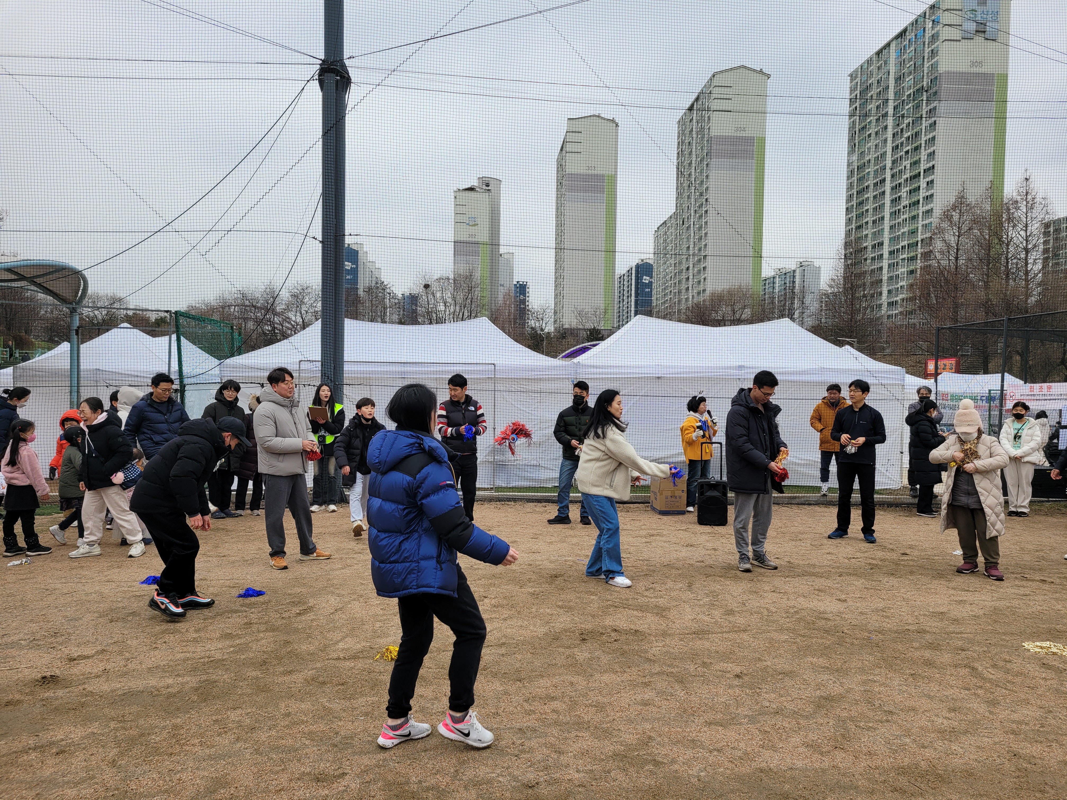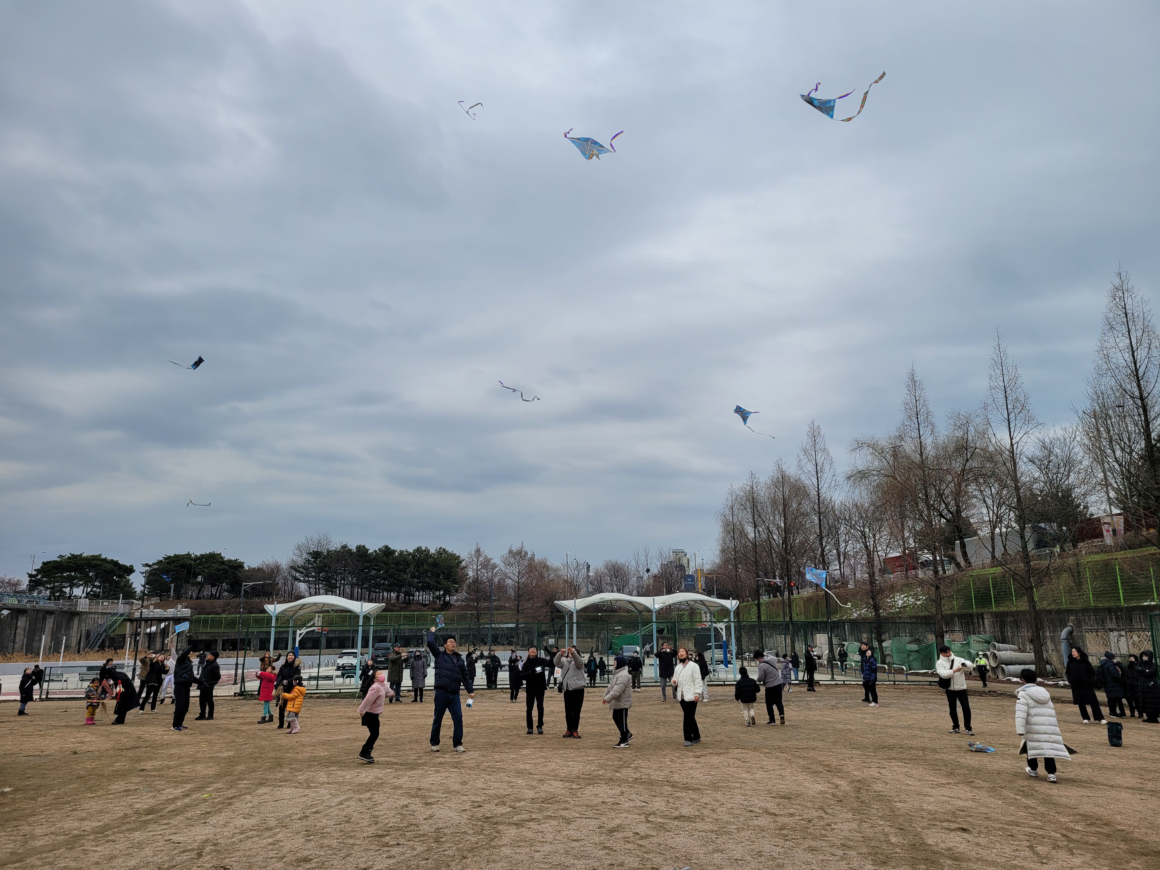 많은 사람들이 연날리기도 하고 제기차기도 하고 각종 체험행사도 하고 먹거리도 먹는