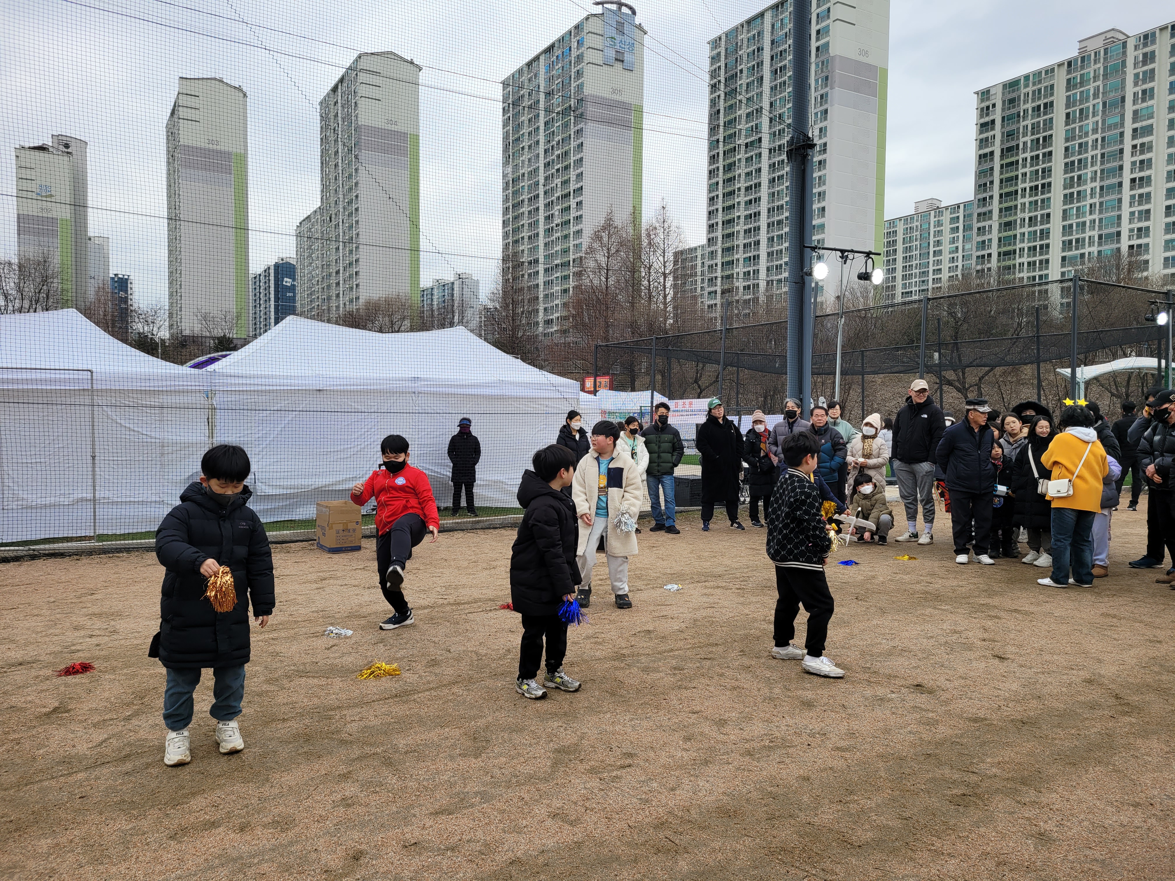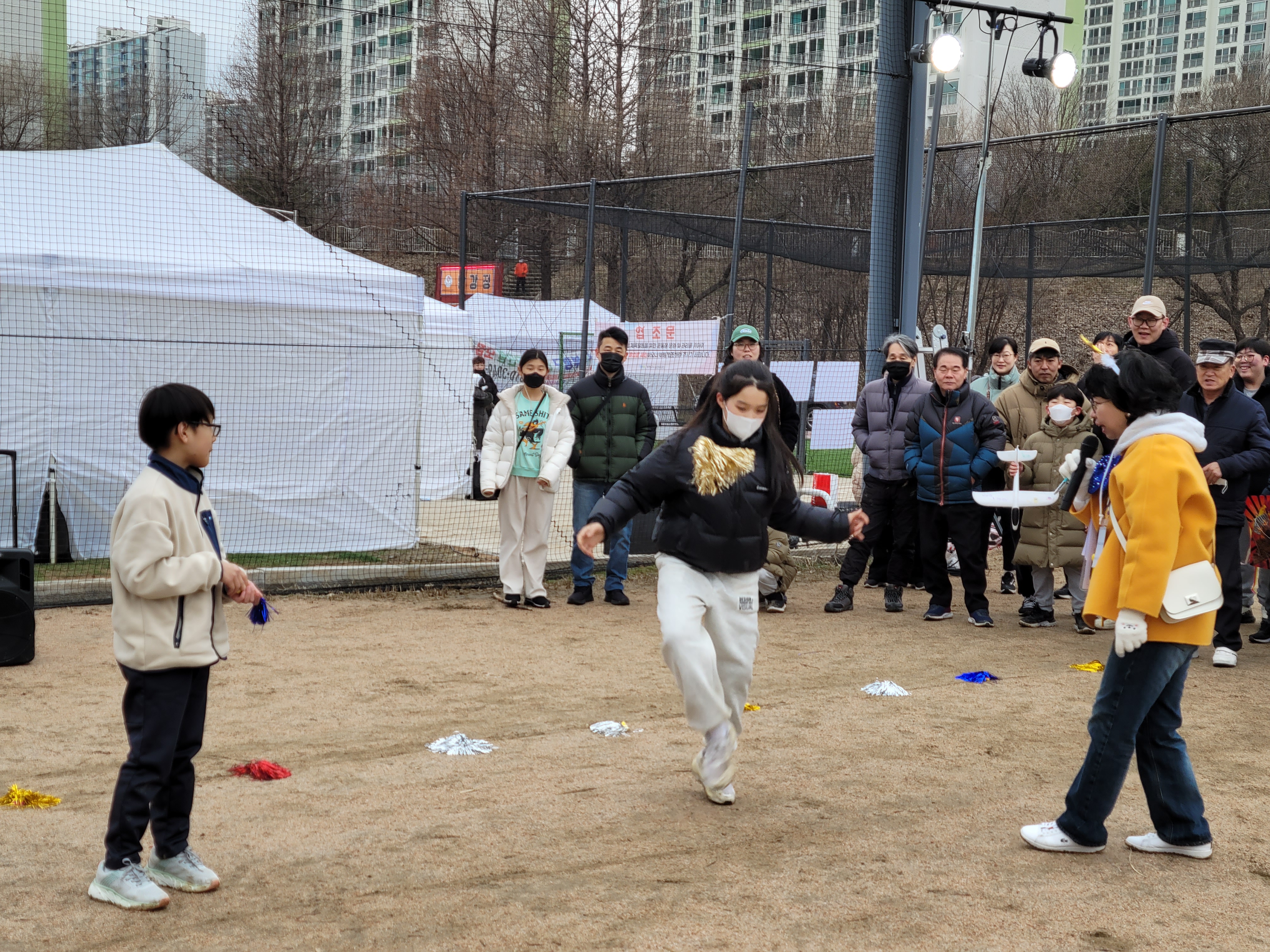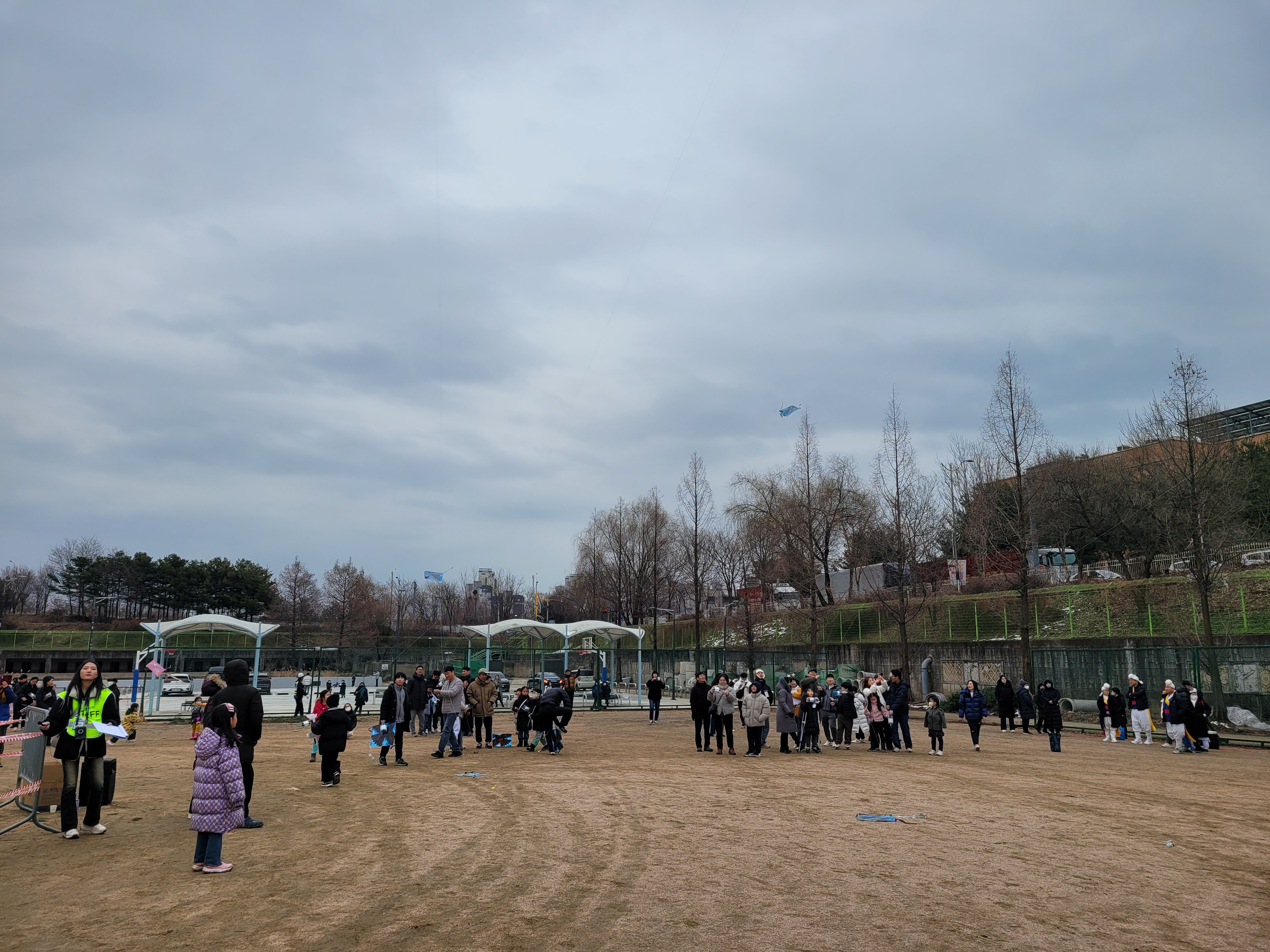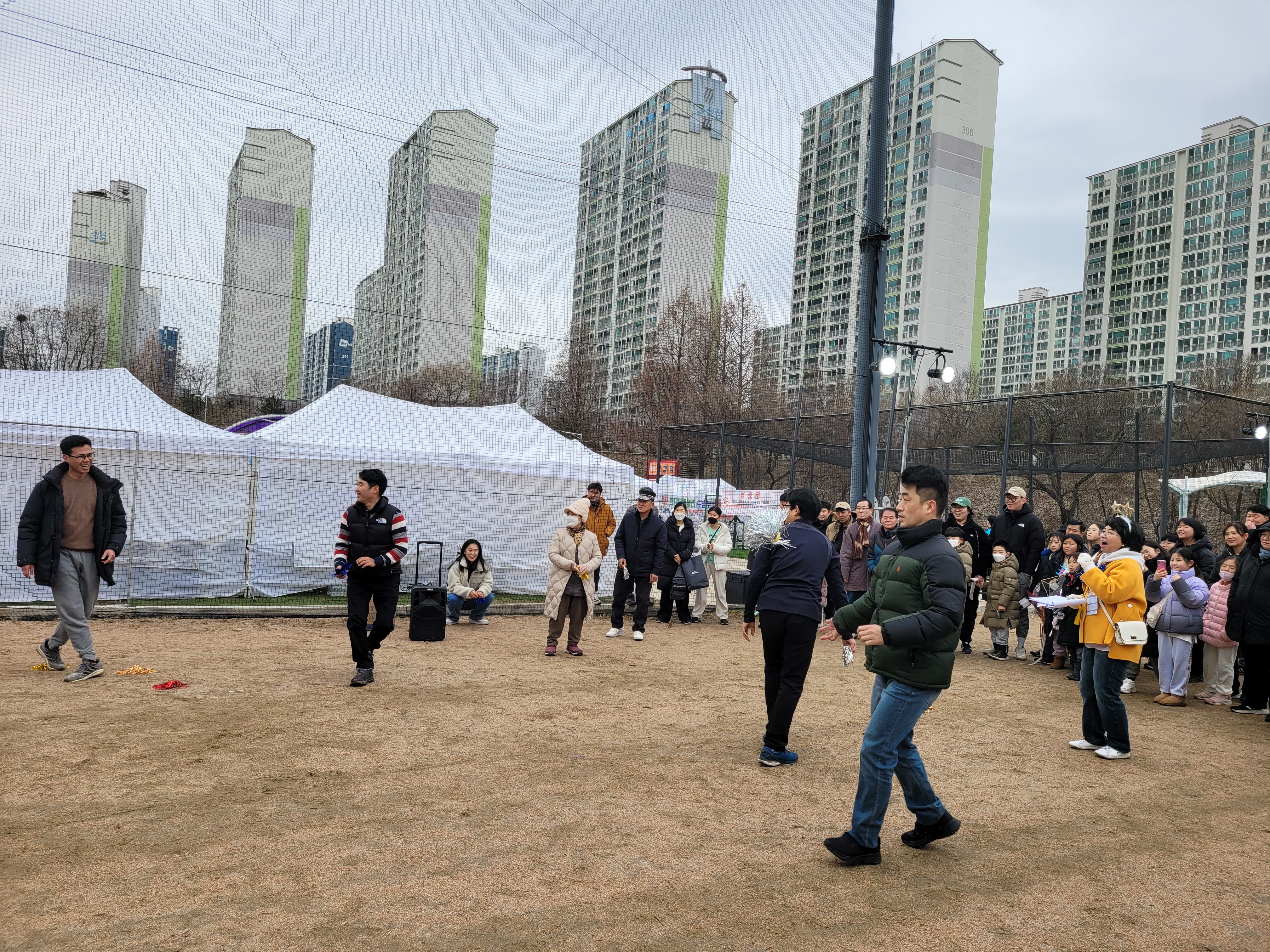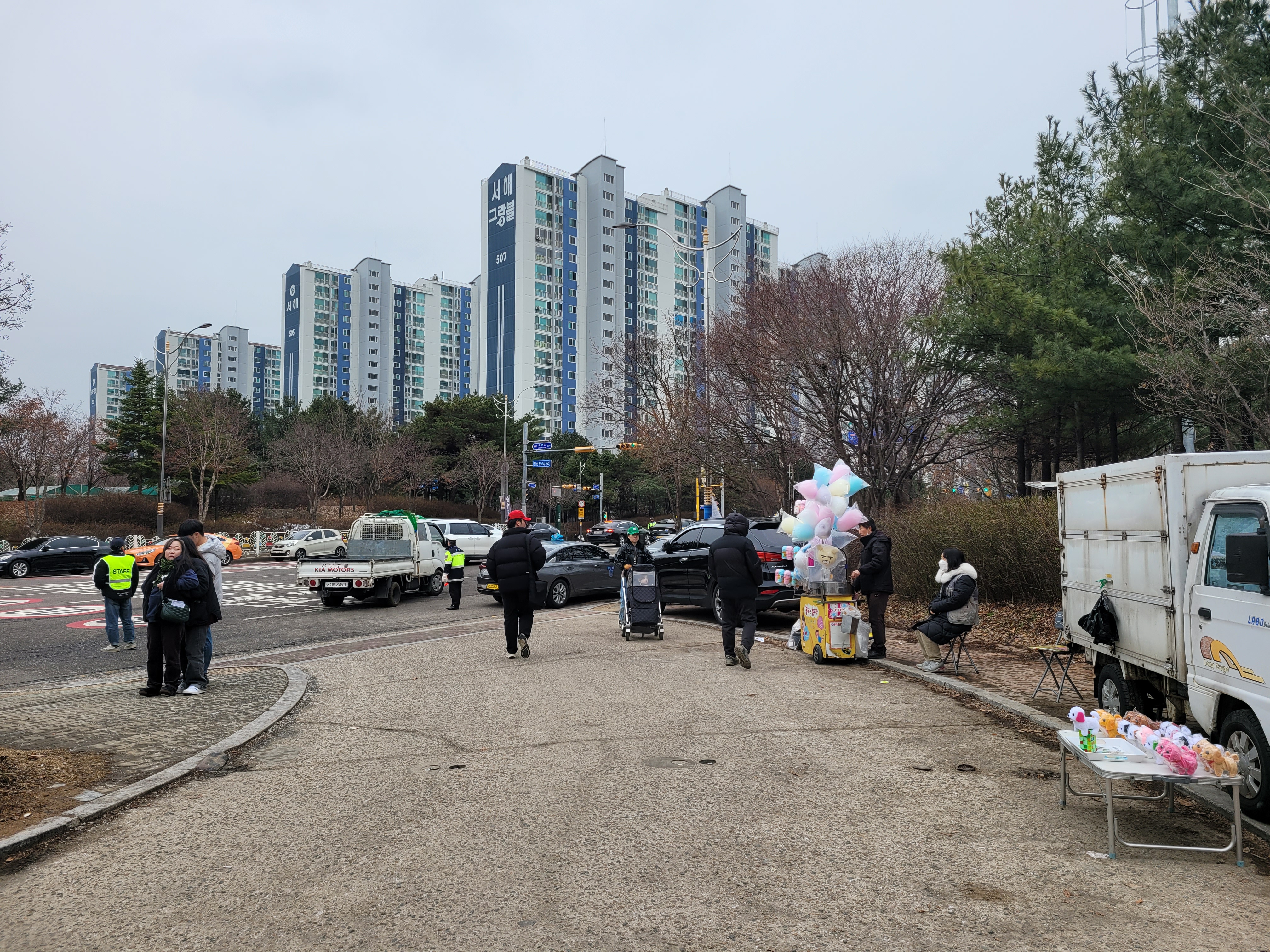 많은 사람들이 연날리기도 하고 제기차기도 하고 각종 체험행사도 하고 먹거리도 먹는