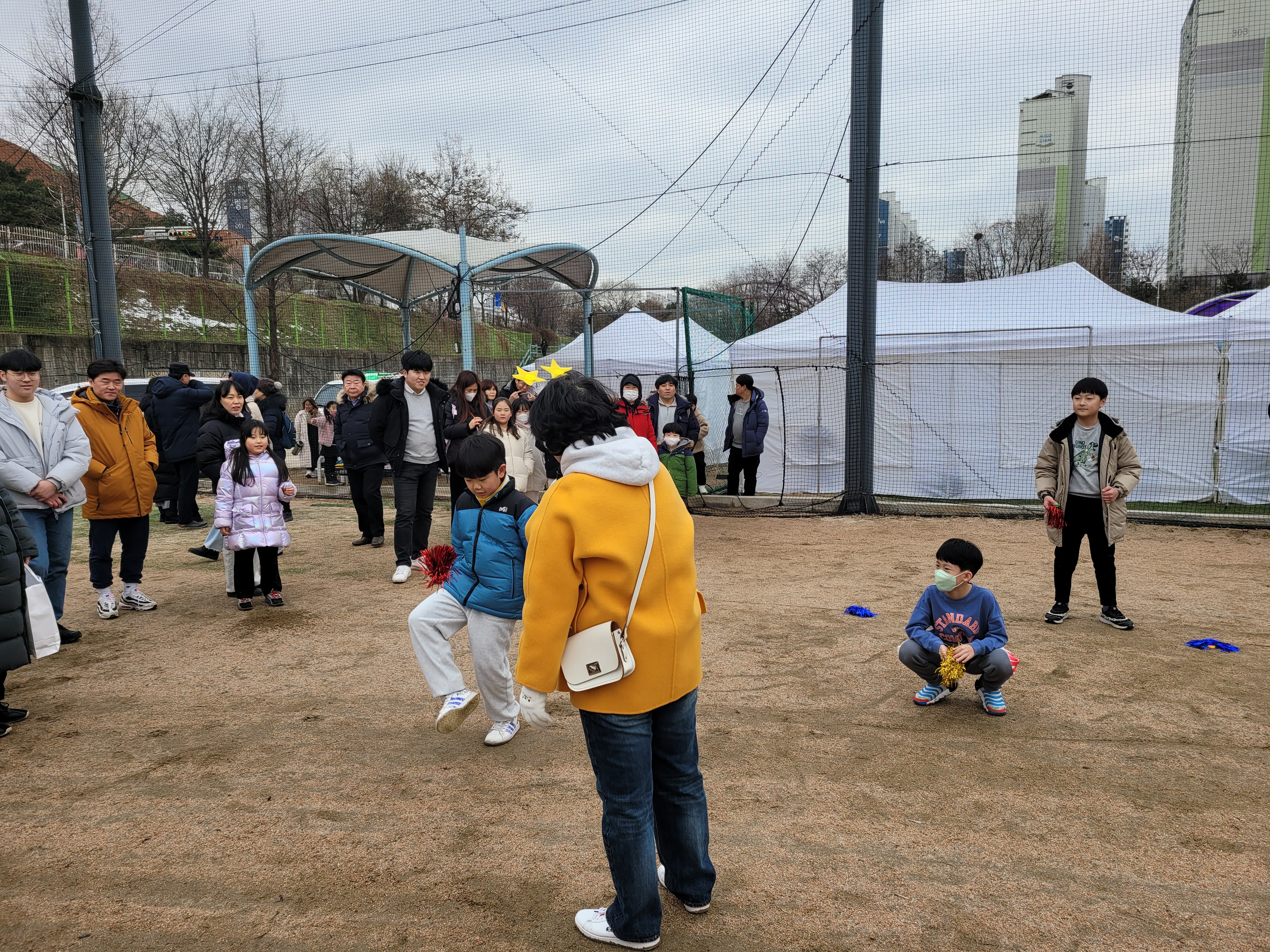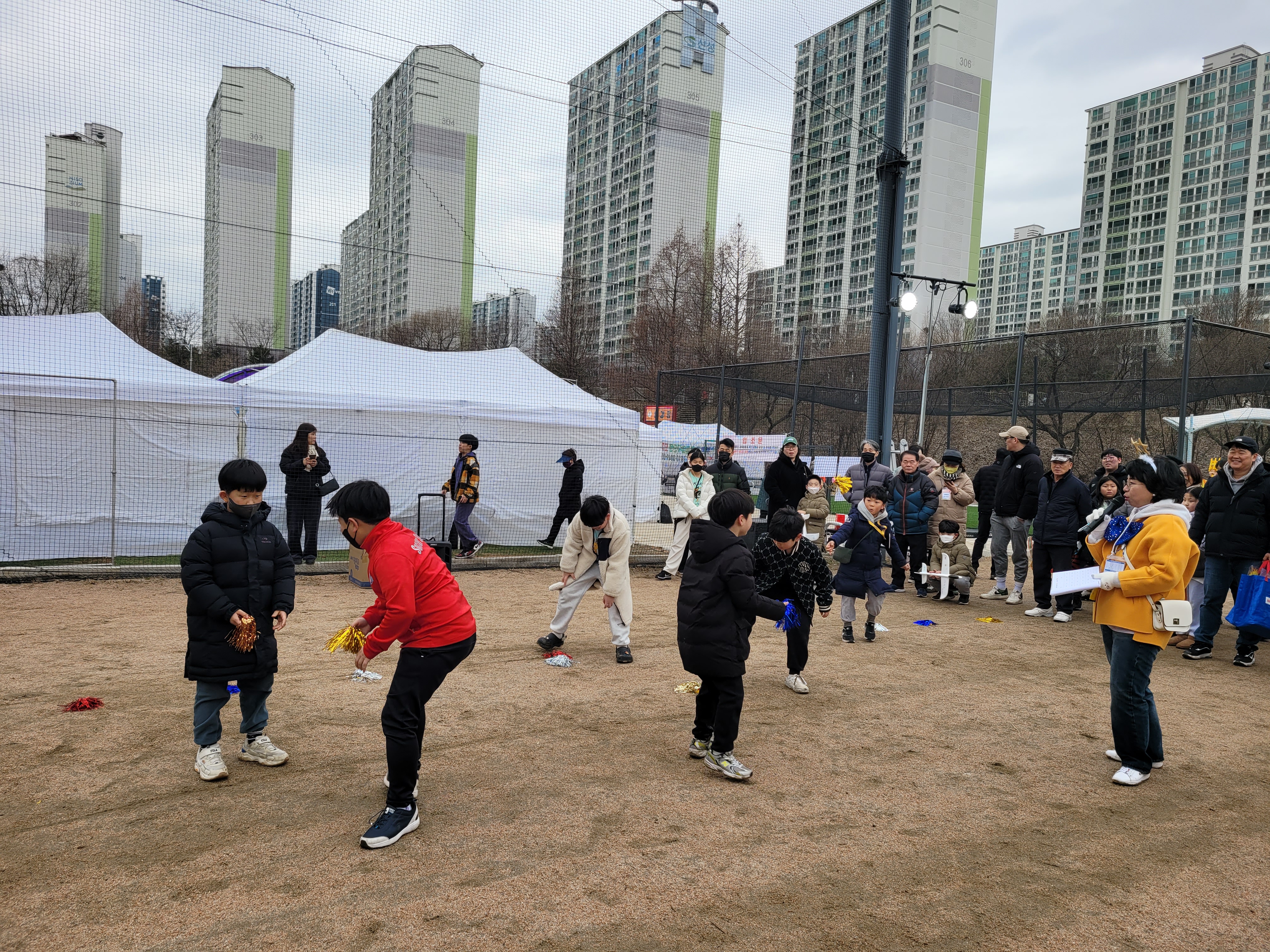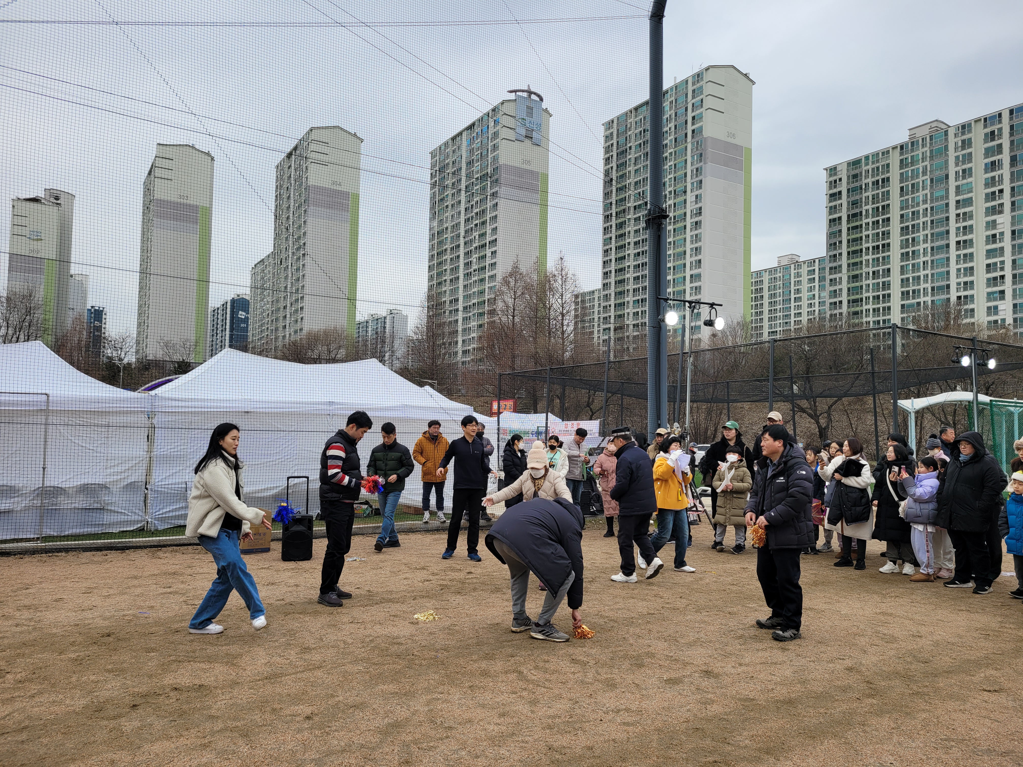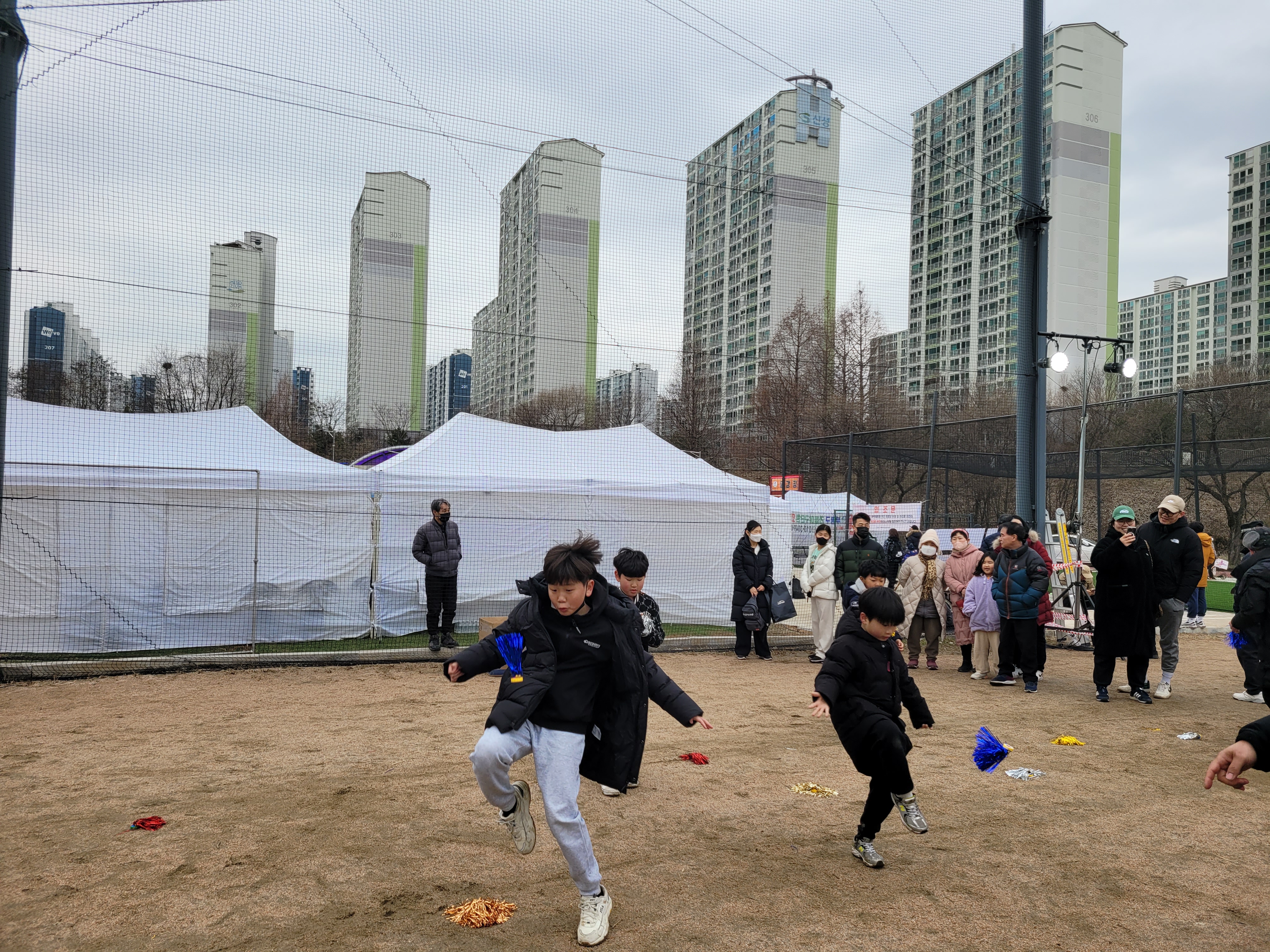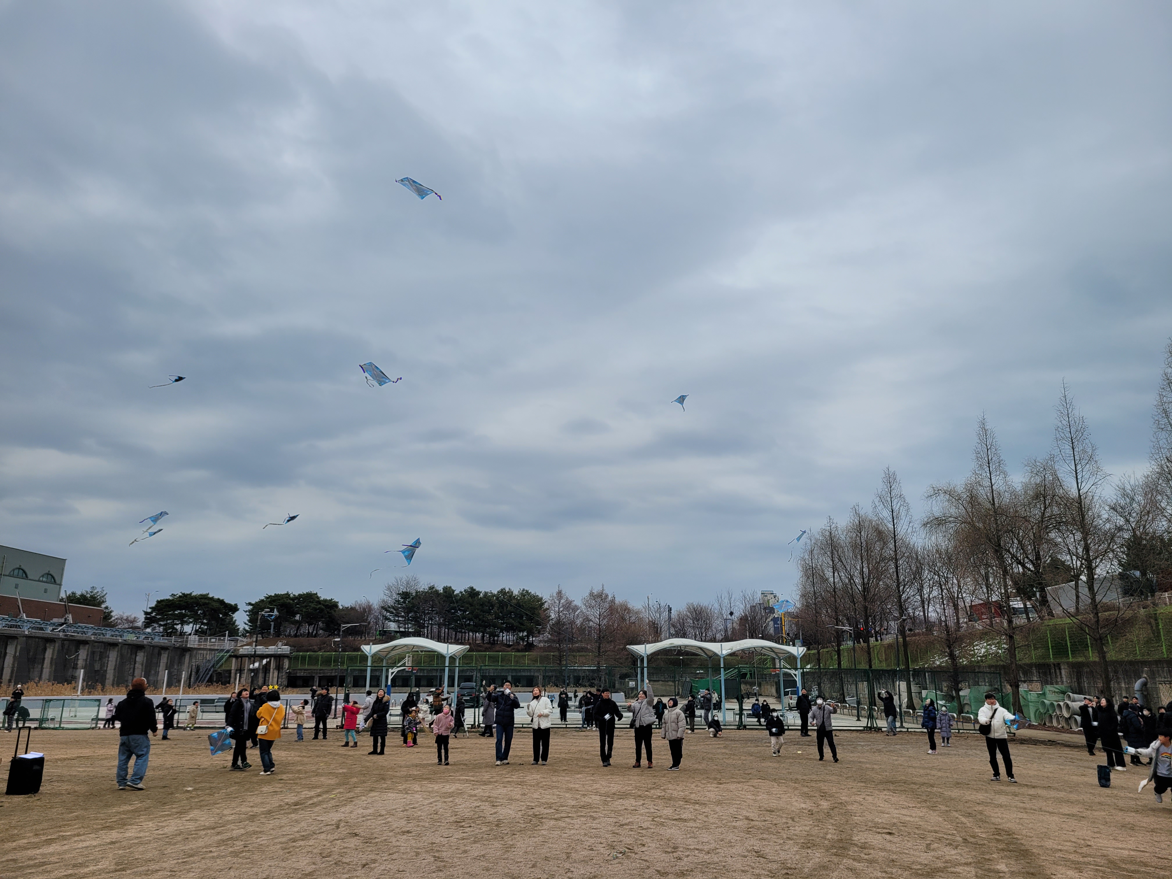 많은 사람들이 연날리기도 하고 제기차기도 하고 각종 체험행사도 하고 먹거리도 먹는