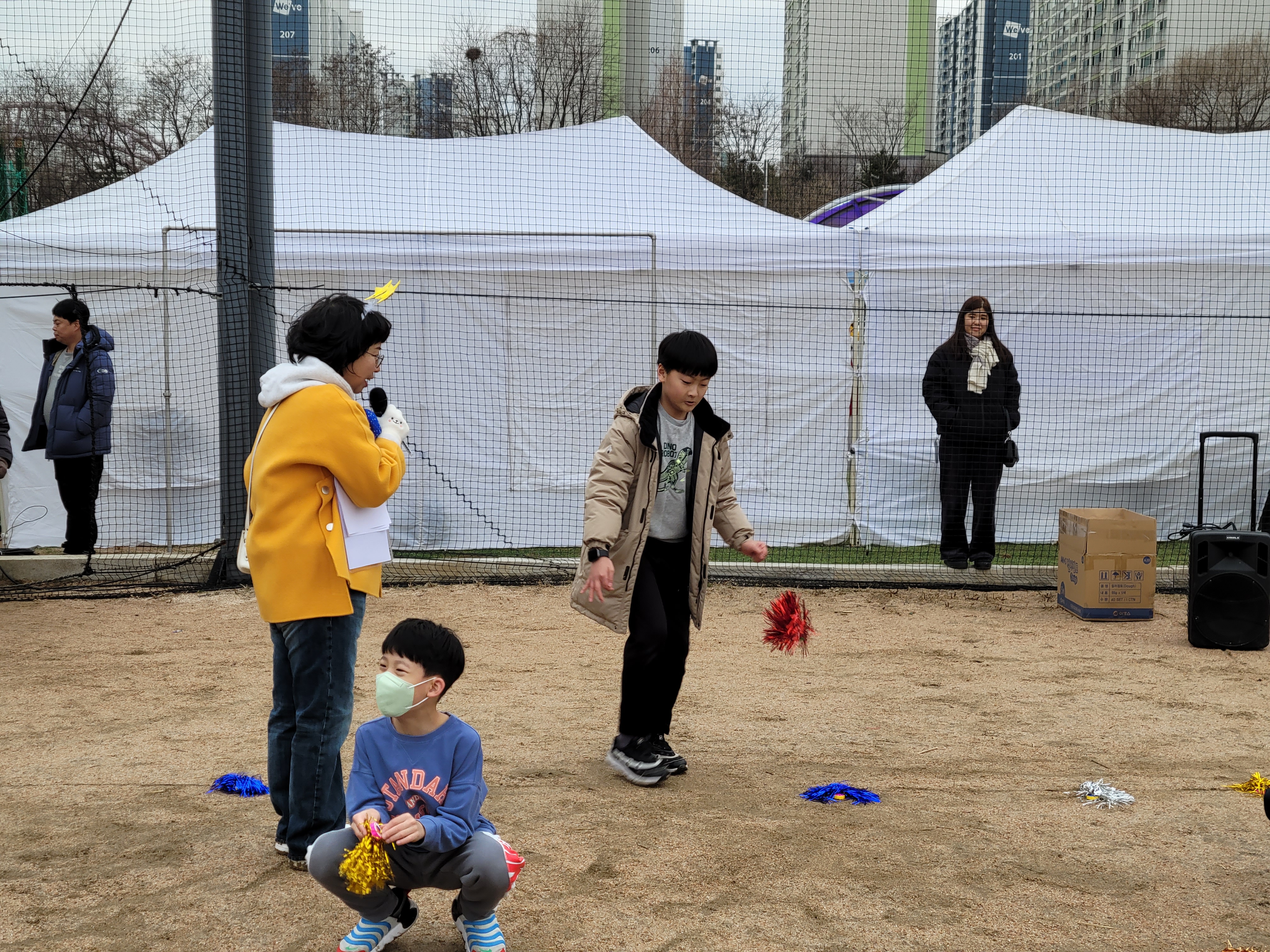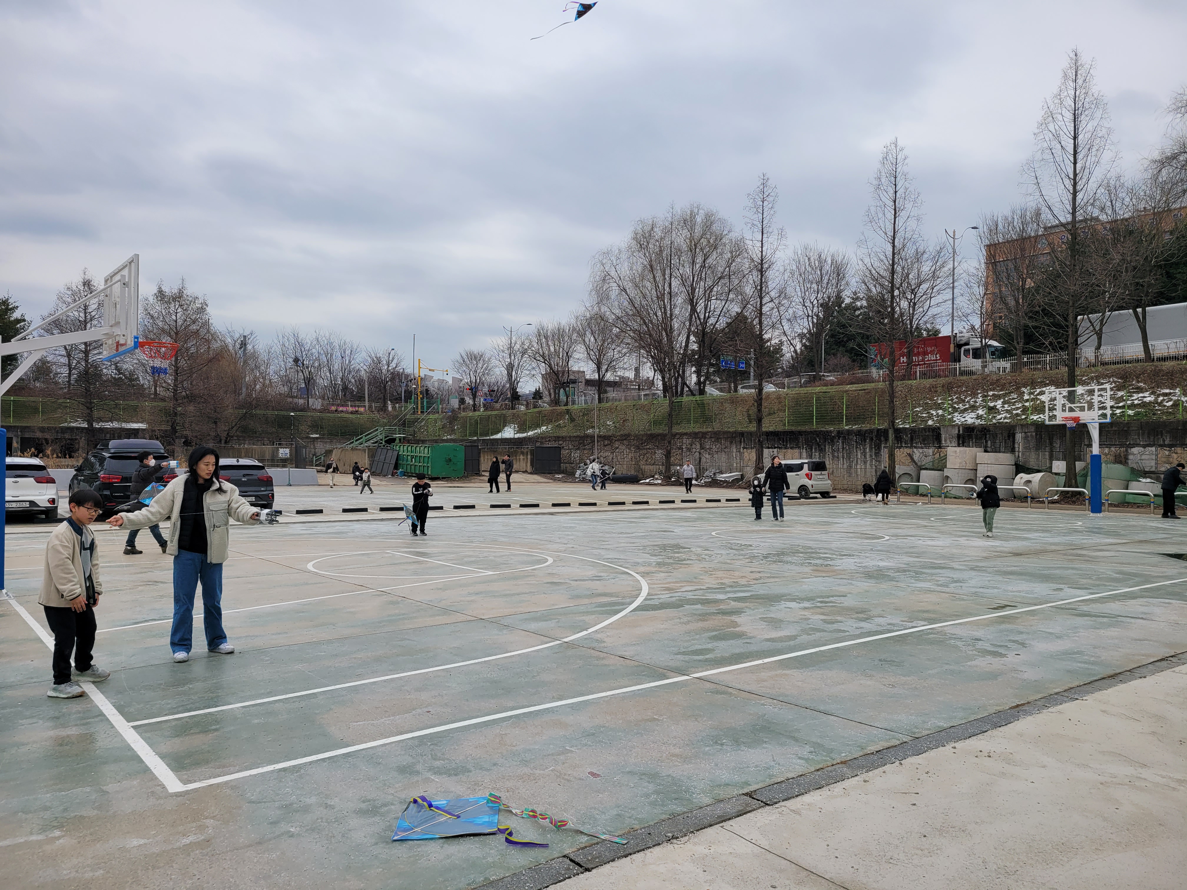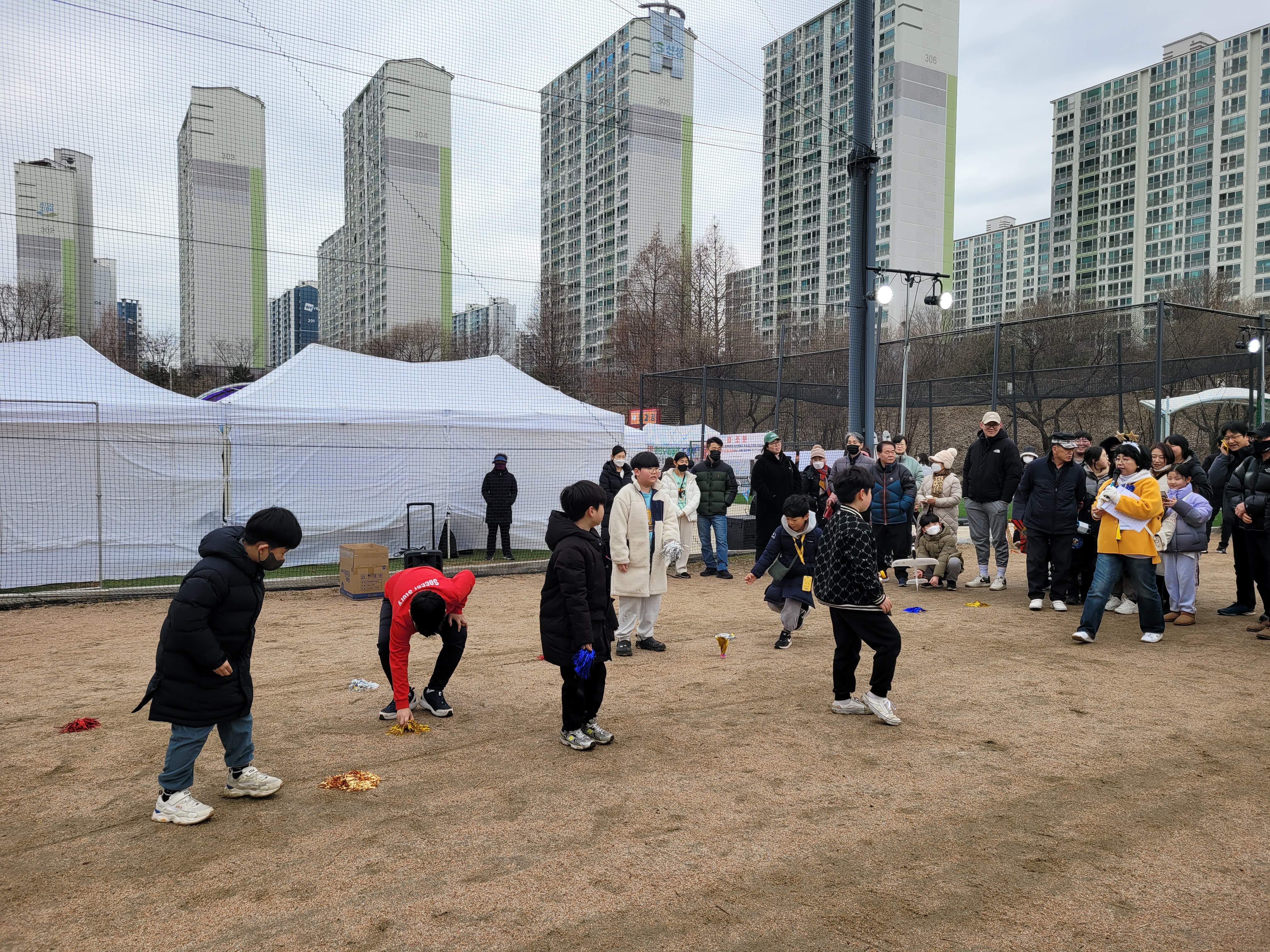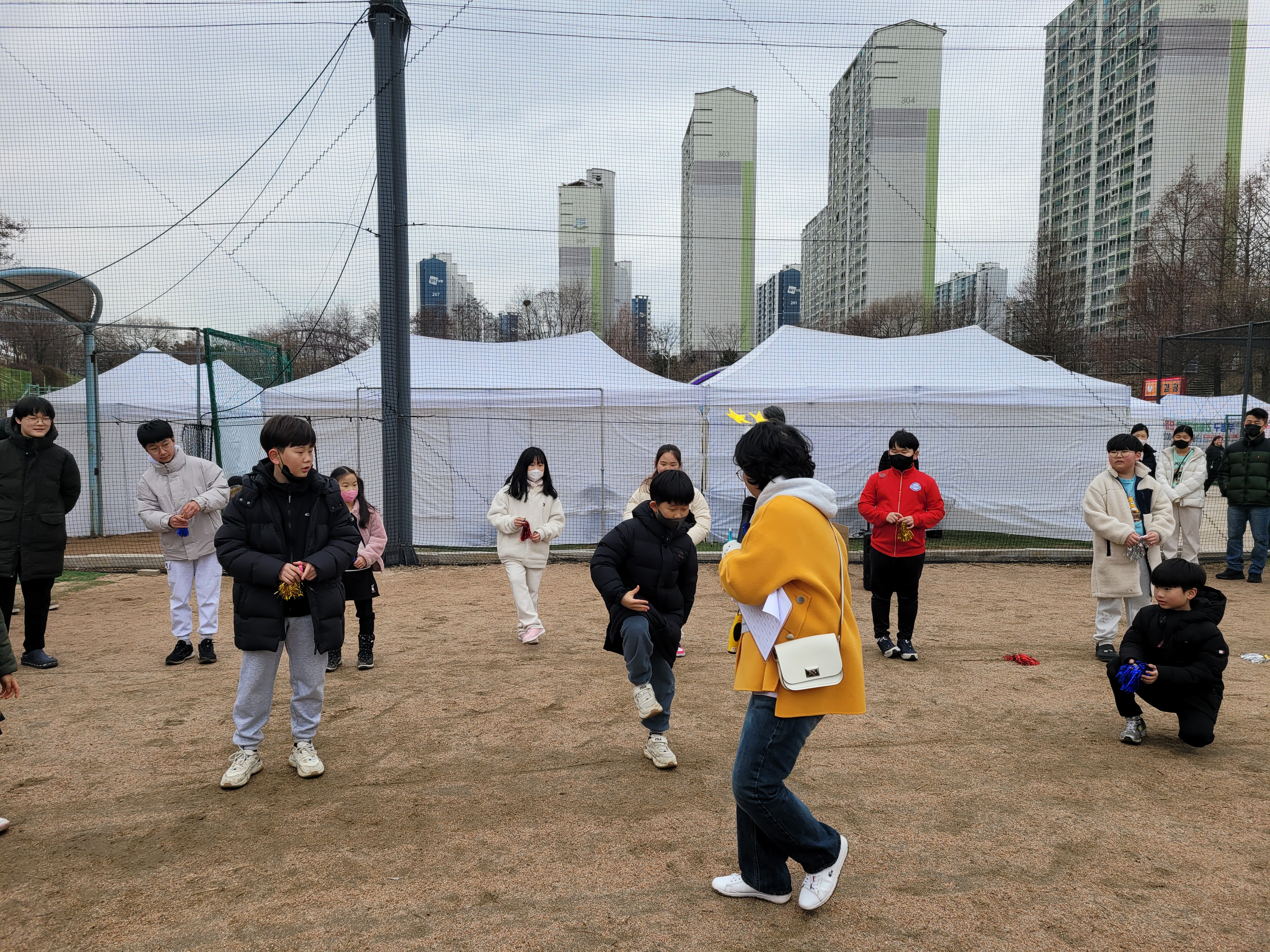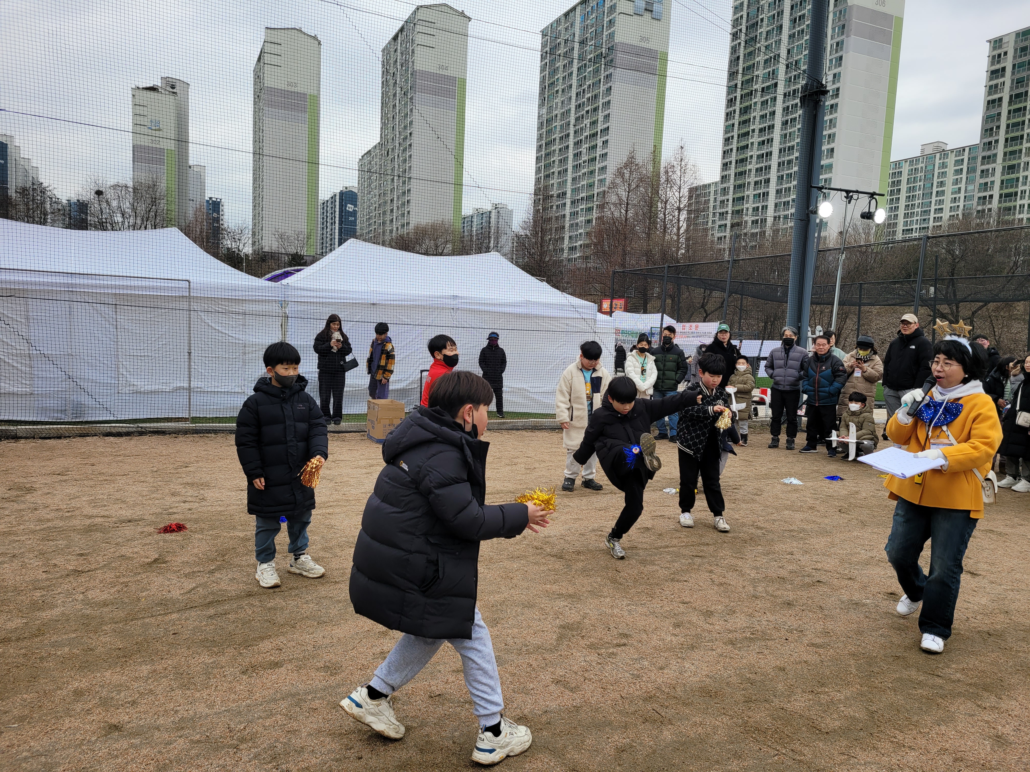 많은 사람들이 연날리기도 하고 제기차기도 하고 각종 체험행사도 하고 먹거리도 먹는