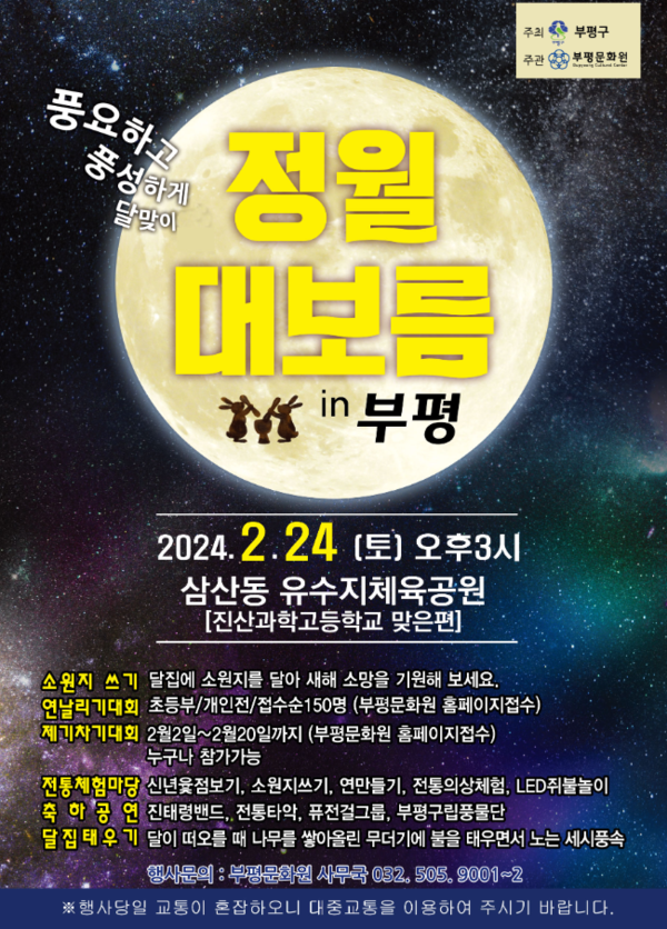 오늘은 정월대보름날이라서 작년에 이어서 올해에도 인천 부평구 삼산유수지체육공원