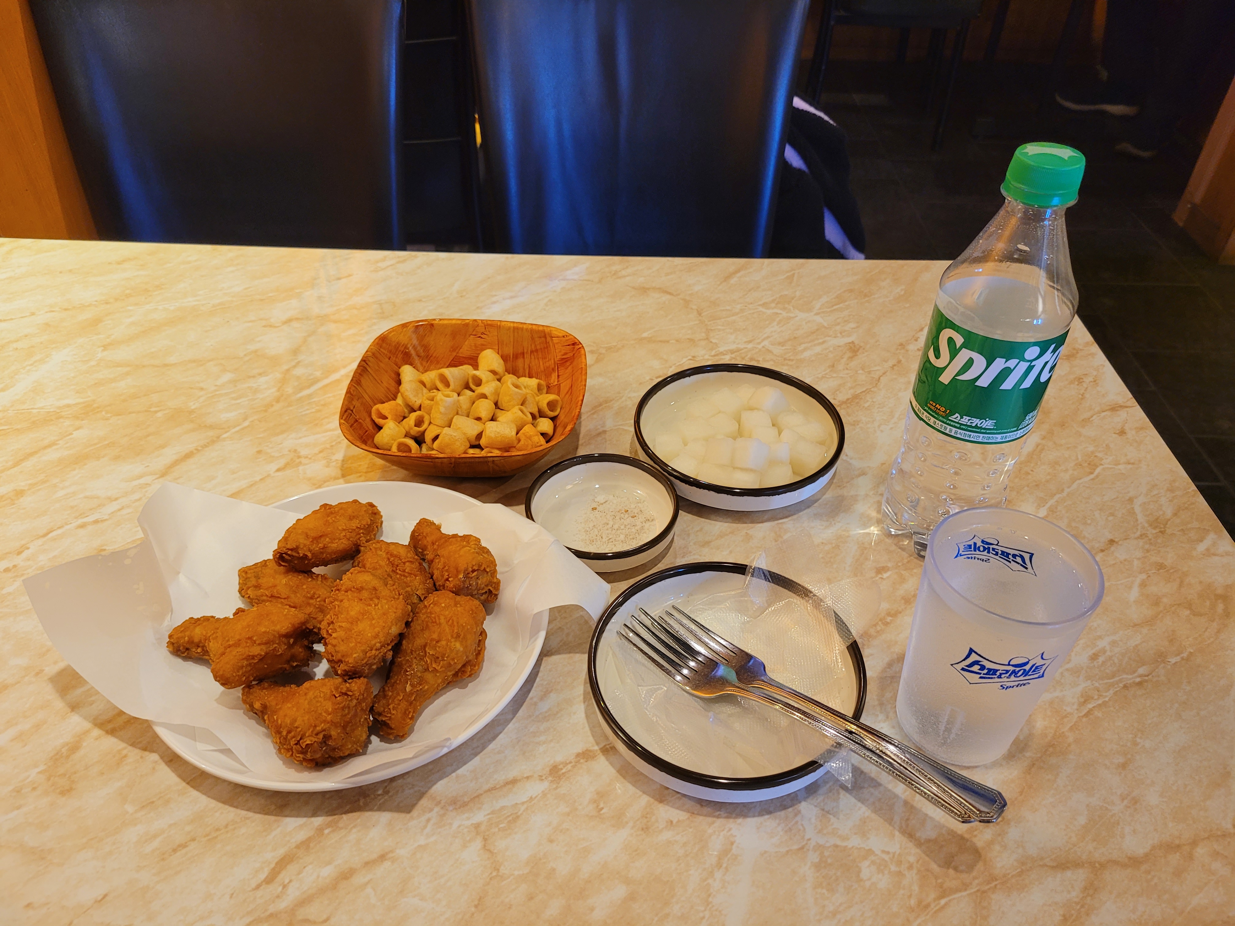 다 떨어져서 윙봉으로 대신 먹었네요.