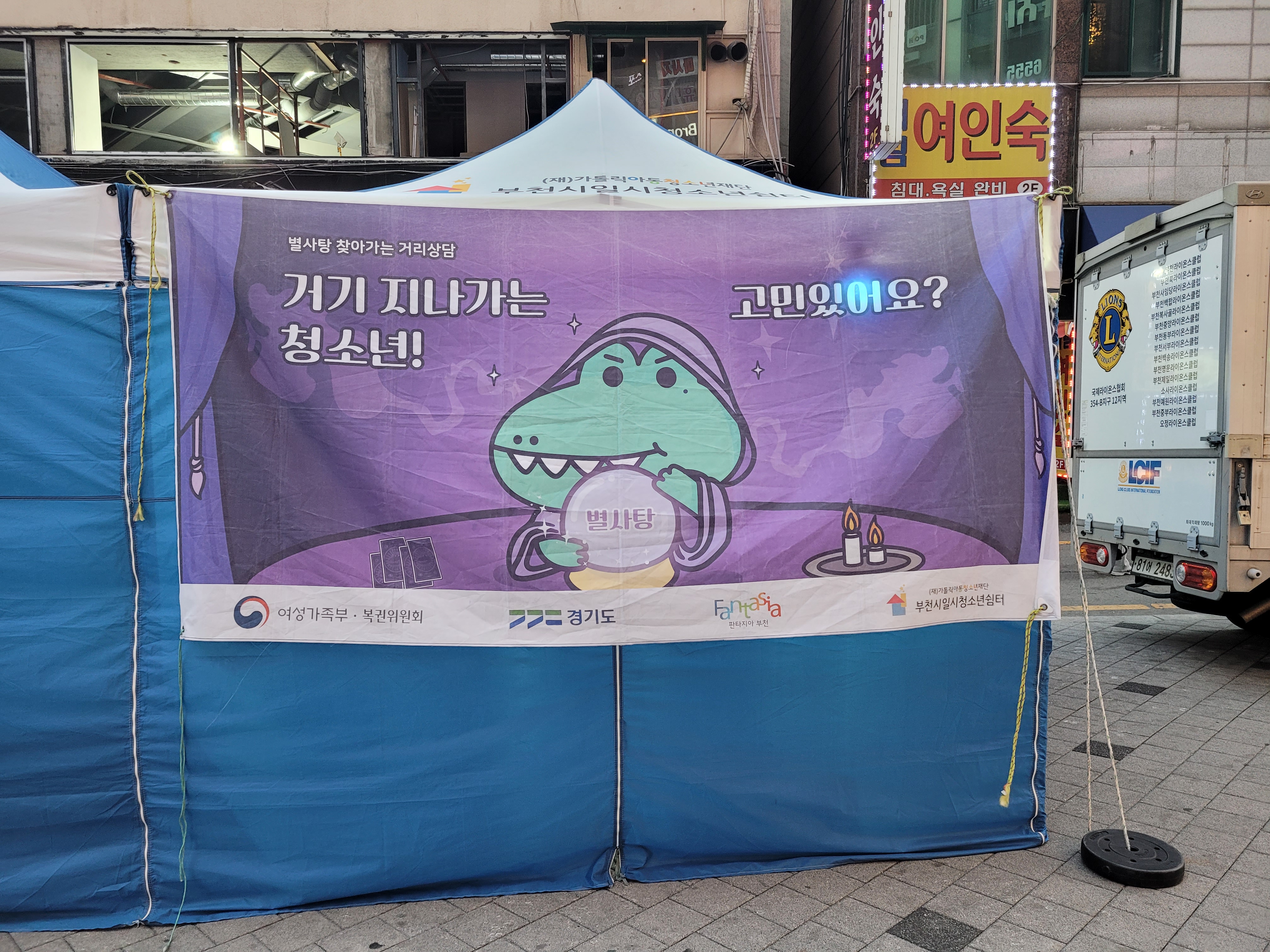 저녁먹고 복귀하는 중에 별사탕 찾아가는 거리상담 부스도