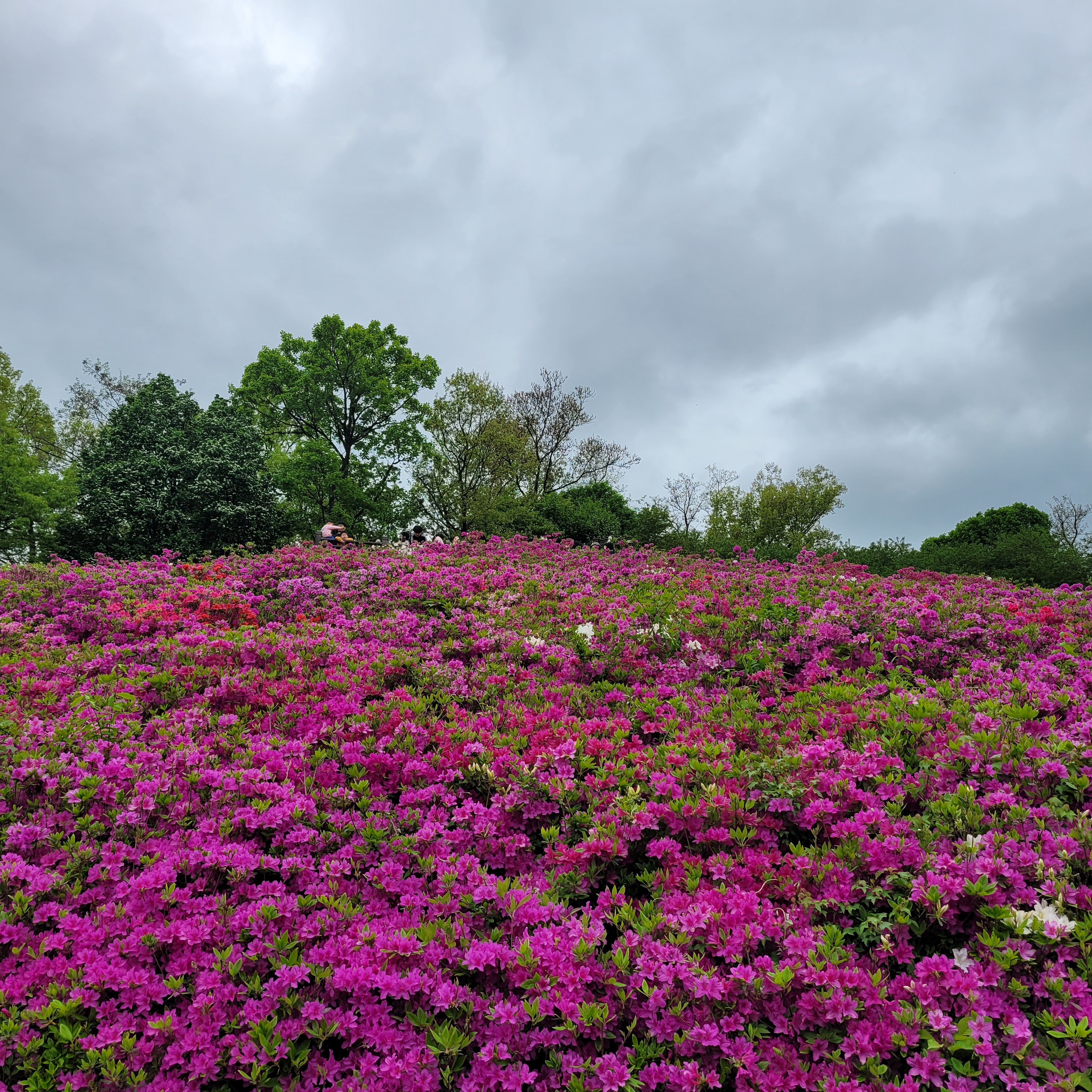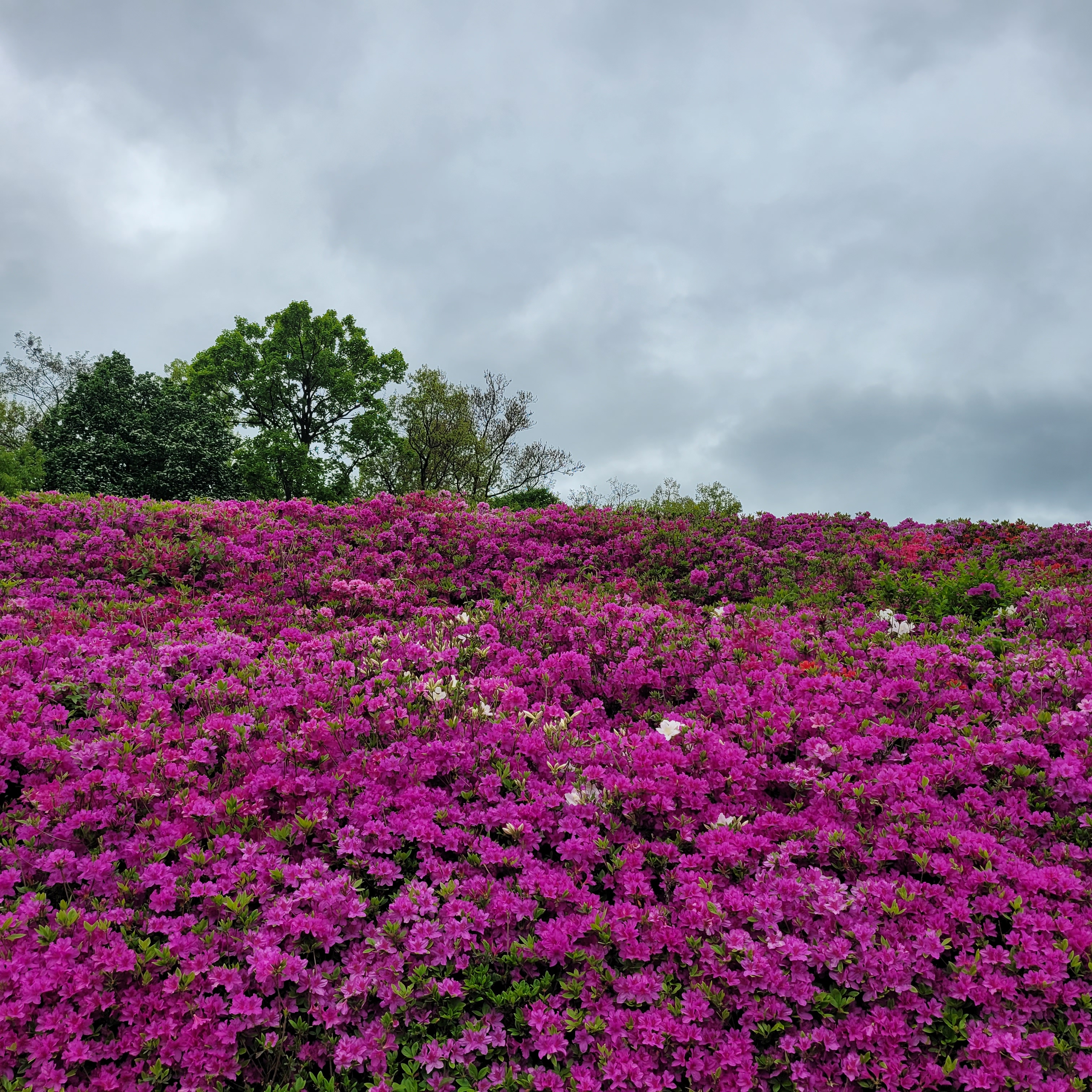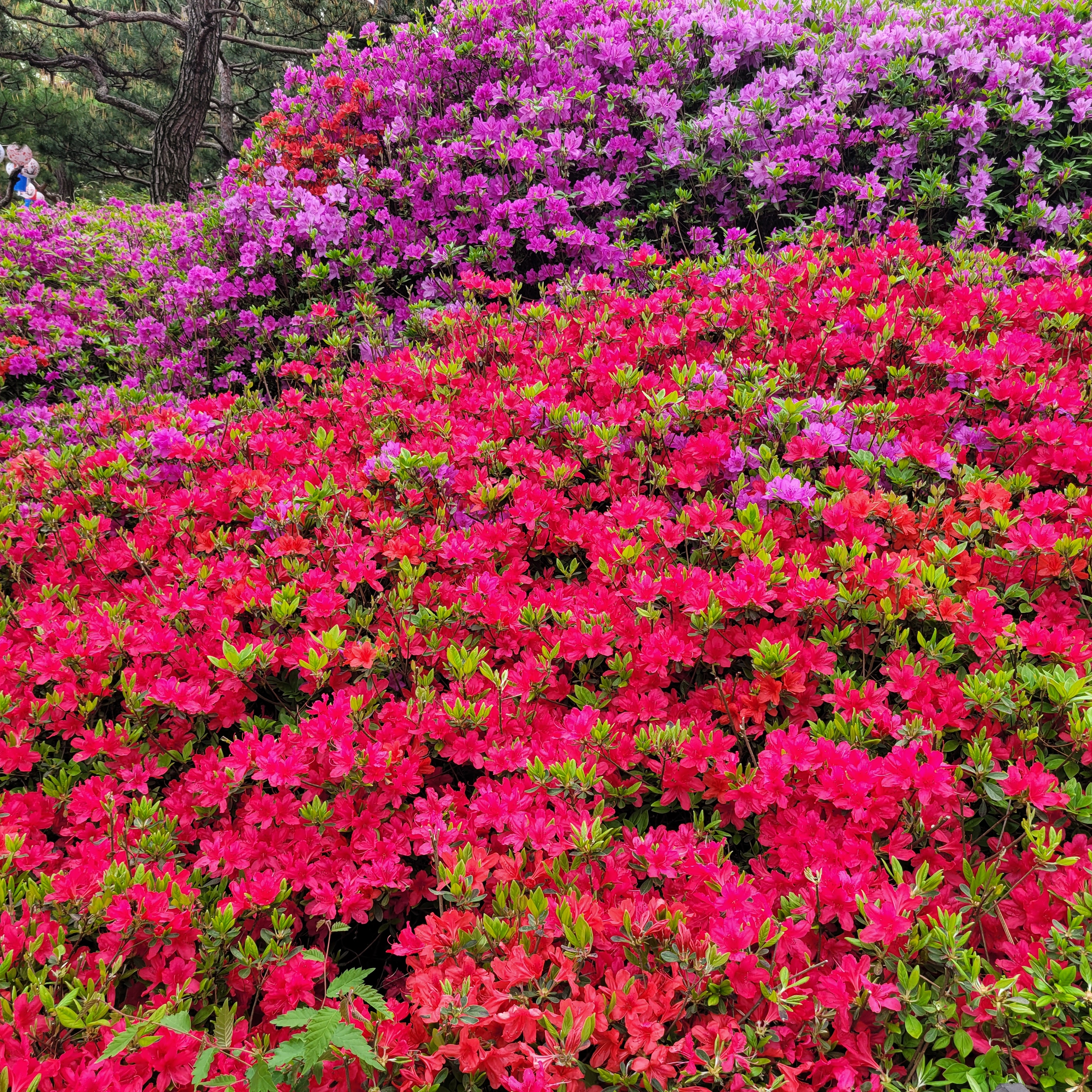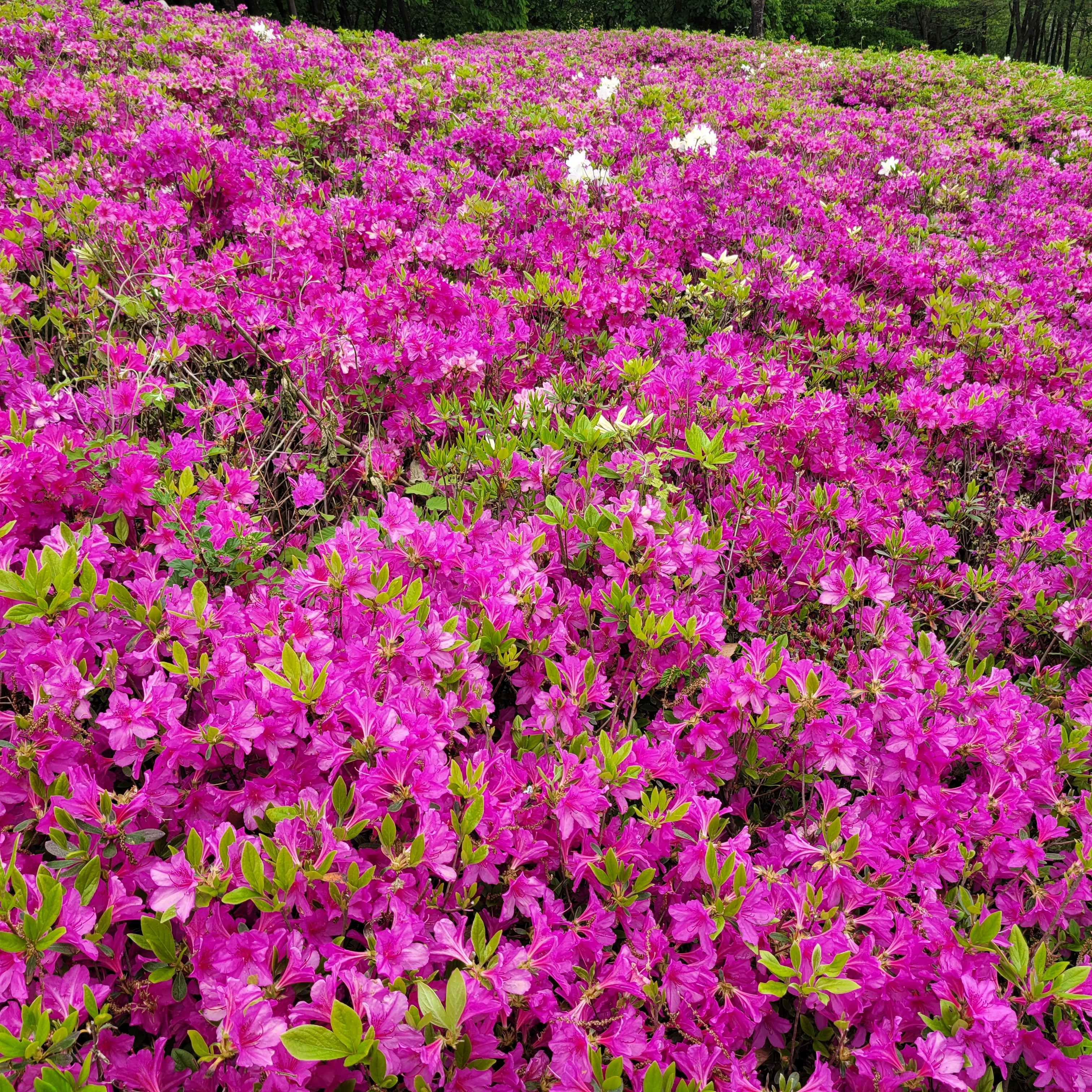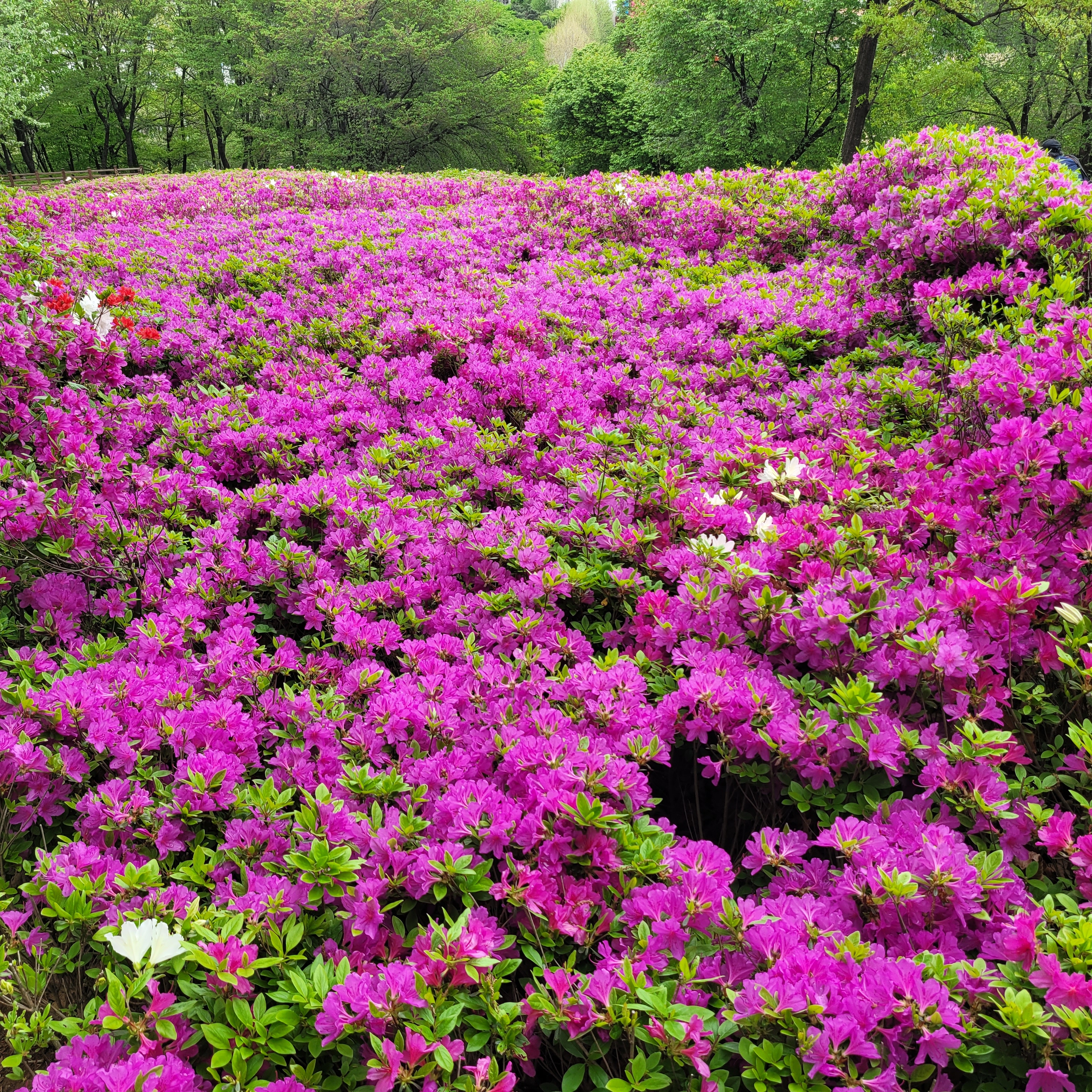 철쭉동산에 철쭉이 완전히 다 피지 않아서 군데군데 파란 곳들이 많아서 조금은