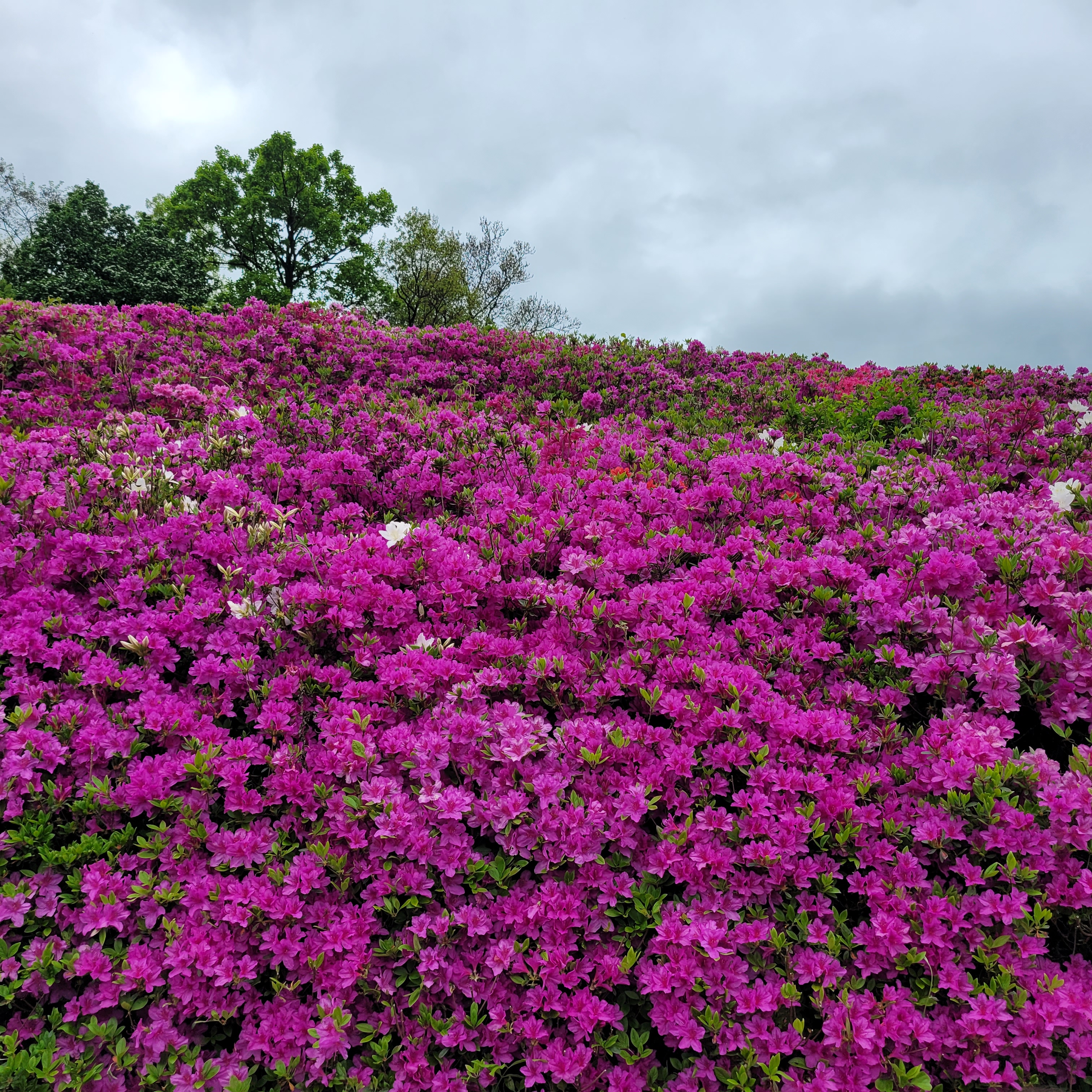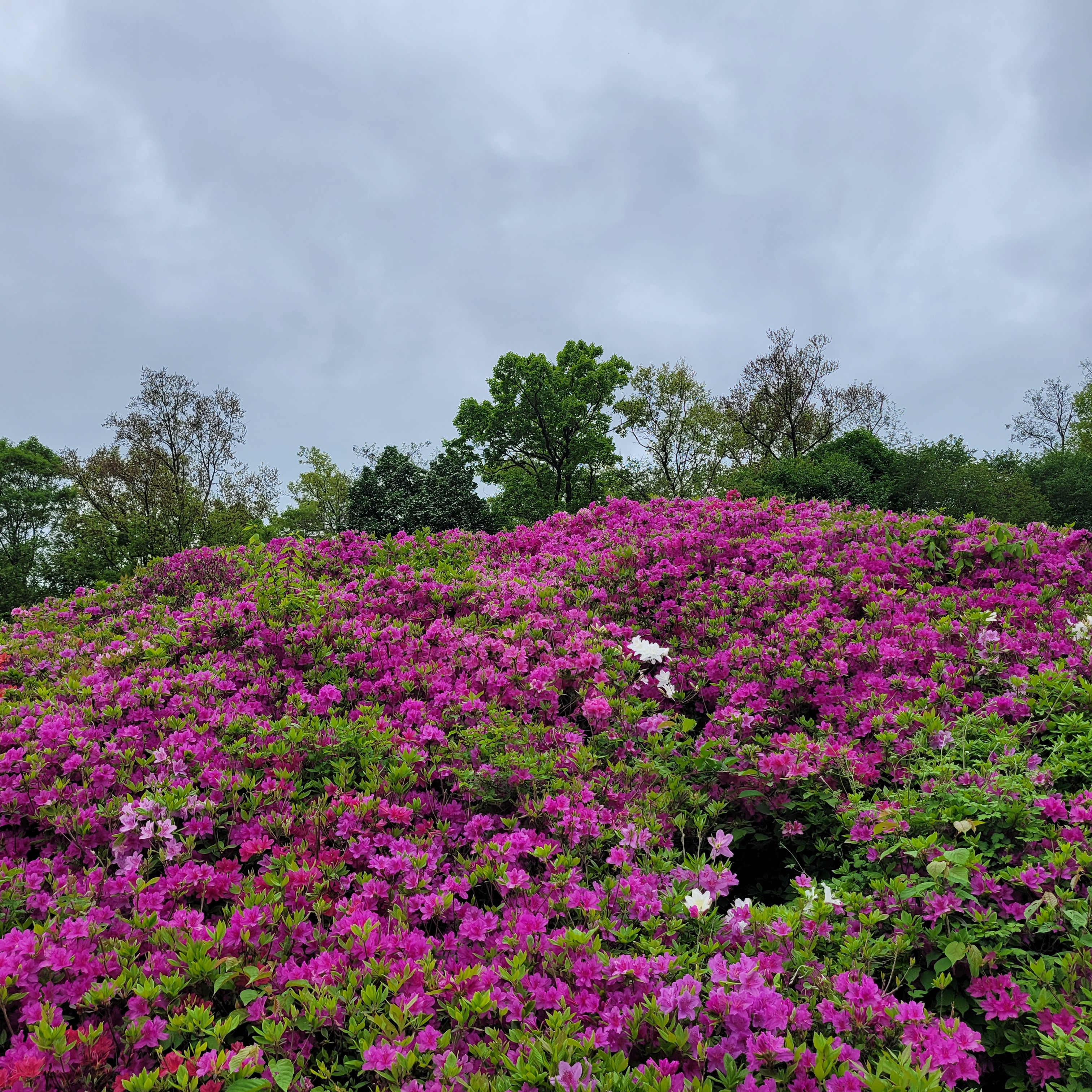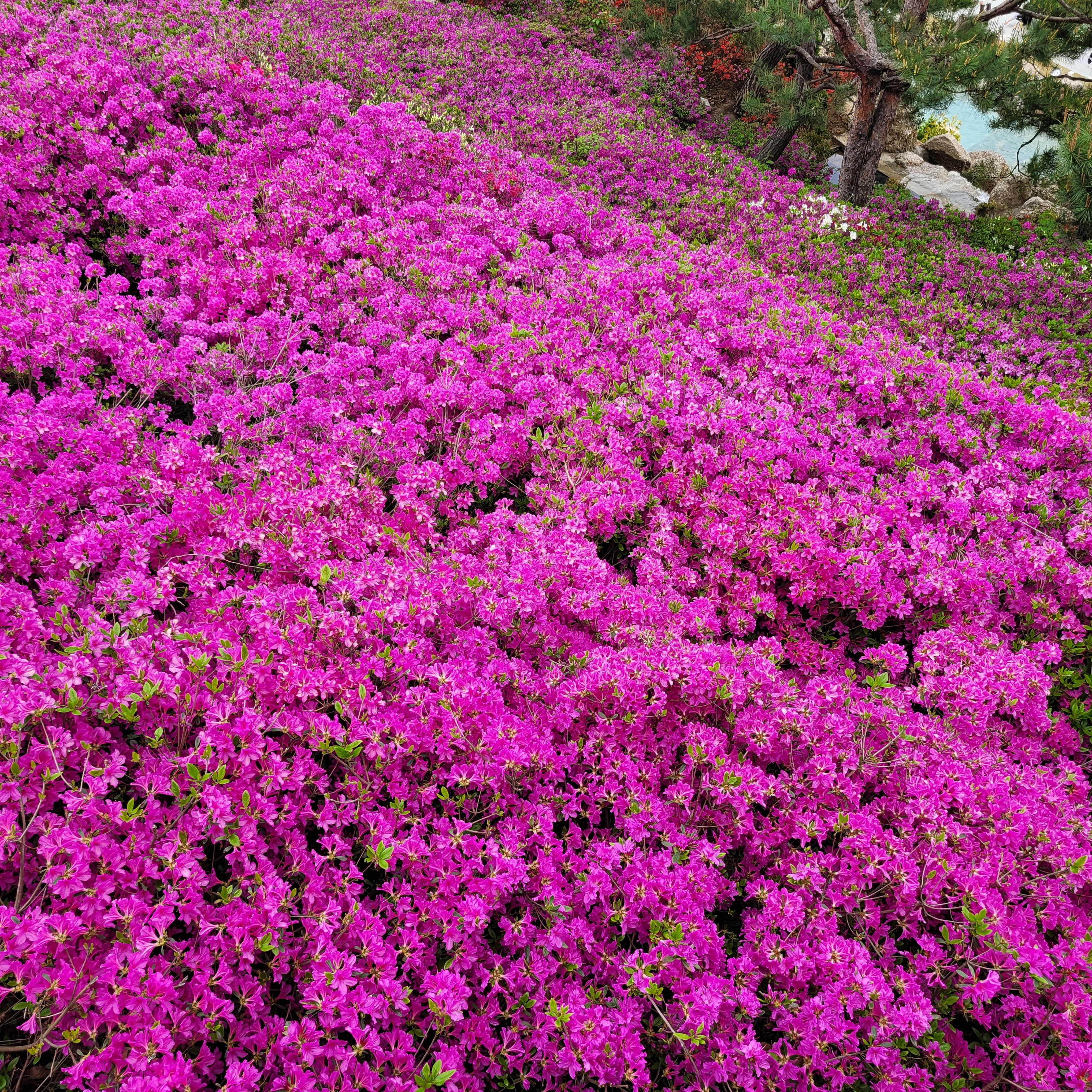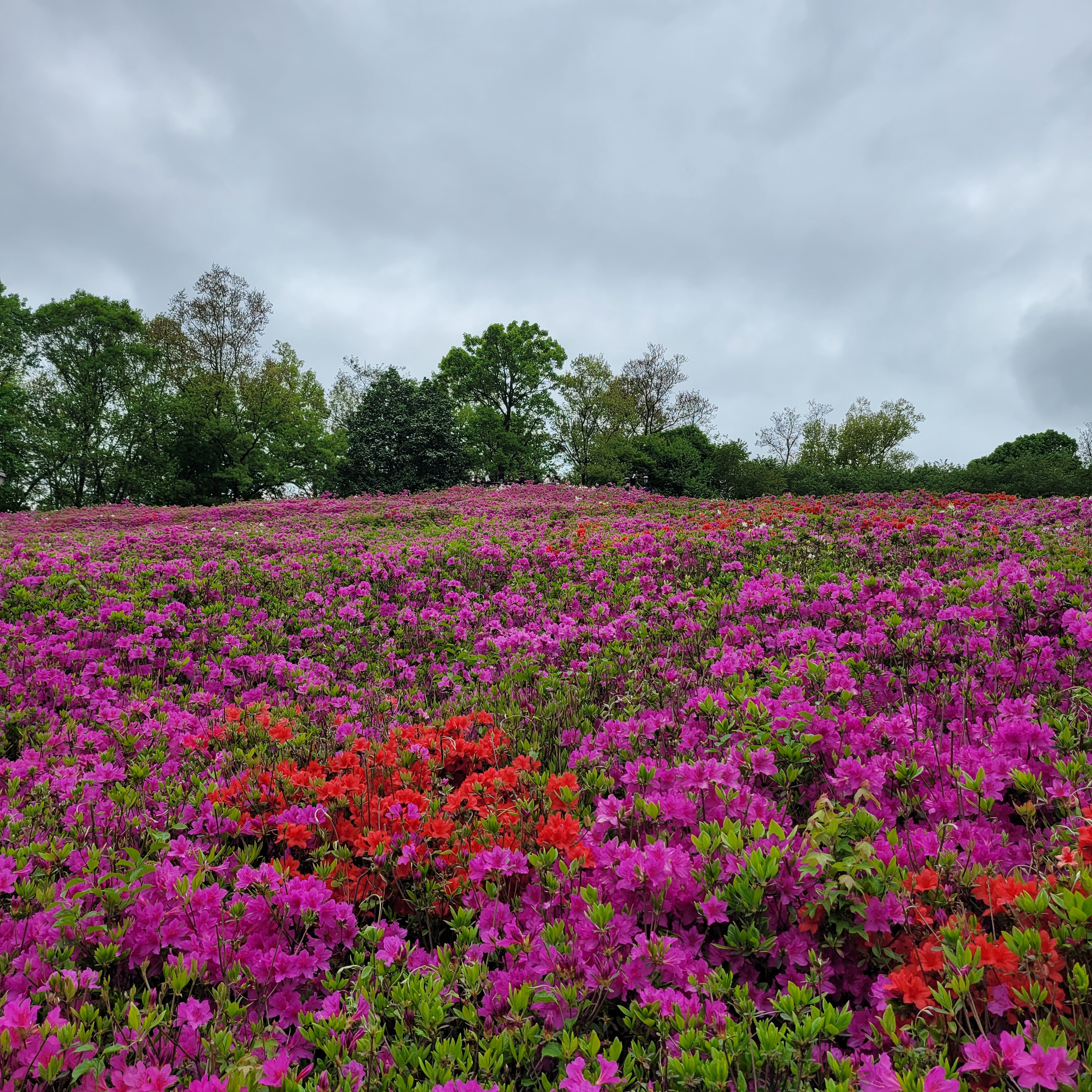 철쭉동산에 철쭉이 완전히 다 피지 않아서 군데군데 파란 곳들이 많아서 조금은