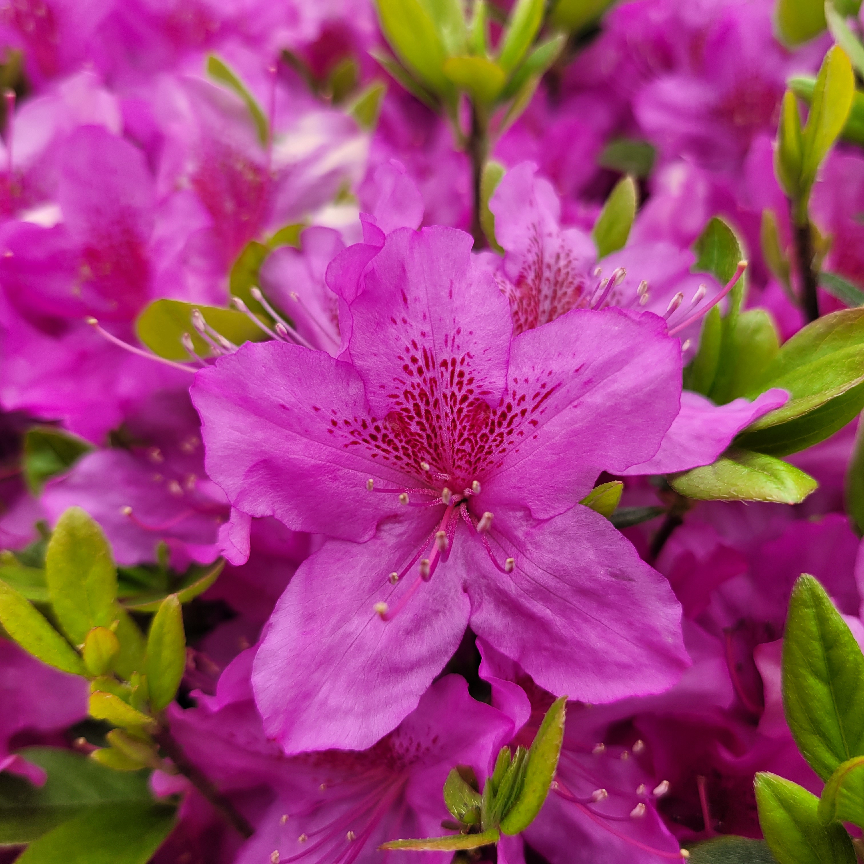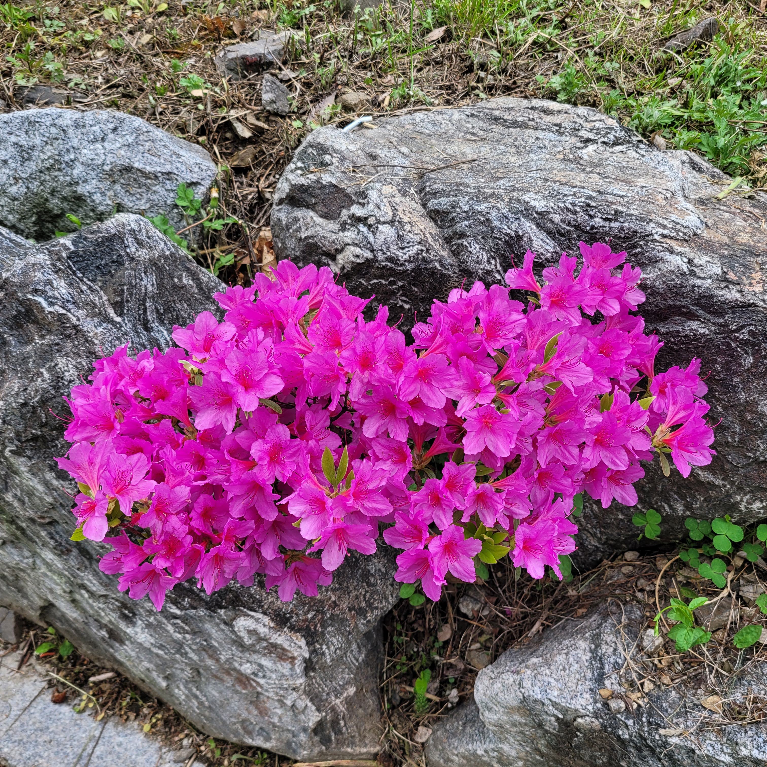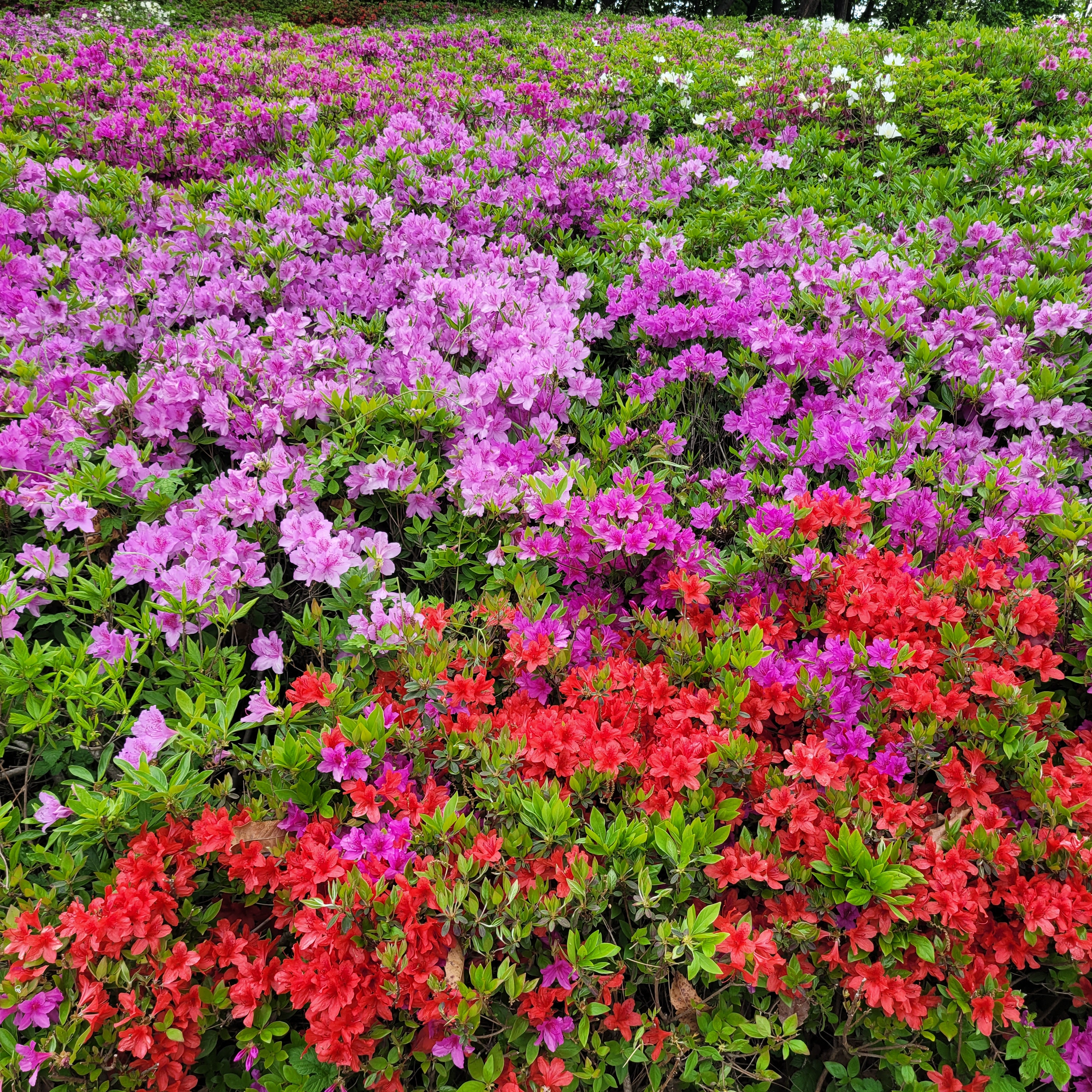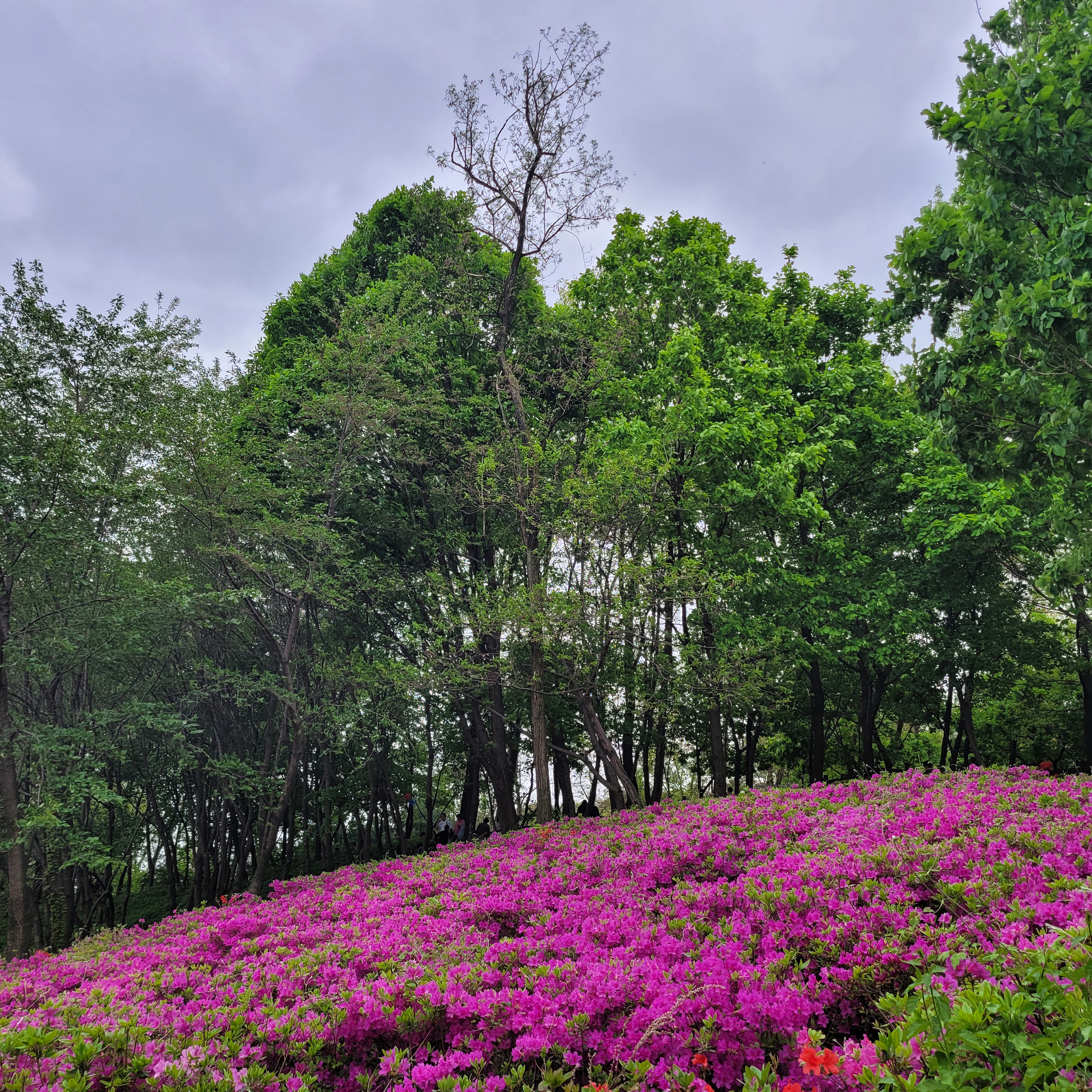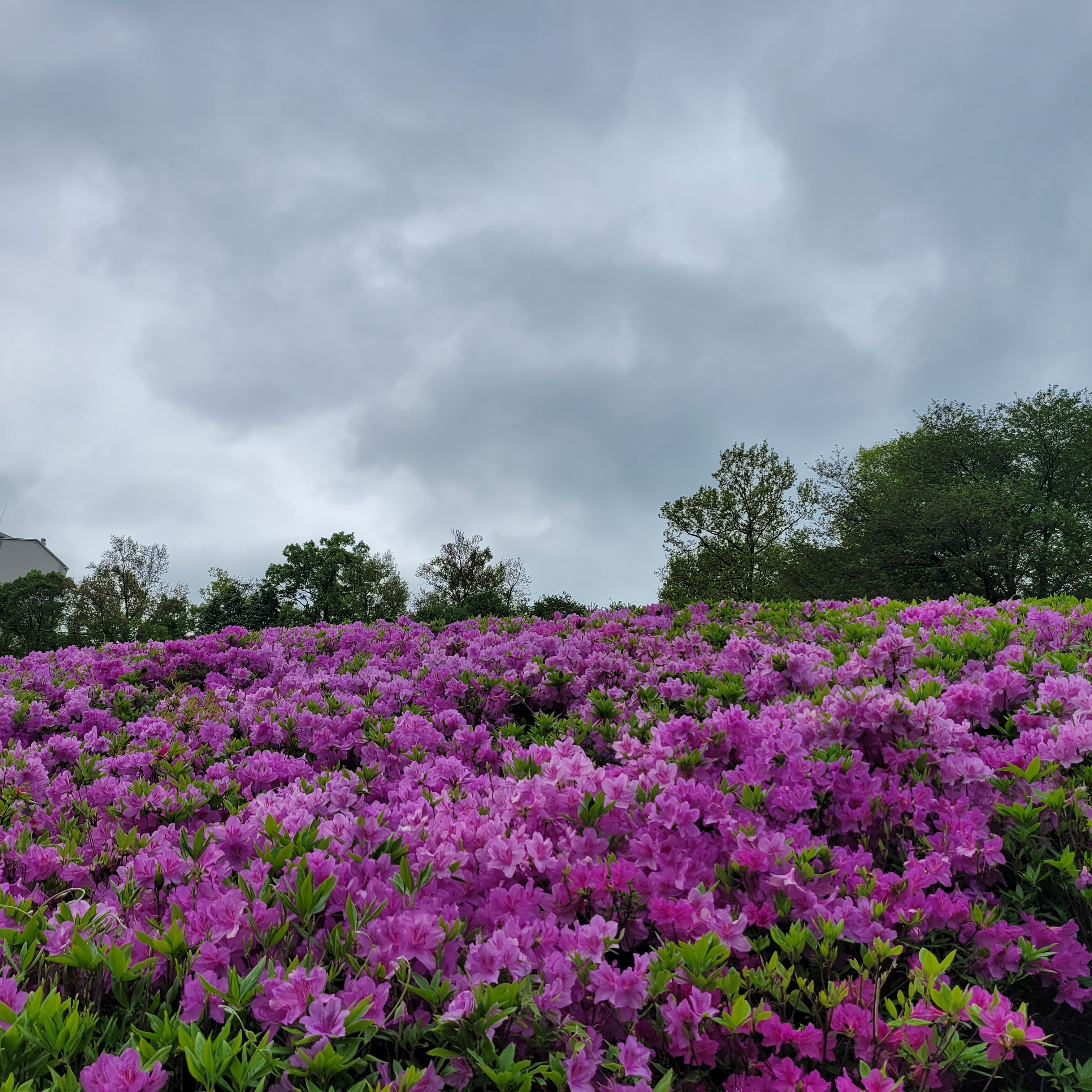 철쭉동산에 철쭉이 완전히 다 피지 않아서 군데군데 파란 곳들이 많아서 조금은