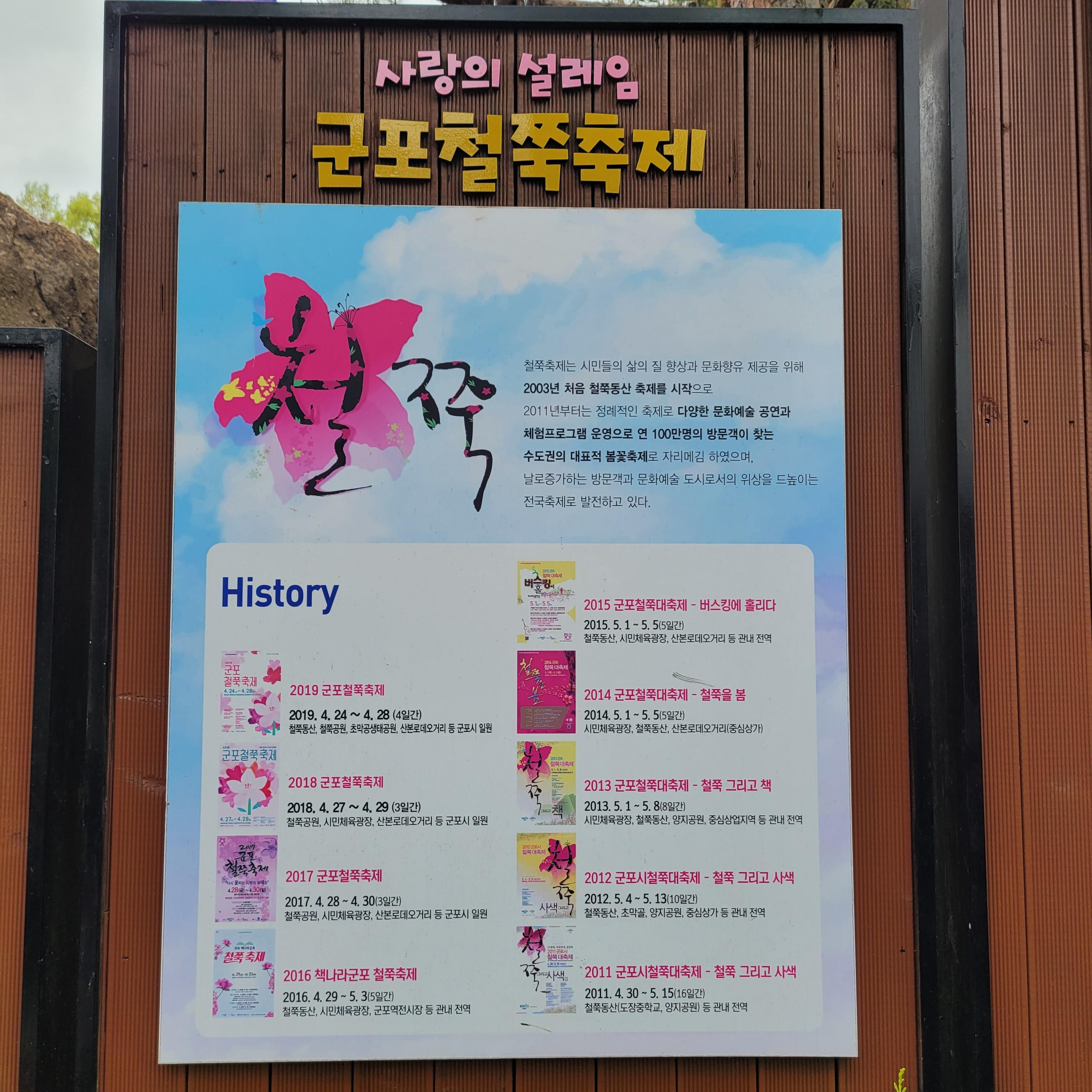 2번째로 가보는 축제인데 철쭉동산, 철쭉공원, 시민체육광장, 노차로드 등 군포시