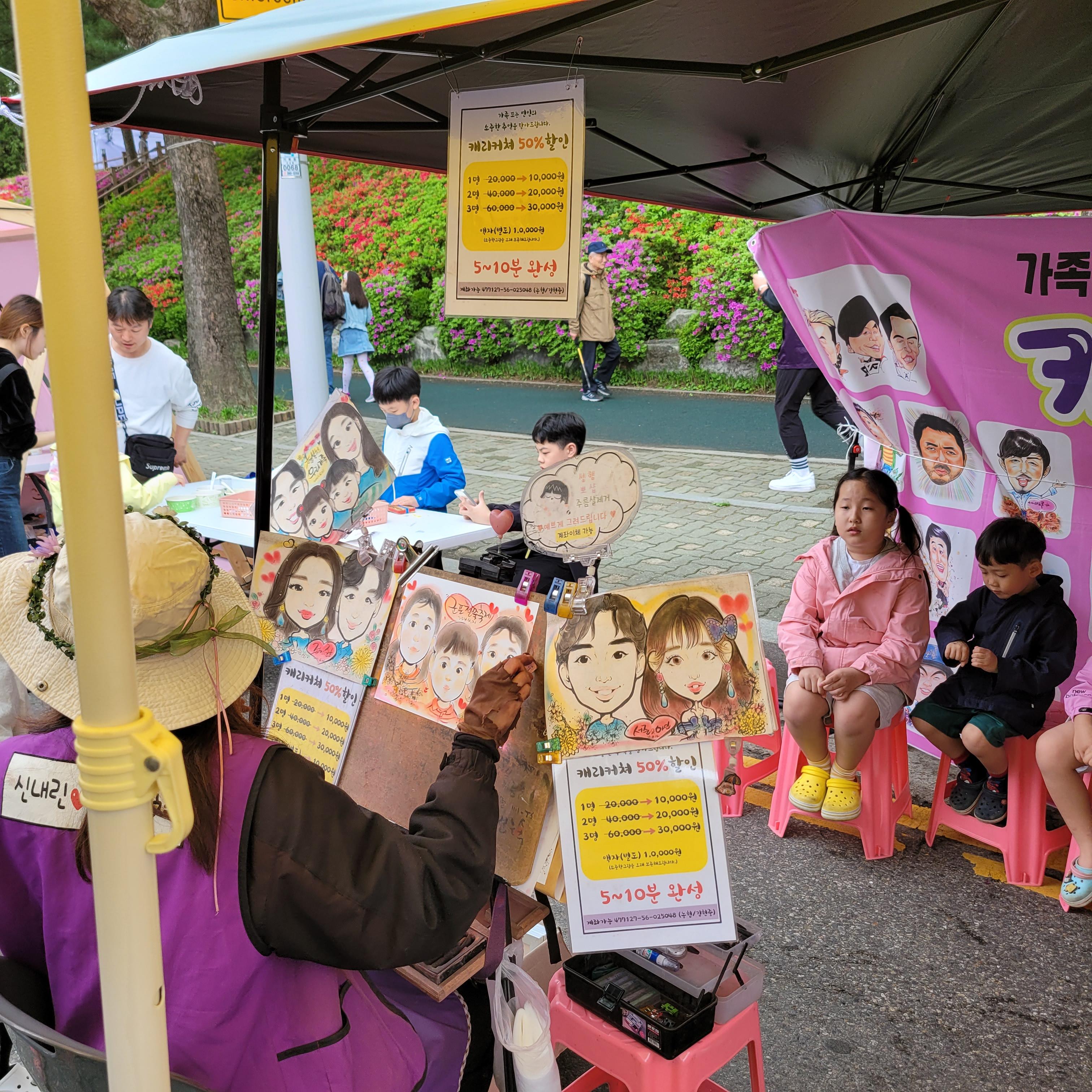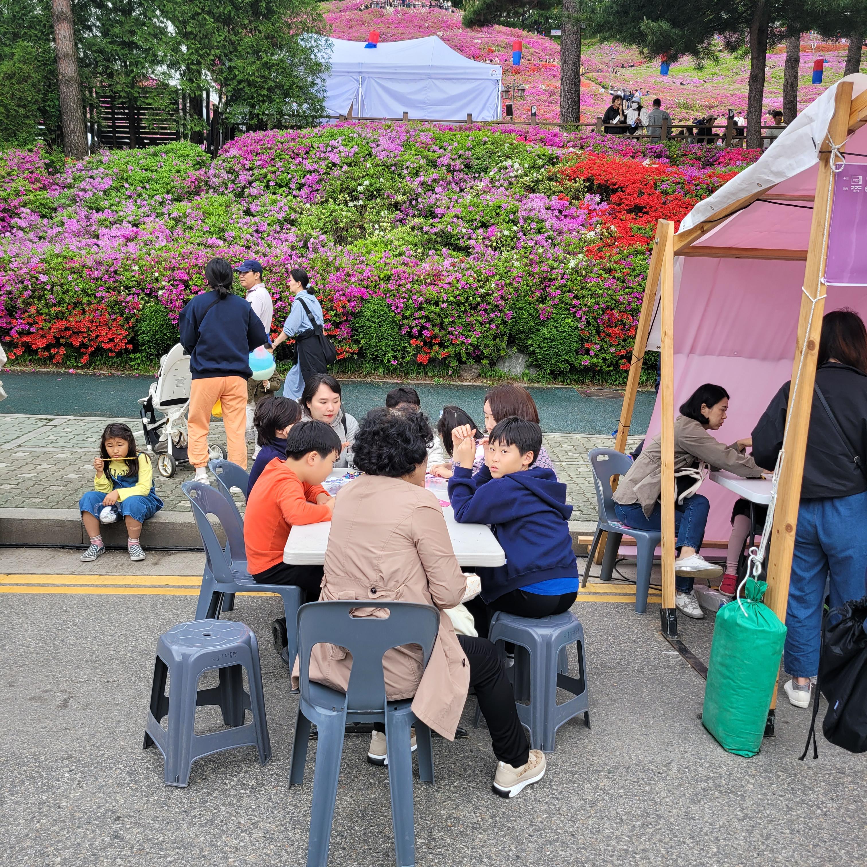 철쭉동산 모두 둘러본 뒤에는 차없는거리 일대에 마련된 각종 체험 먹거리 부스들을