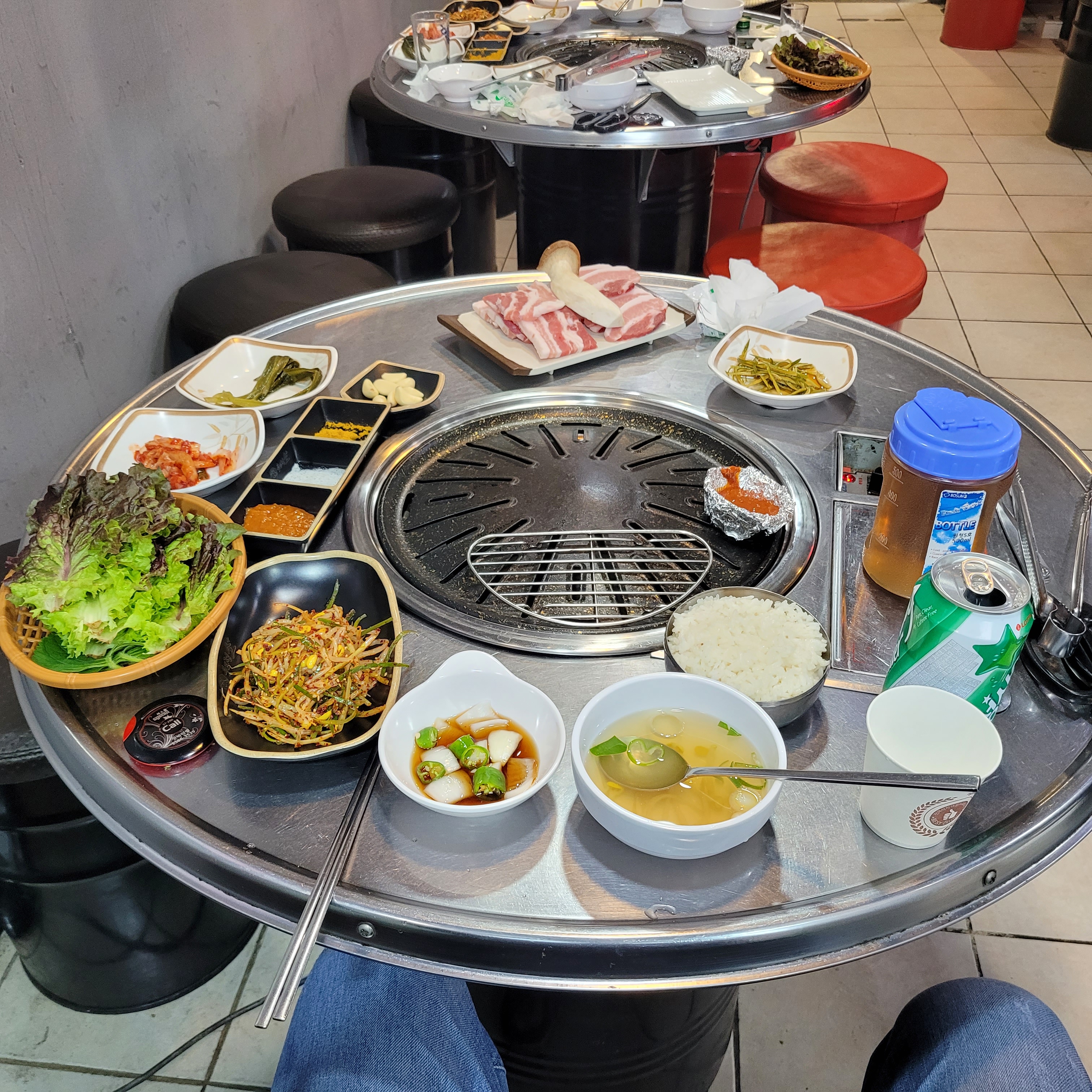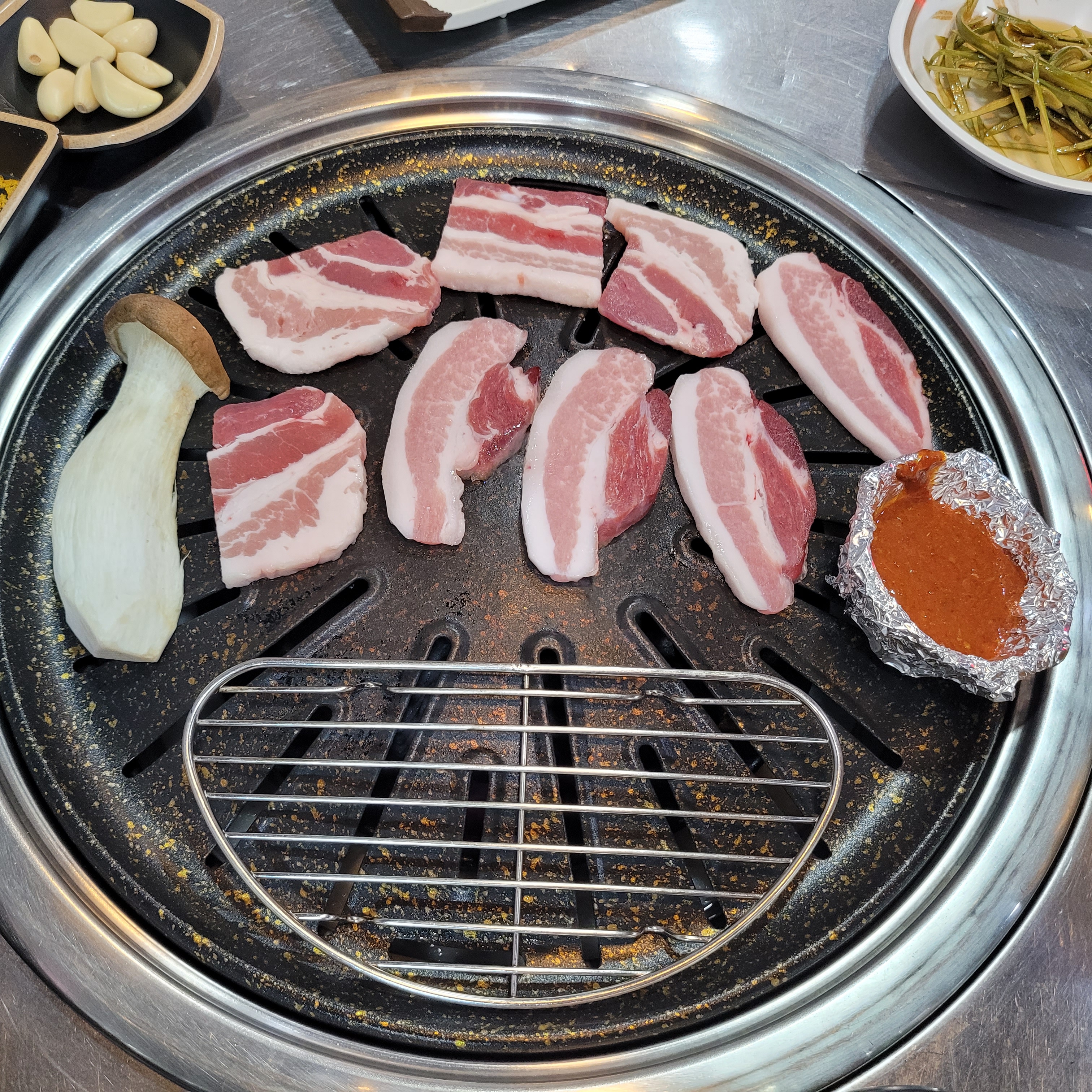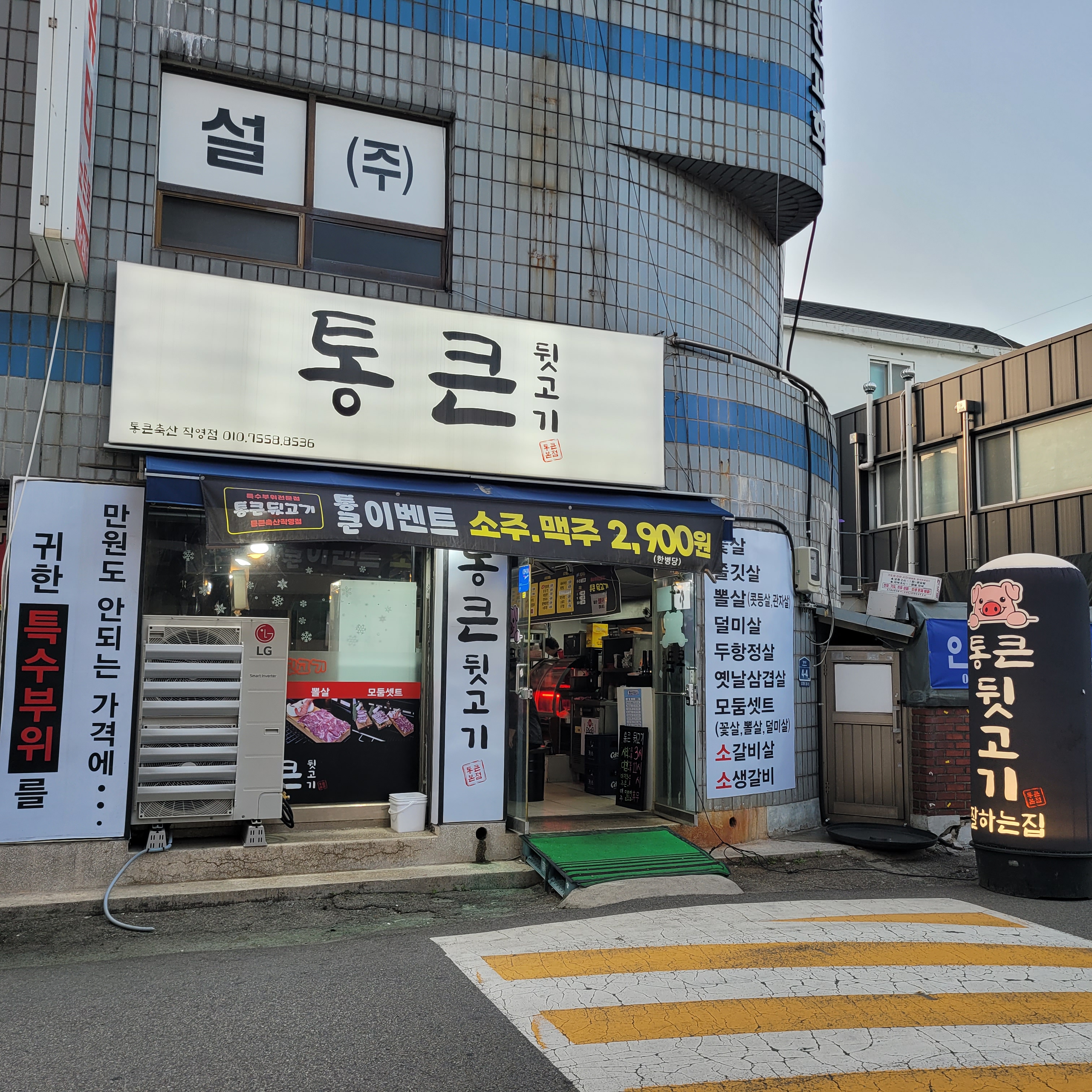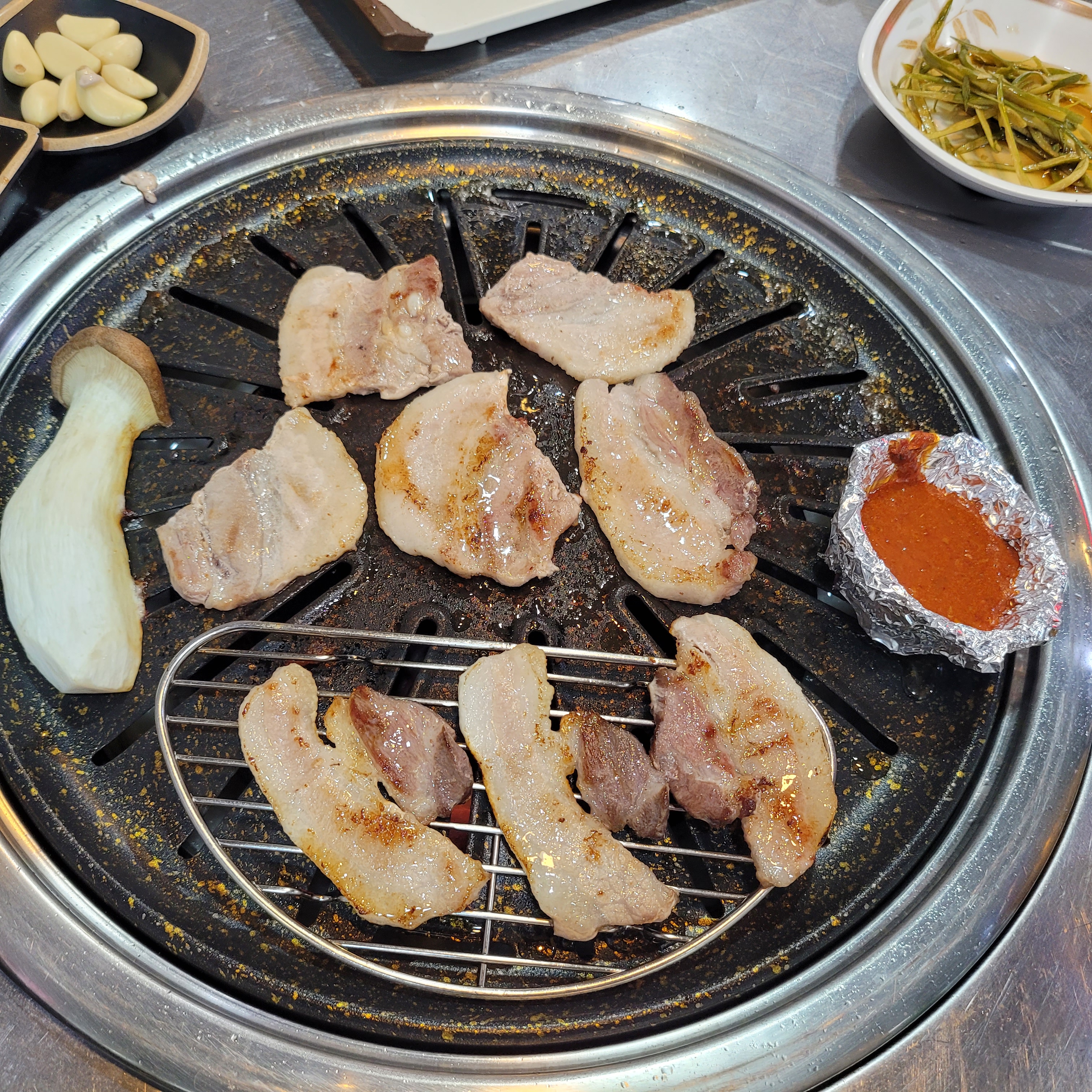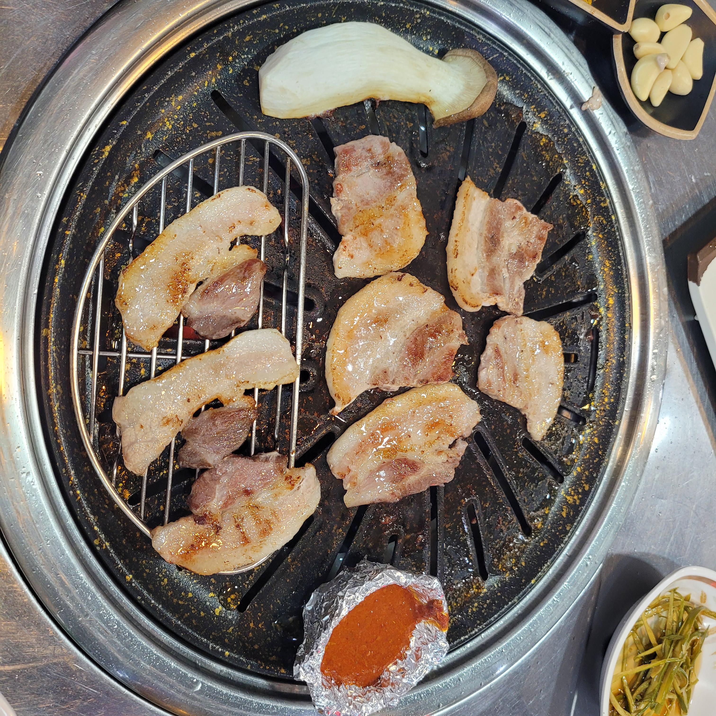 그리고 저녁에는 인천 십정동 통큰 뒷고기집에서 삽겹살과 꽃살을 먹었는데