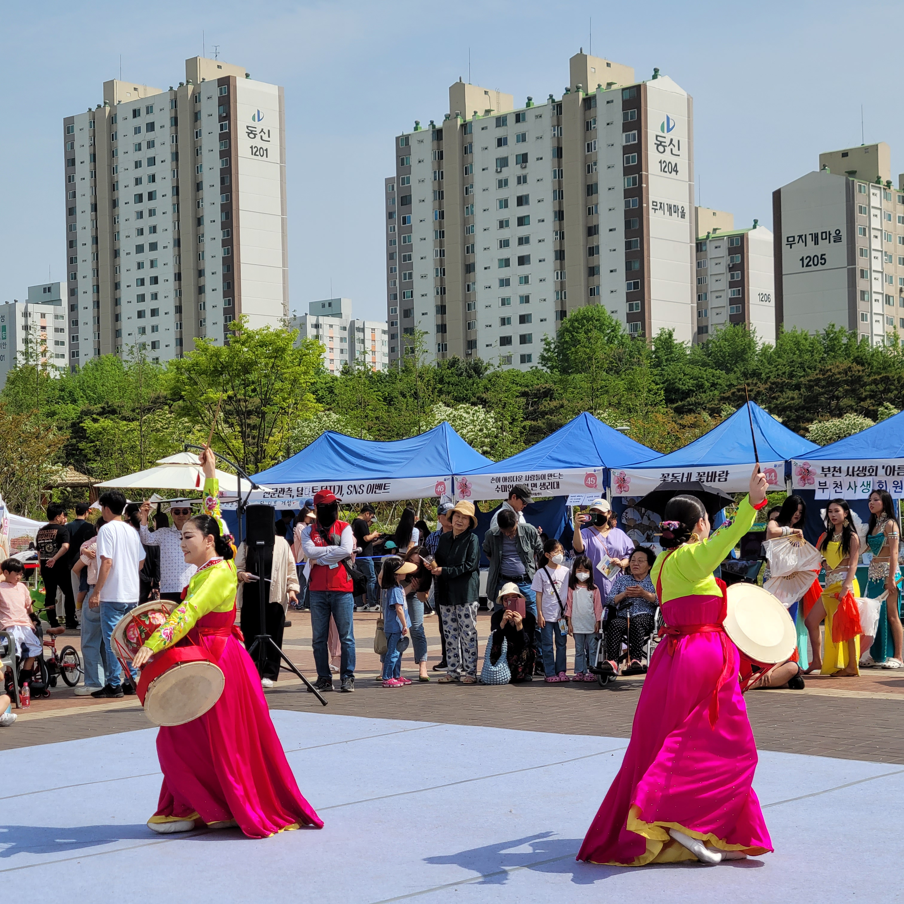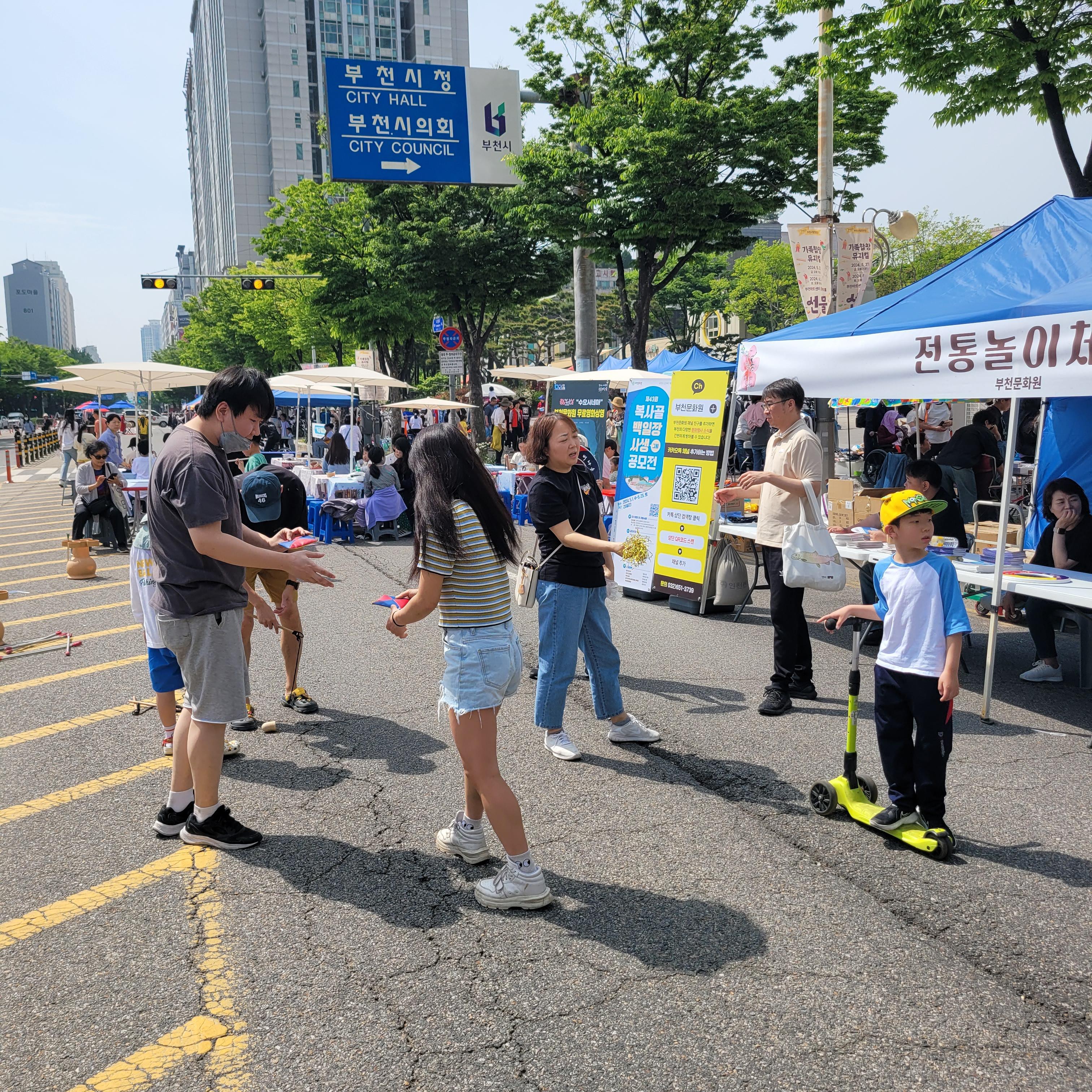 공연 체험행사들과 토요나눔장터가 열리고 있있고 부천중앙공원 일대에도 각종
