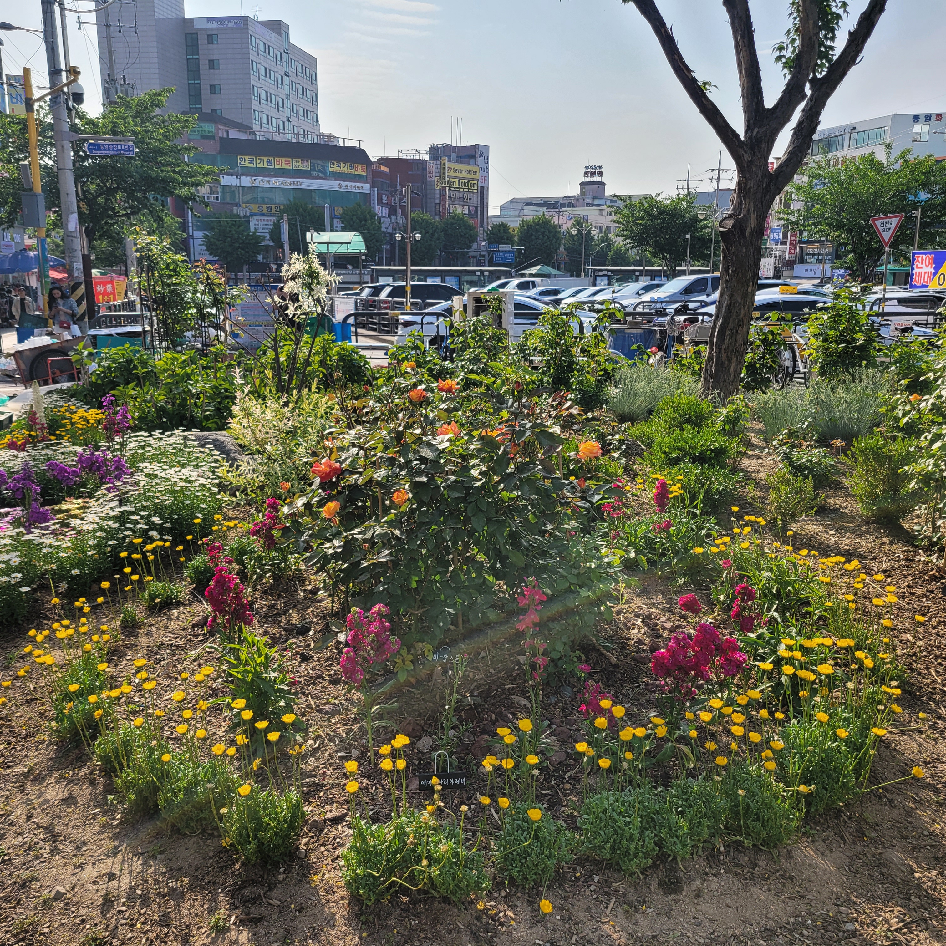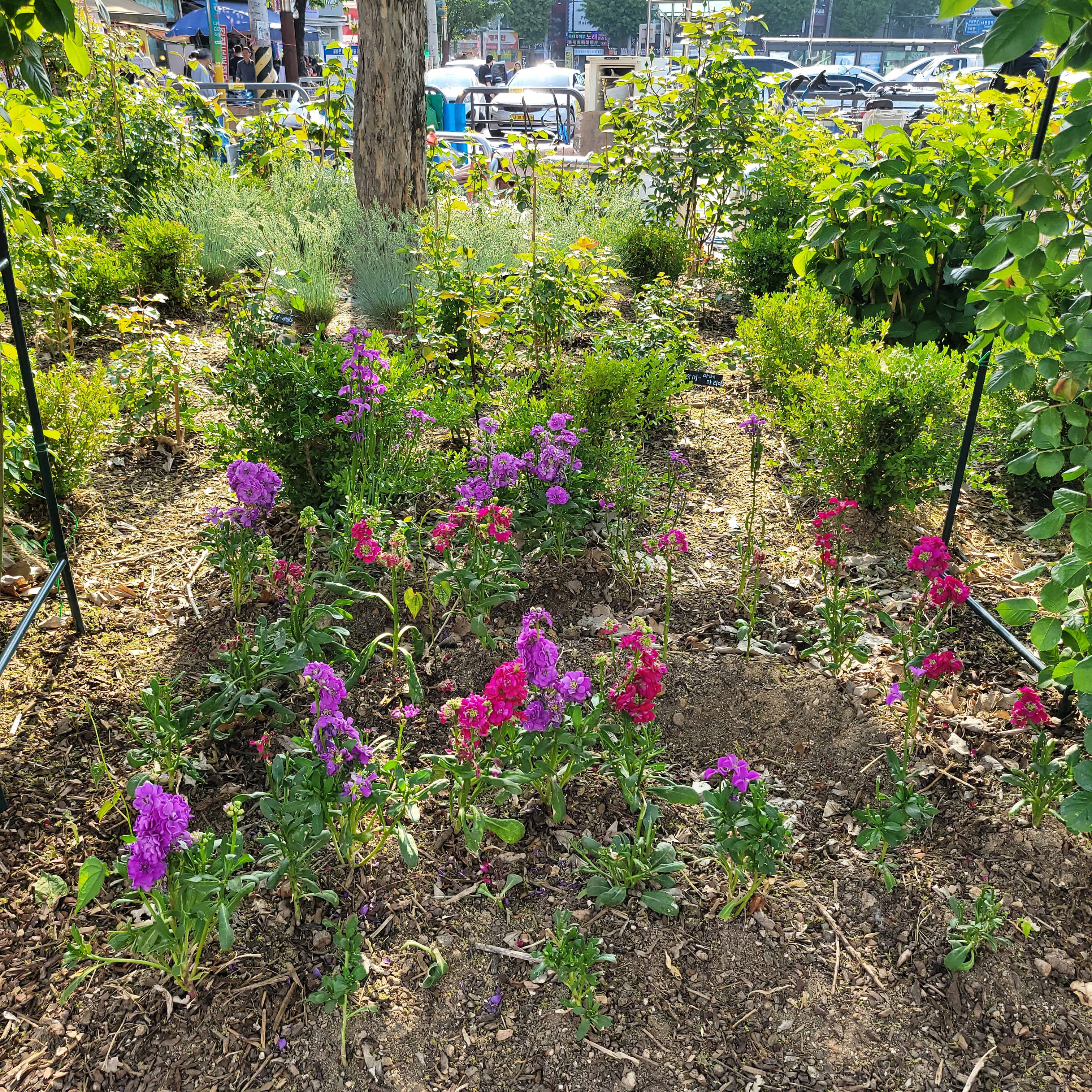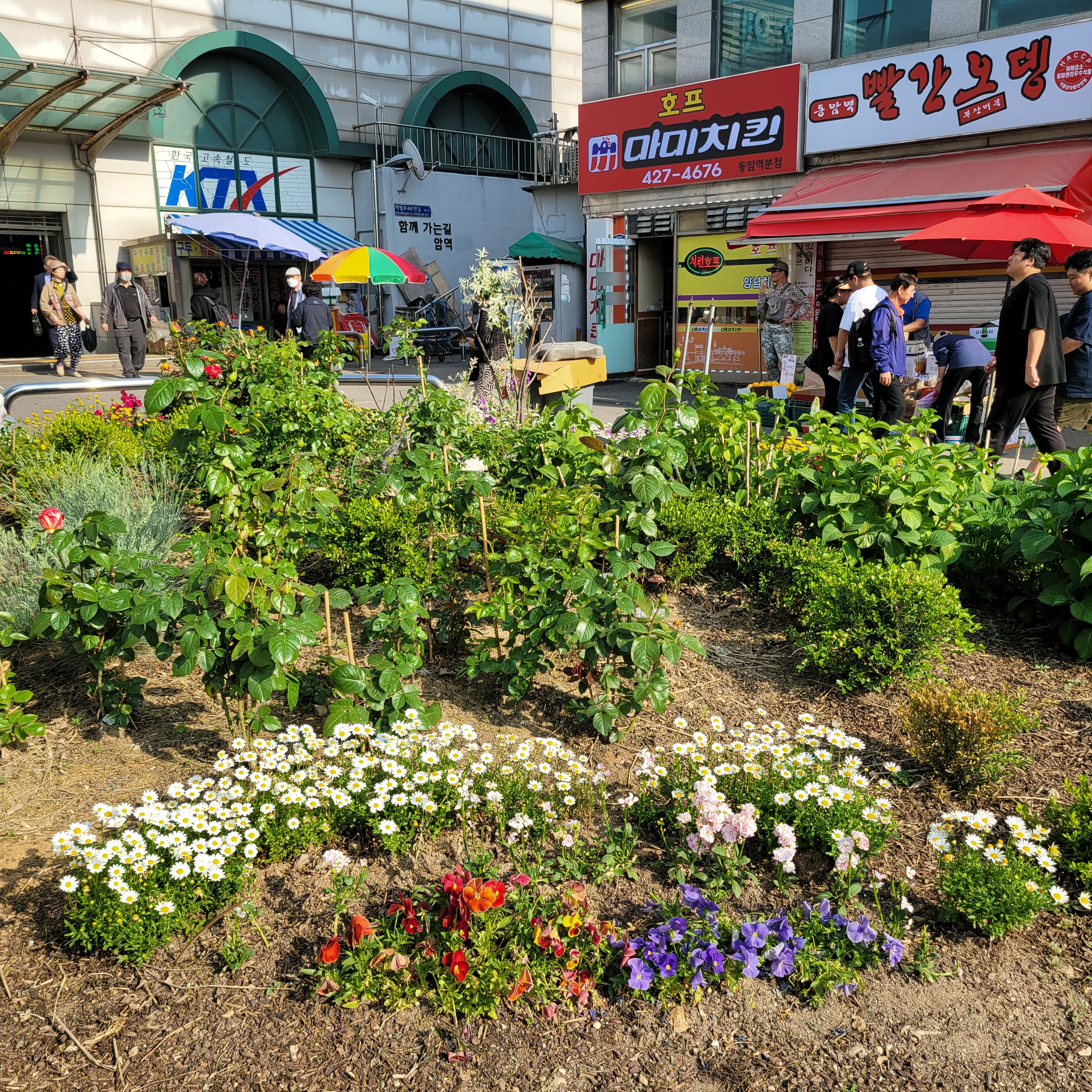 전철타고 동암역에 도착했는데 동암역 북광장에 도심속 힐링정원이라고 봄꽃들이 전시가