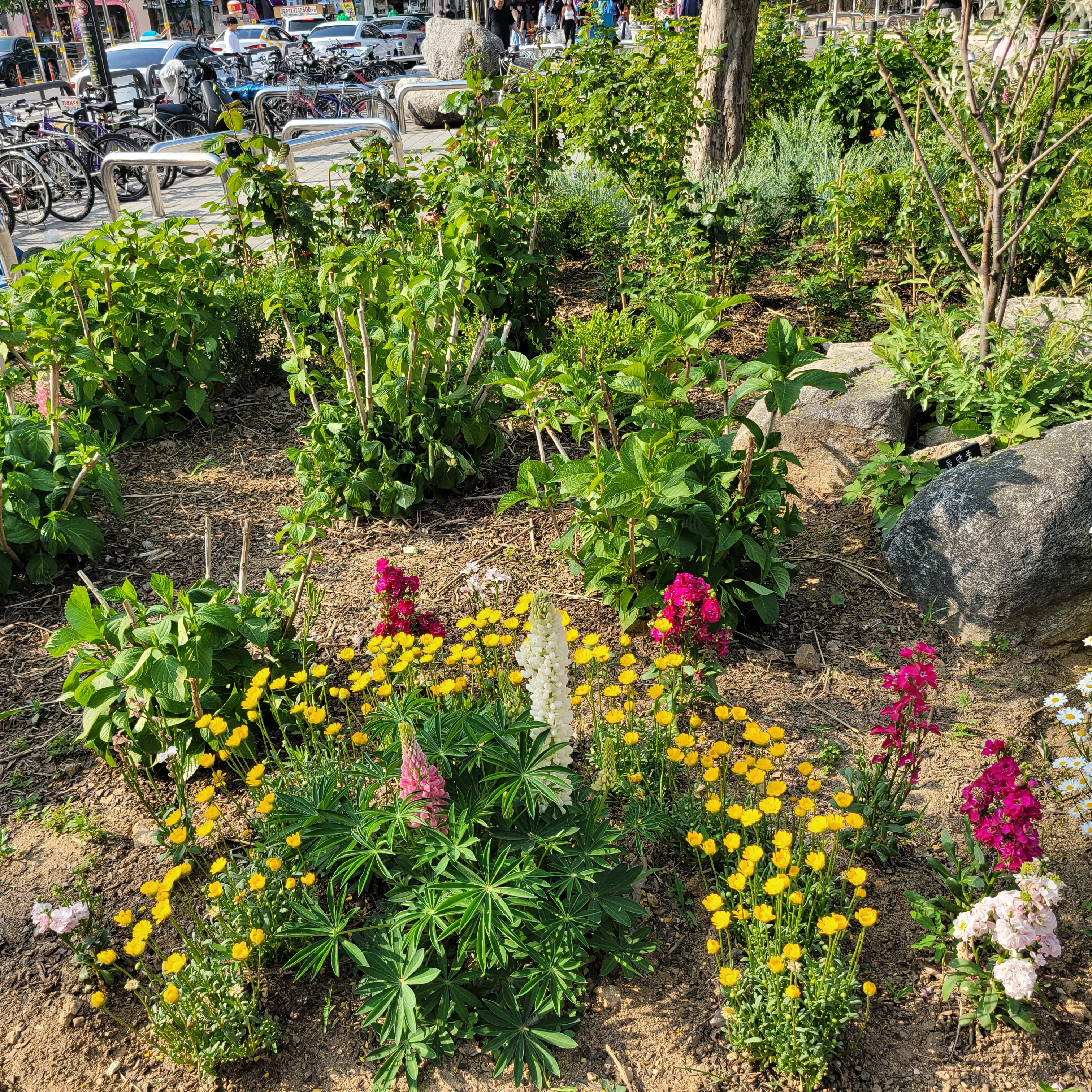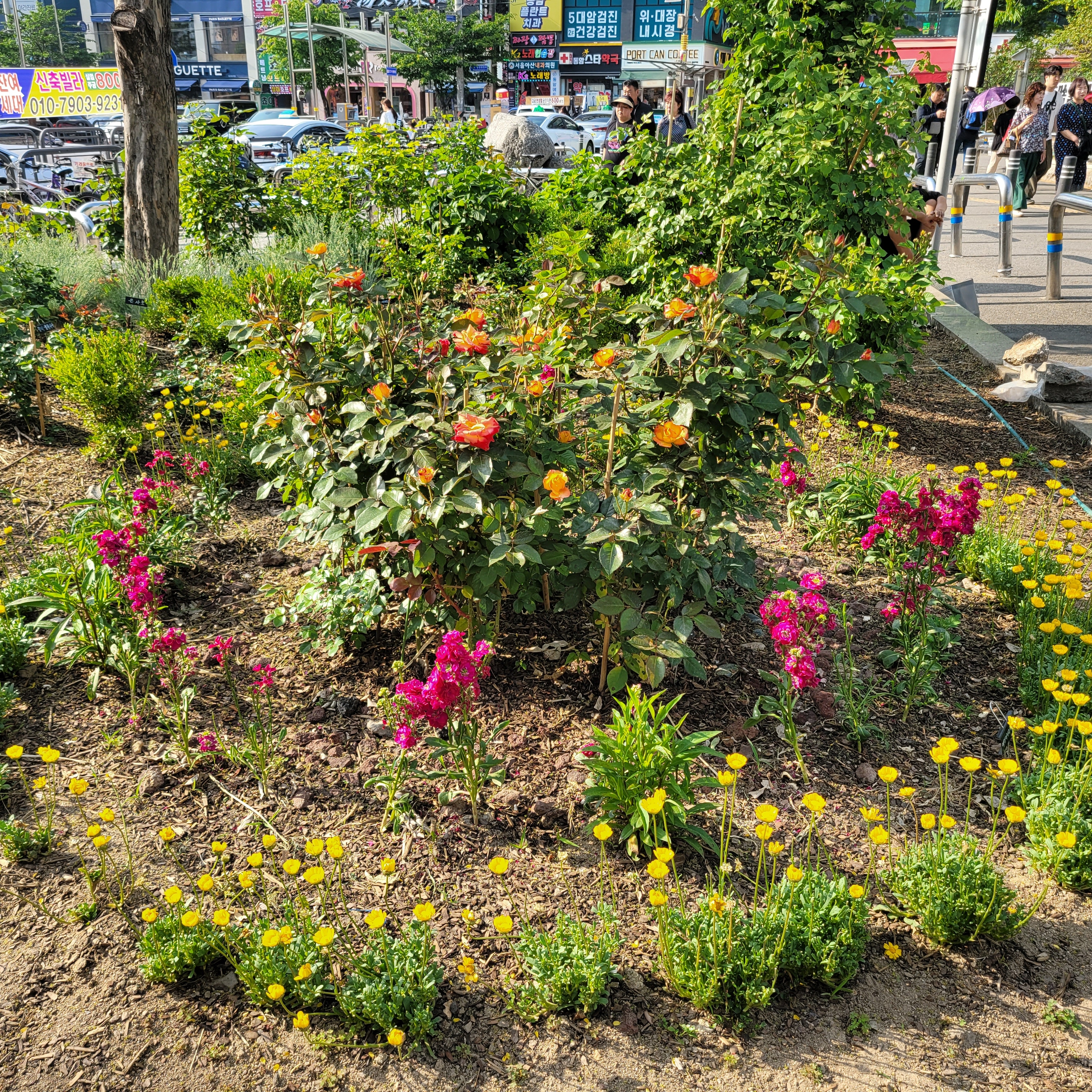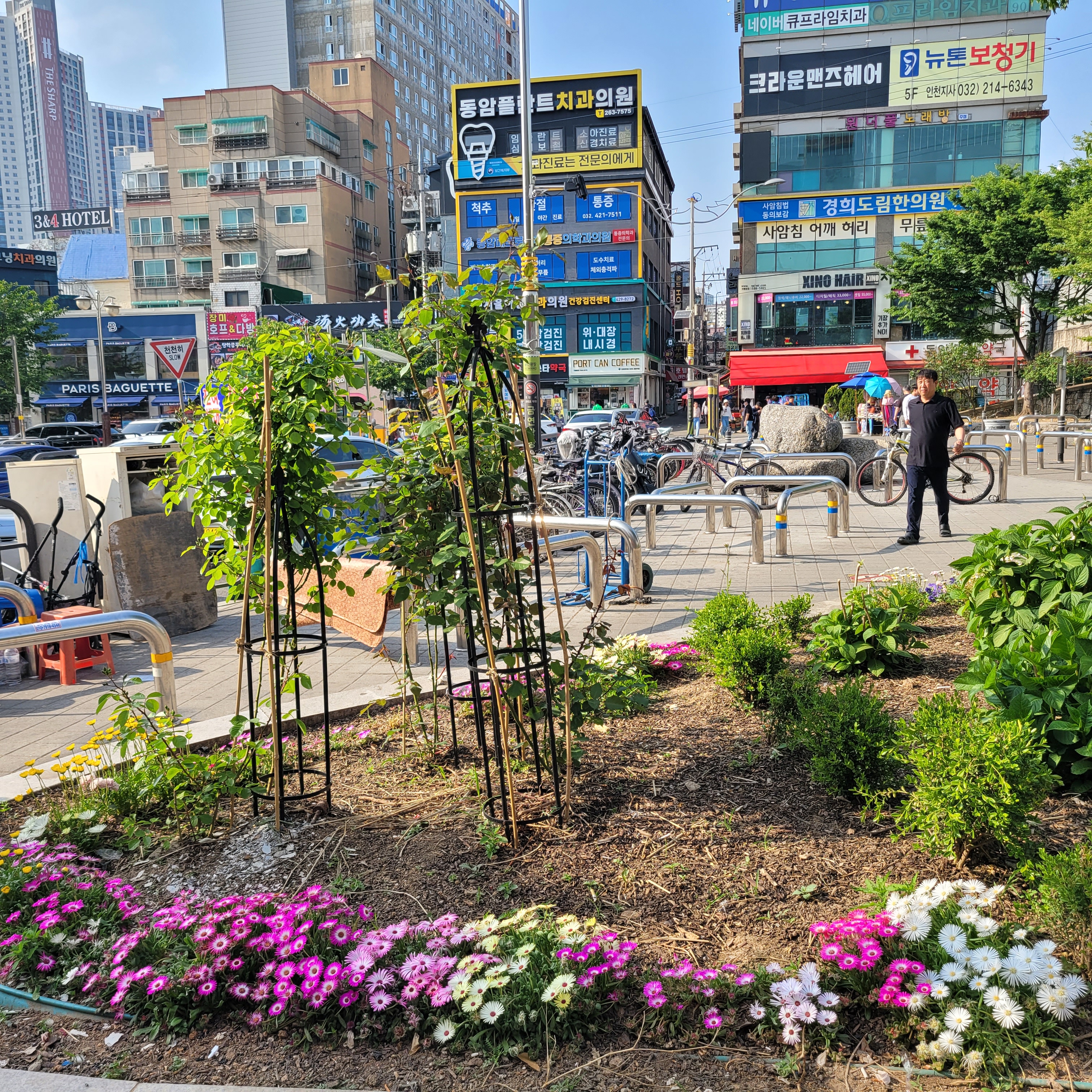 전철타고 동암역에 도착했는데 동암역 북광장에 도심속 힐링정원이라고 봄꽃들이 전시가