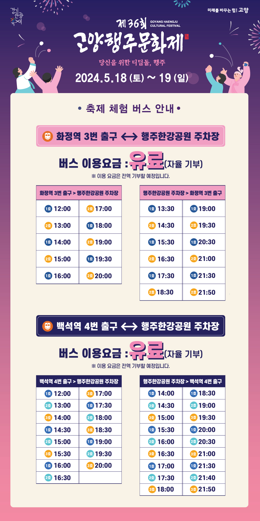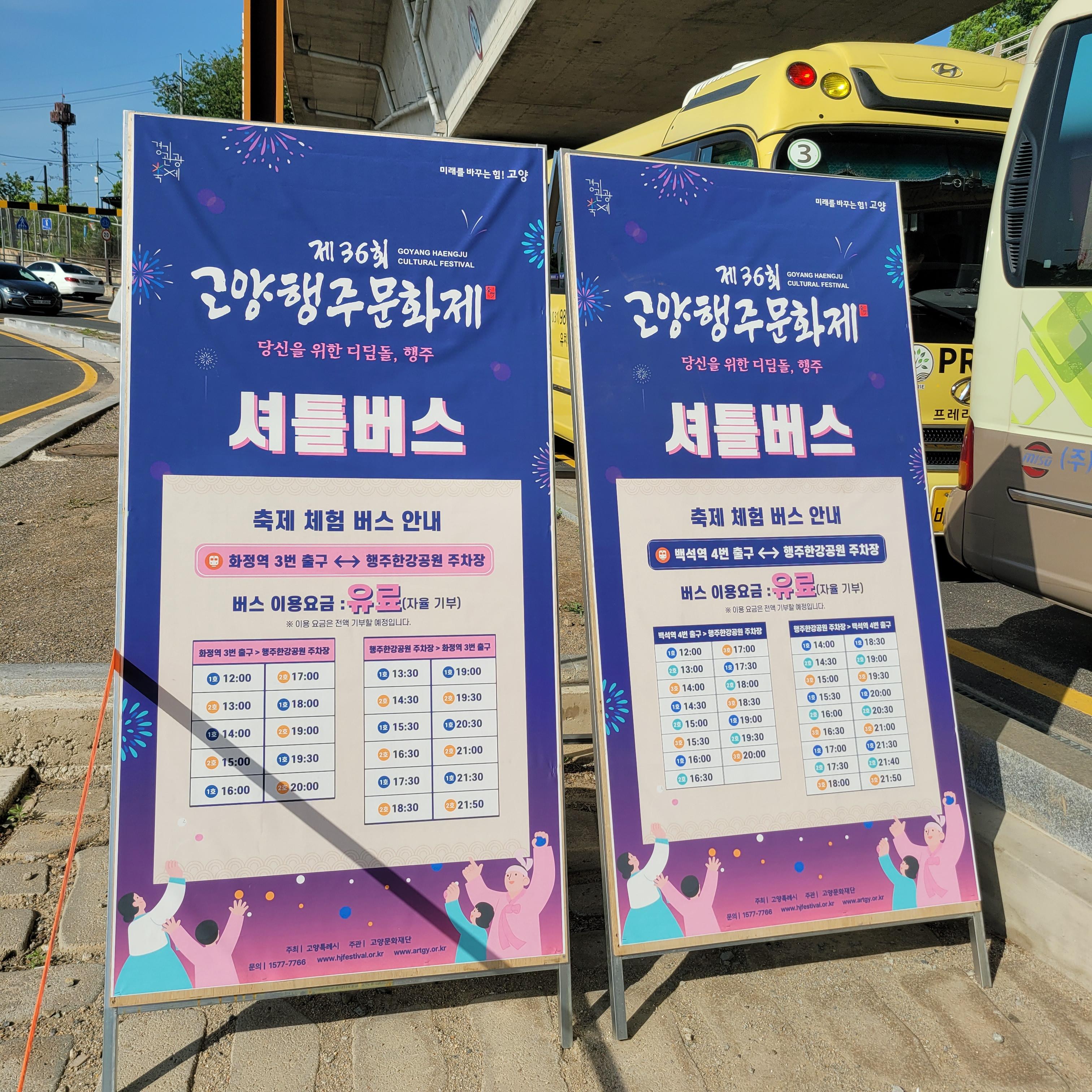 올해에도 백석역에서 축제장까지 가는 셔틀버스가 운행을 해서 수월하게