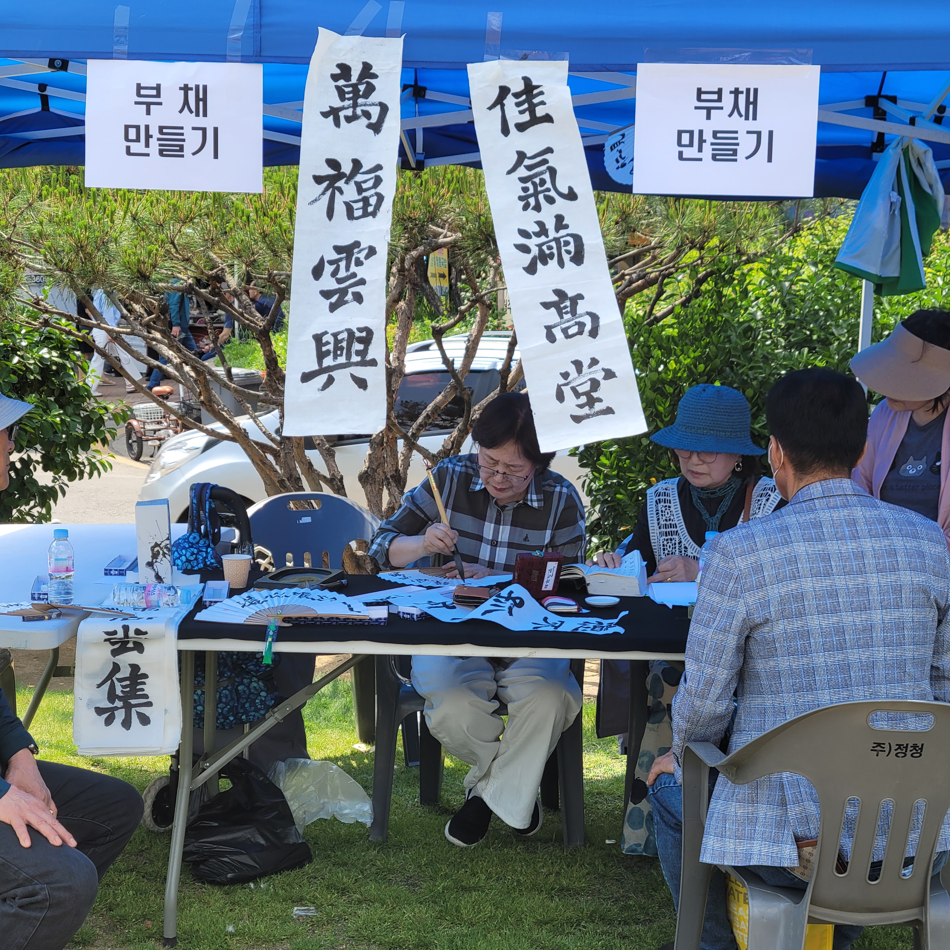입거나 썼던 옷들이나 물건들을 팔고 있었네요. 무대 뒷편에는 부채만들기와