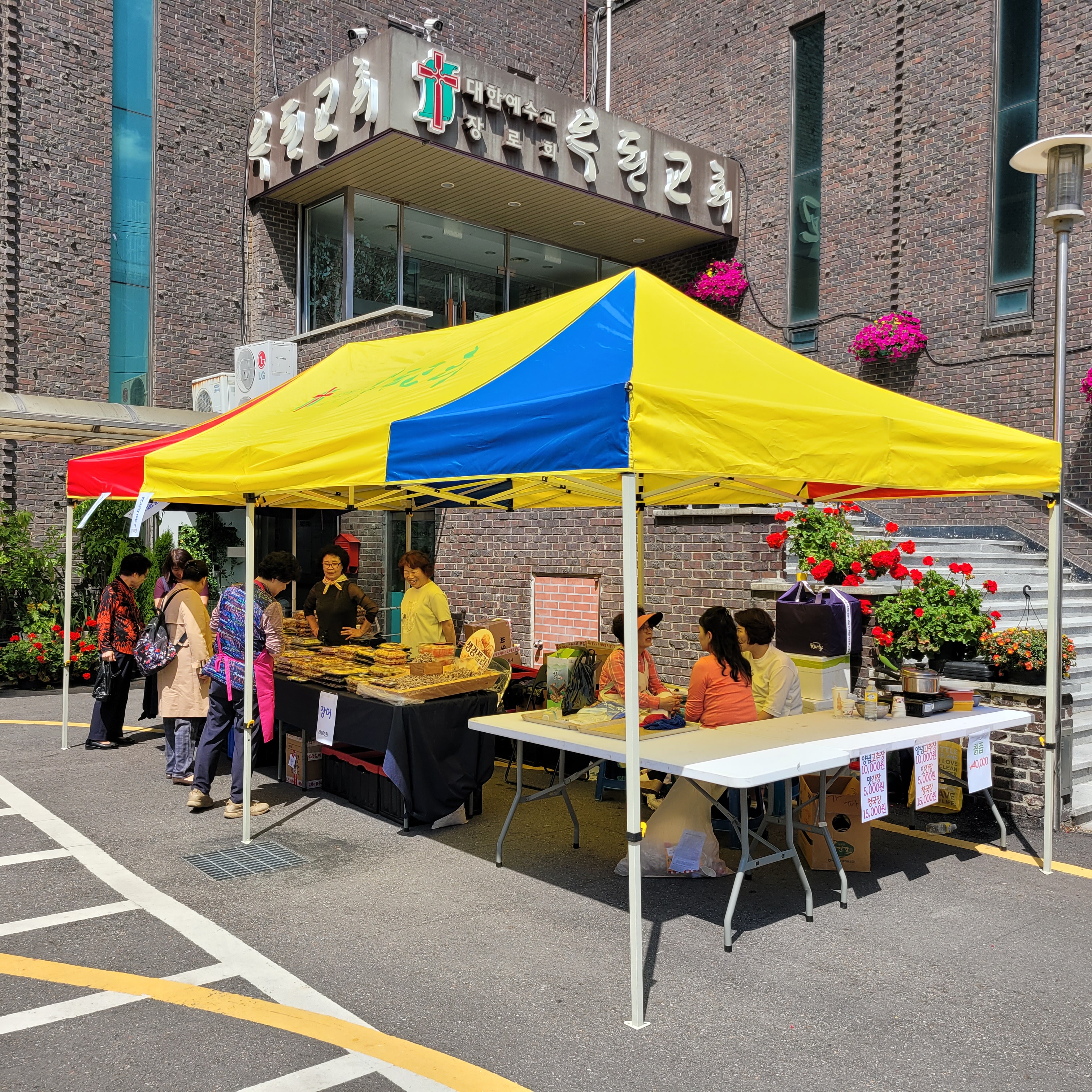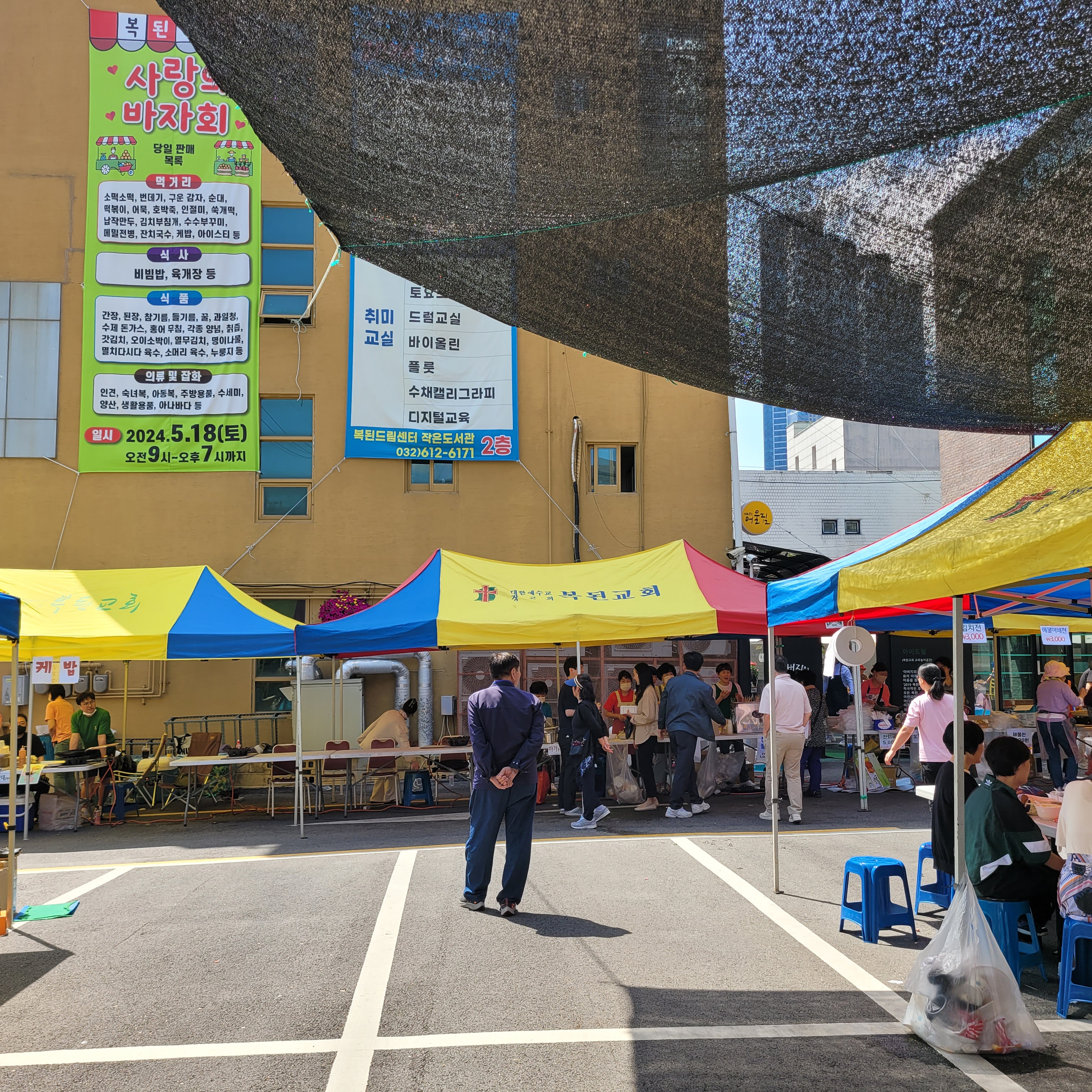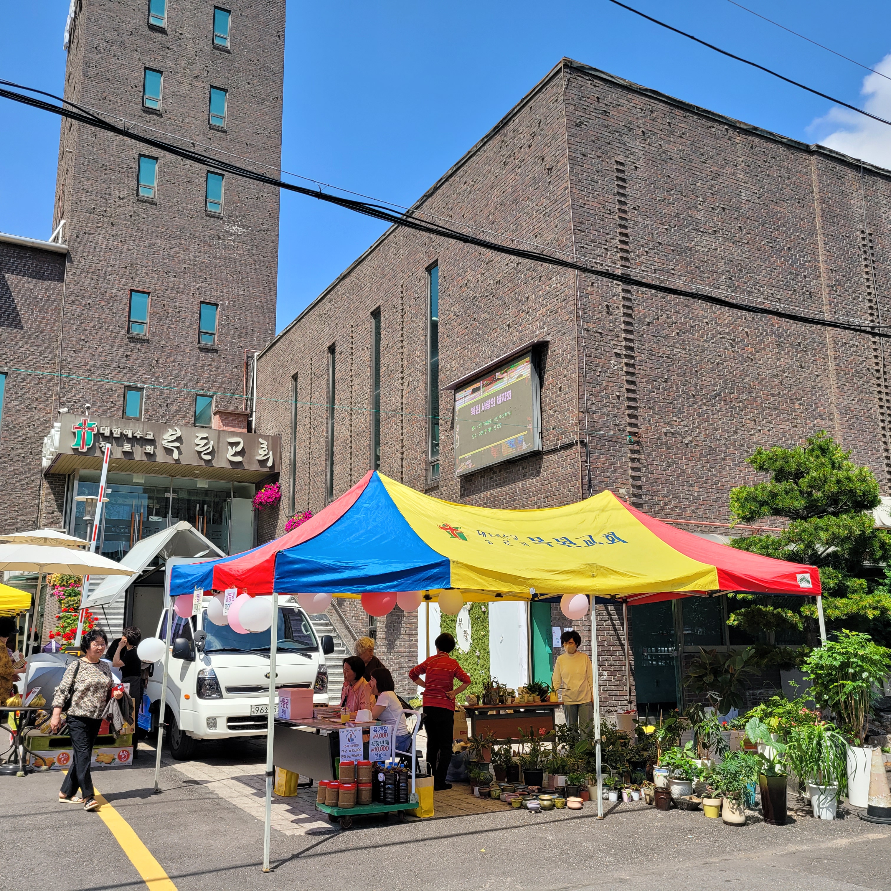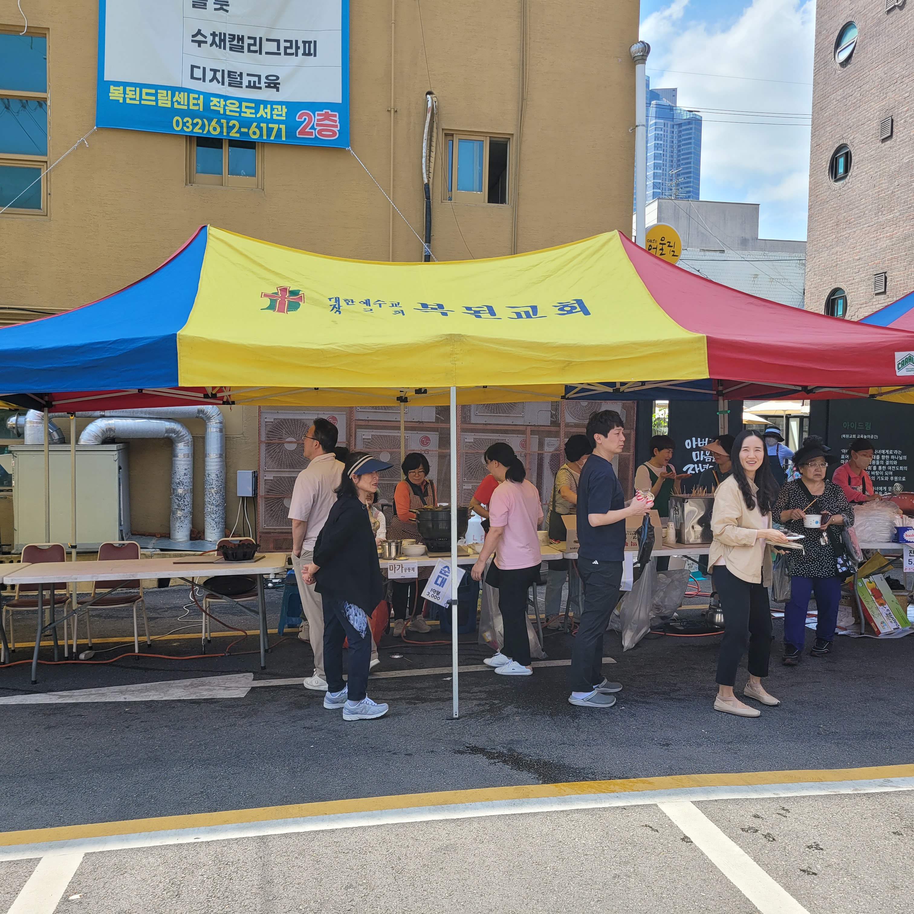 걸어가보니 부천 복된교회에서 사랑의 바자회 행사가 열리고 있었네요. 갖가지