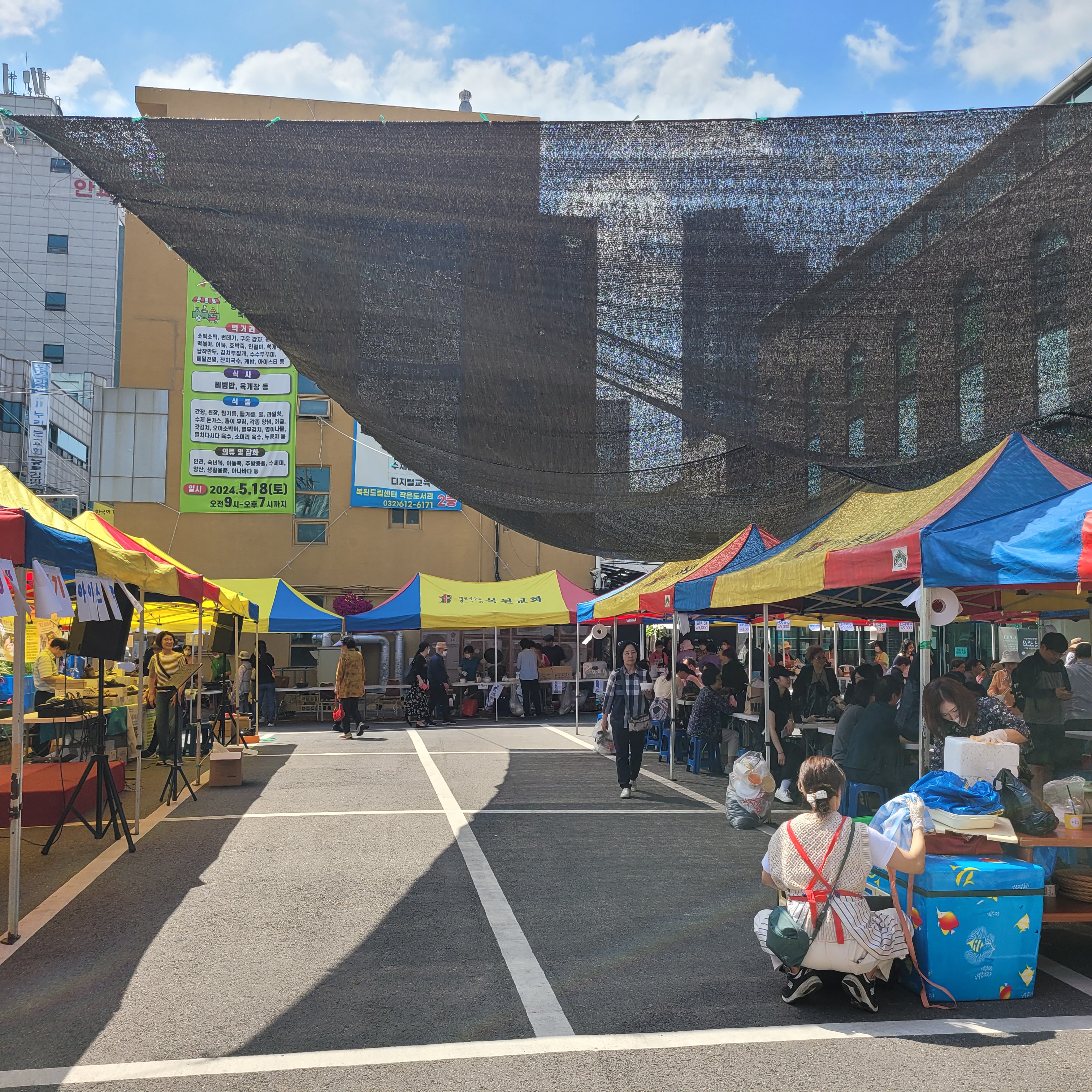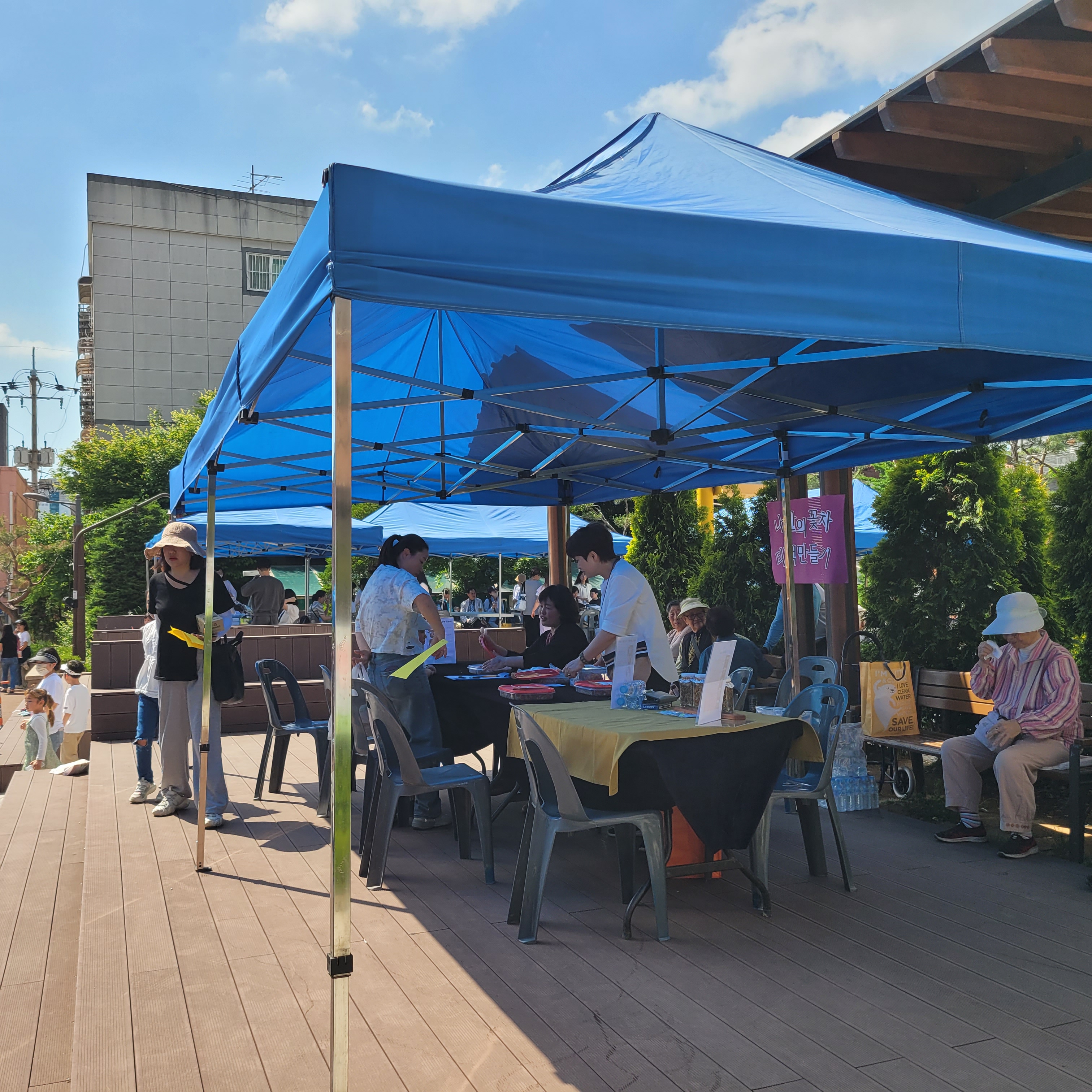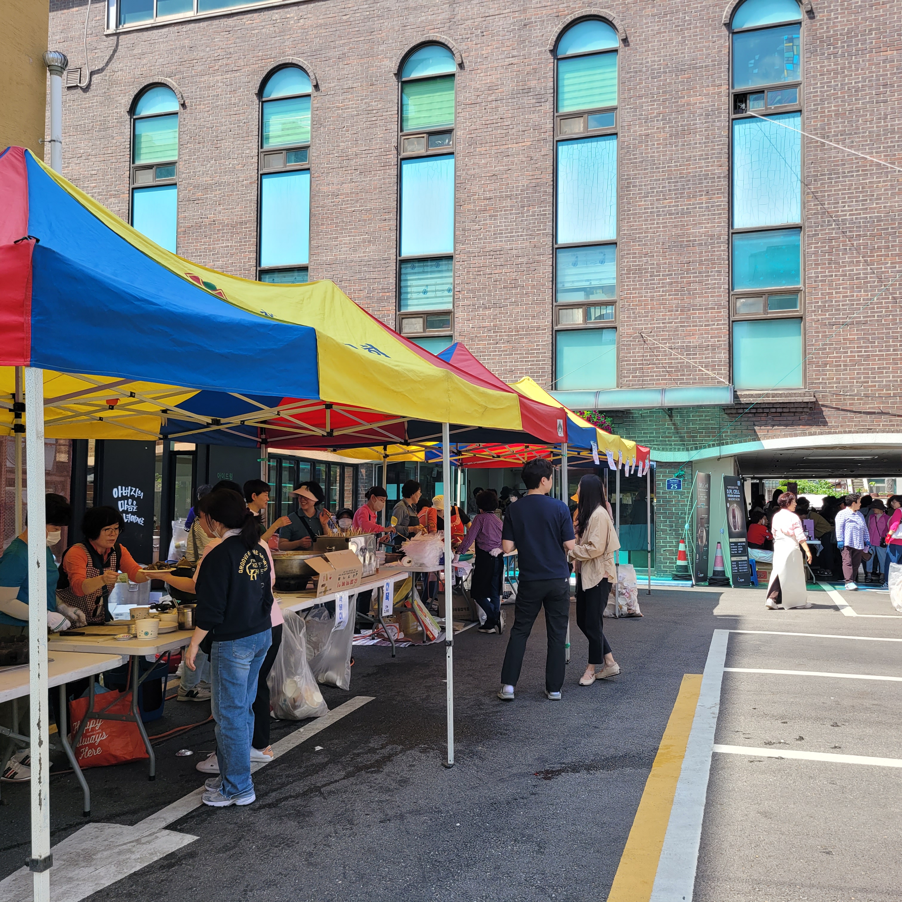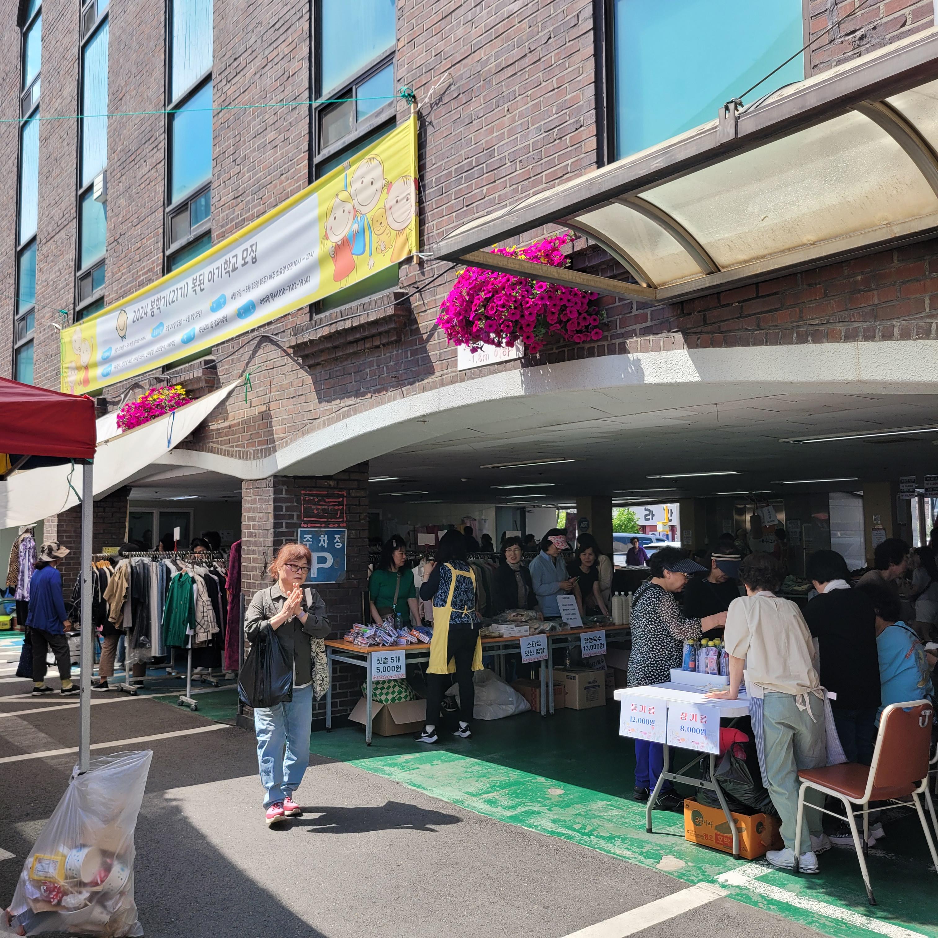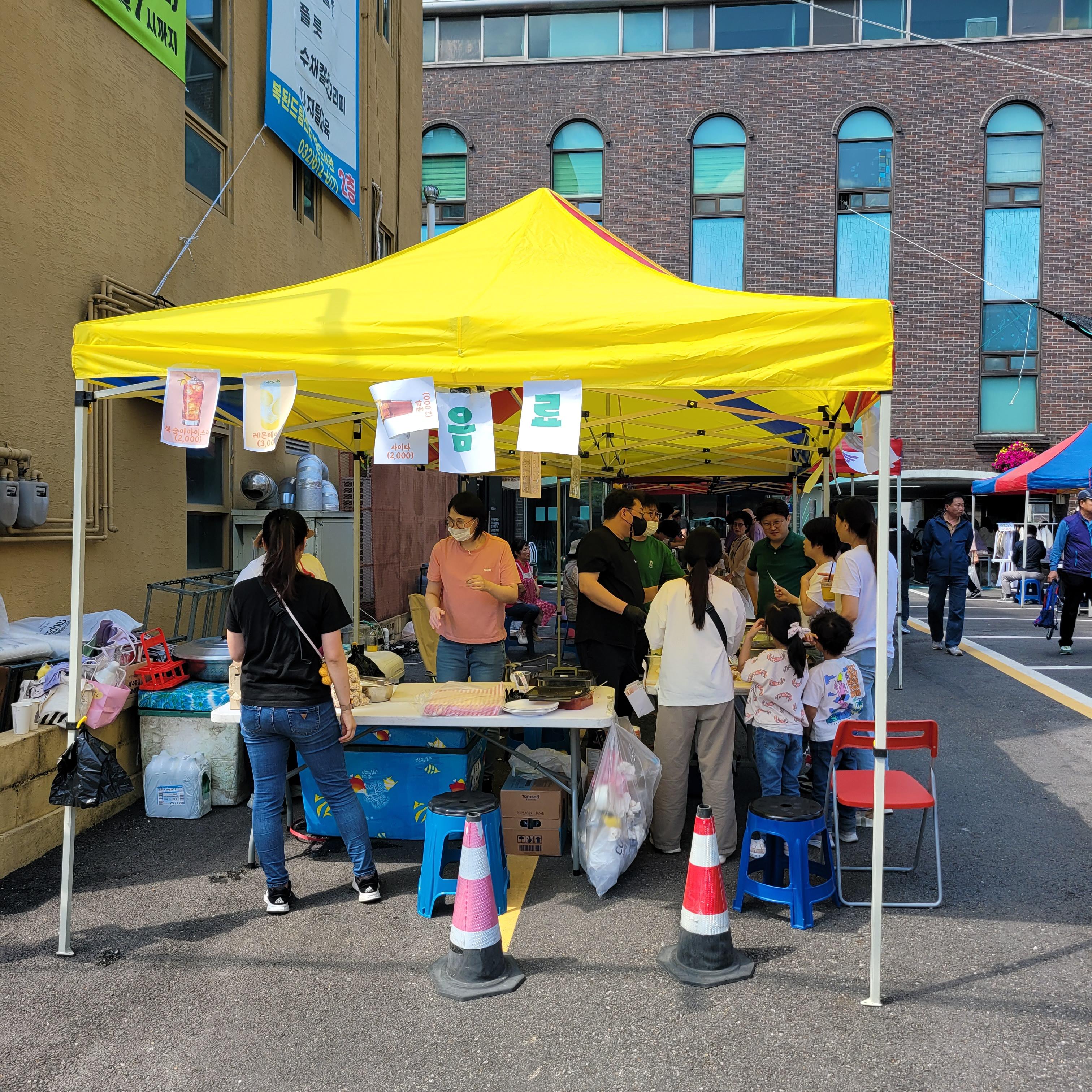 먹거리파는 부스와 옷가지 물건들을 파는 바자회가 열려서 많은 사람들이 찾아왔네요.