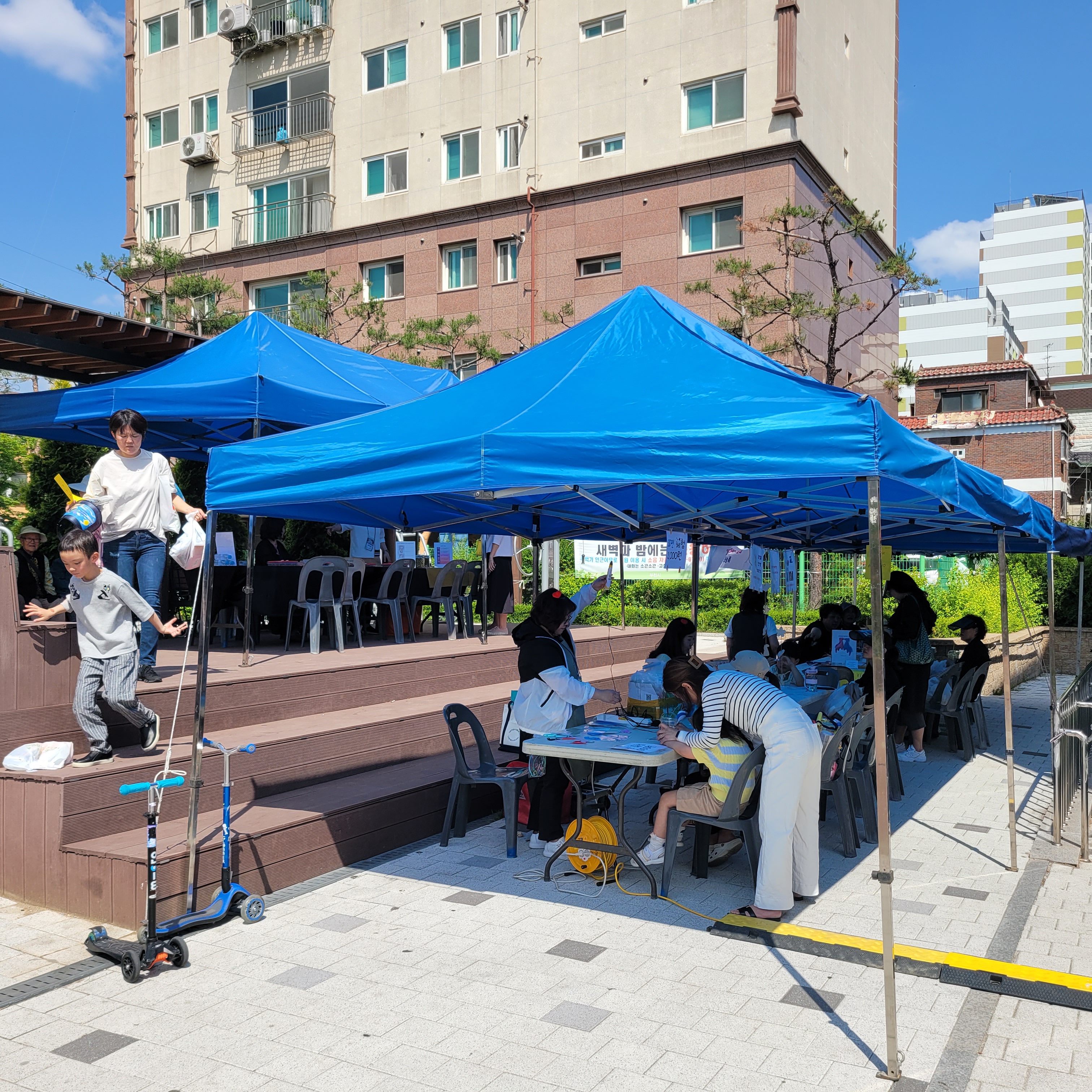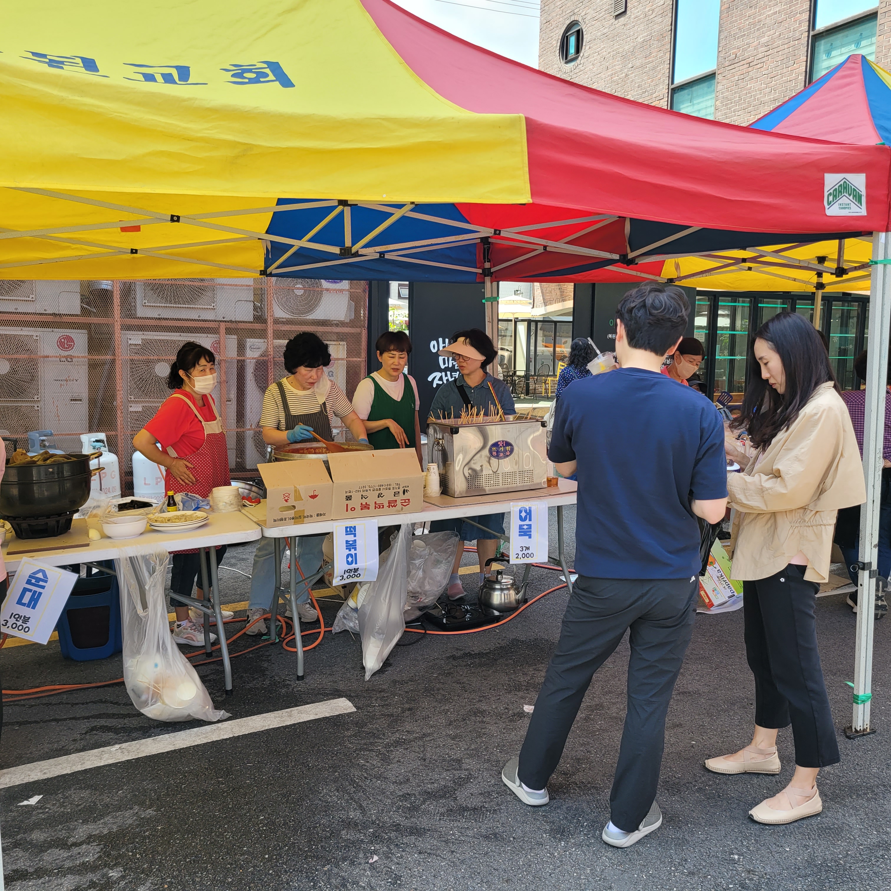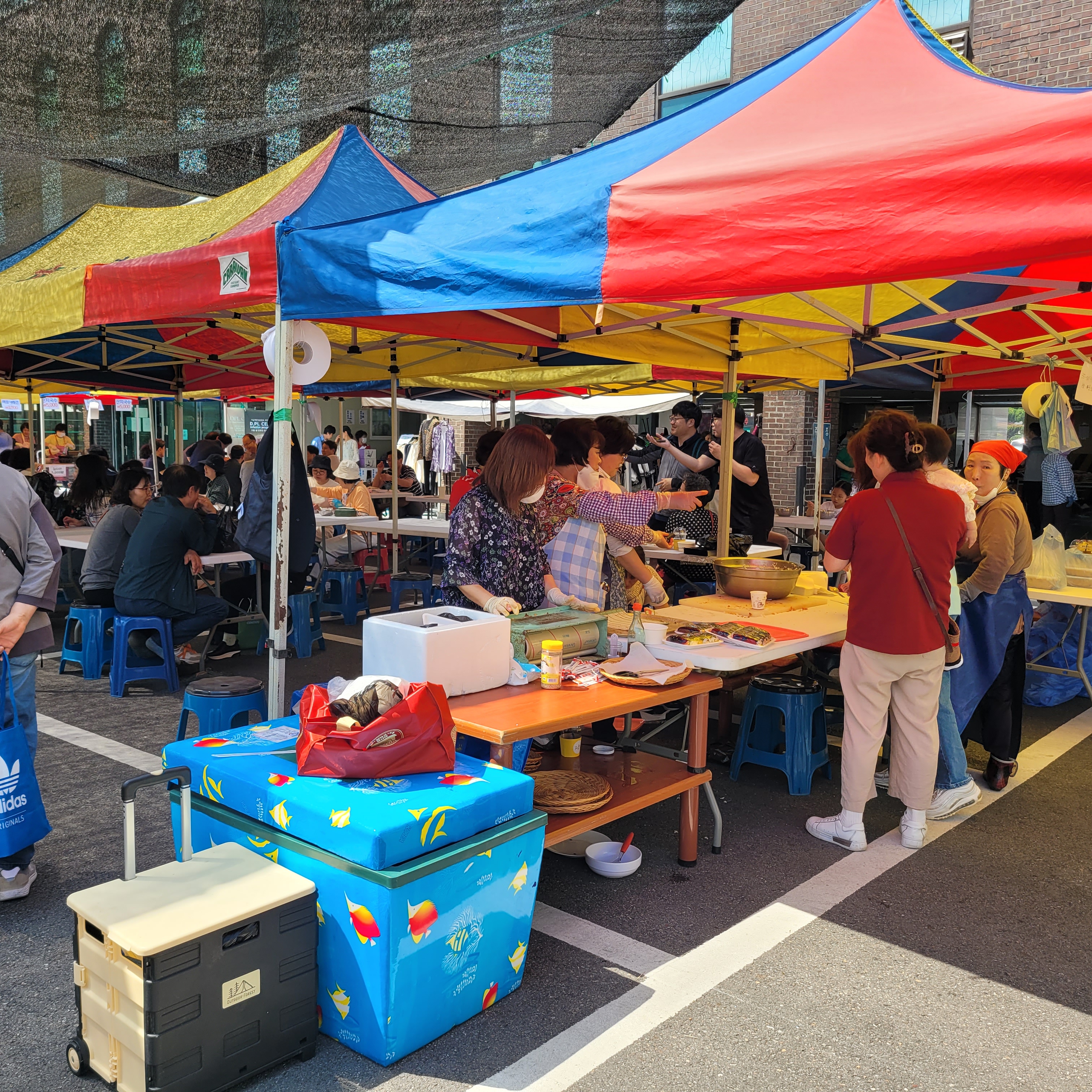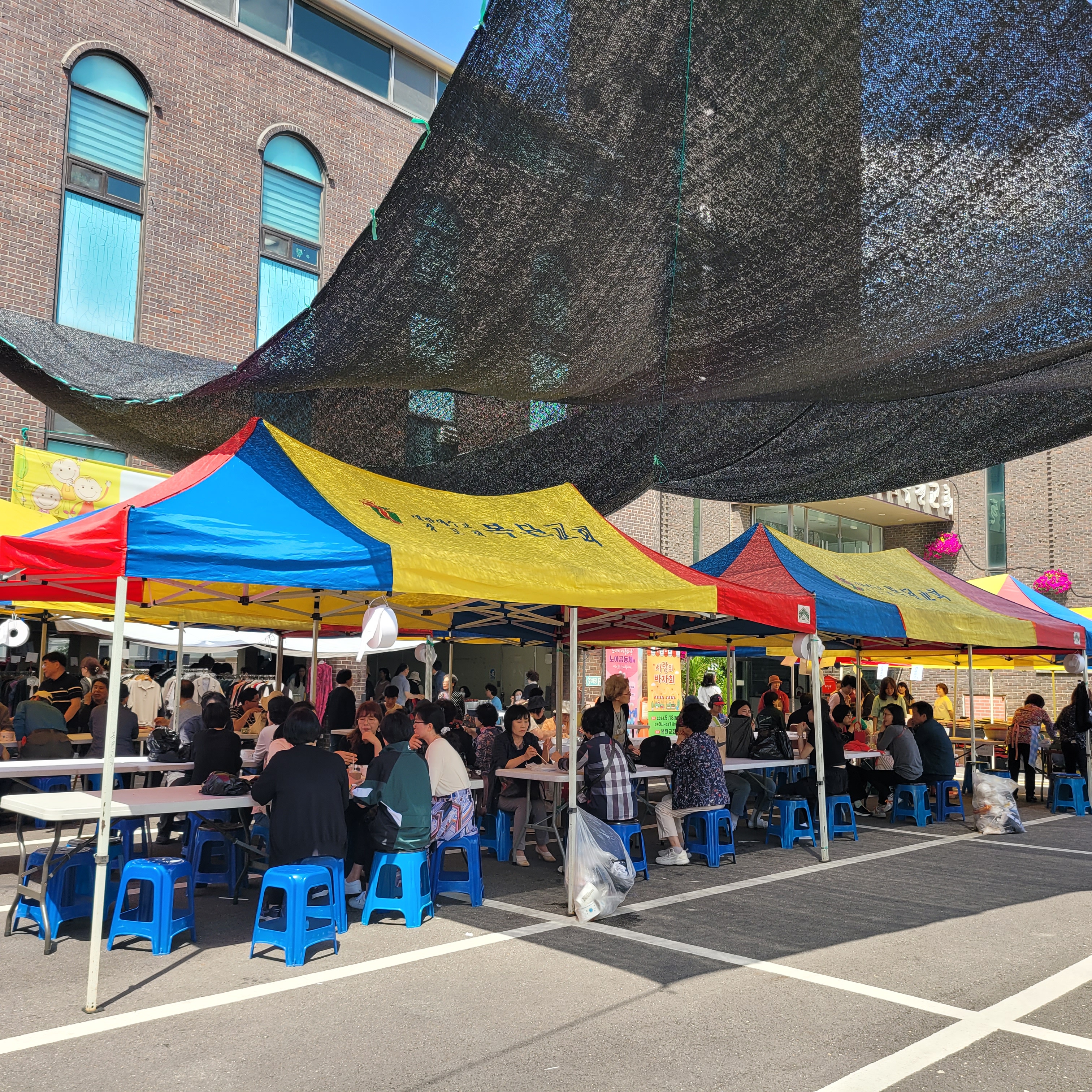 먹거리파는 부스와 옷가지 물건들을 파는 바자회가 열려서 많은 사람들이 찾아왔네요.