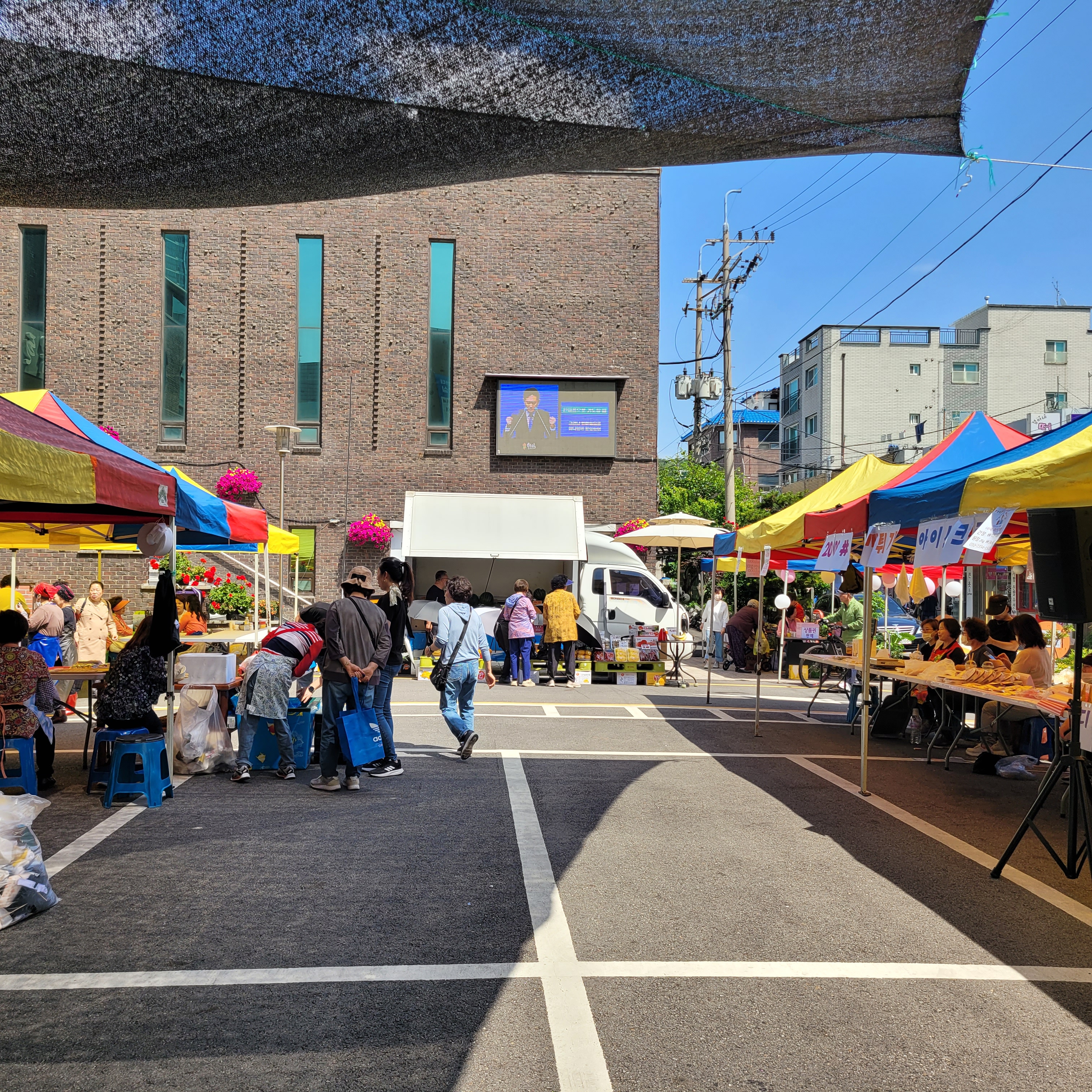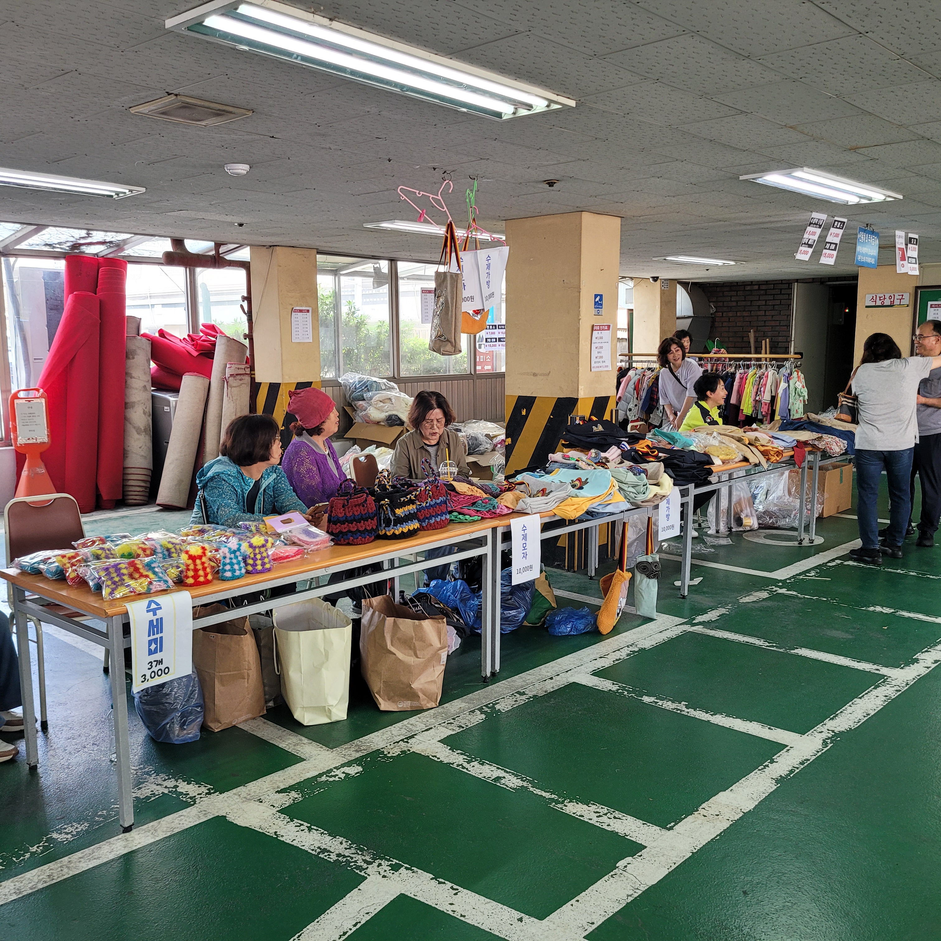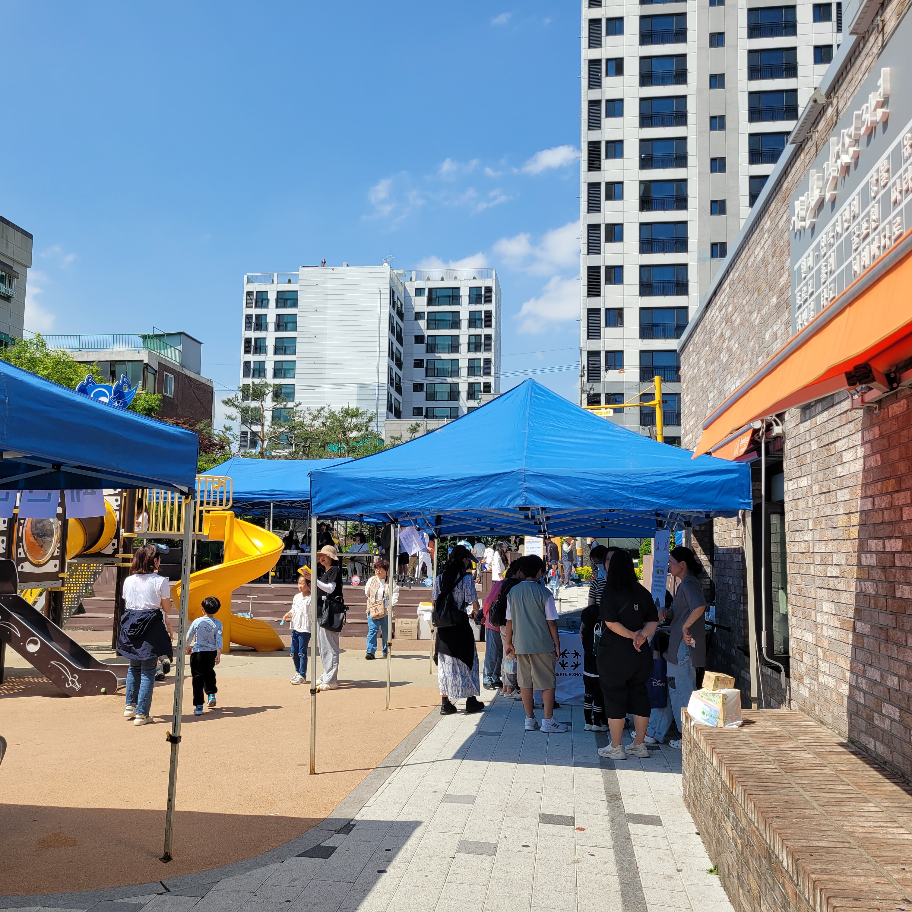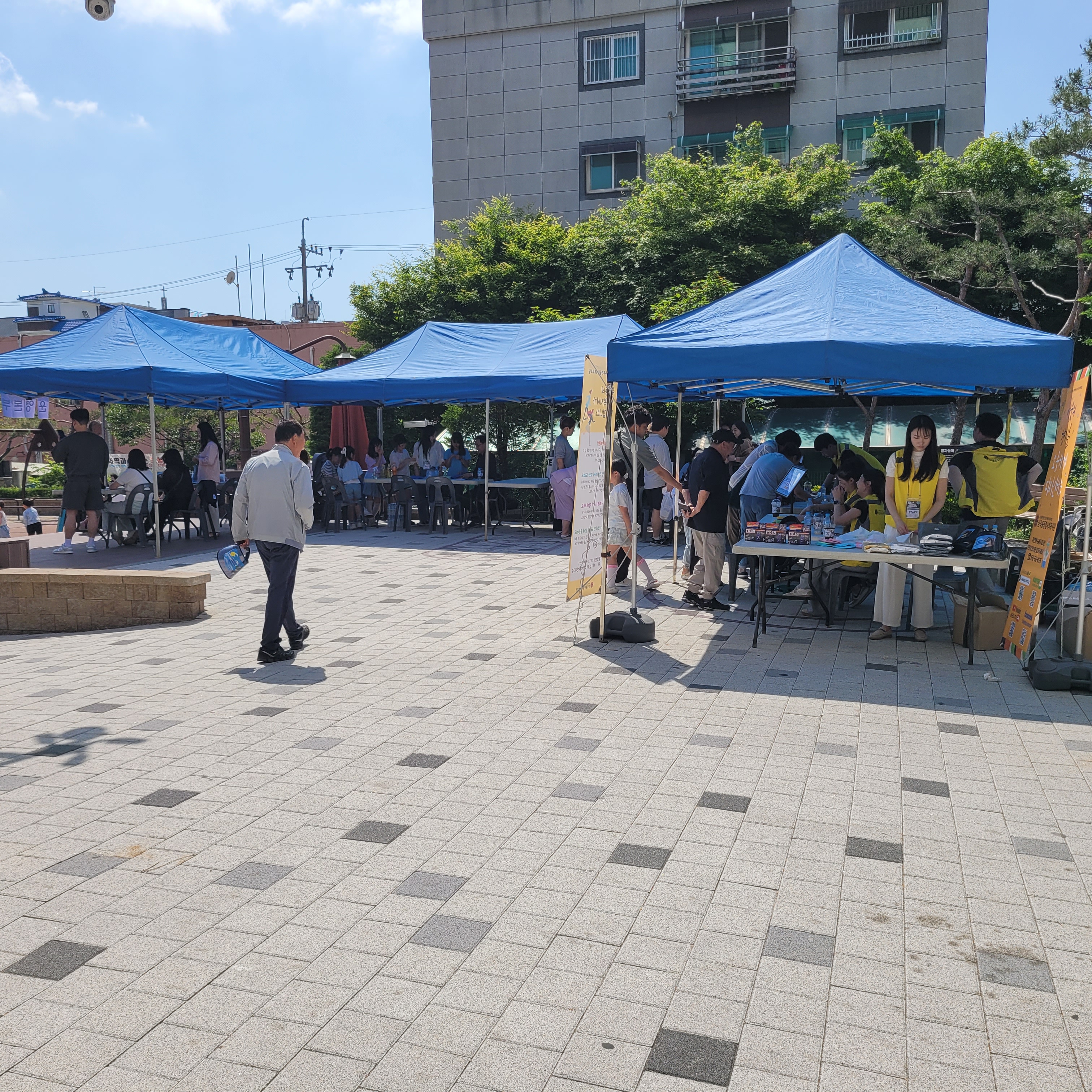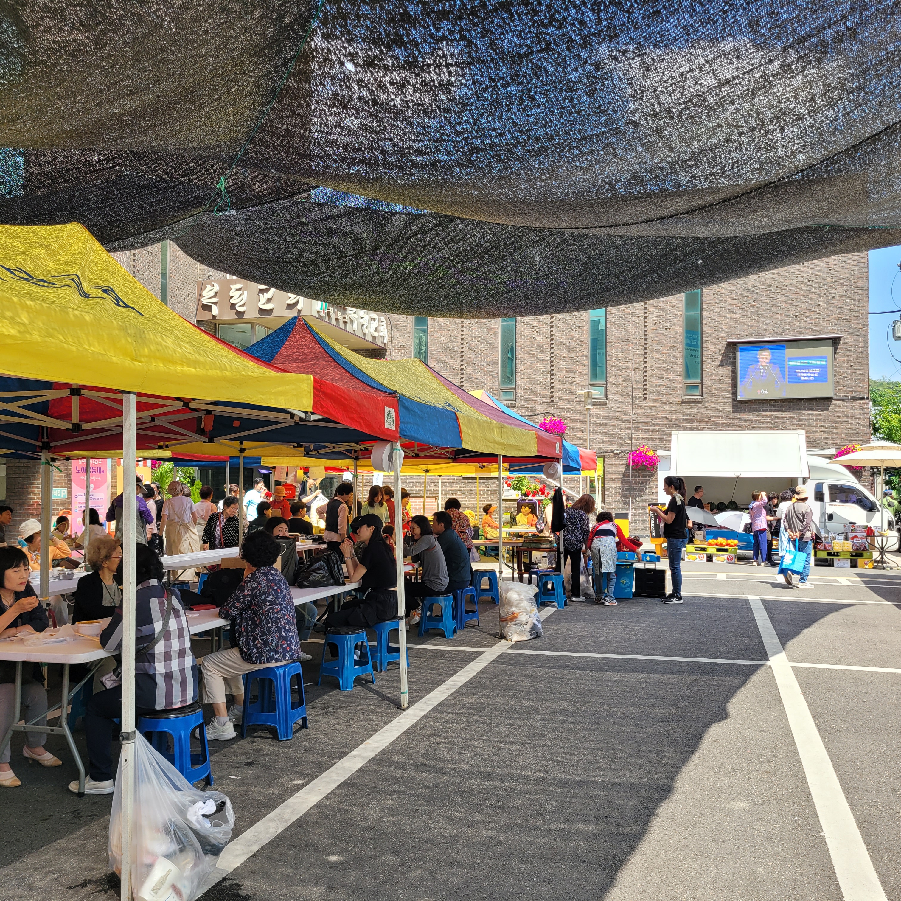 먹거리파는 부스와 옷가지 물건들을 파는 바자회가 열려서 많은 사람들이 찾아왔네요.