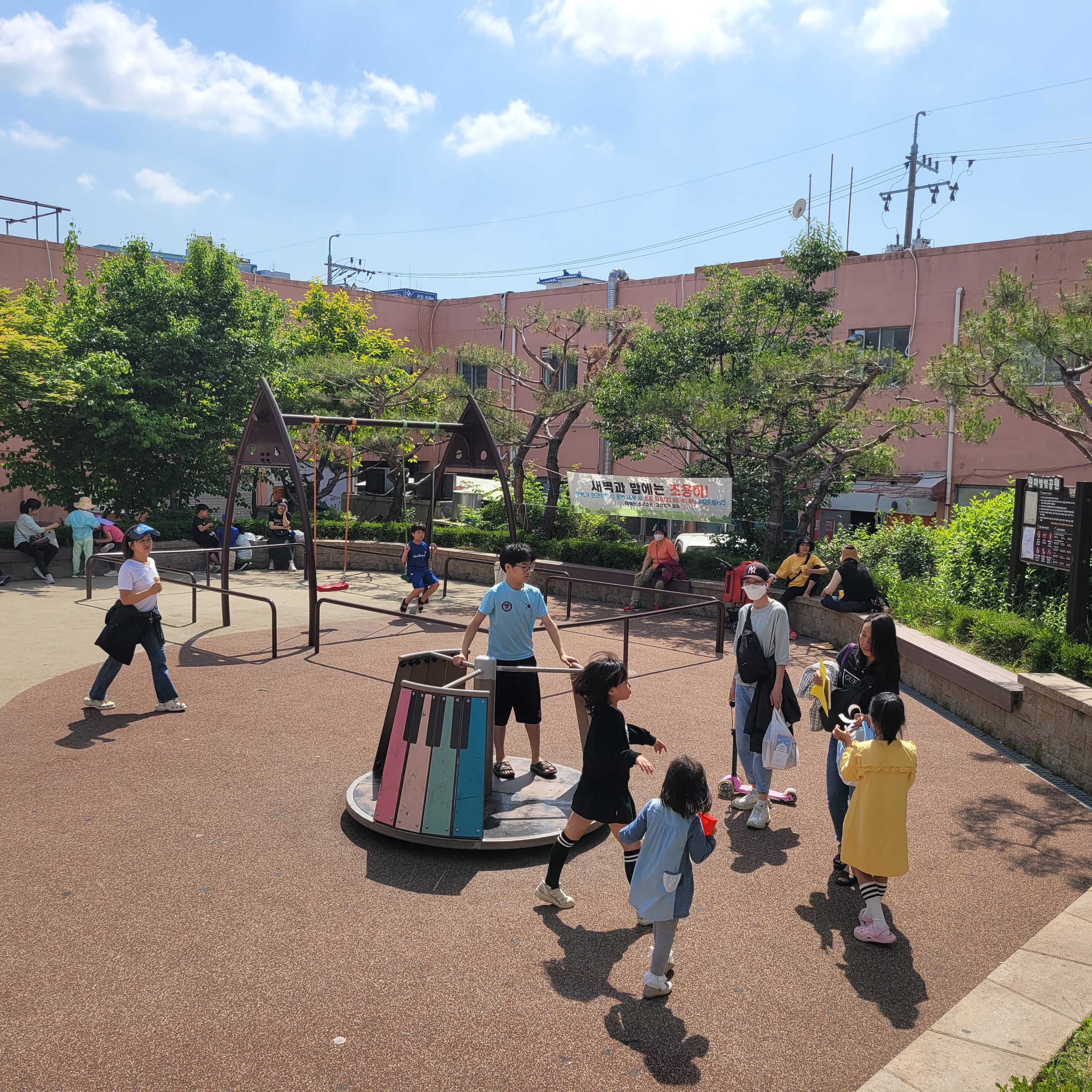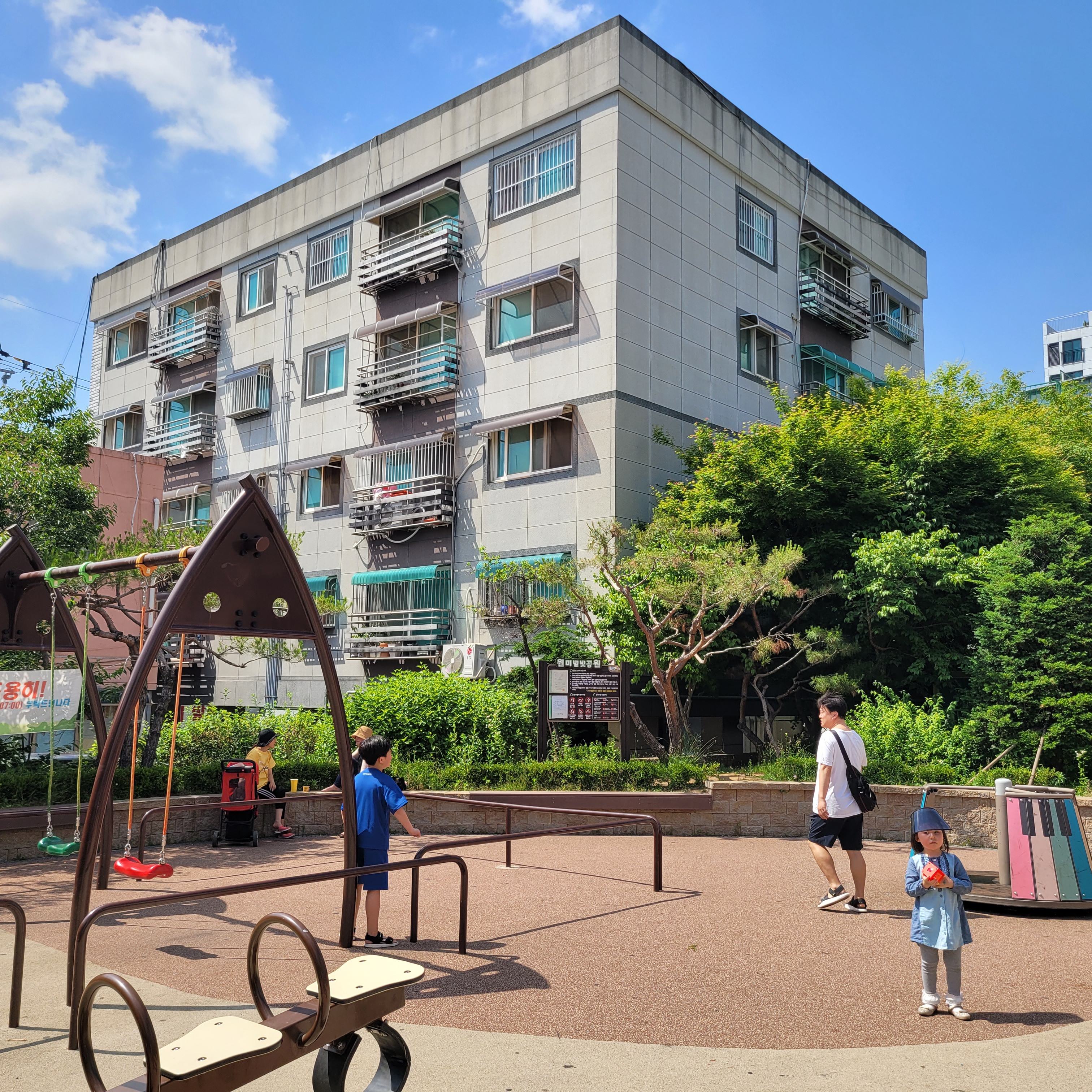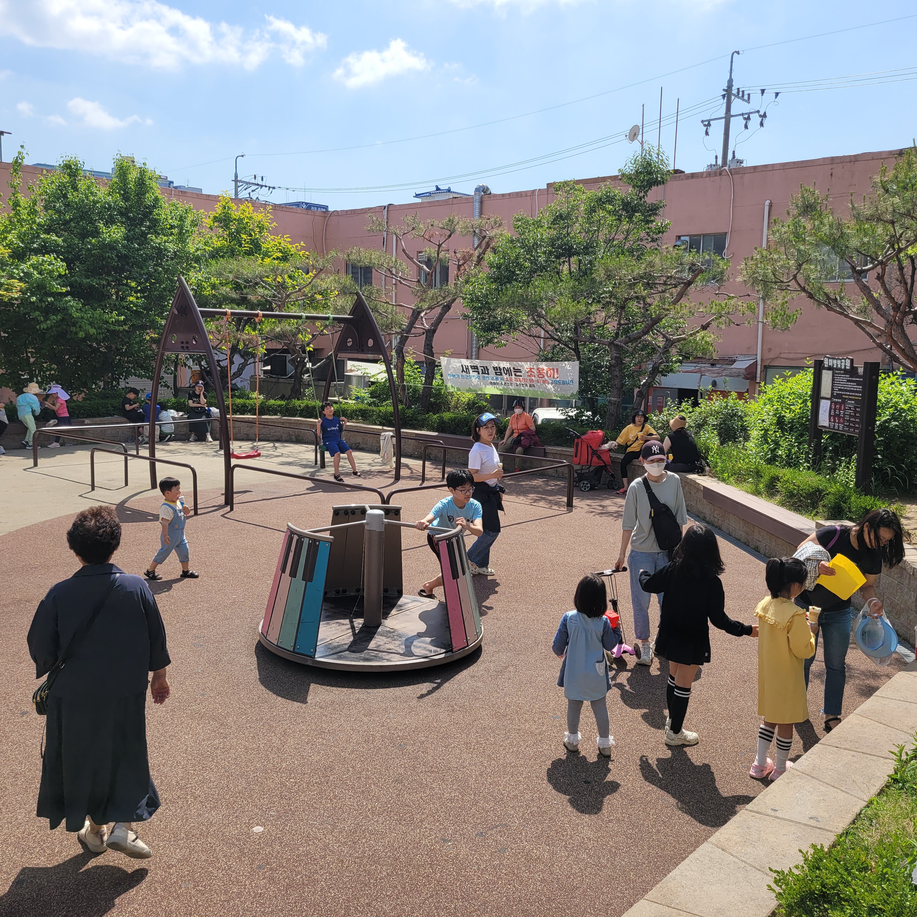 김치전을 다 먹은 뒤에 주변에 핀 아름다운 장미꽃 구경을 한 뒤에 원미별마루 근처