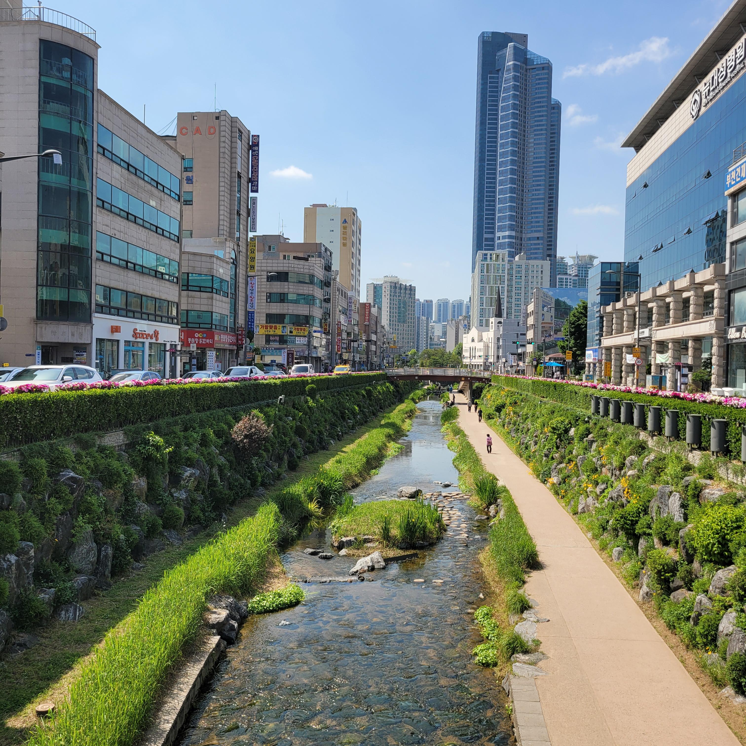 부천북부역 마루광장 무대에서 열리는 공연 구경을 뒤로 하고 심곡천 방향으로