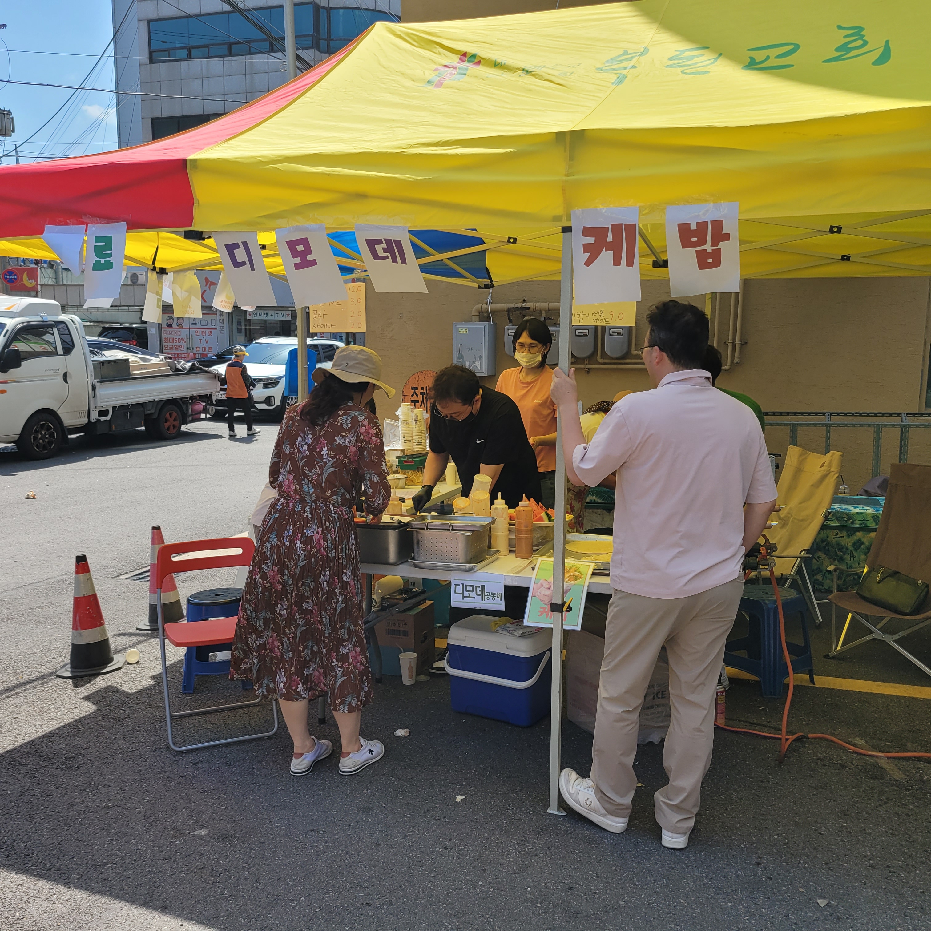 저도 부천복된교회 사랑의 바자회 곳곳을 구경한 뒤에 먹거리장터에서 김치전을