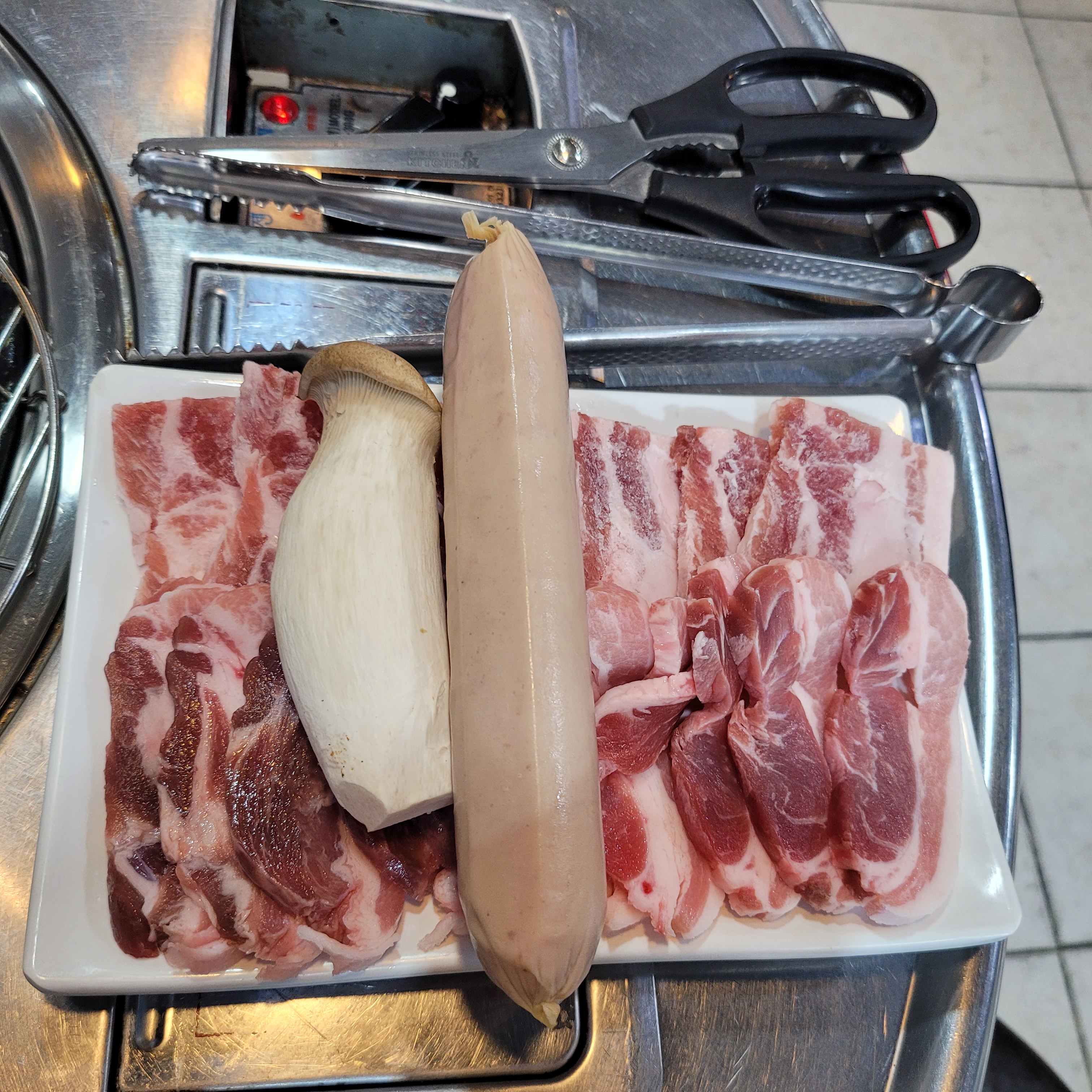 통큰 뒷고기 식당에서 삼겹살과 꽃살 1인분씩을 시켜 먹었습니다.