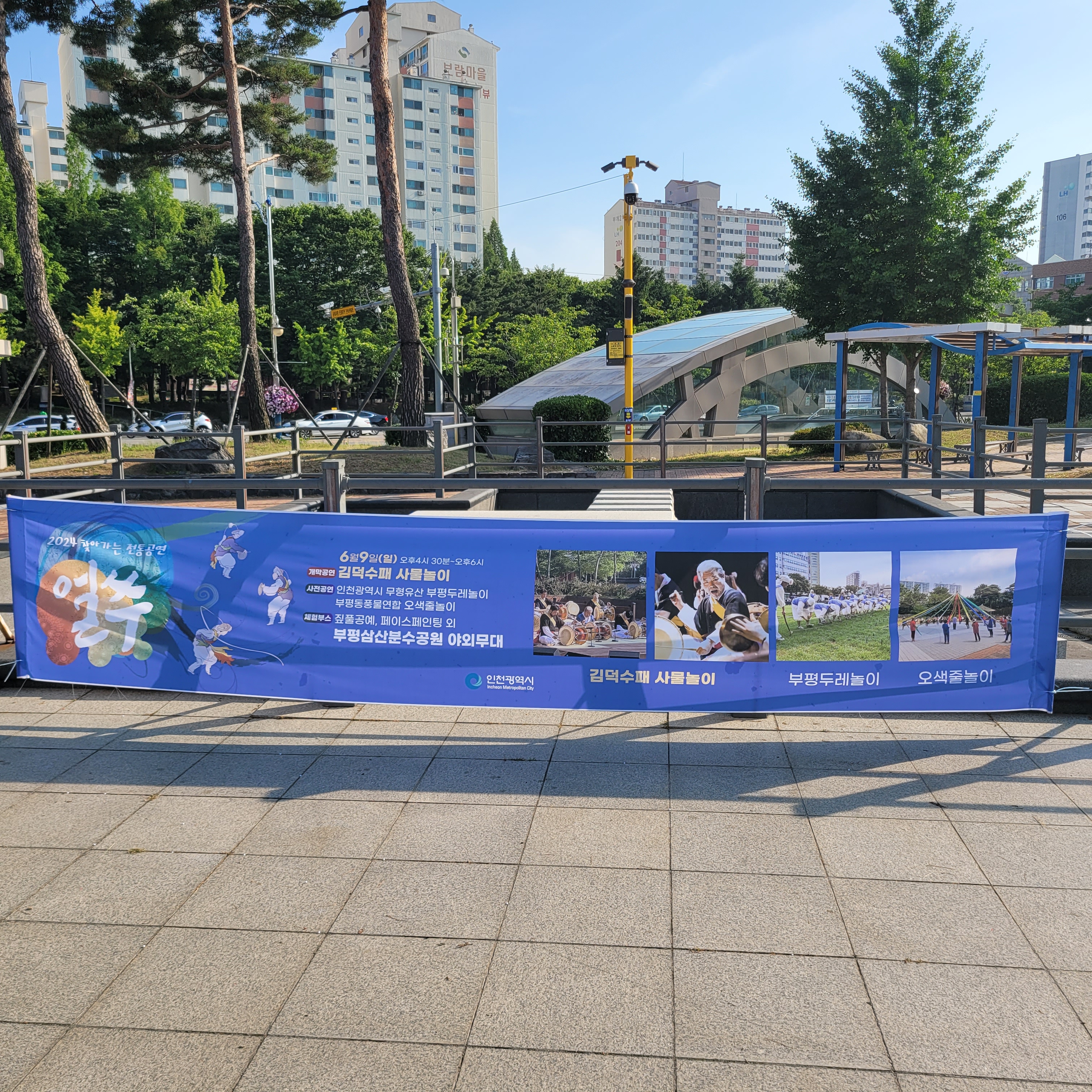 어제 유월에 부평 단오축제 구경을 모두 마친 뒤에 본가로 가는 길에 부평산삼분수공원 야외무대에서