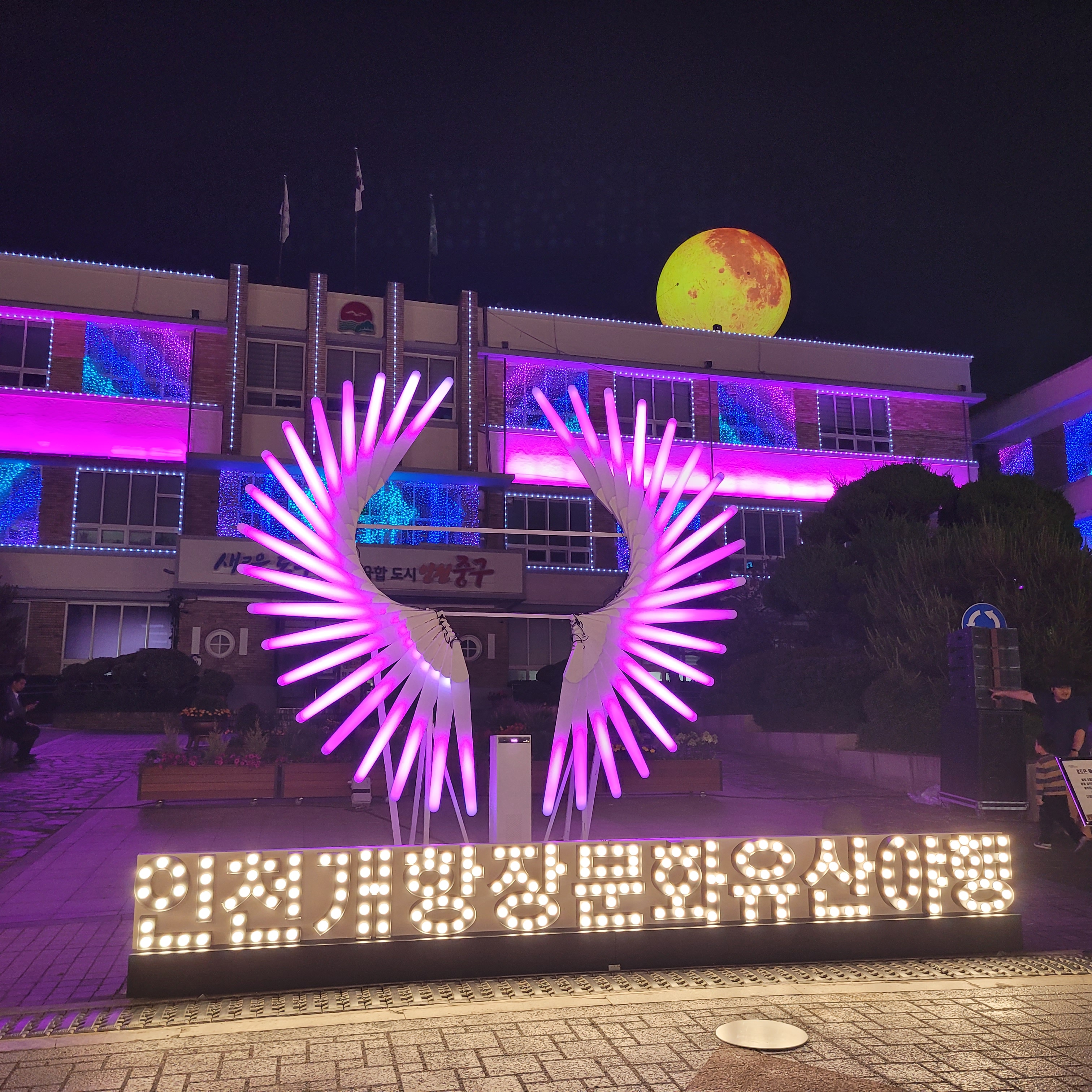 열리고 있었네요. 밤 9시가 되자 인천 중구청에서 멋진 빛쇼가 열렸고 이어서 맞은편