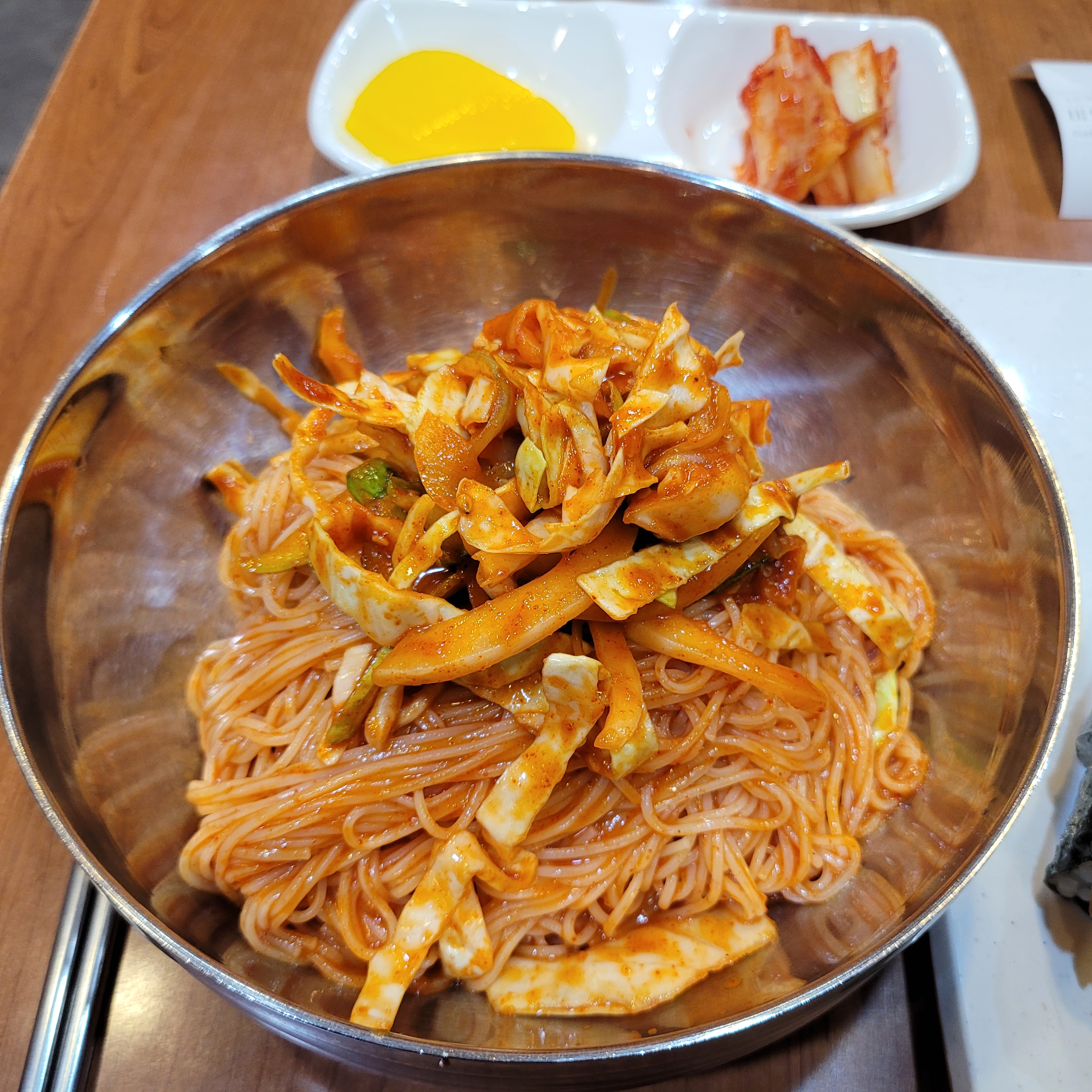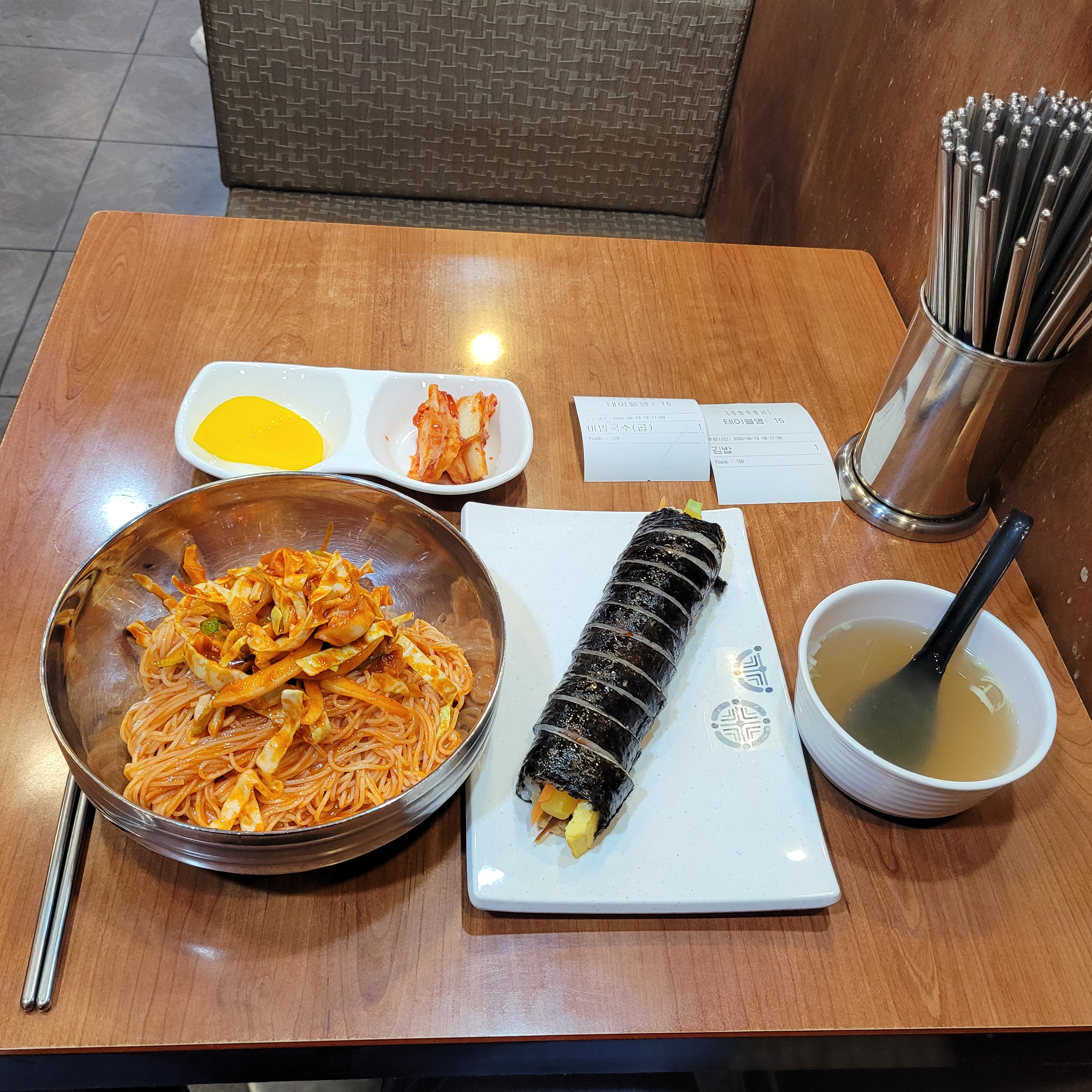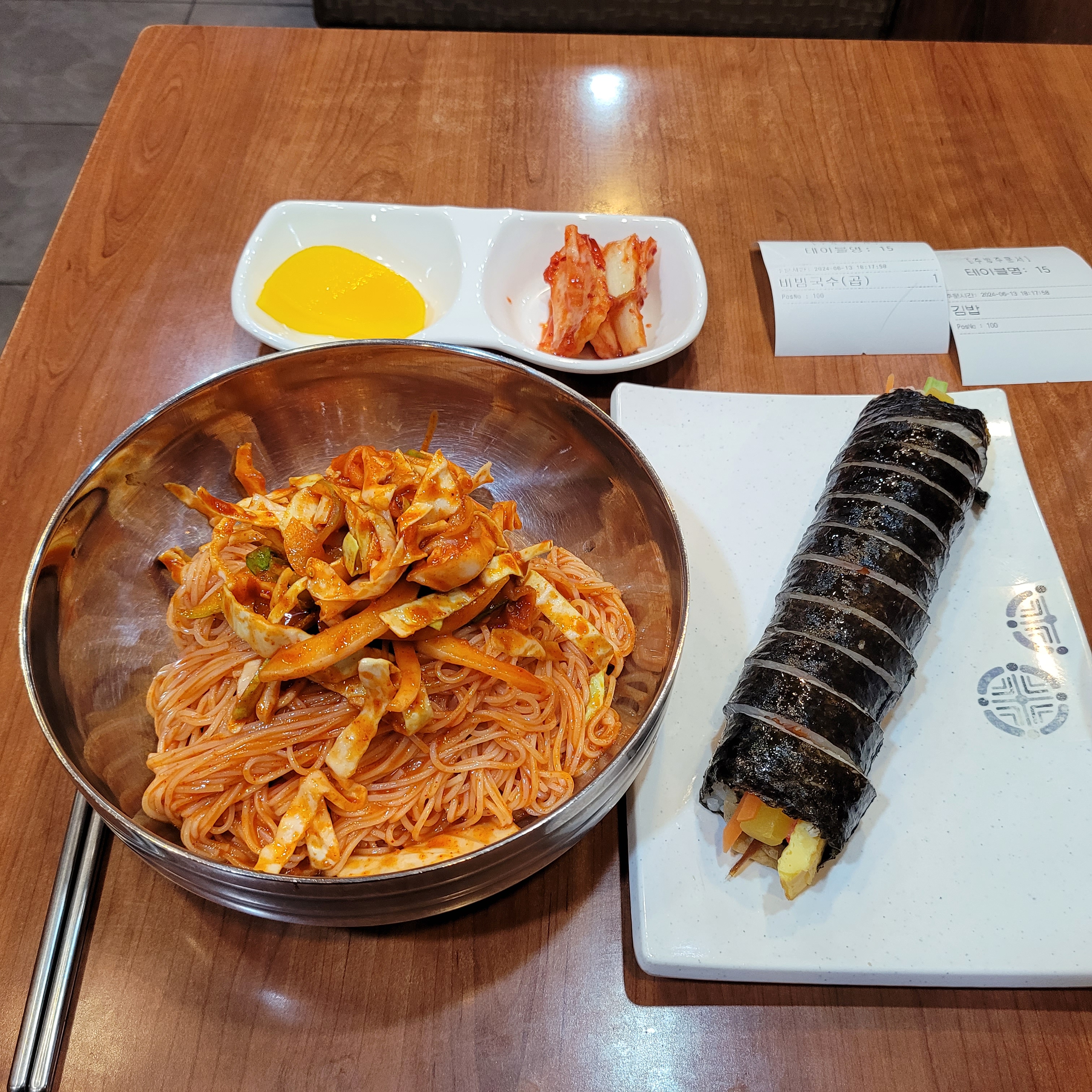 비빔국수 곱배기와 김밥 한줄을 먹었습니다. 재작년인가부터 가격이