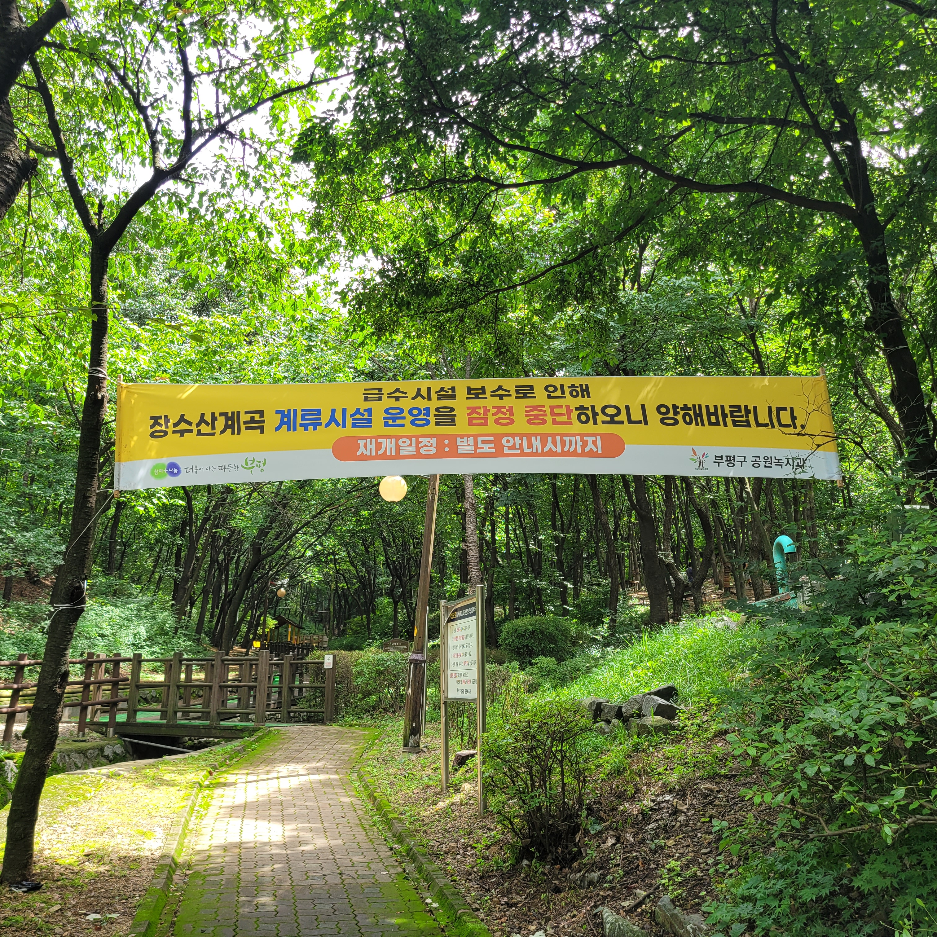인천나비공원 물놀이장 안쪽으로 들어가면 장수산계곡이 있는데