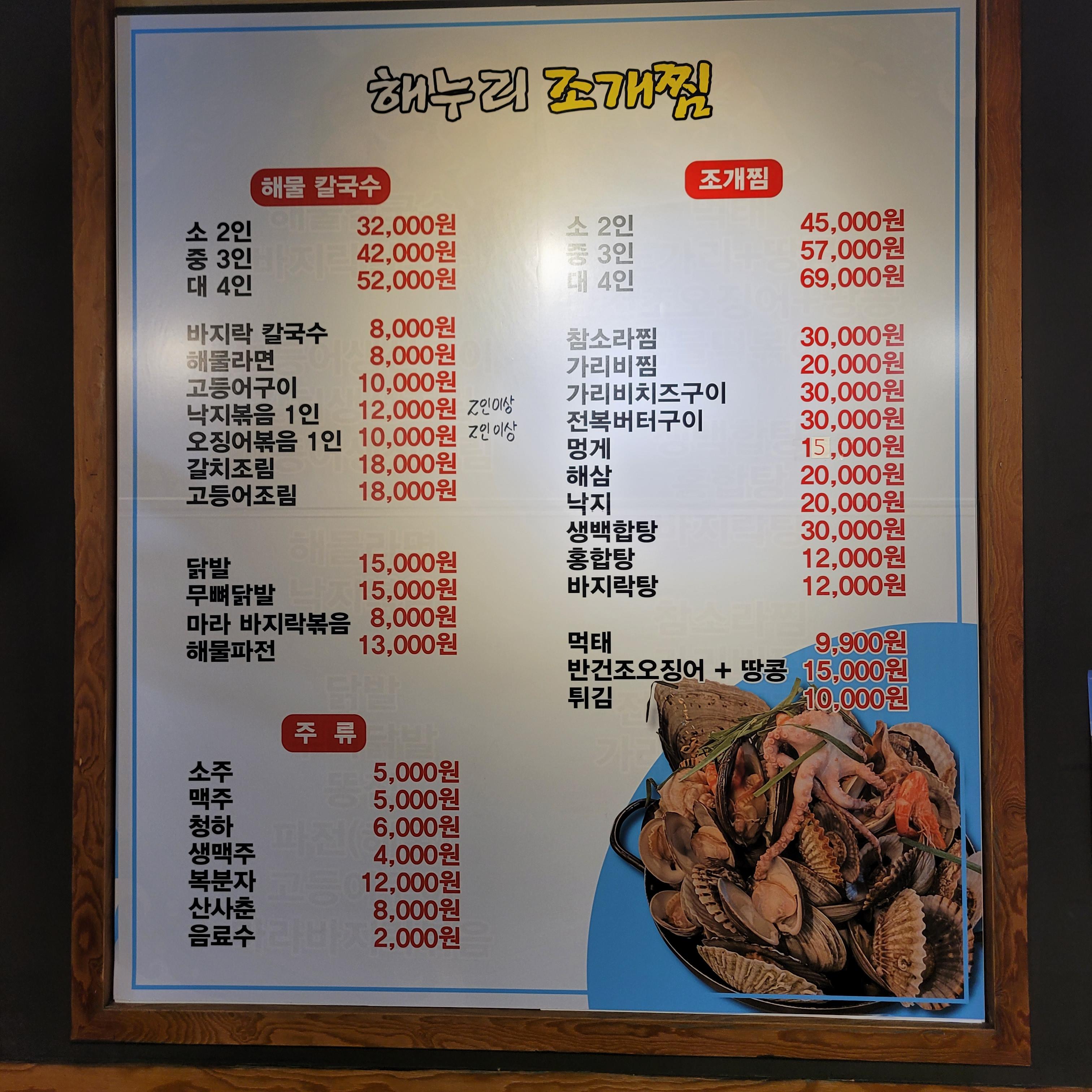 해누리 조개찜은 최근 새롭게 들어선 곳인데 가끔 지나갈때마다 앞에 진열된
