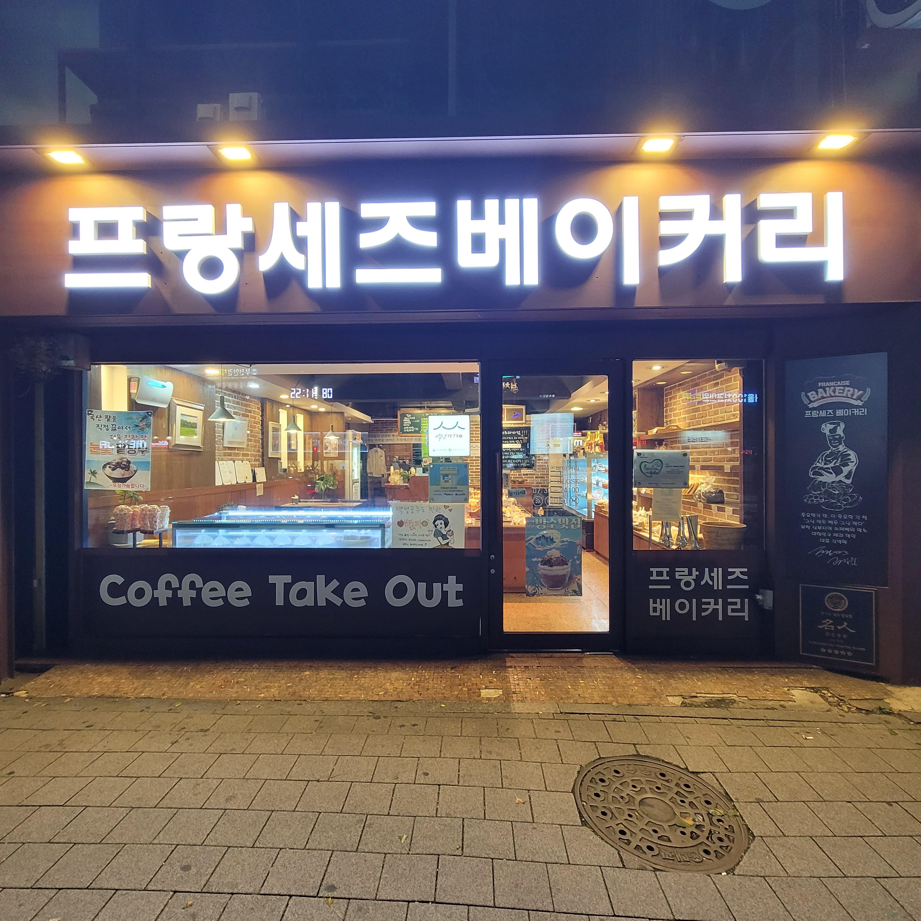 오늘 일 마친 뒤에는 프랑세즈베이커리 빵집에서 눈꽃팥빙수를 먹었습니다.