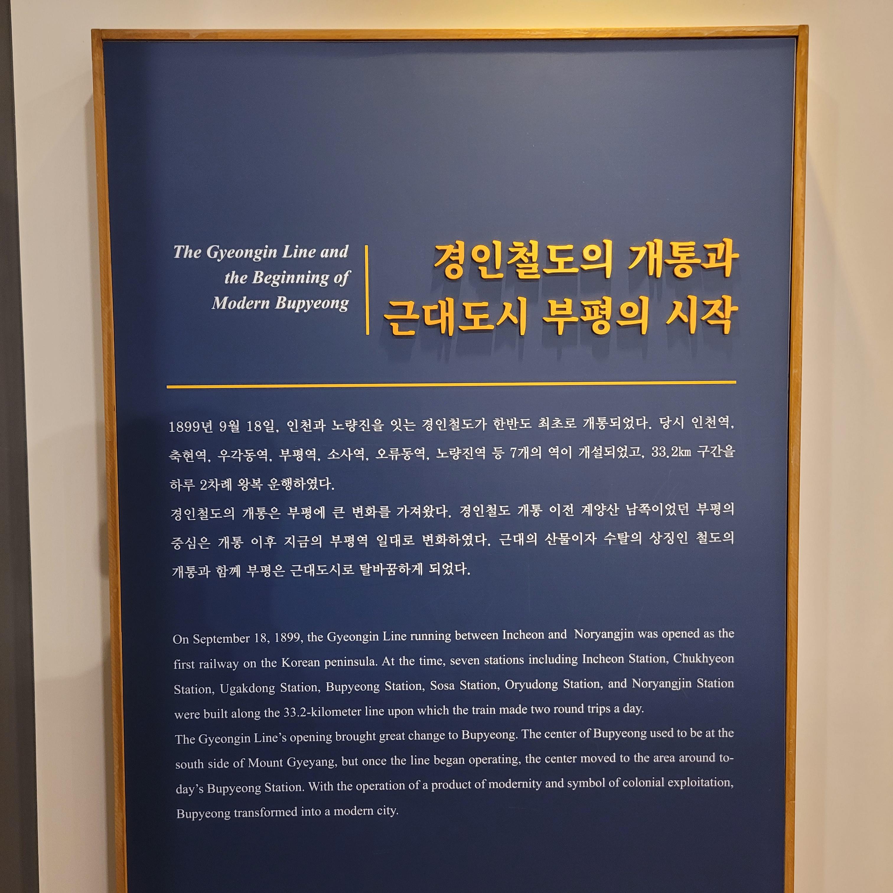 제가 예전에 살았던 인천 부평구의 옛날 역사와 관련된 전시물들이 많이