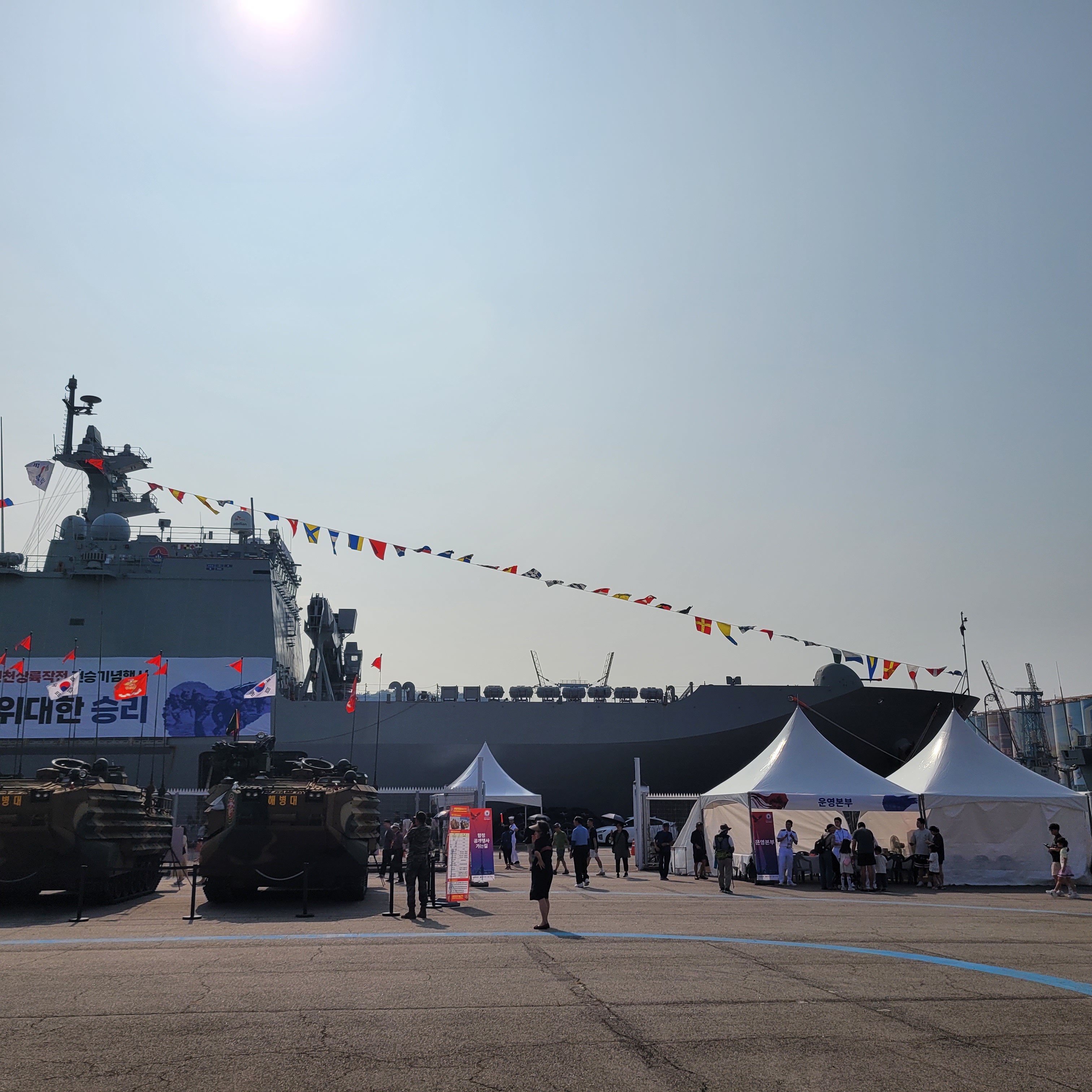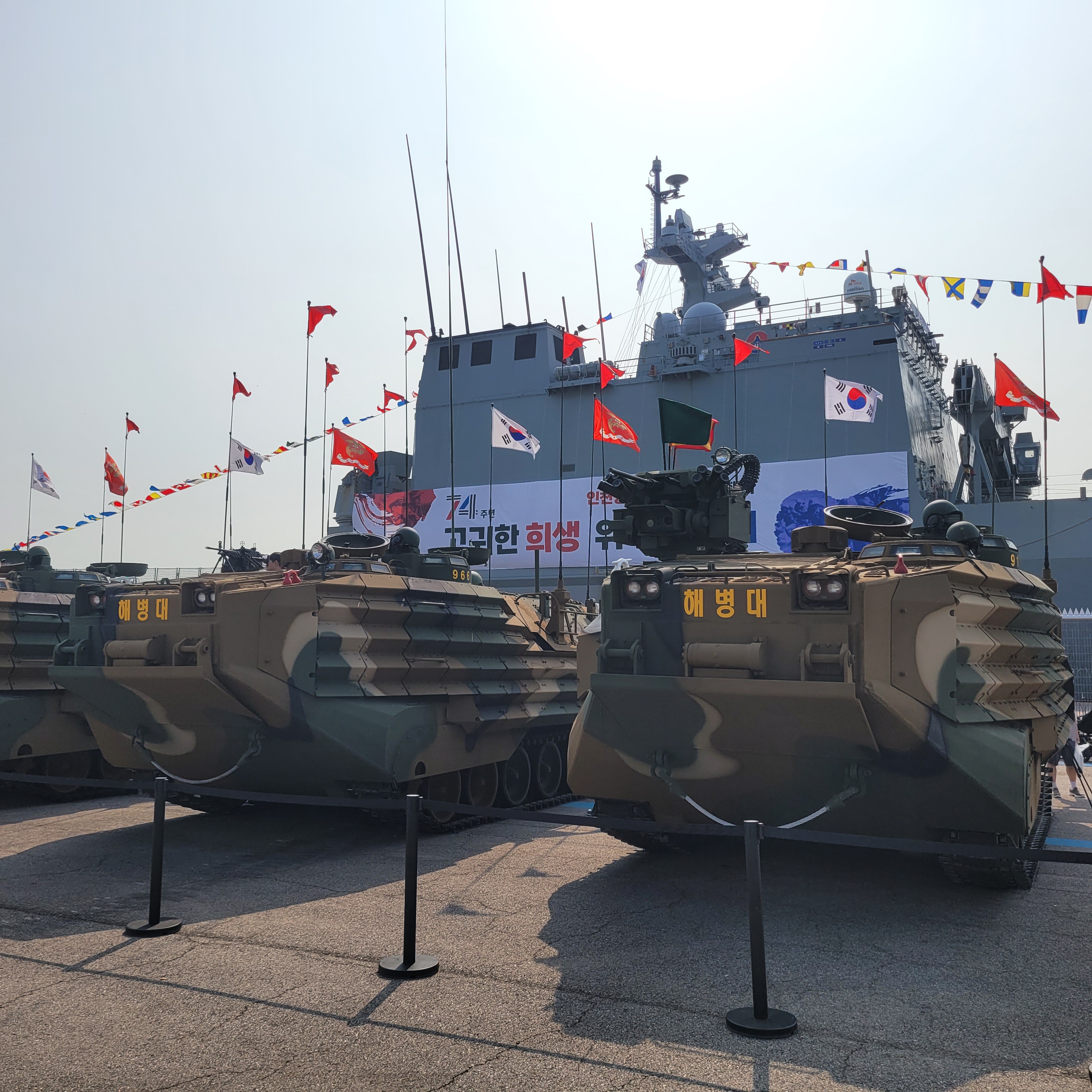 내항부두에 가보니 함정 2척이 정박중이었고 앞에는 장갑차도 몇대