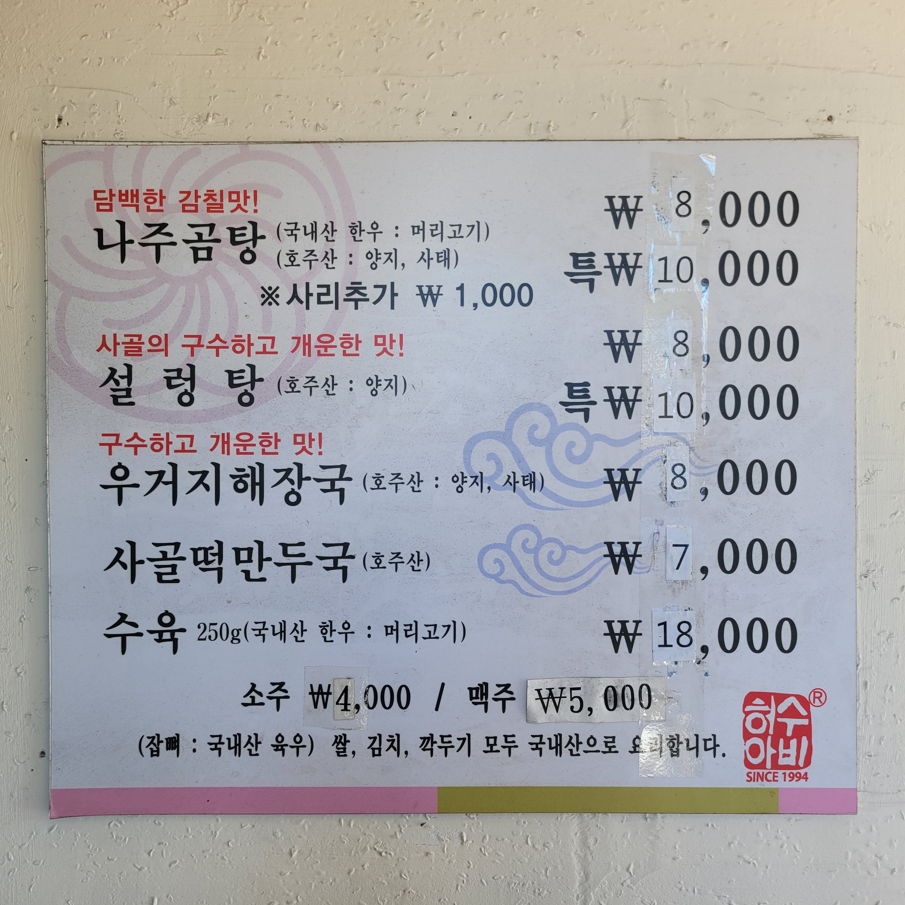 1년만에 다시 와봤는데 작년에 비해서 또 가격이 1000원