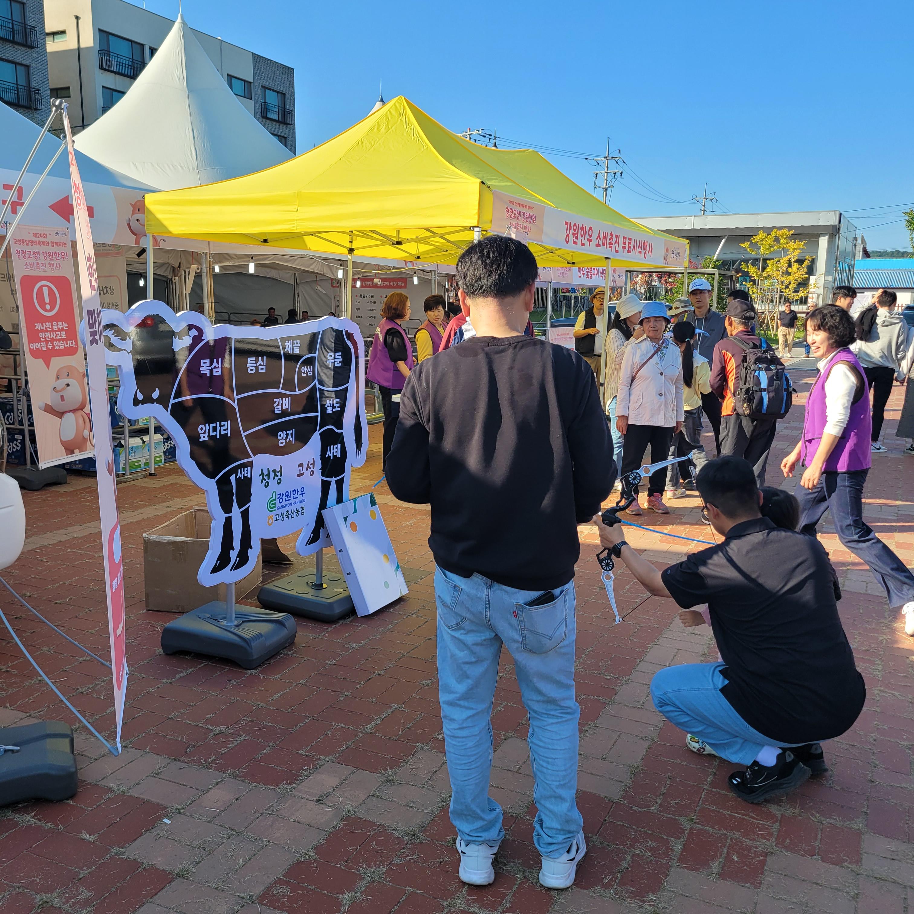 축제 현장 입구에서는 청청고성! 강원한우! 소비촉진 행사가 열리고 있었는데