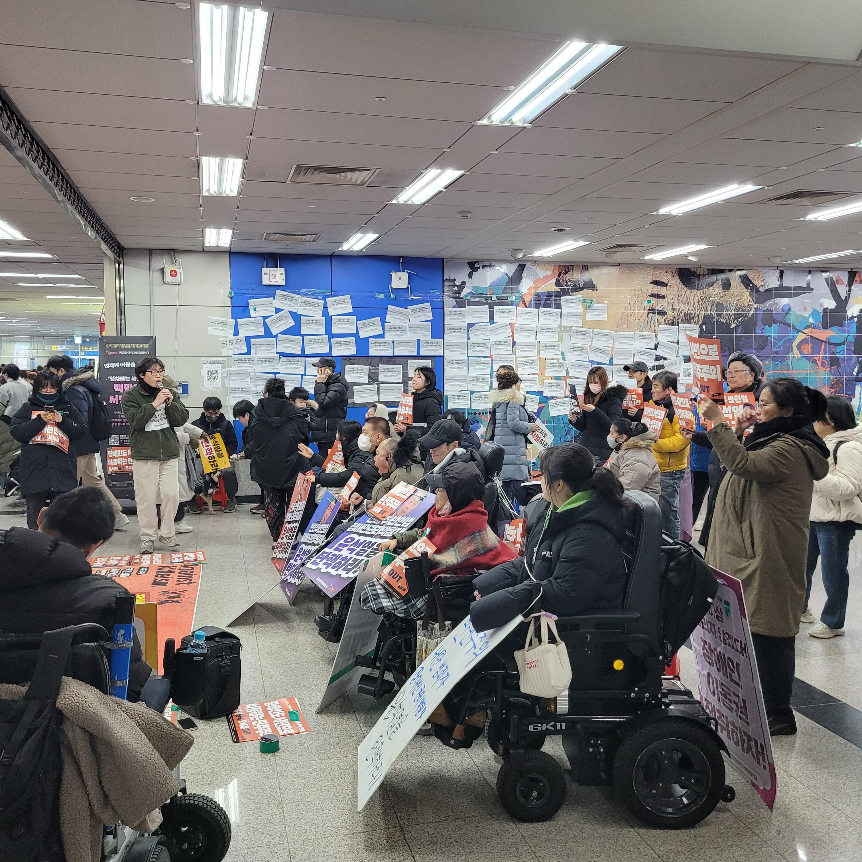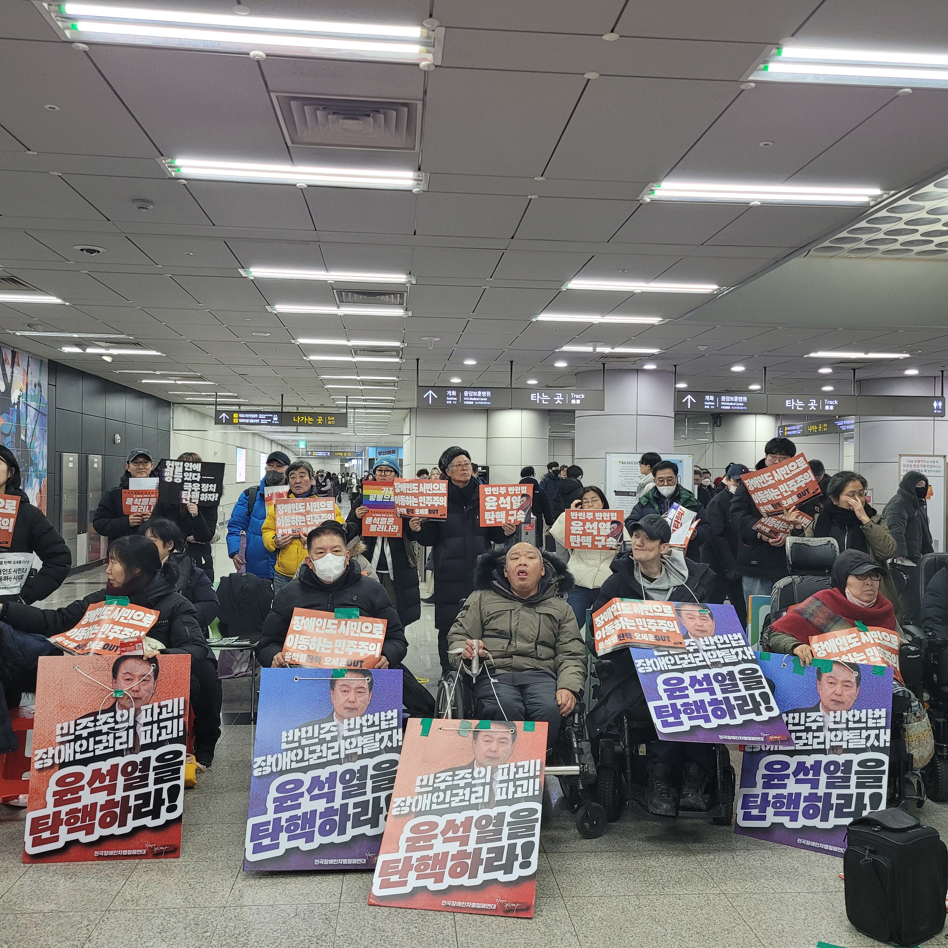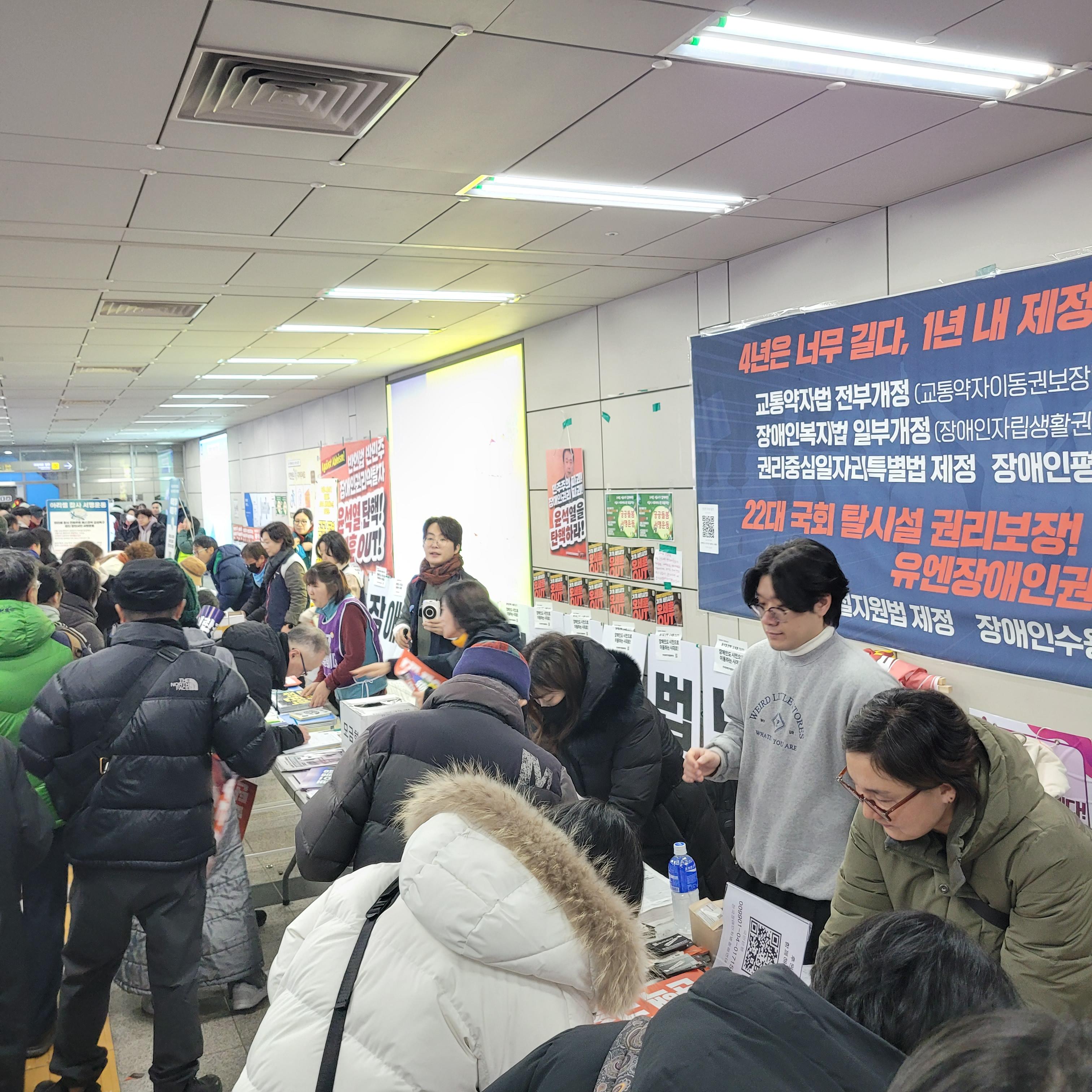 규탄하는 서명운동과 집회가 열리고 있었네요. 역을 나오니까 많은 인파들이