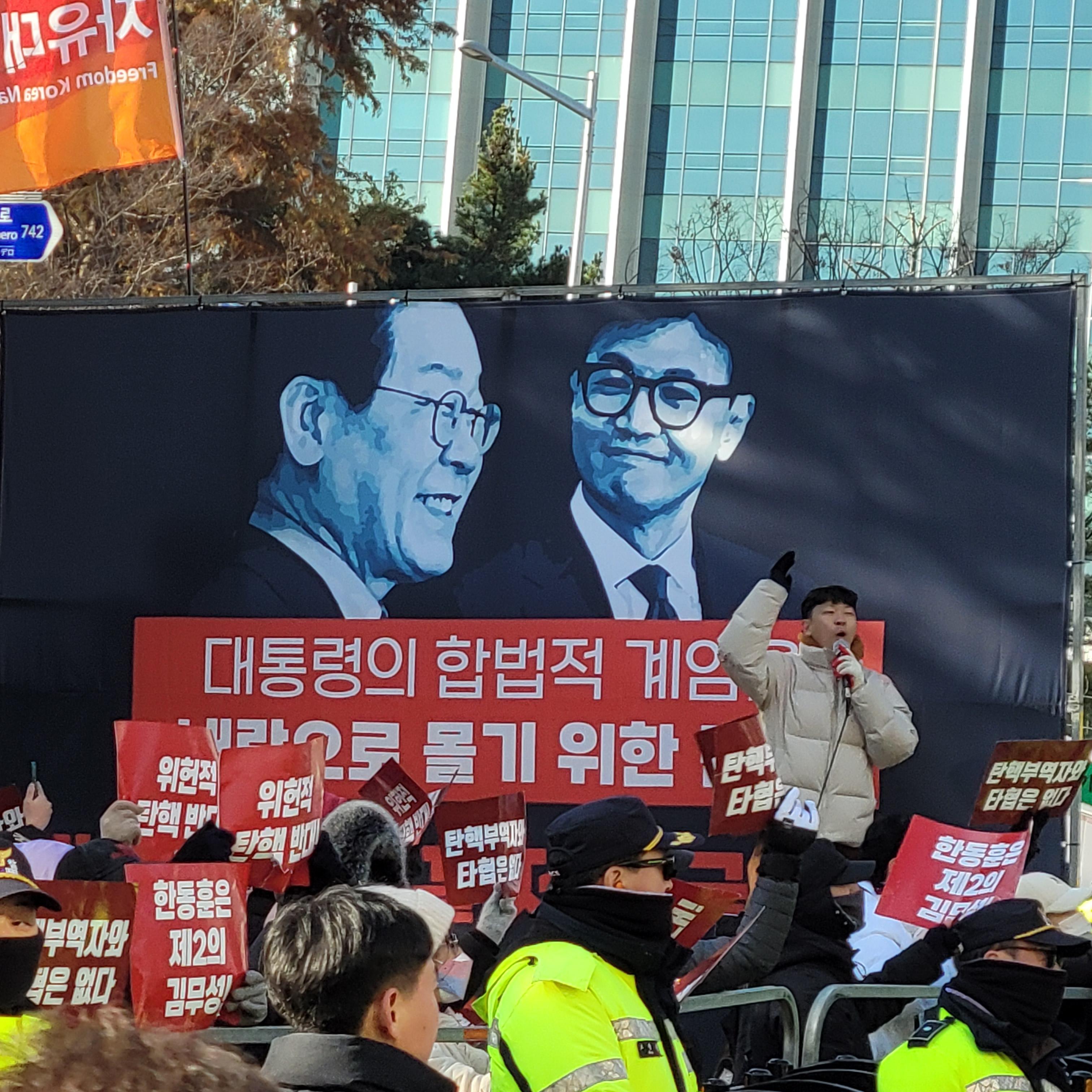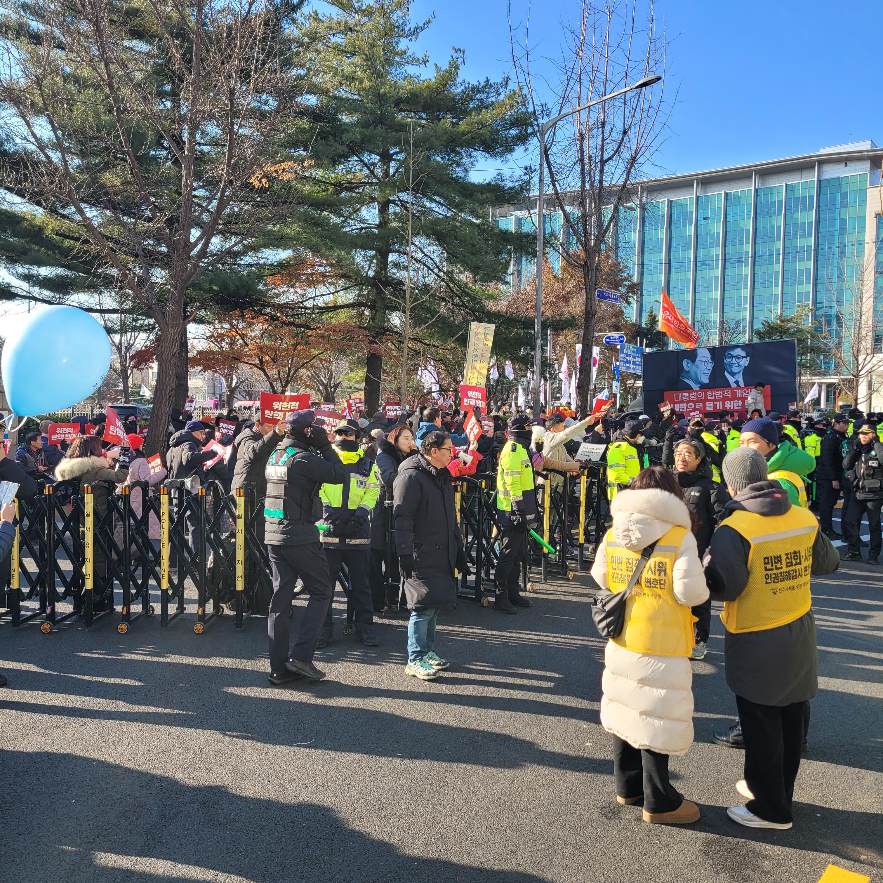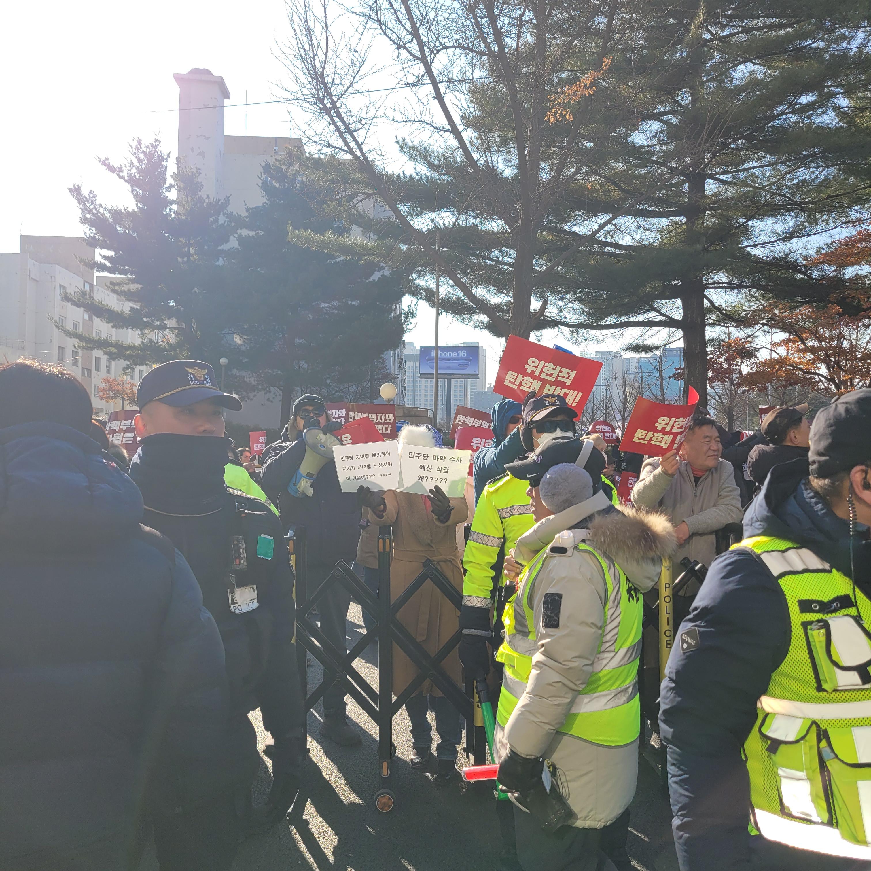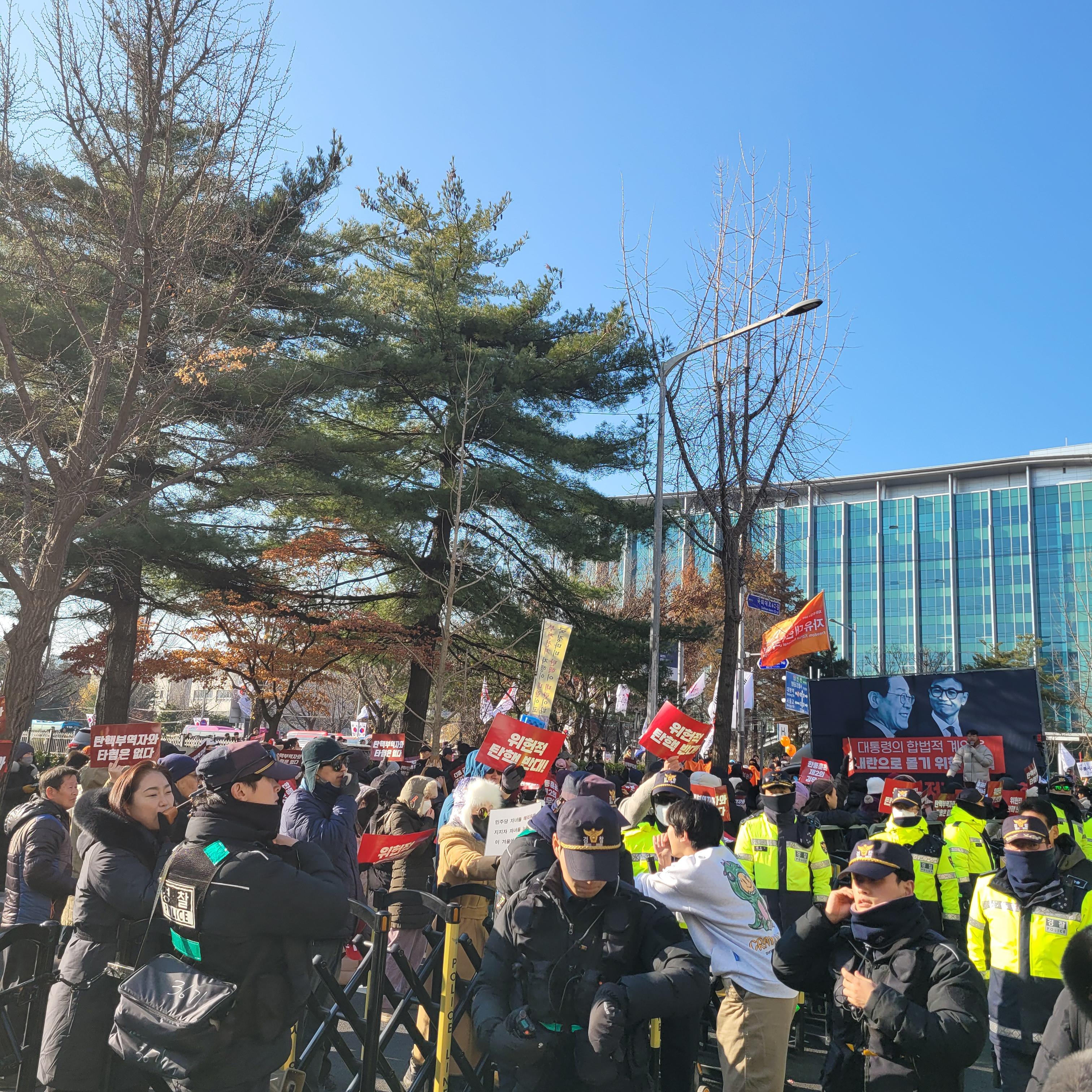 헌데 한쪽에서는 윤석열 탄핵 반대집회가 작은 규모로 열리고 있었는데
